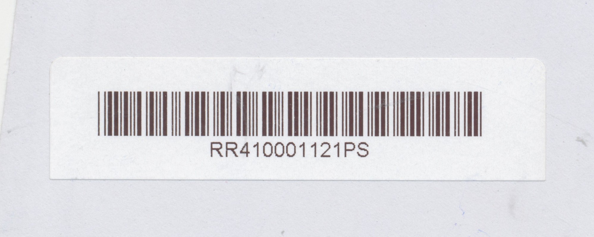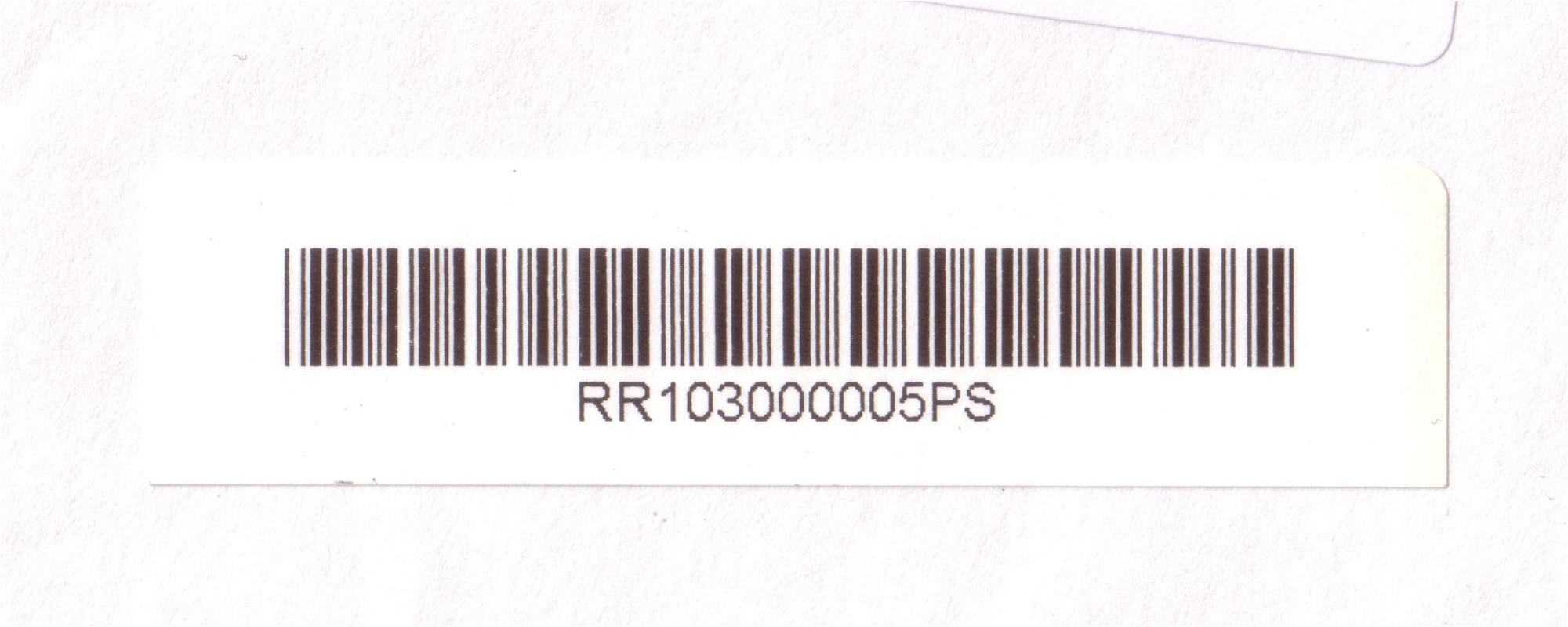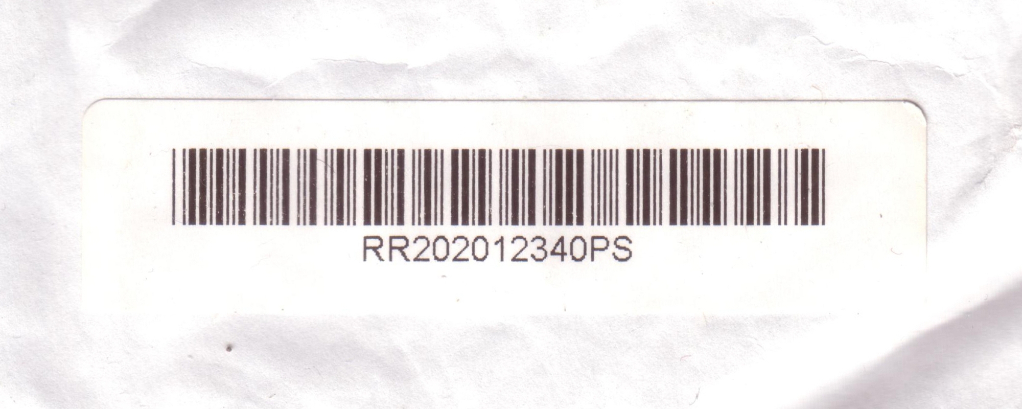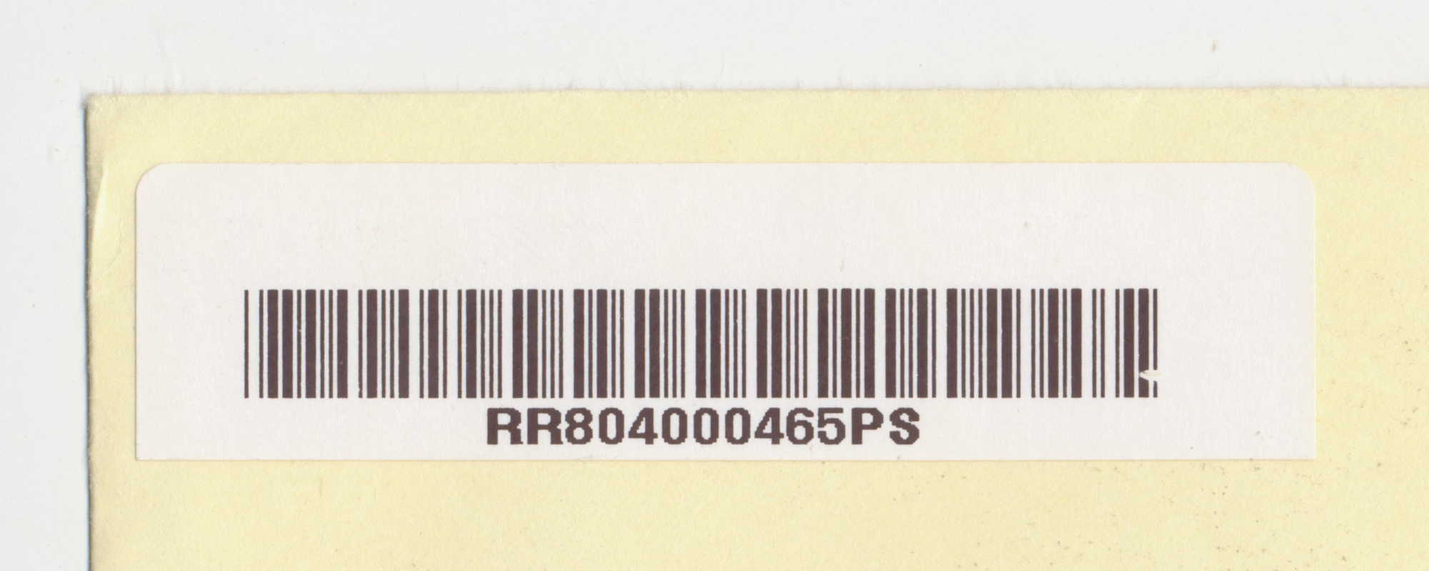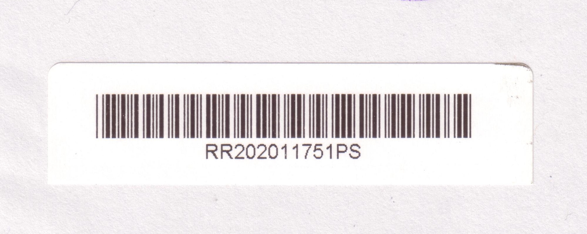 - white self-adhesive labels, printed in black. "IPS Light" linear barcode. With or without "Palestine Post" on top of imprinted numerator (9 digits) with prefixed RR and suffixed PS or ps. Label size varies.