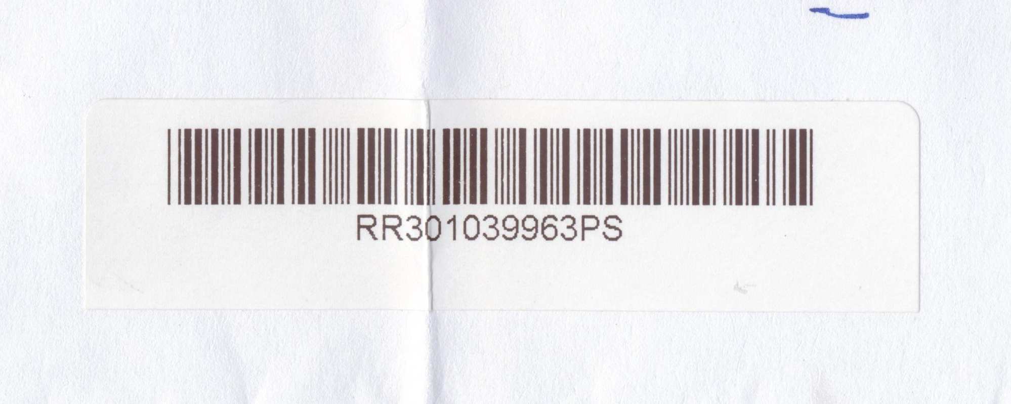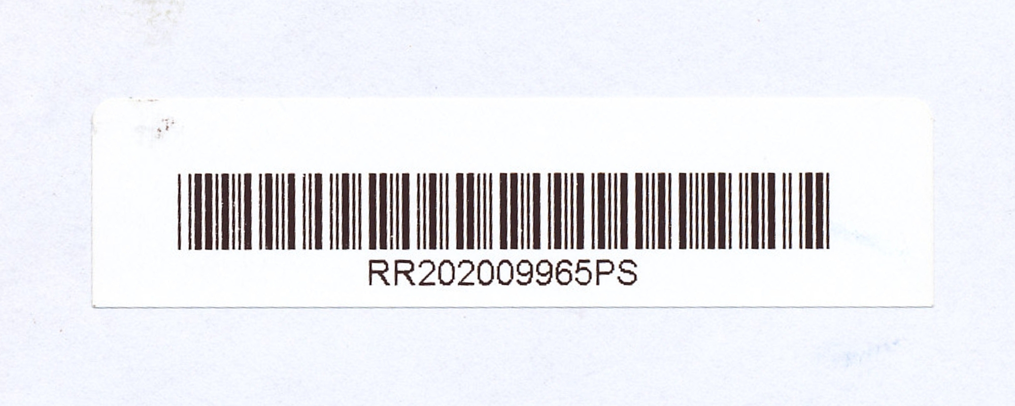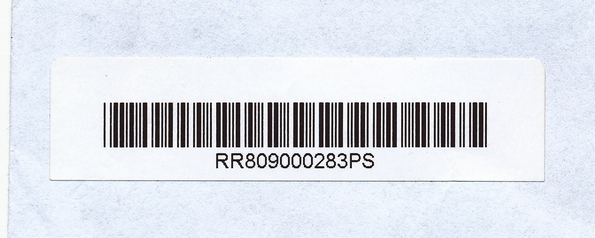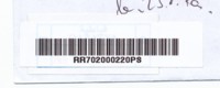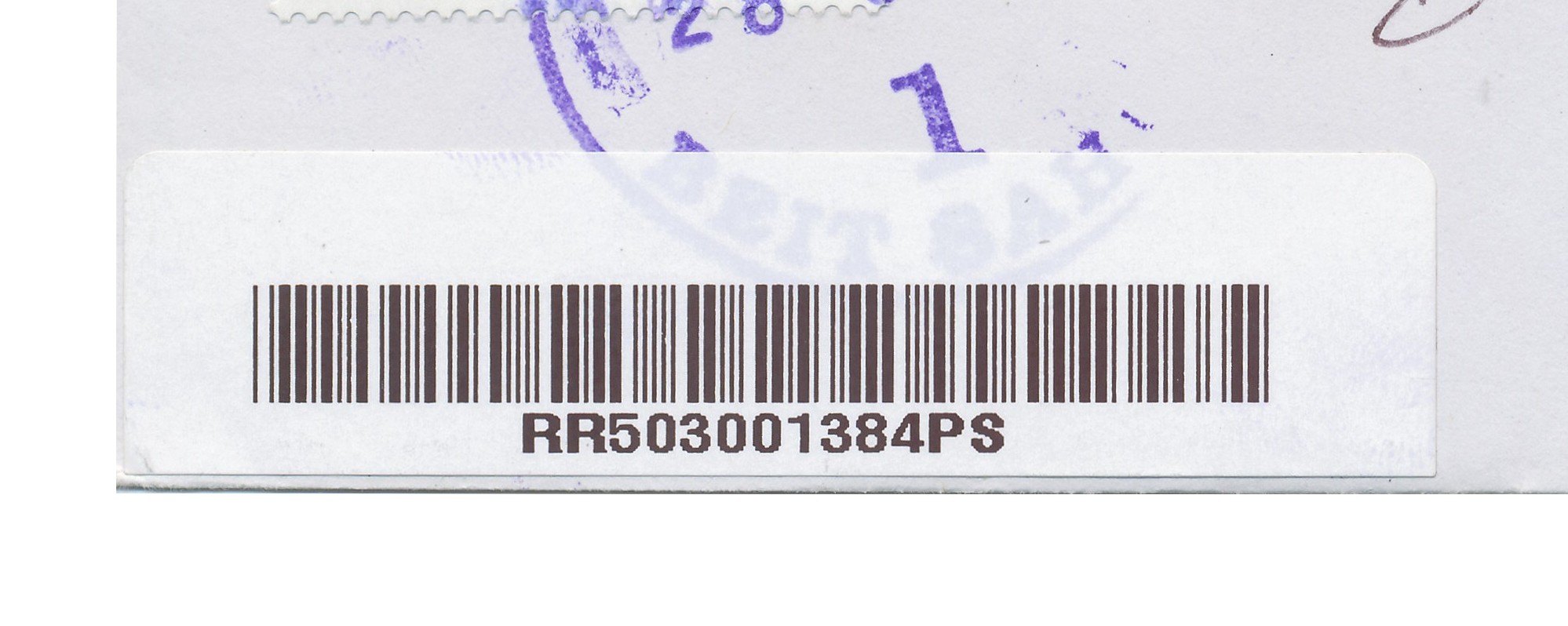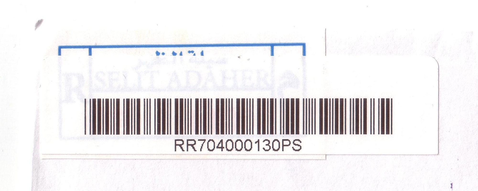 - white self-adhesive labels, printed in black. "IPS Light" linear barcode. With or without "Palestine Post" on top of imprinted numerator (9 digits) with prefixed RR and suffixed PS or ps. Label size varies.