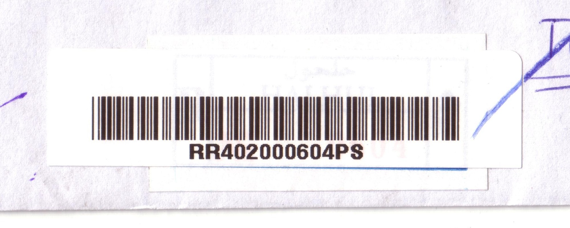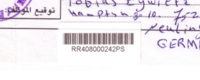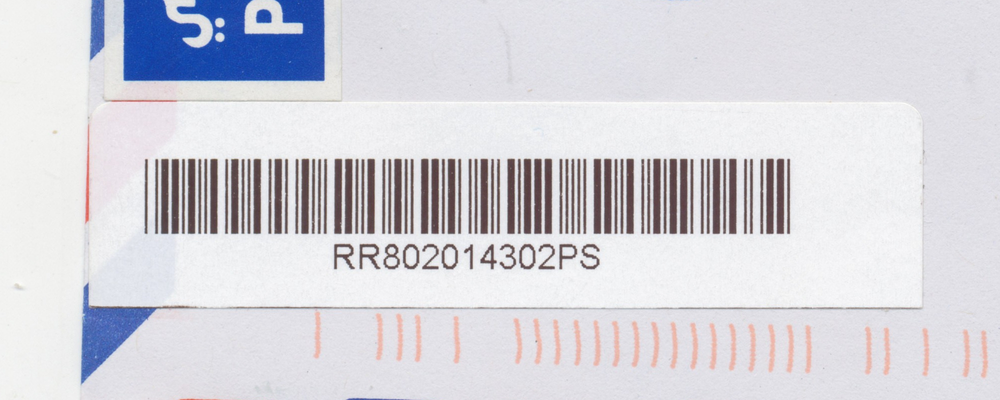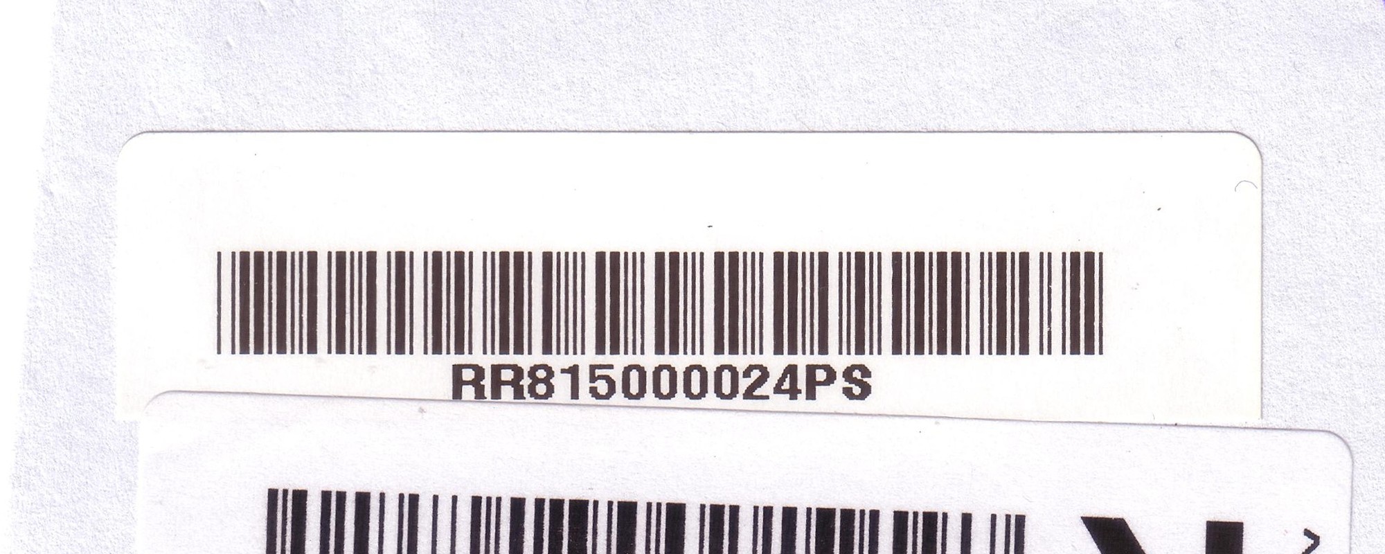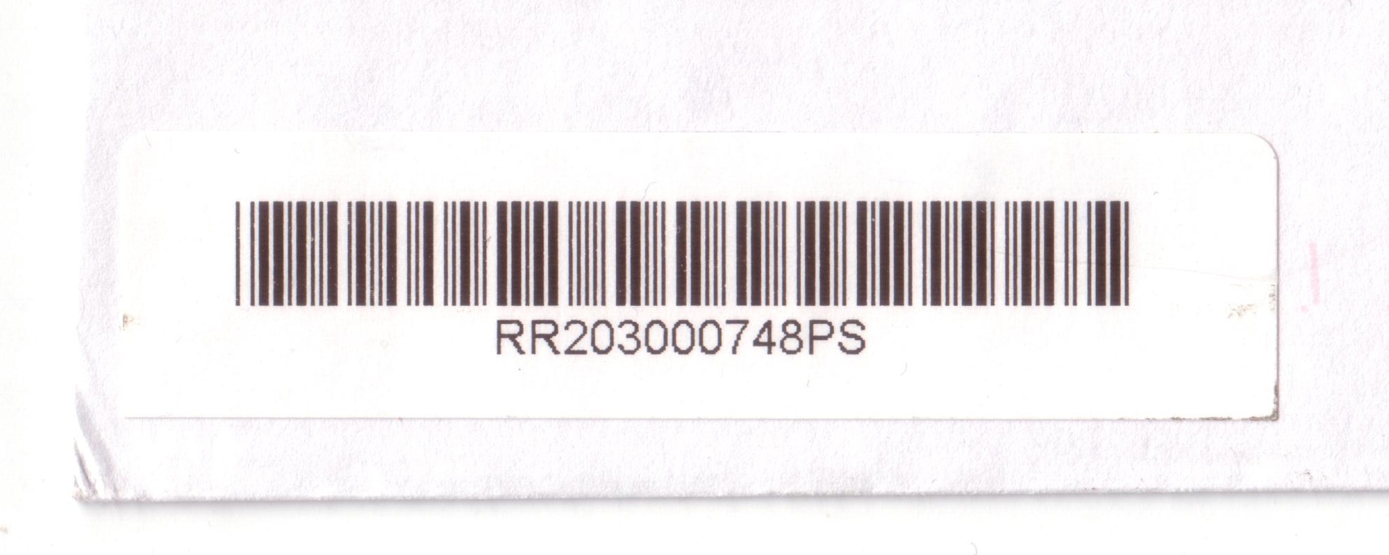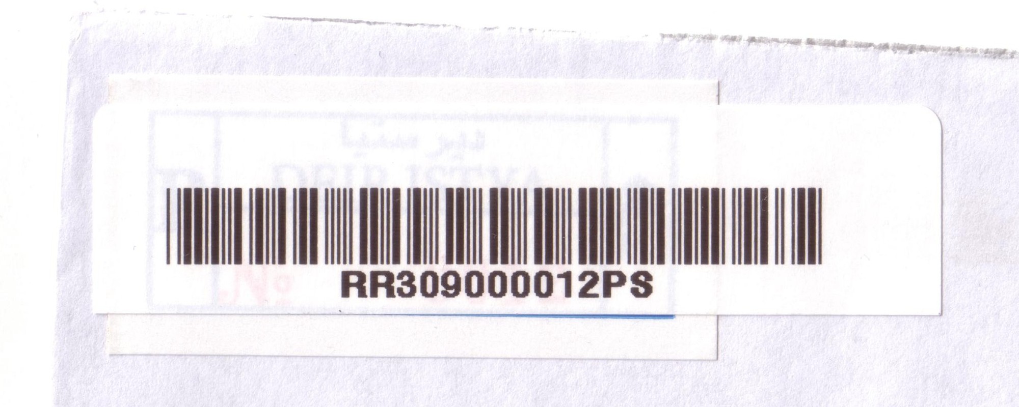 - white self-adhesive labels, printed in black. "IPS Light" linear barcode. With or without "Palestine Post" on top of imprinted numerator (9 digits) with prefixed RR and suffixed PS or ps. Label size varies.