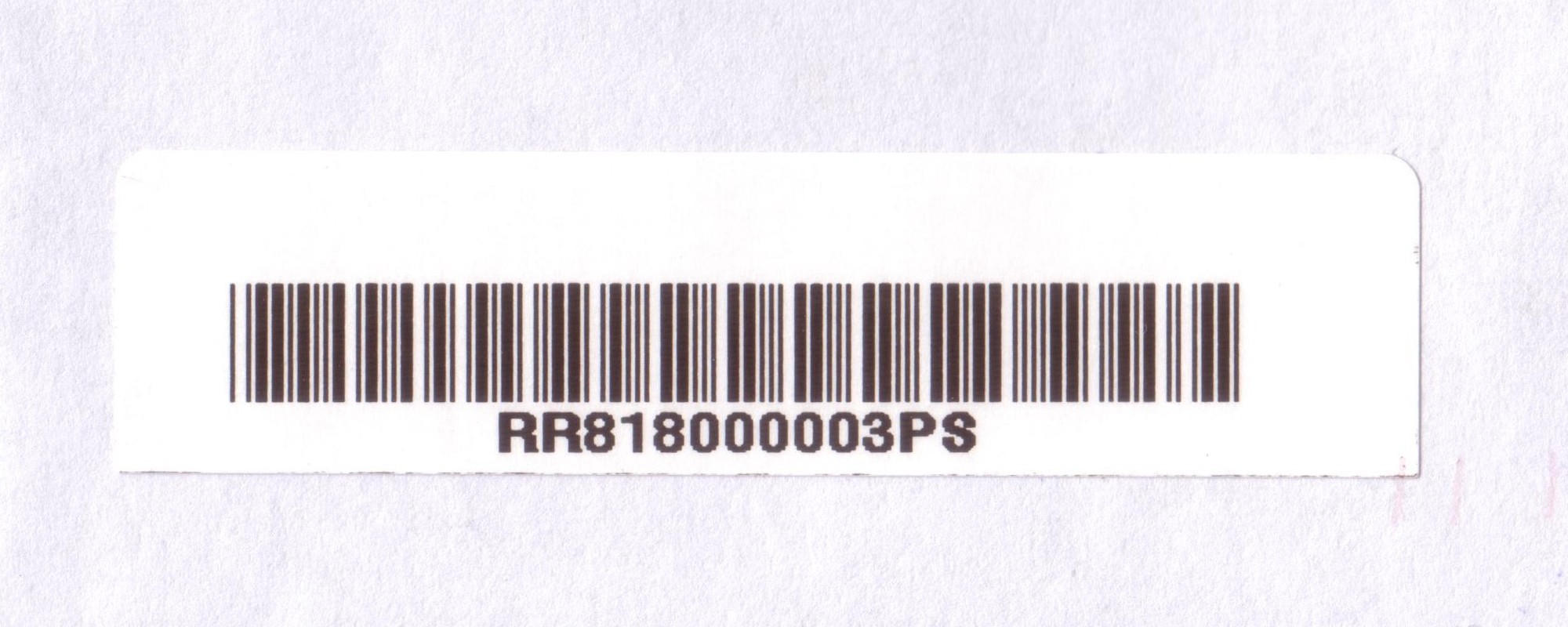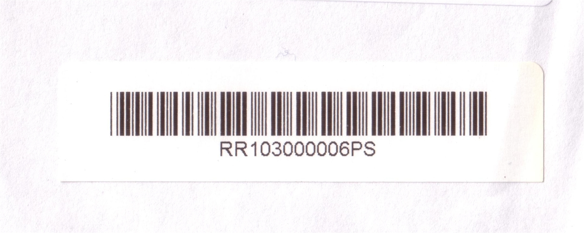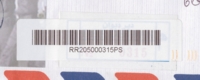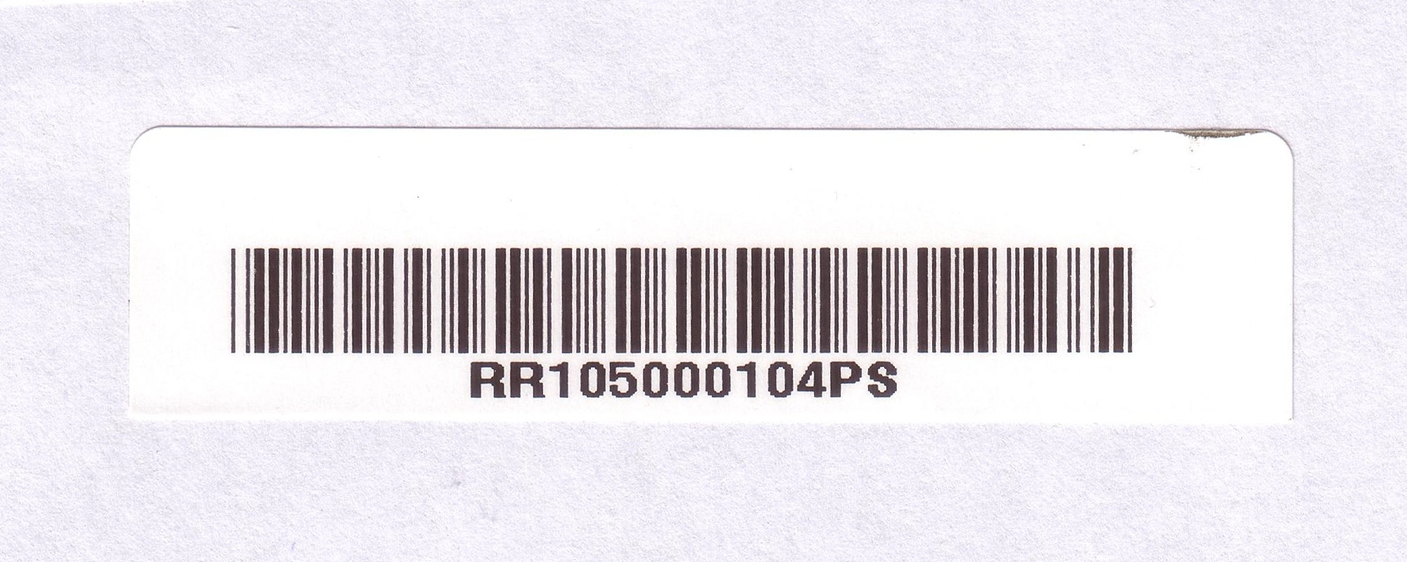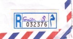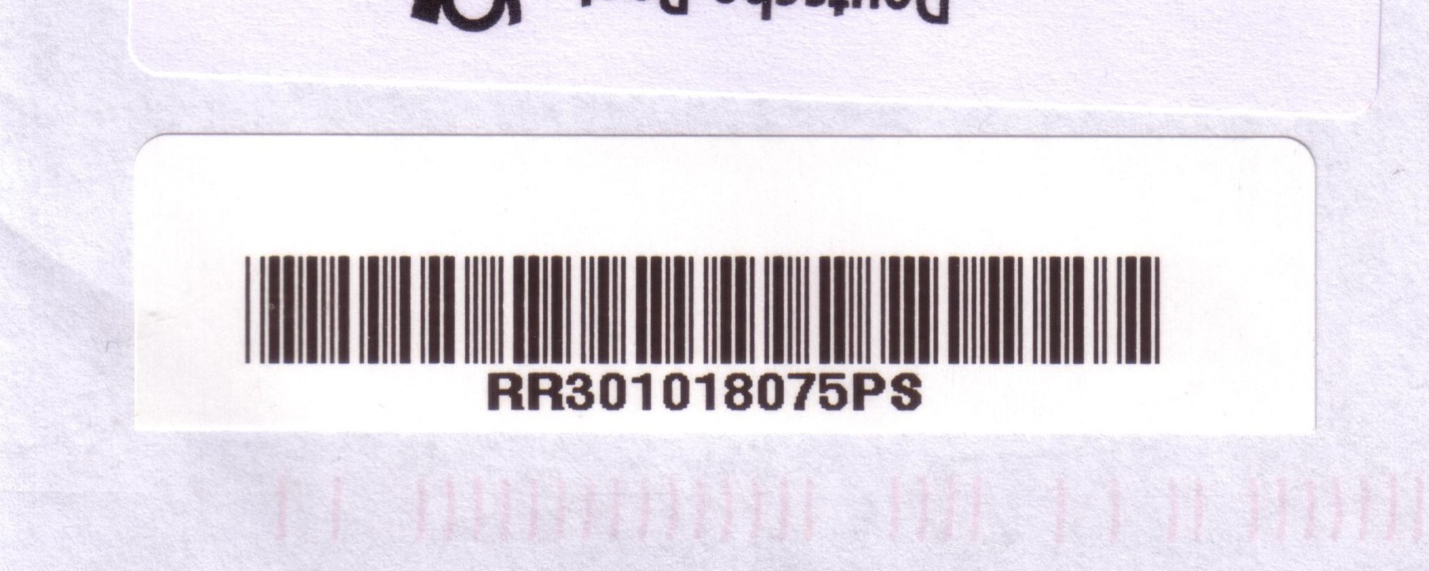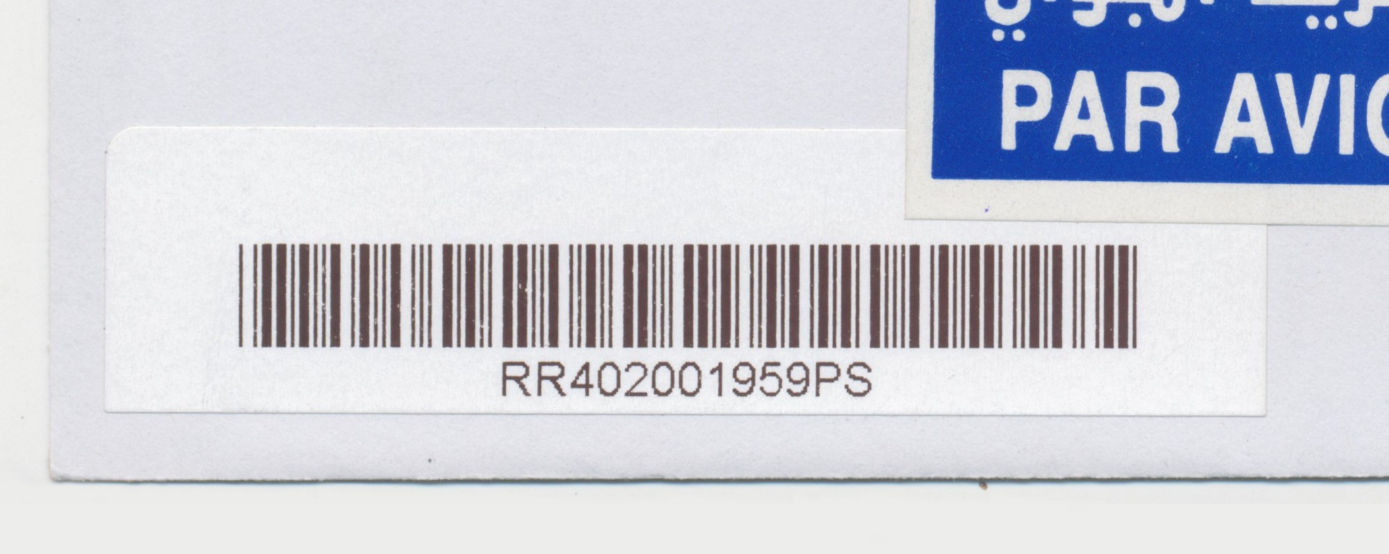 - white self-adhesive labels, printed in black. "IPS Light" linear barcode. With or without "Palestine Post" on top of imprinted numerator (9 digits) with prefixed RR and suffixed PS or ps. Label size varies.