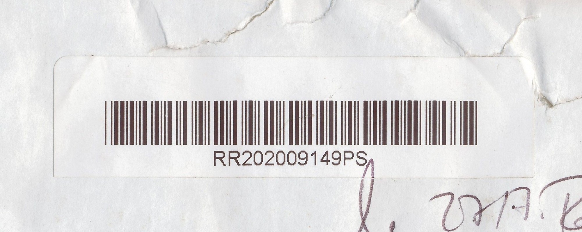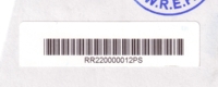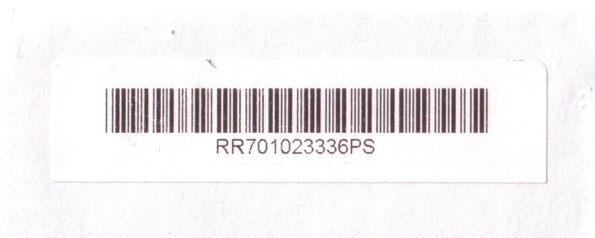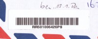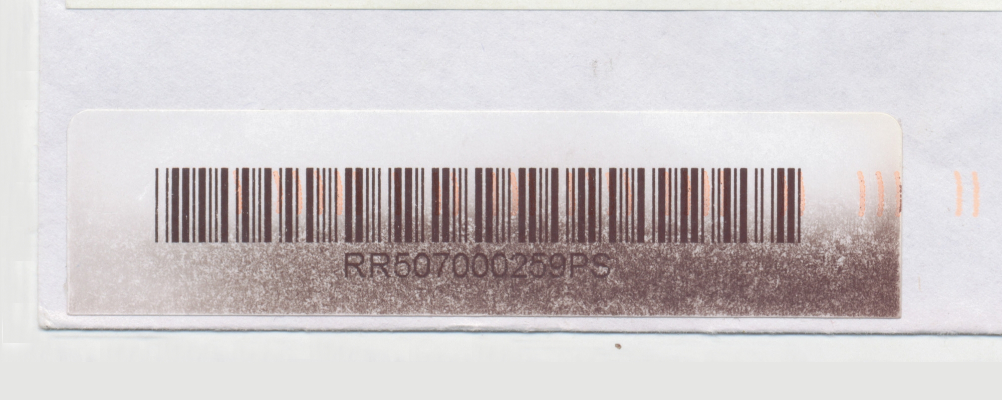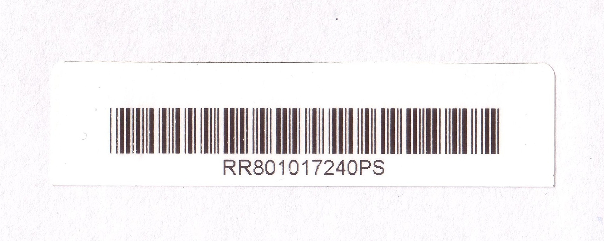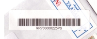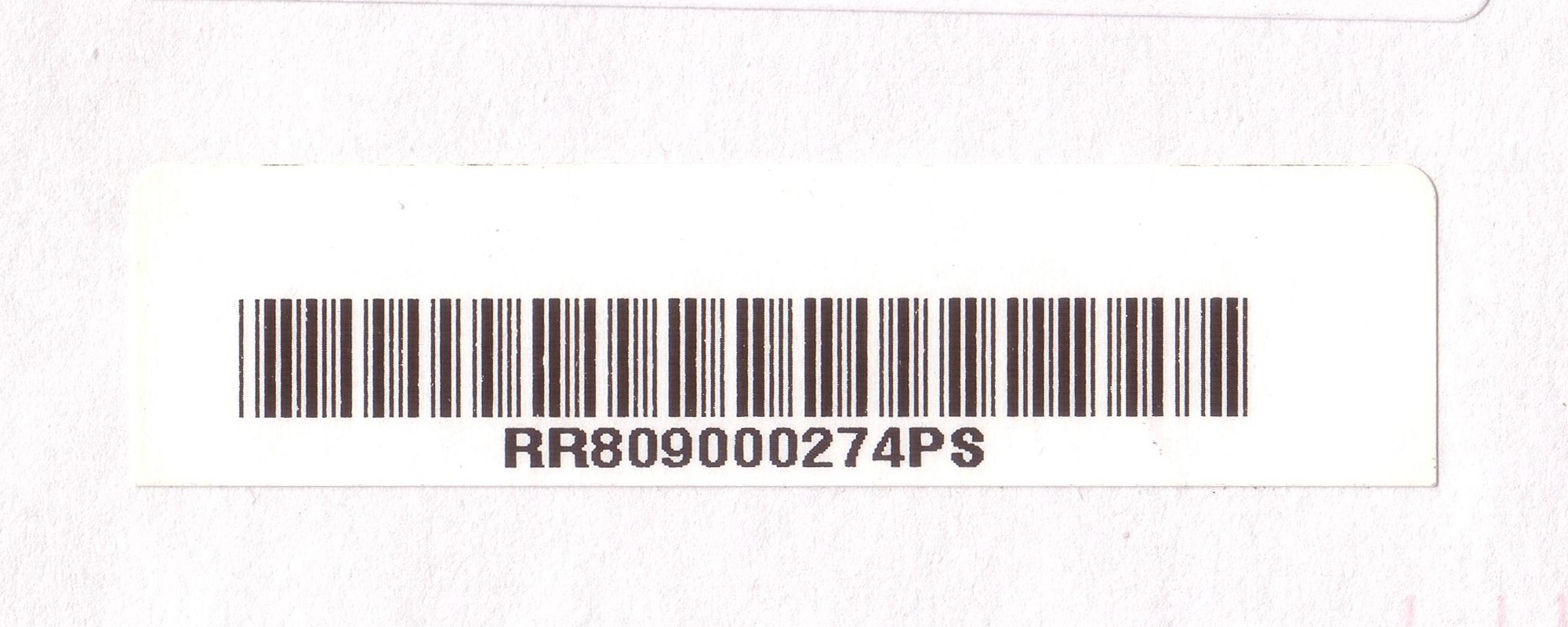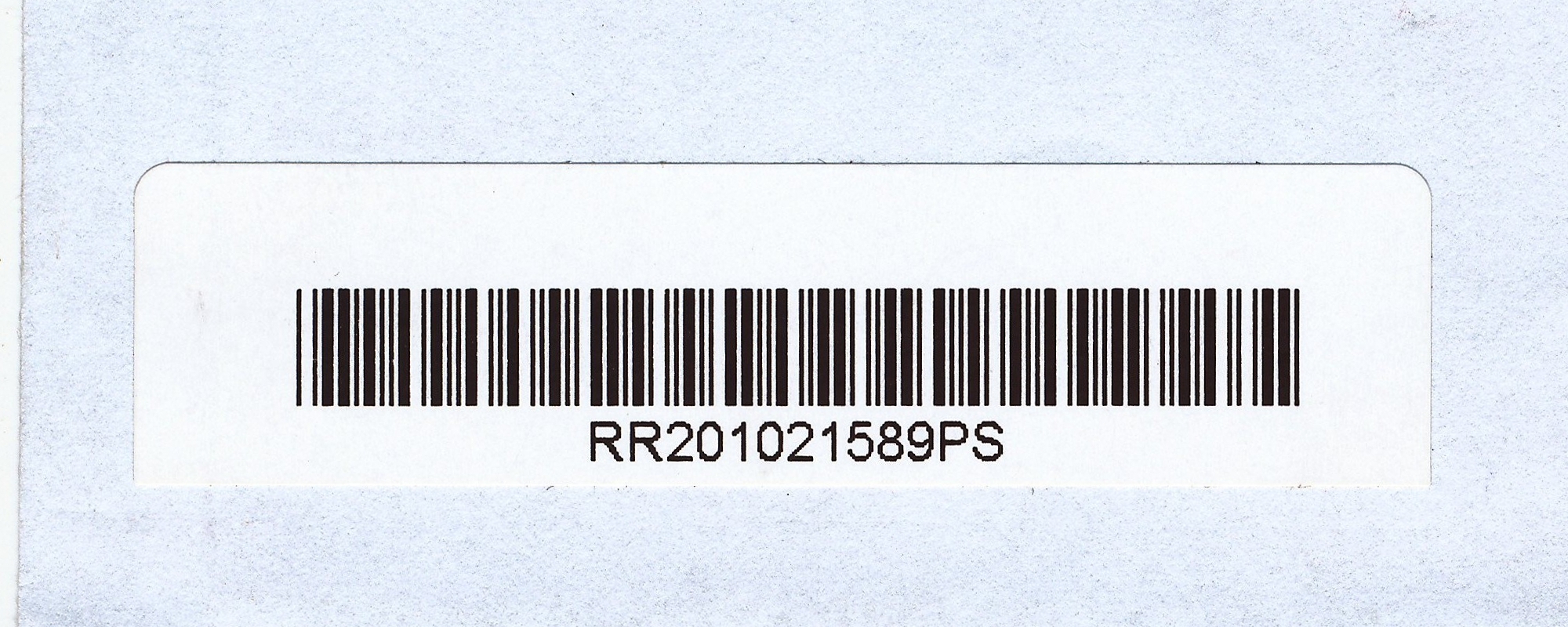 - white self-adhesive labels, printed in black. "IPS Light" linear barcode. With or without "Palestine Post" on top of imprinted numerator (9 digits) with prefixed RR and suffixed PS or ps. Label size varies.