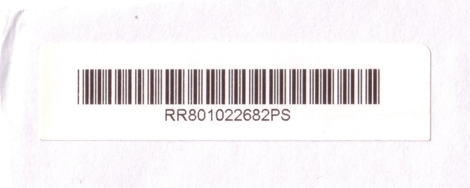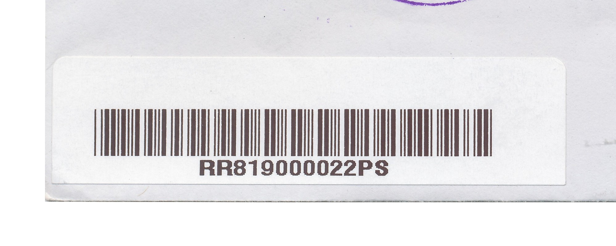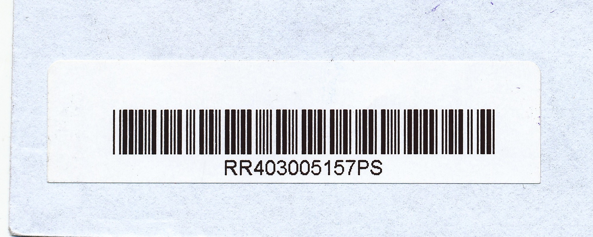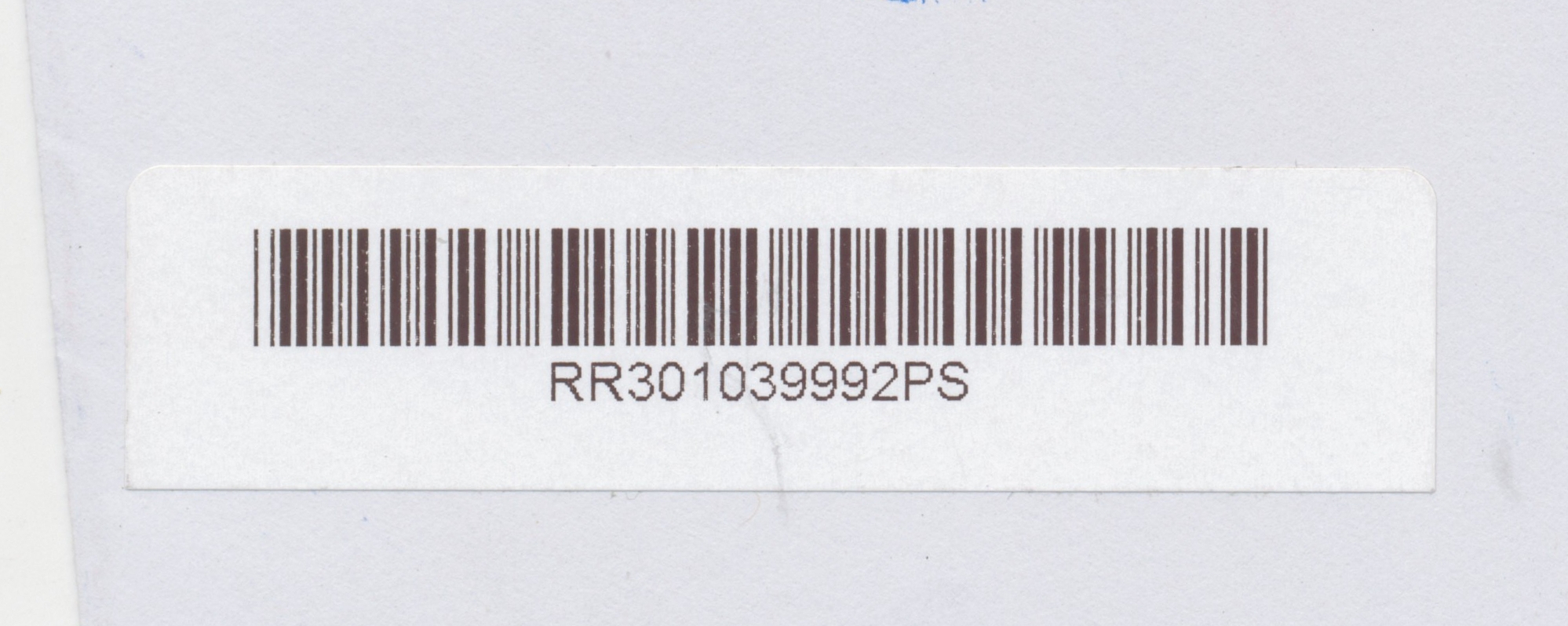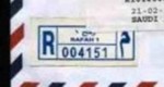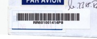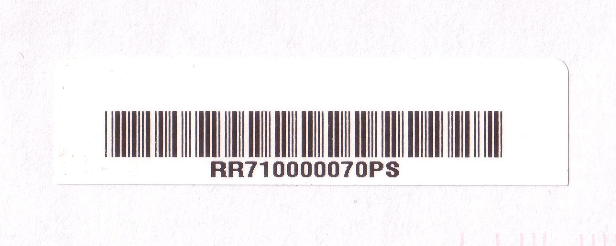 - white self-adhesive labels, printed in black. "IPS Light" linear barcode. With or without "Palestine Post" on top of imprinted numerator (9 digits) with prefixed RR and suffixed PS or ps. Label size varies.