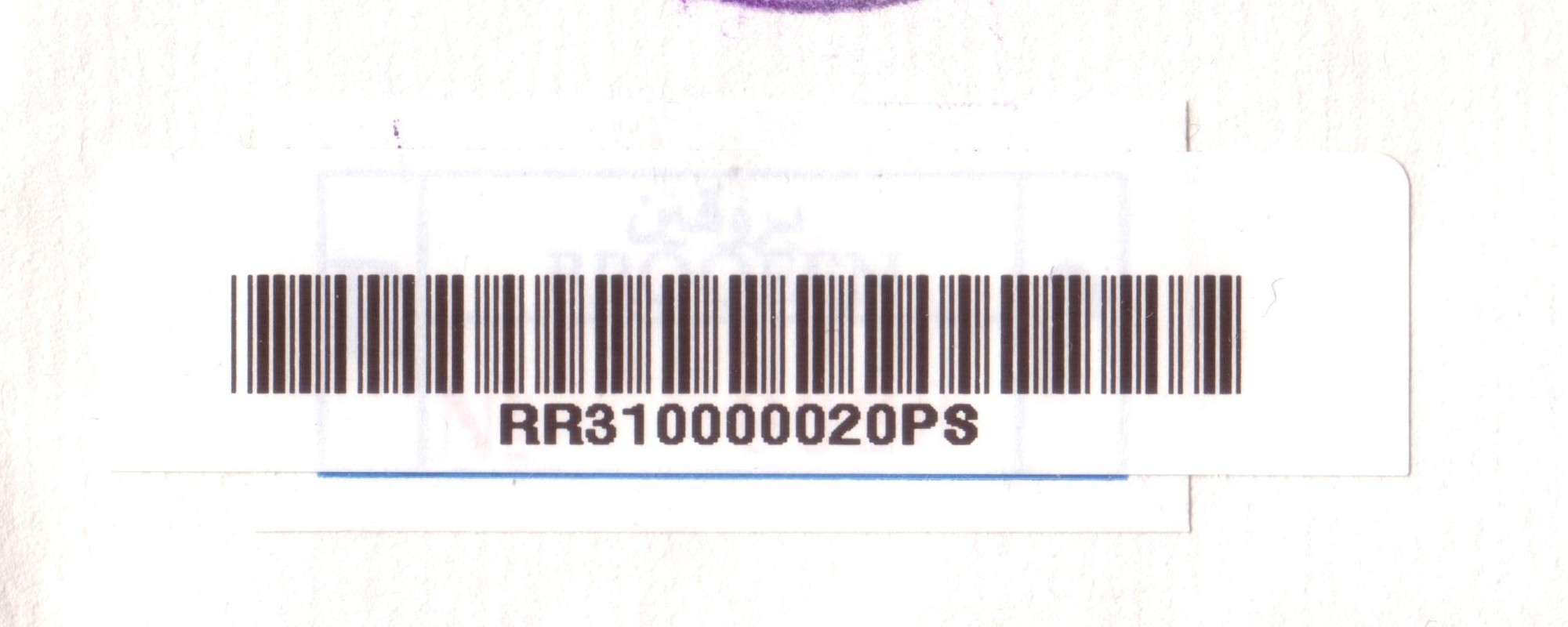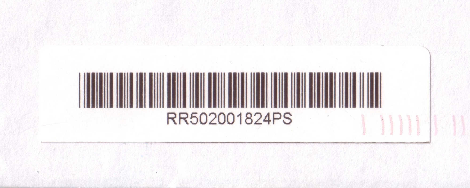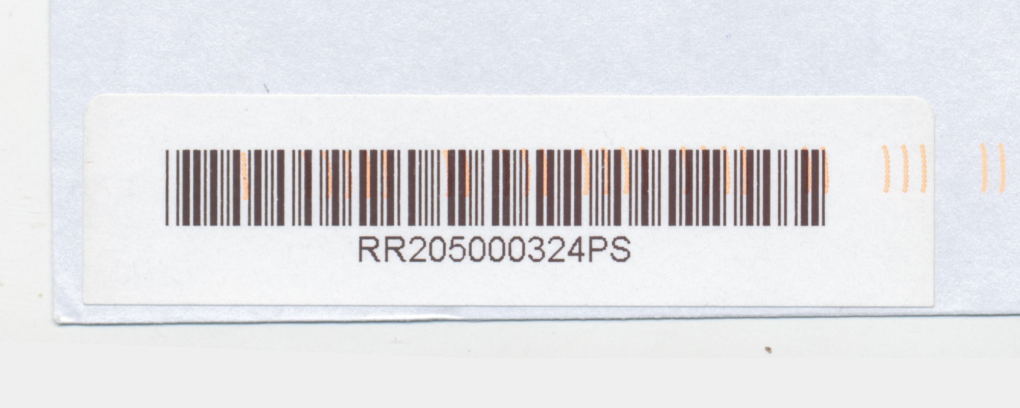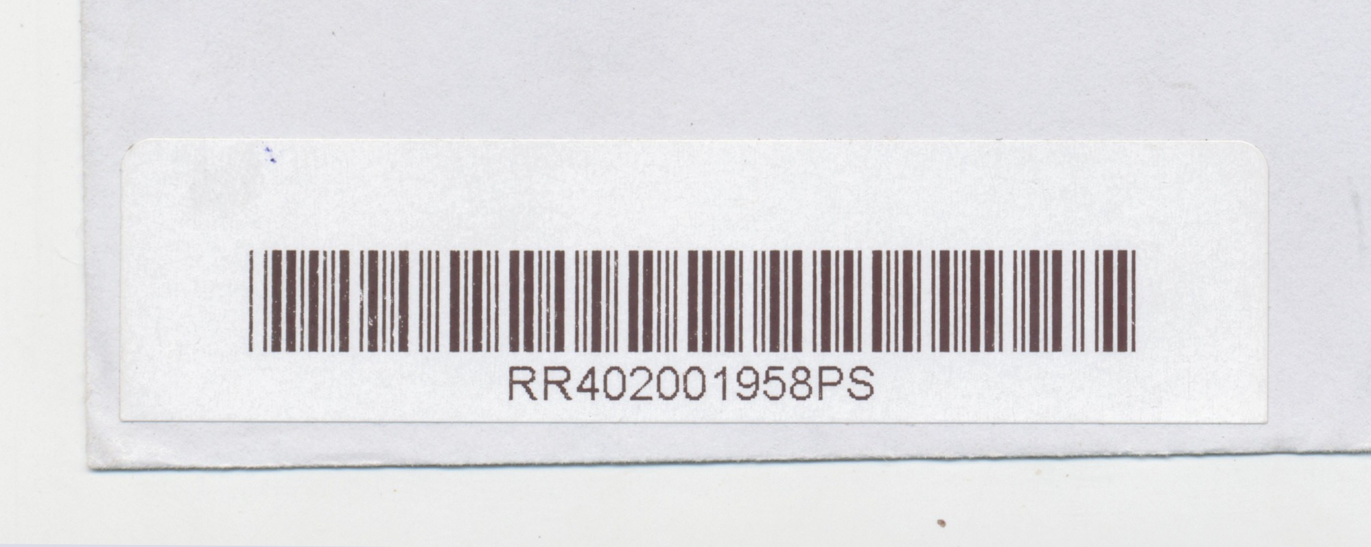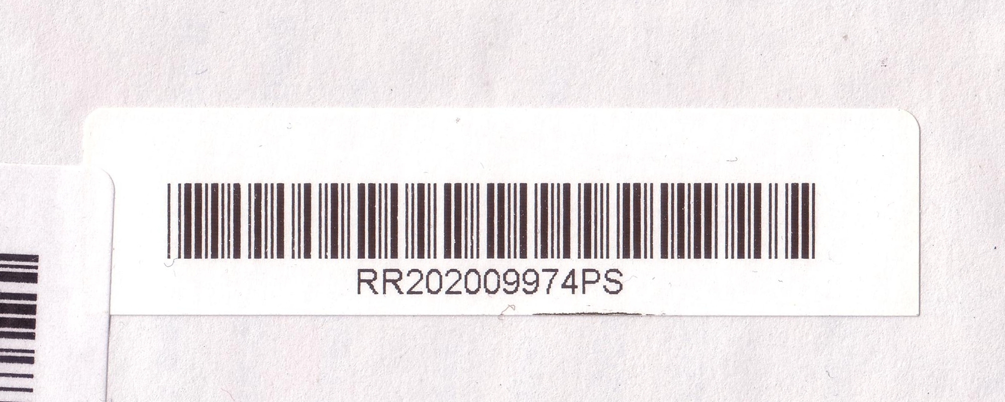 - white self-adhesive labels, printed in black. "IPS Light" linear barcode. With or without "Palestine Post" on top of imprinted numerator (9 digits) with prefixed RR and suffixed PS or ps. Label size varies.
