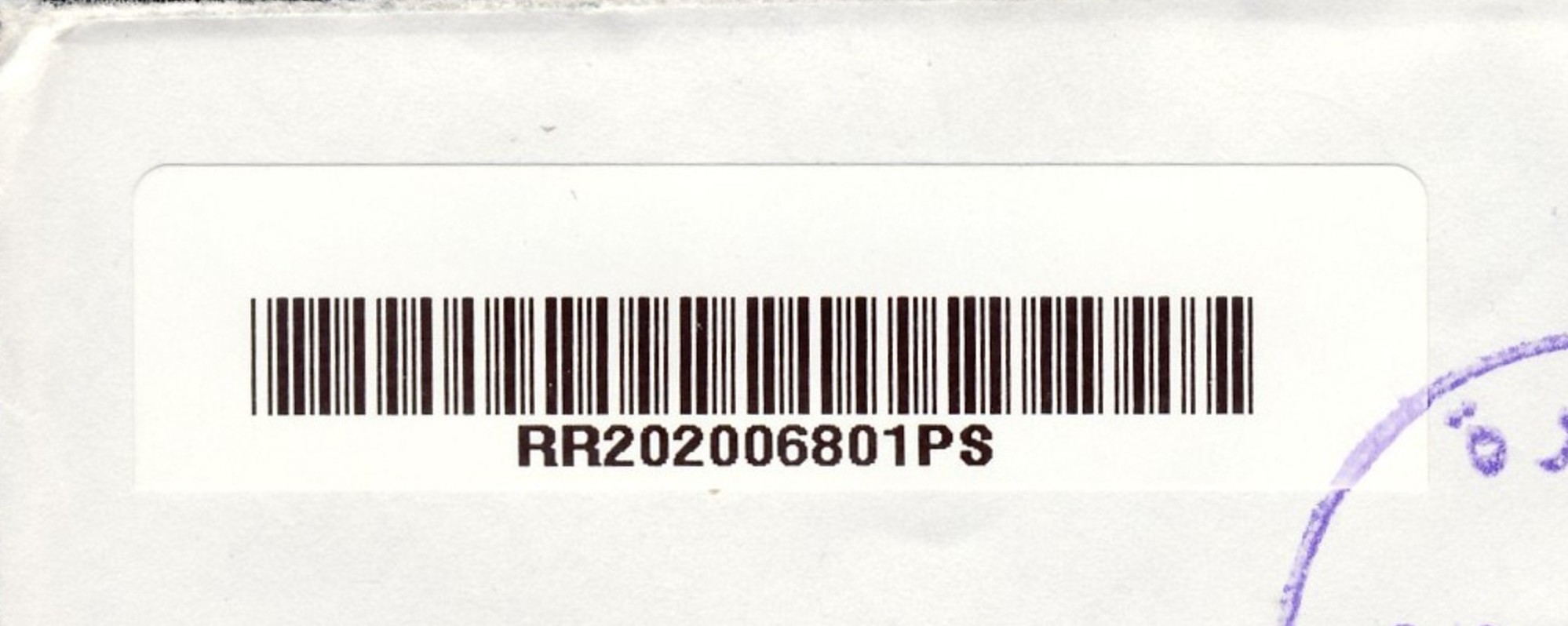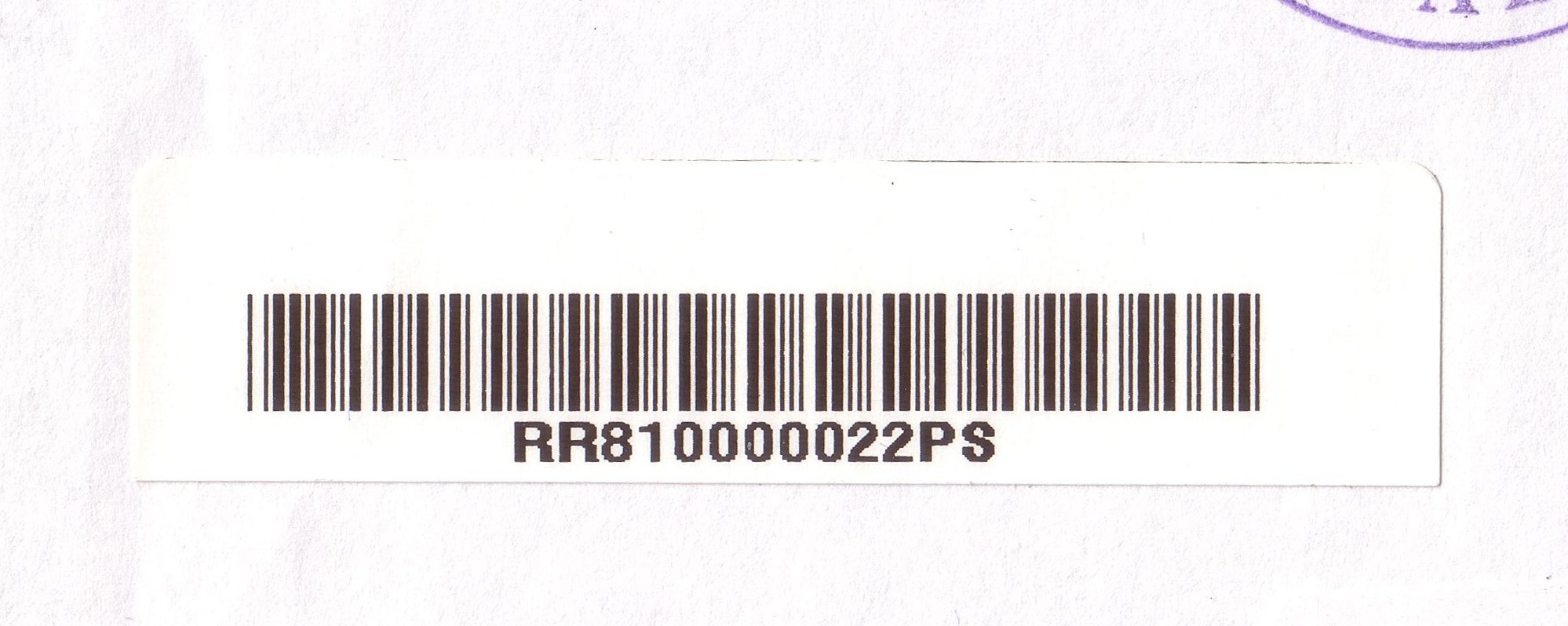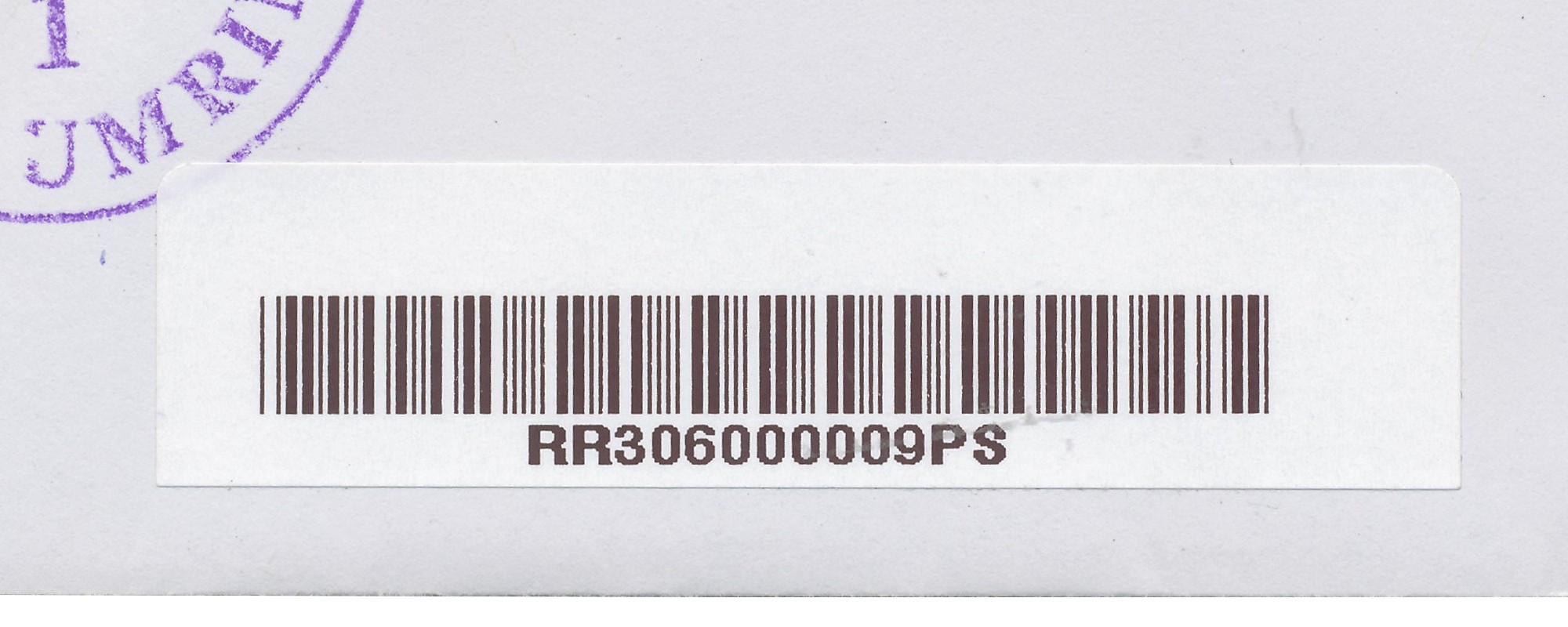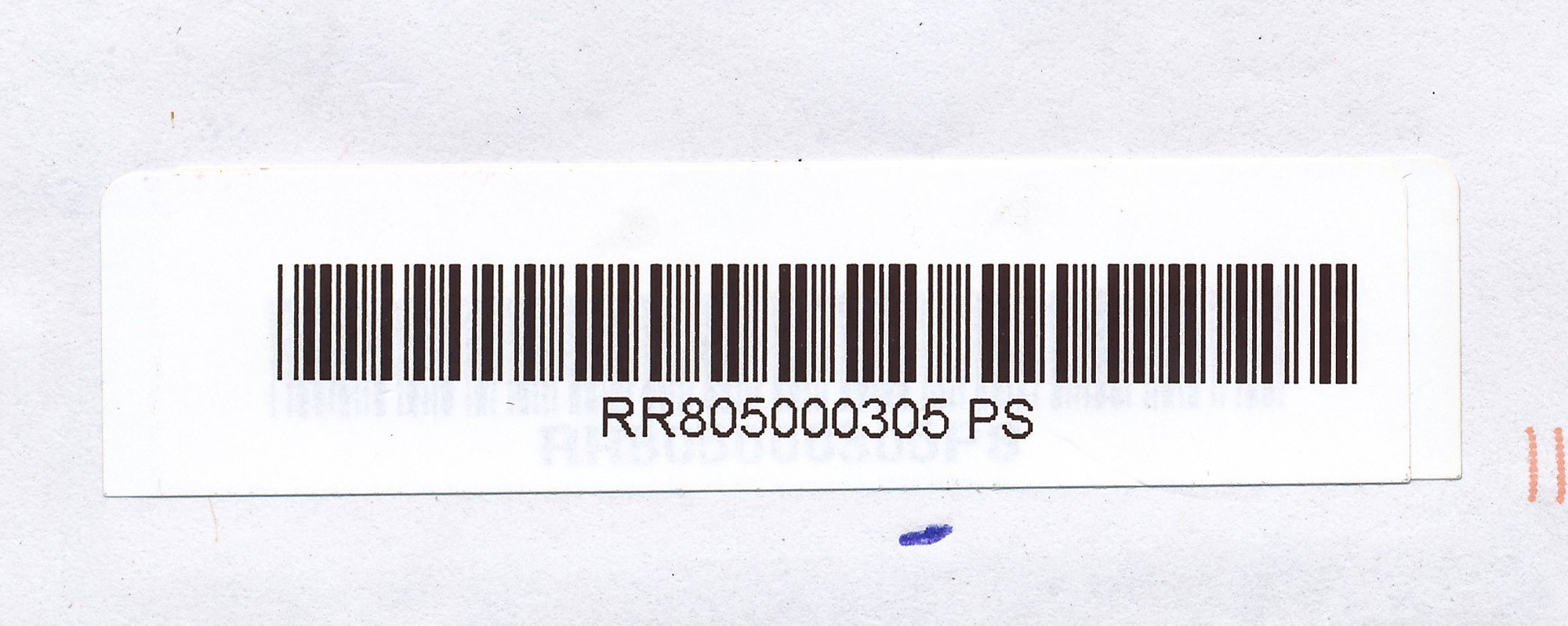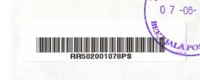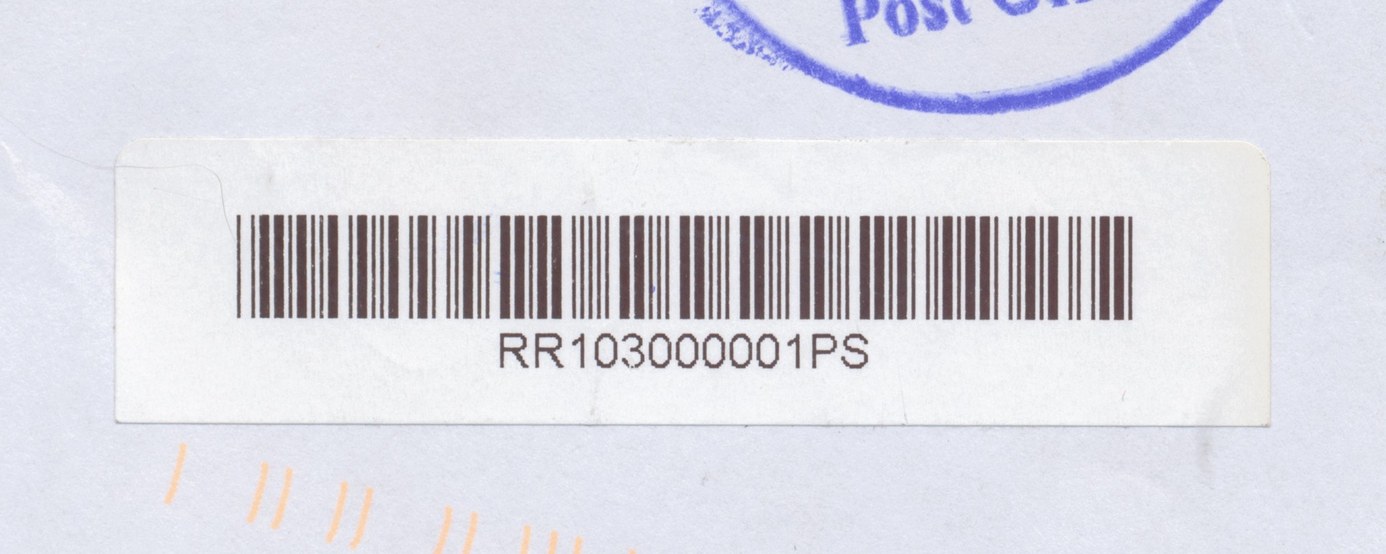 - white self-adhesive labels, printed in black. "IPS Light" linear barcode. With or without "Palestine Post" on top of imprinted numerator (9 digits) with prefixed RR and suffixed PS or ps. Label size varies.