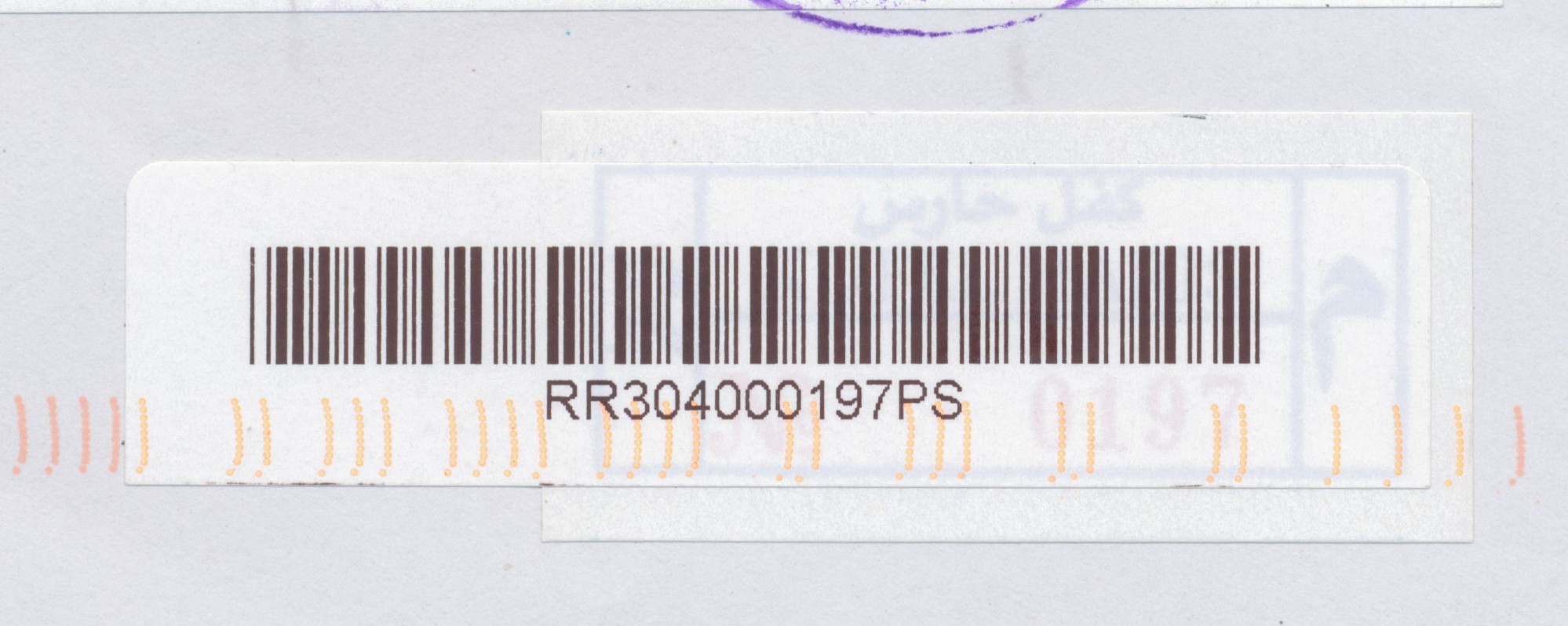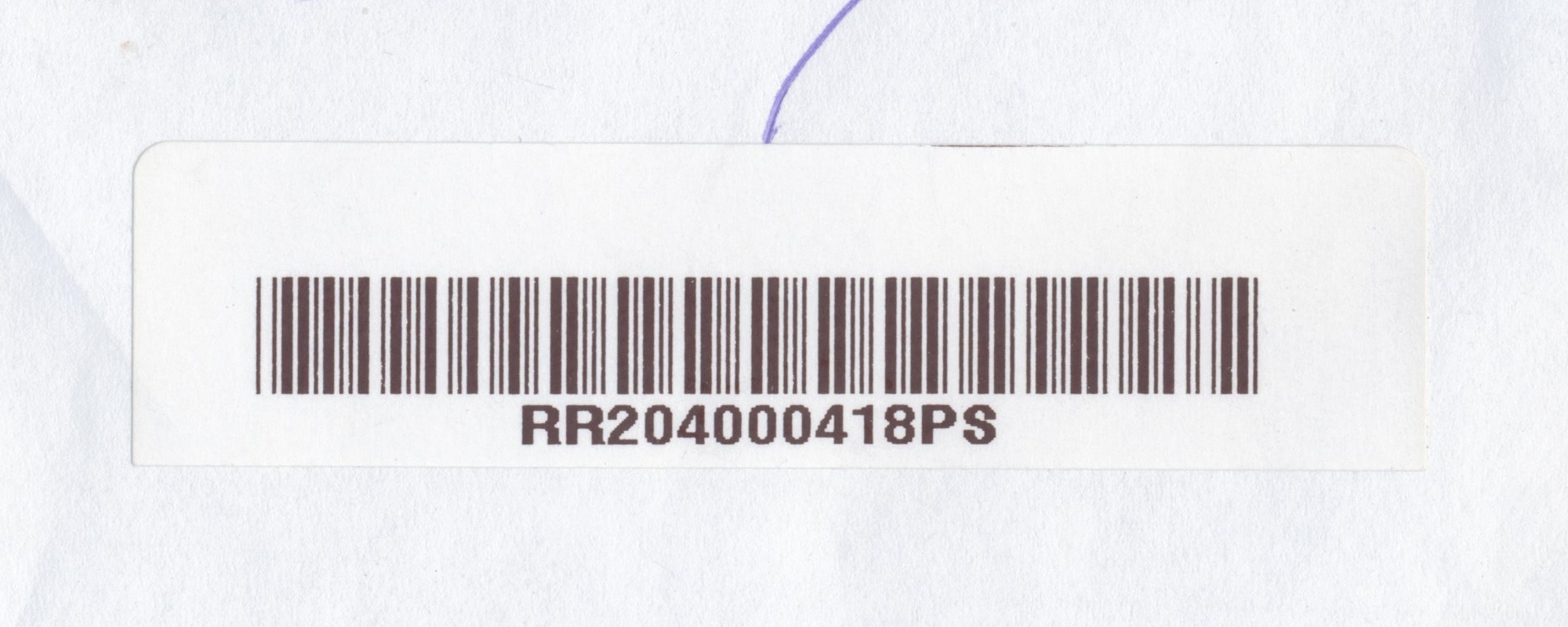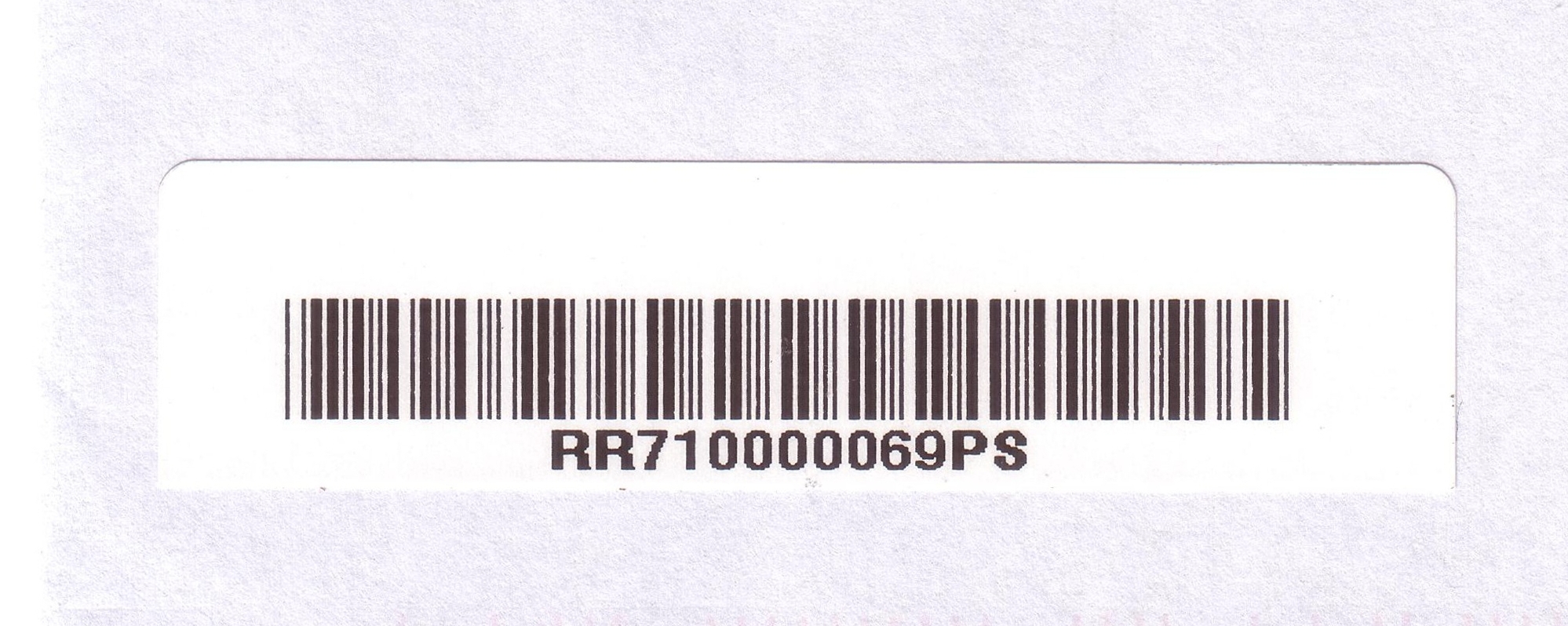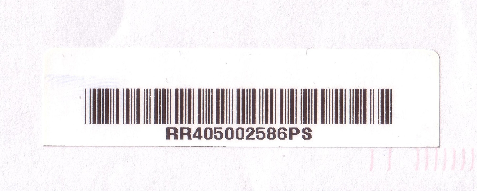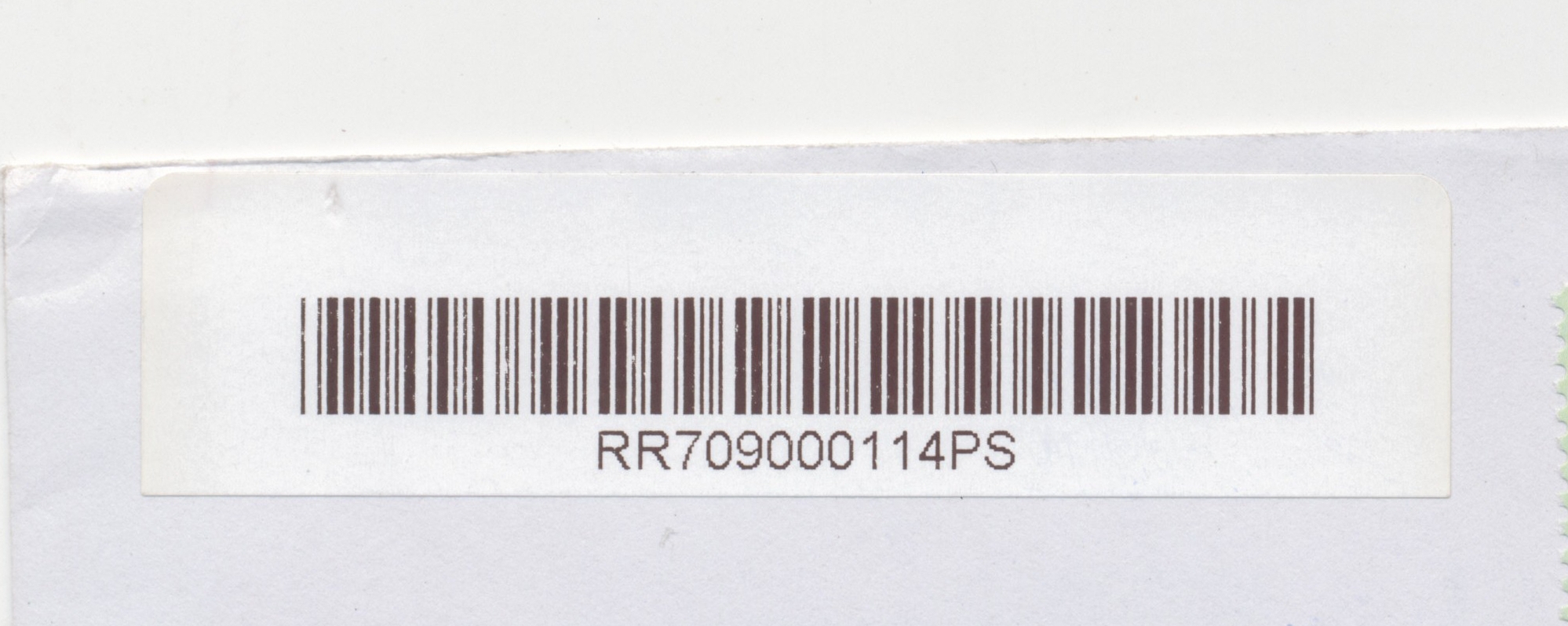 - white self-adhesive labels, printed in black. "IPS Light" linear barcode. With or without "Palestine Post" on top of imprinted numerator (9 digits) with prefixed RR and suffixed PS or ps. Label size varies.