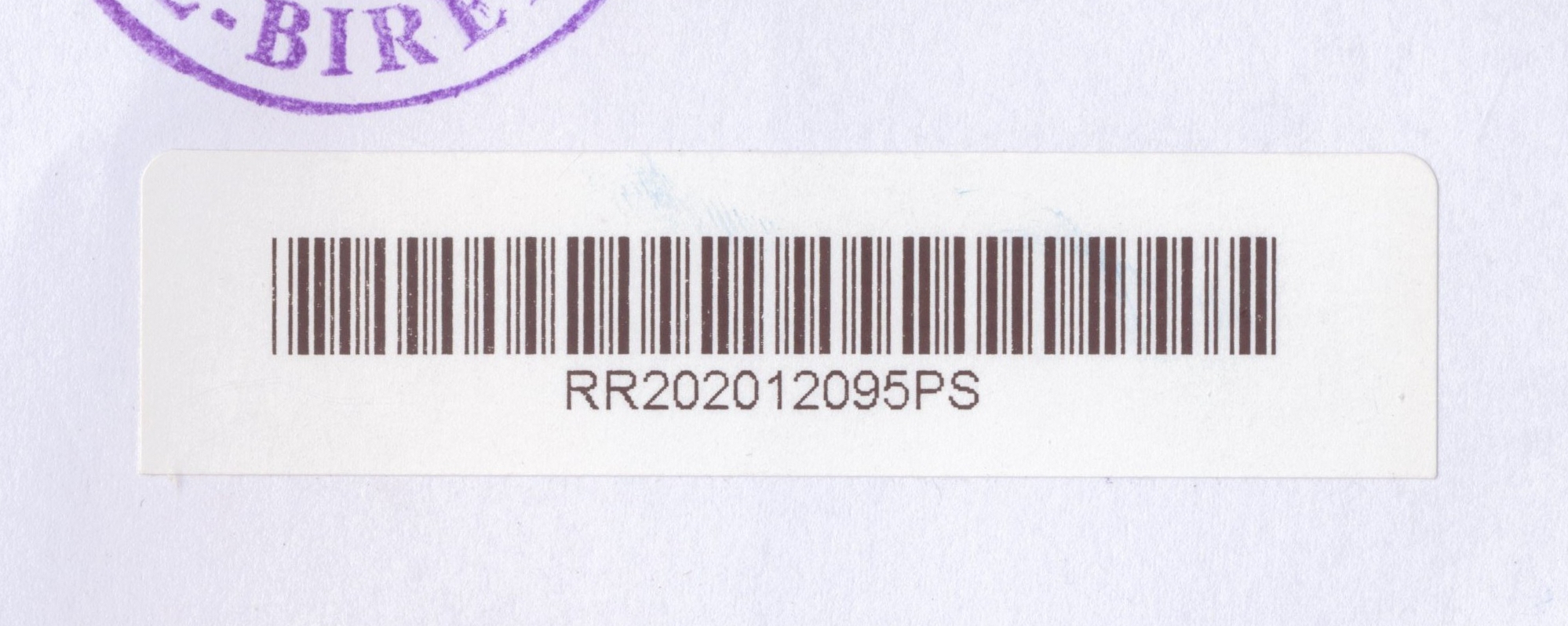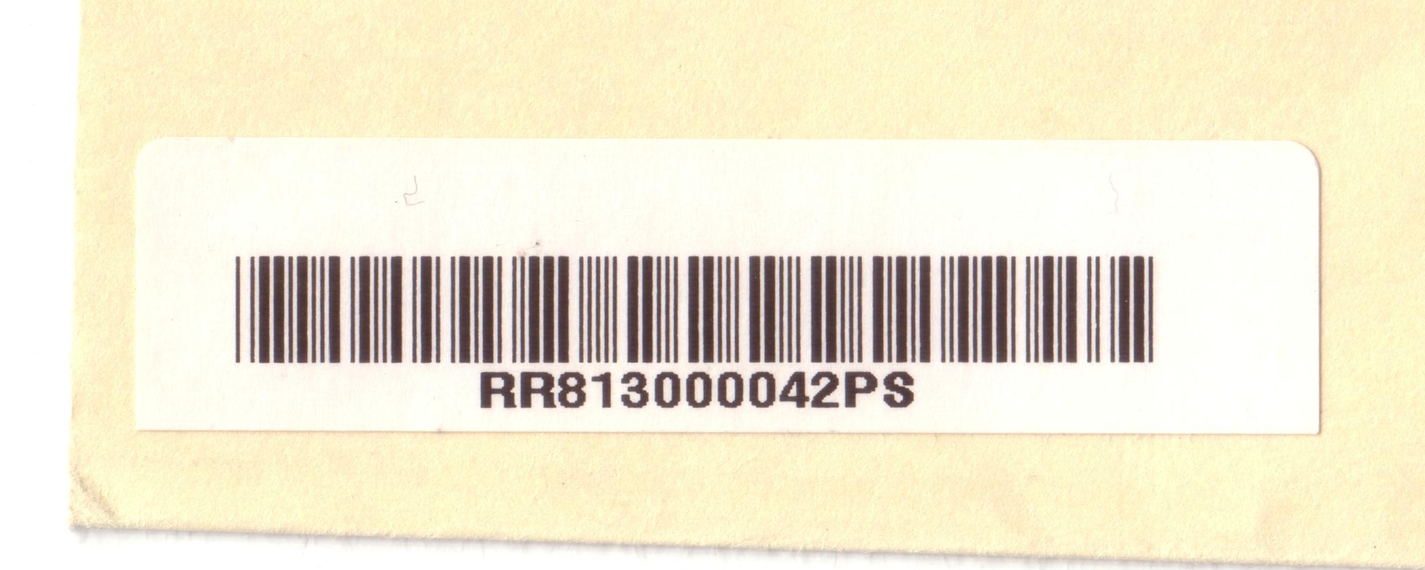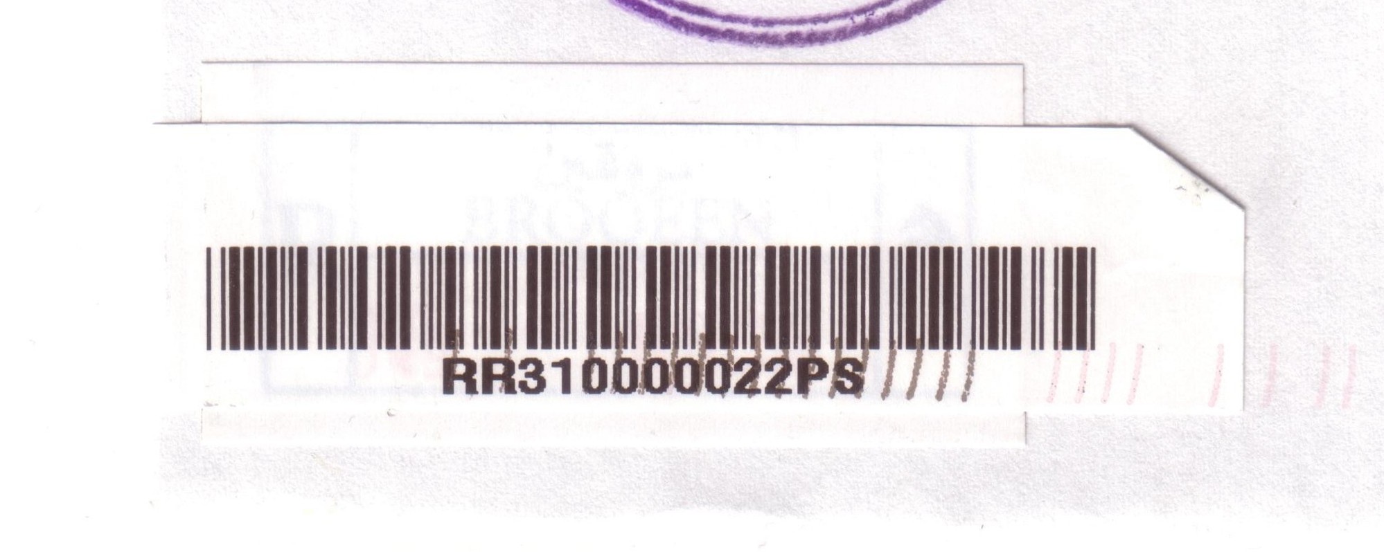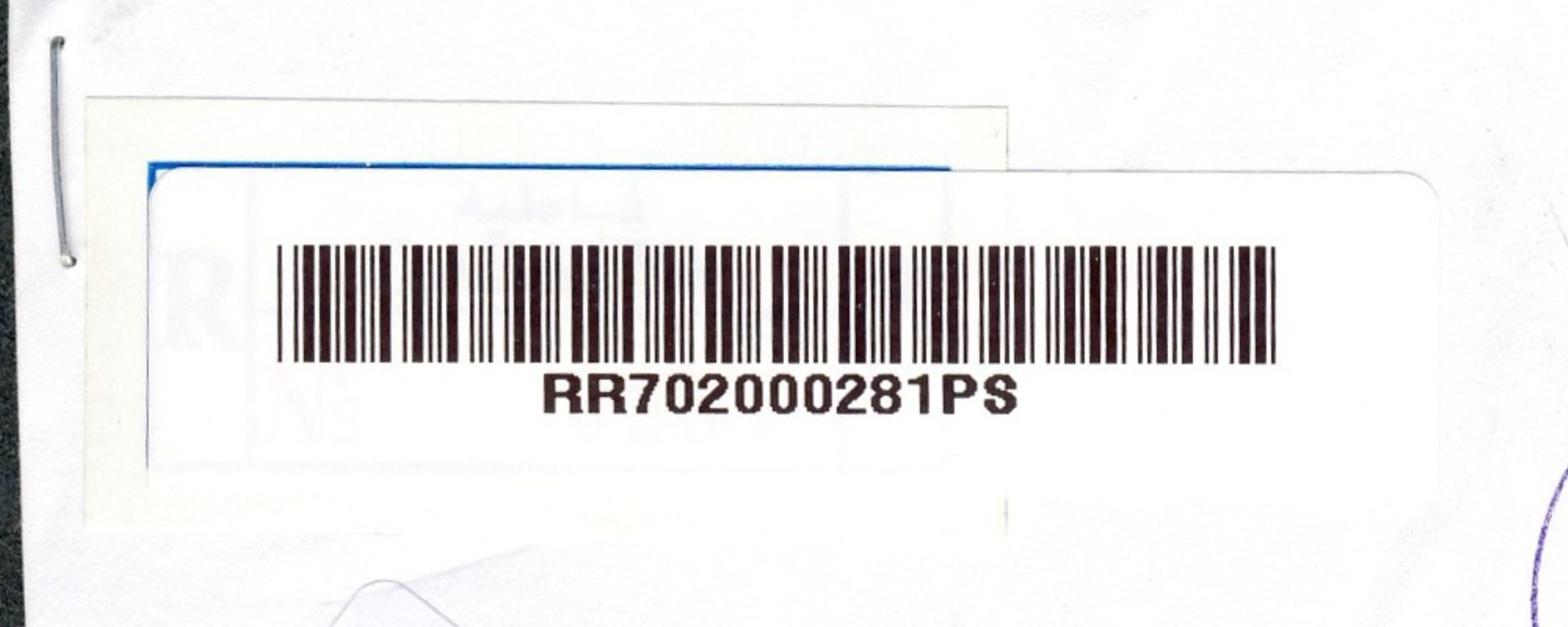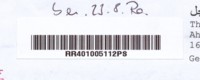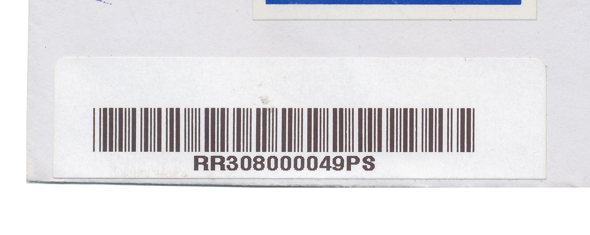 - white self-adhesive labels, printed in black. "IPS Light" linear barcode. With or without "Palestine Post" on top of imprinted numerator (9 digits) with prefixed RR and suffixed PS or ps. Label size varies.