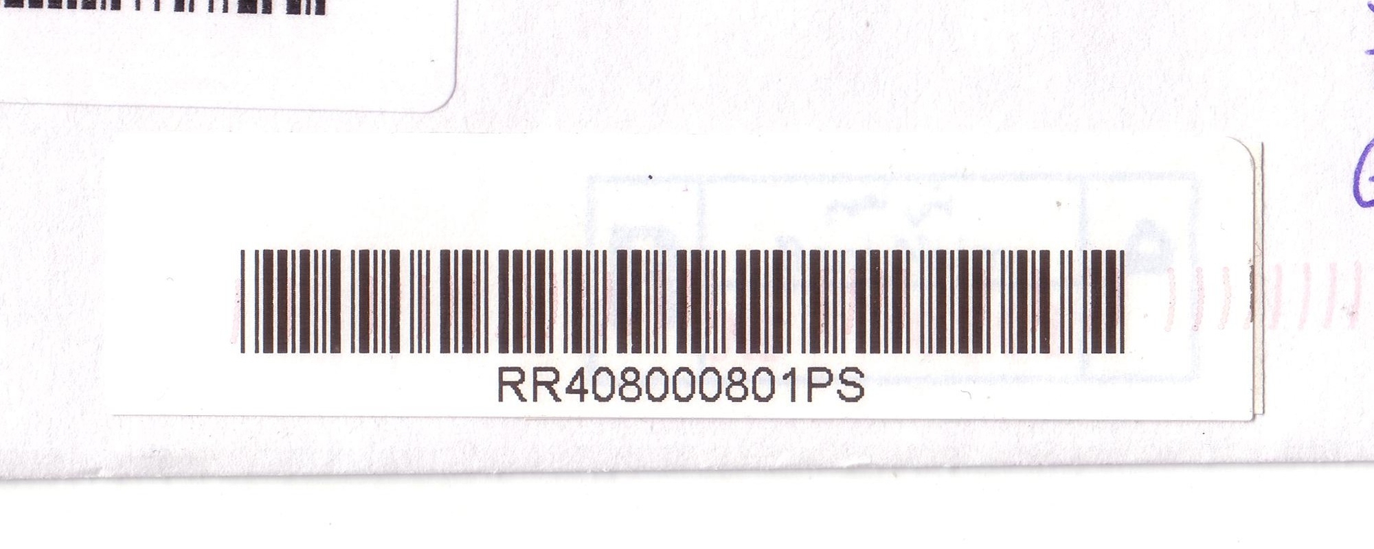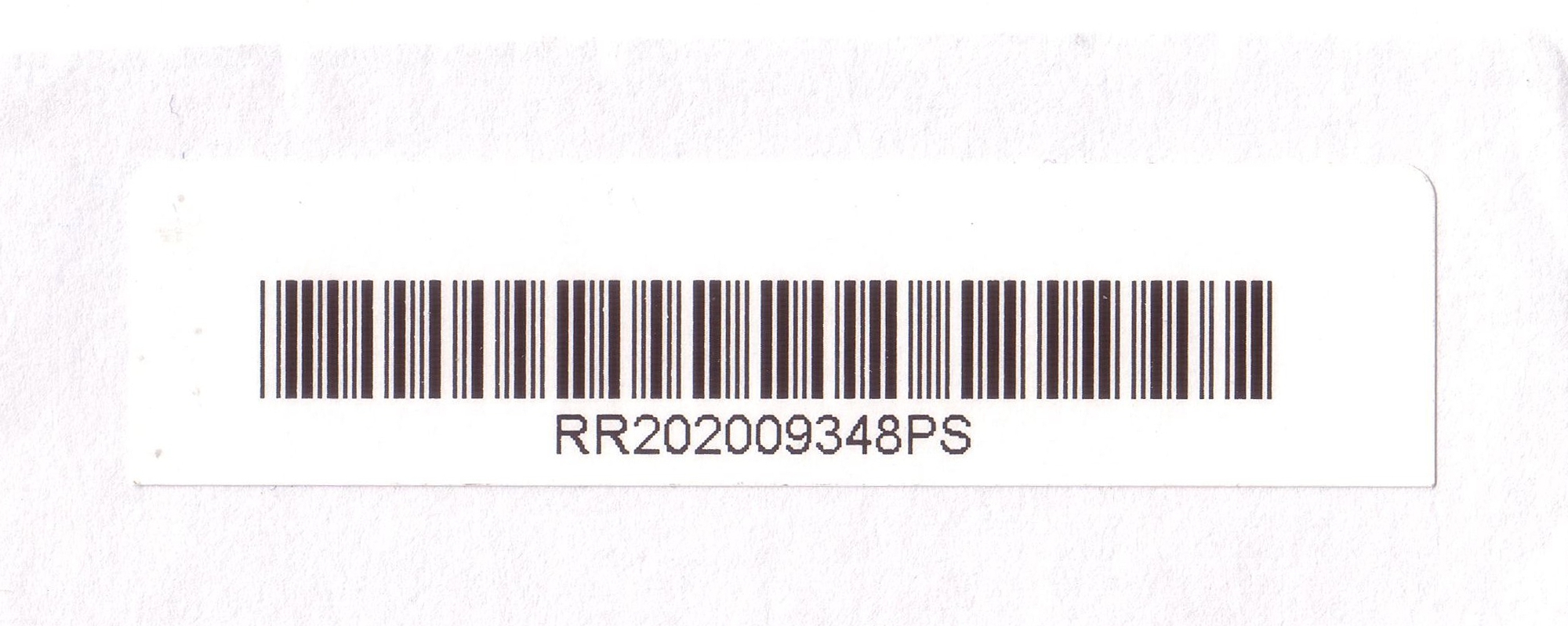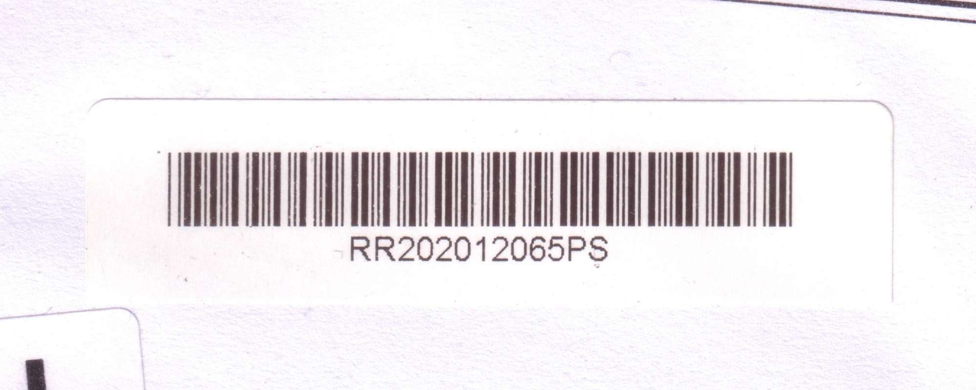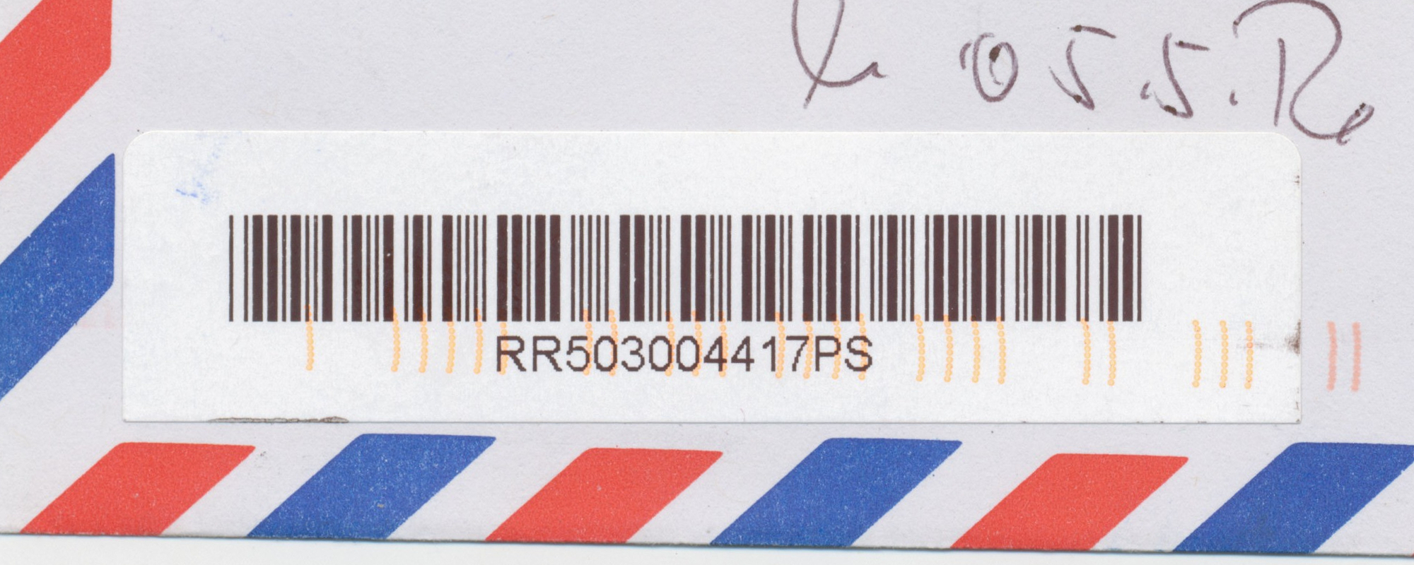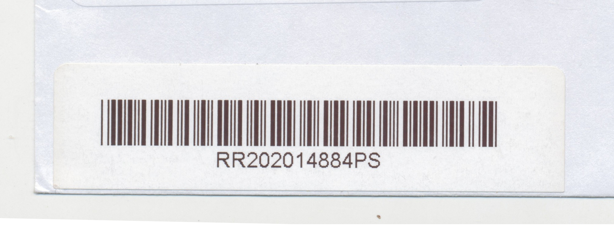 - white self-adhesive labels, printed in black. "IPS Light" linear barcode. With or without "Palestine Post" on top of imprinted numerator (9 digits) with prefixed RR and suffixed PS or ps. Label size varies.