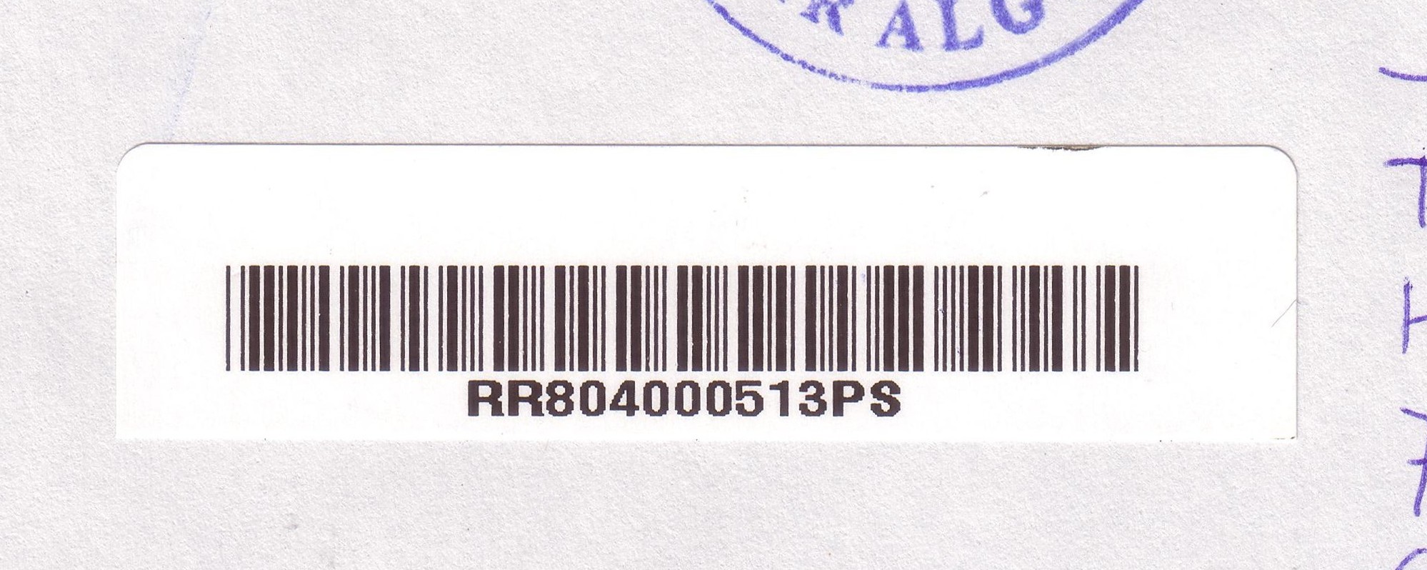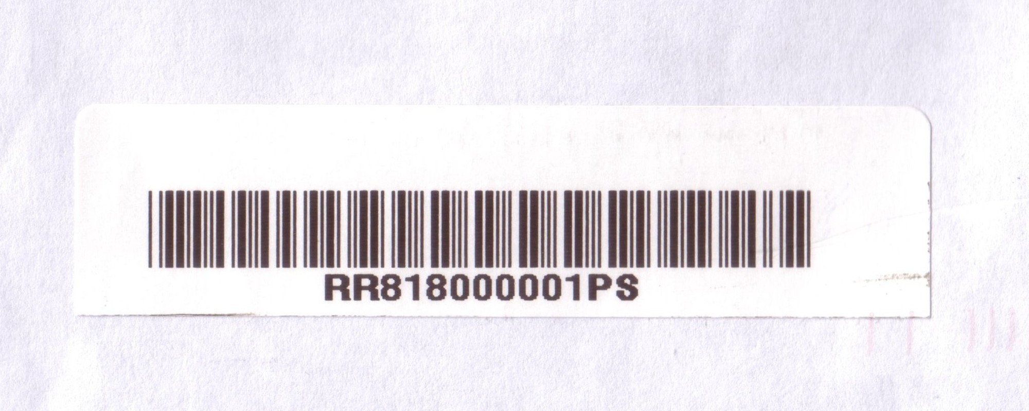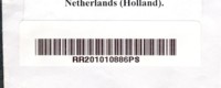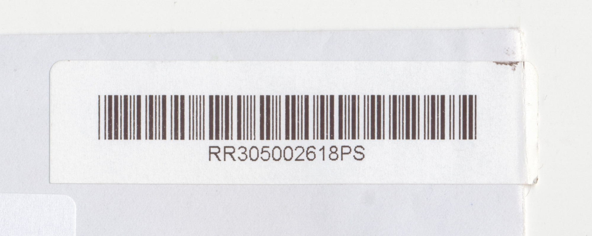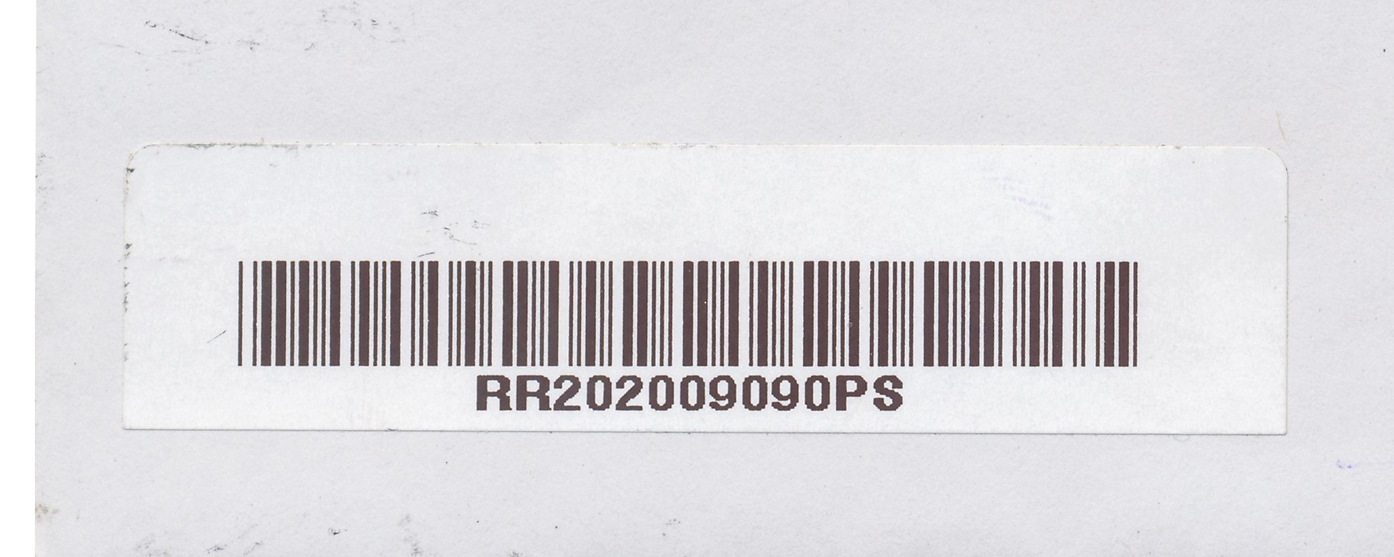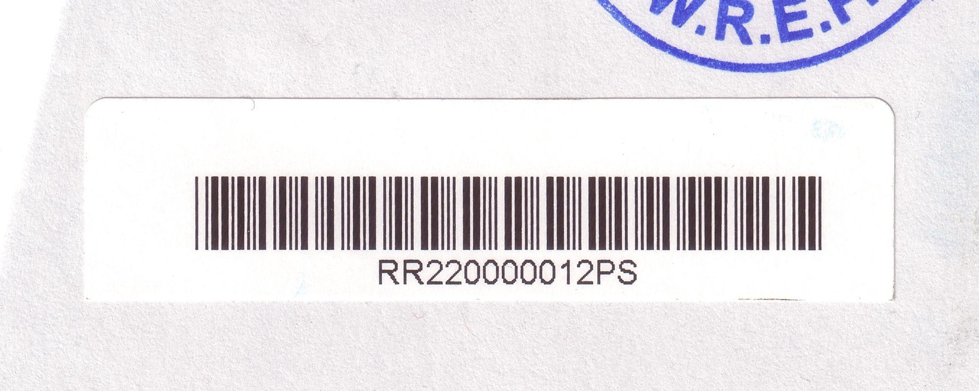 - white self-adhesive labels, printed in black. "IPS Light" linear barcode. With or without "Palestine Post" on top of imprinted numerator (9 digits) with prefixed RR and suffixed PS or ps. Label size varies.
