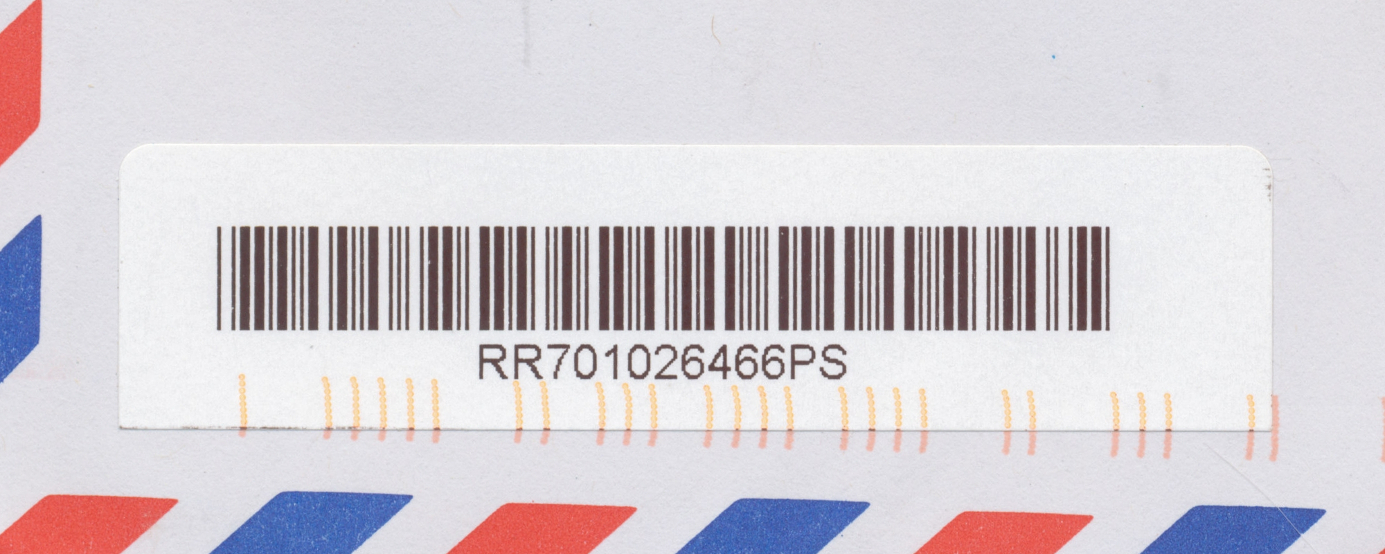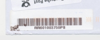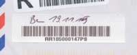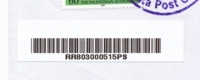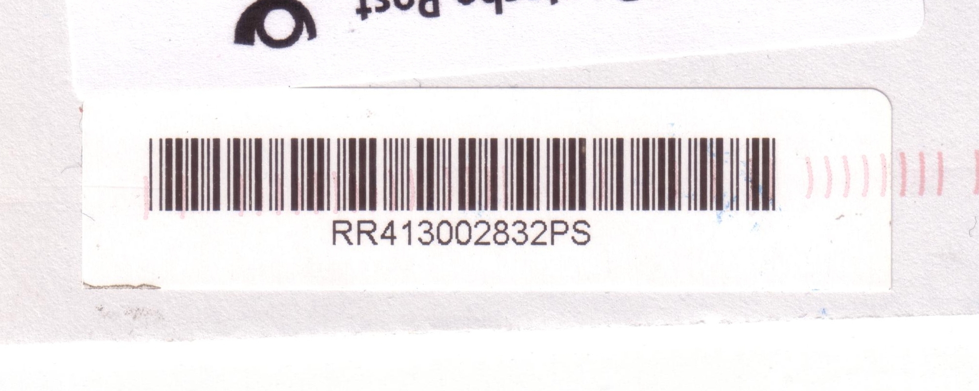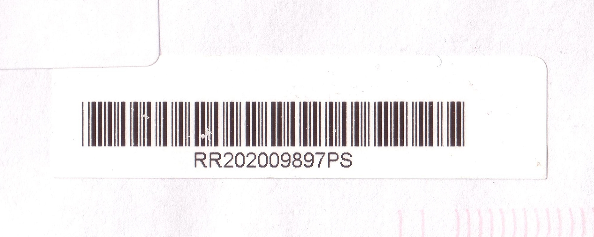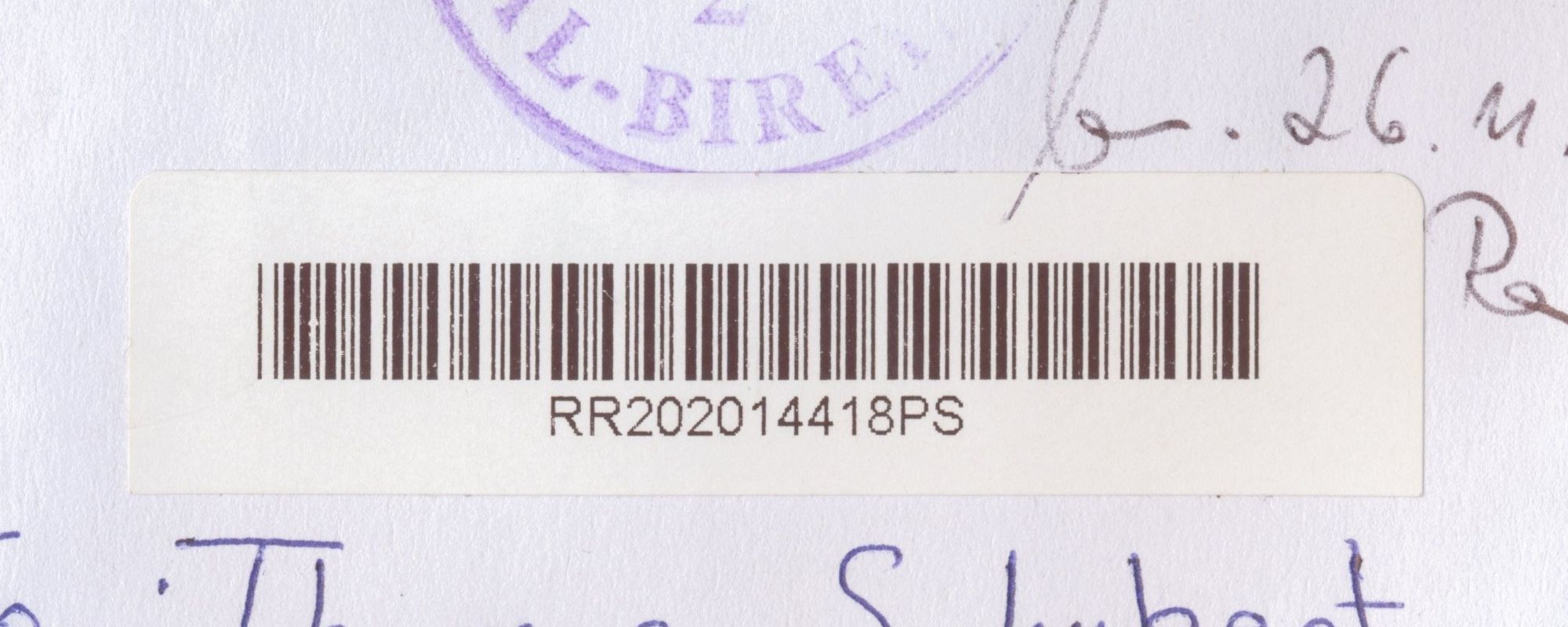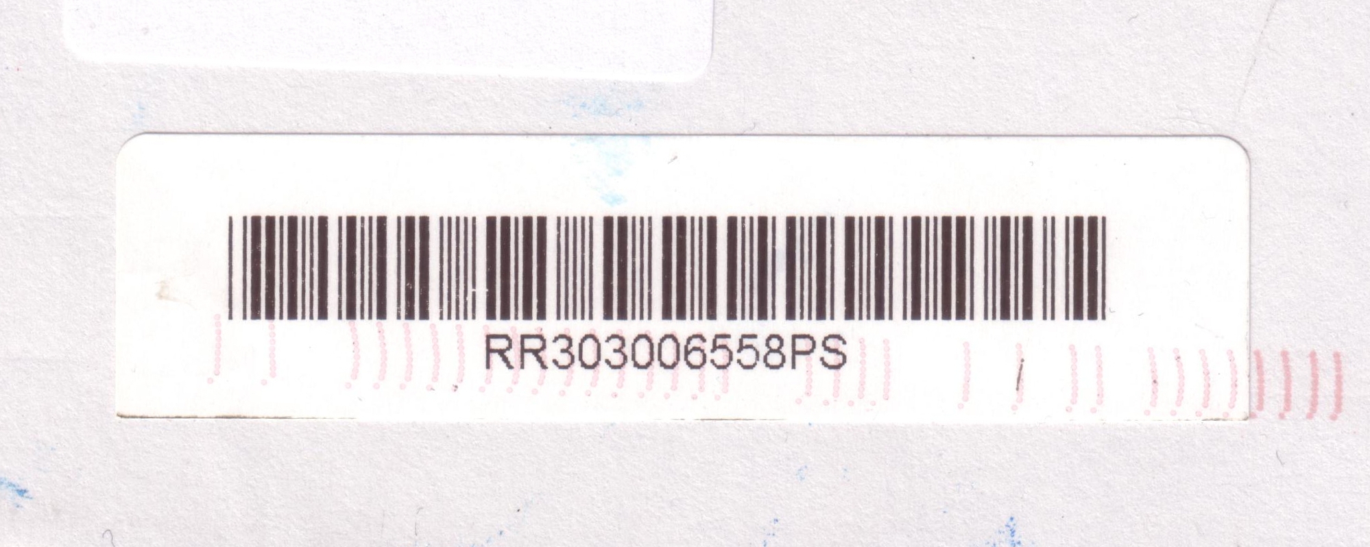 - white self-adhesive labels, printed in black. "IPS Light" linear barcode. With or without "Palestine Post" on top of imprinted numerator (9 digits) with prefixed RR and suffixed PS or ps. Label size varies.