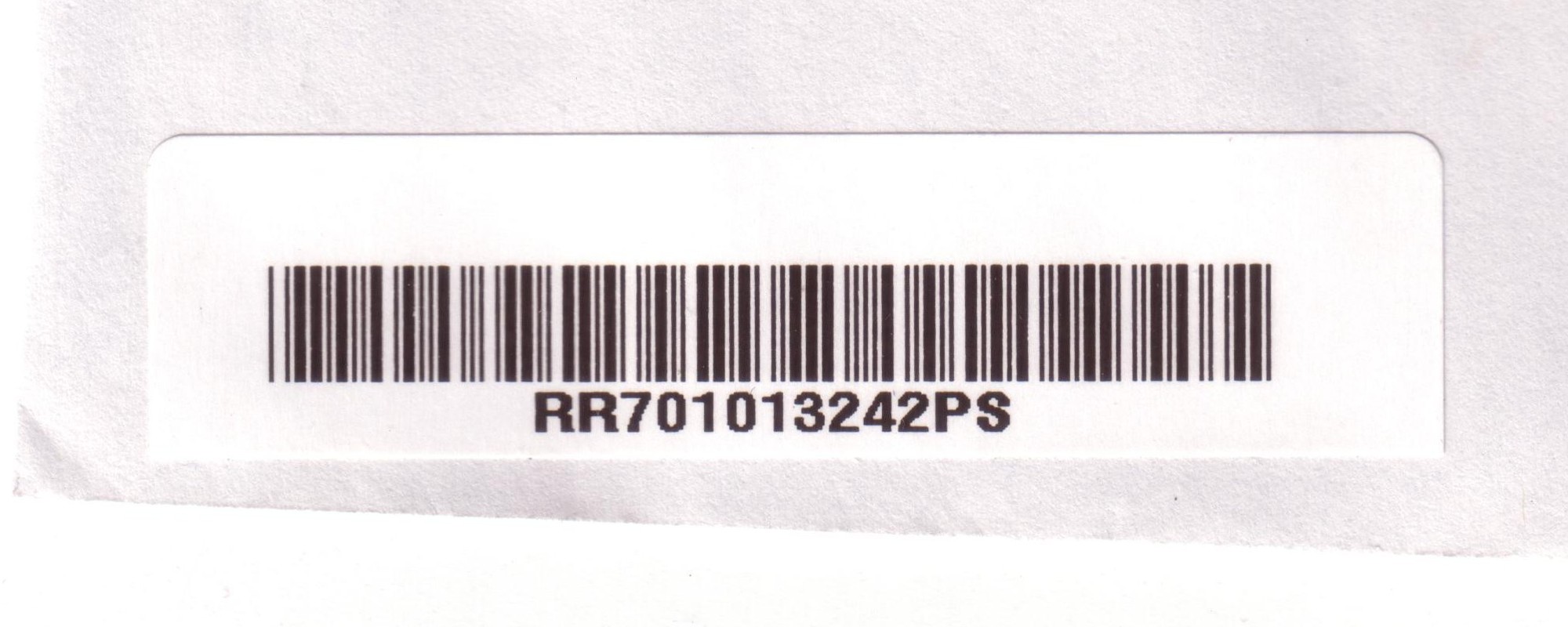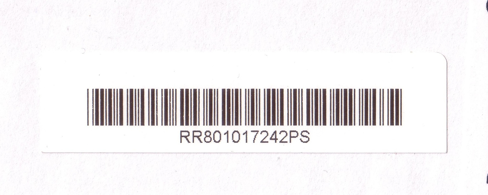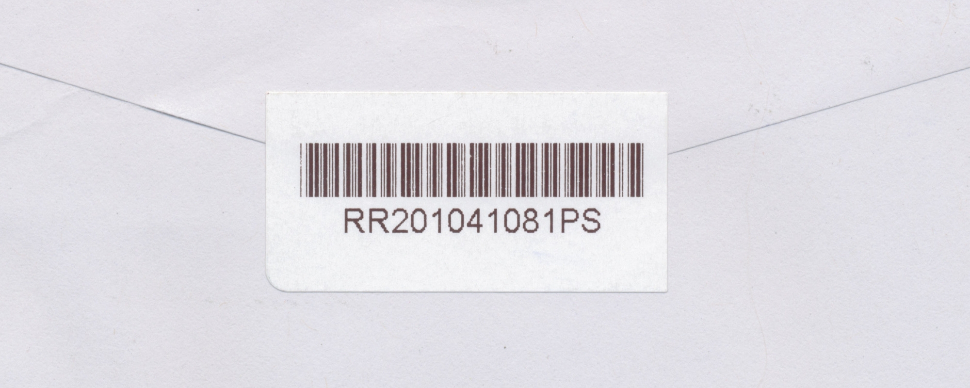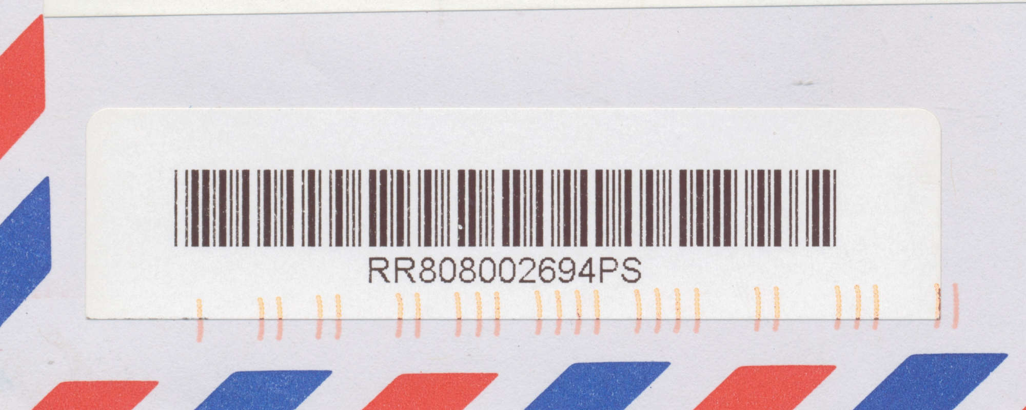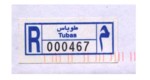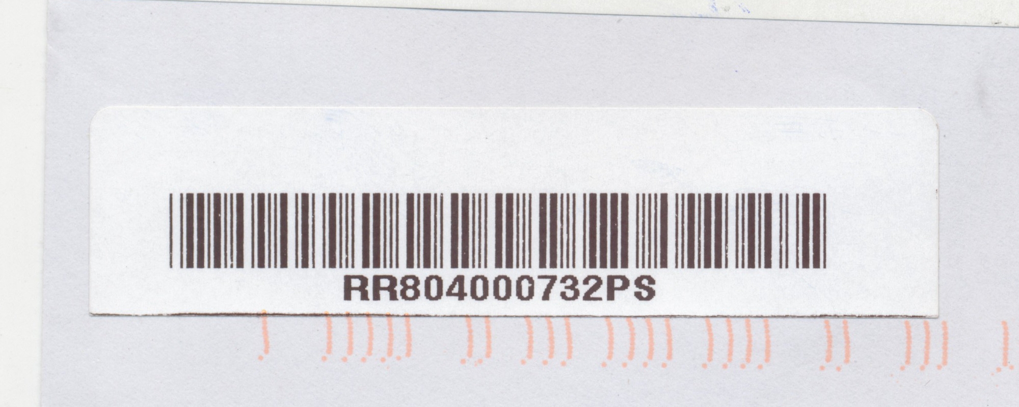 - white self-adhesive labels, printed in black. "IPS Light" linear barcode. With or without "Palestine Post" on top of imprinted numerator (9 digits) with prefixed RR and suffixed PS or ps. Label size varies.