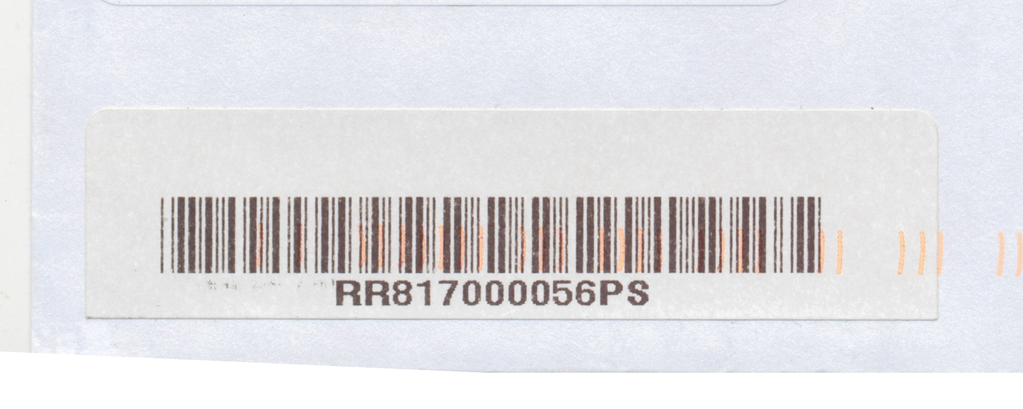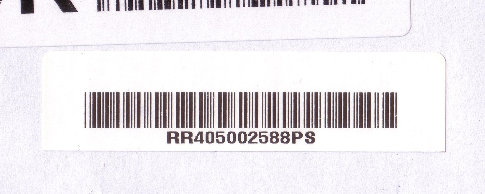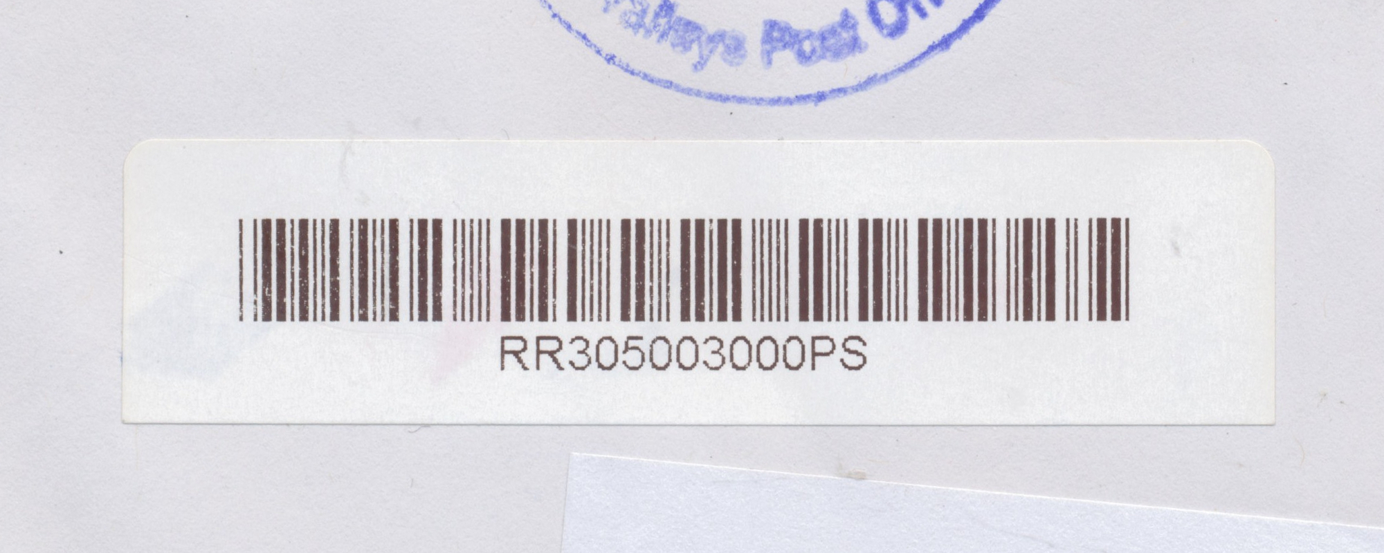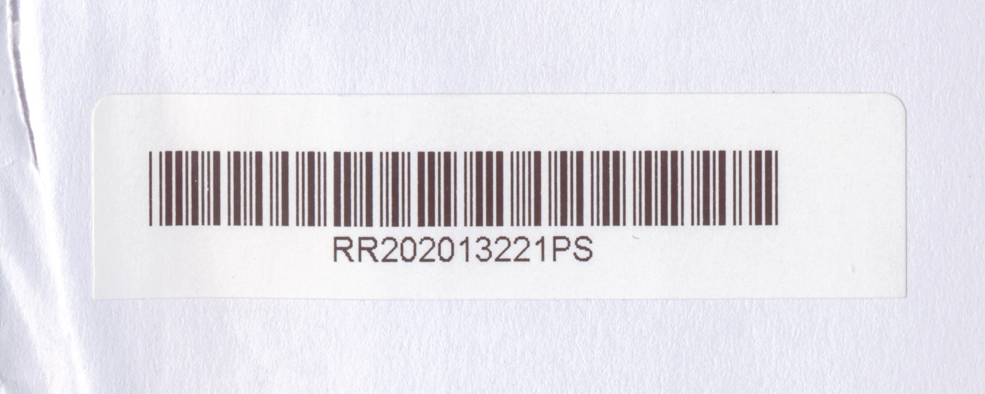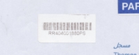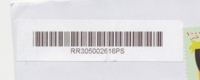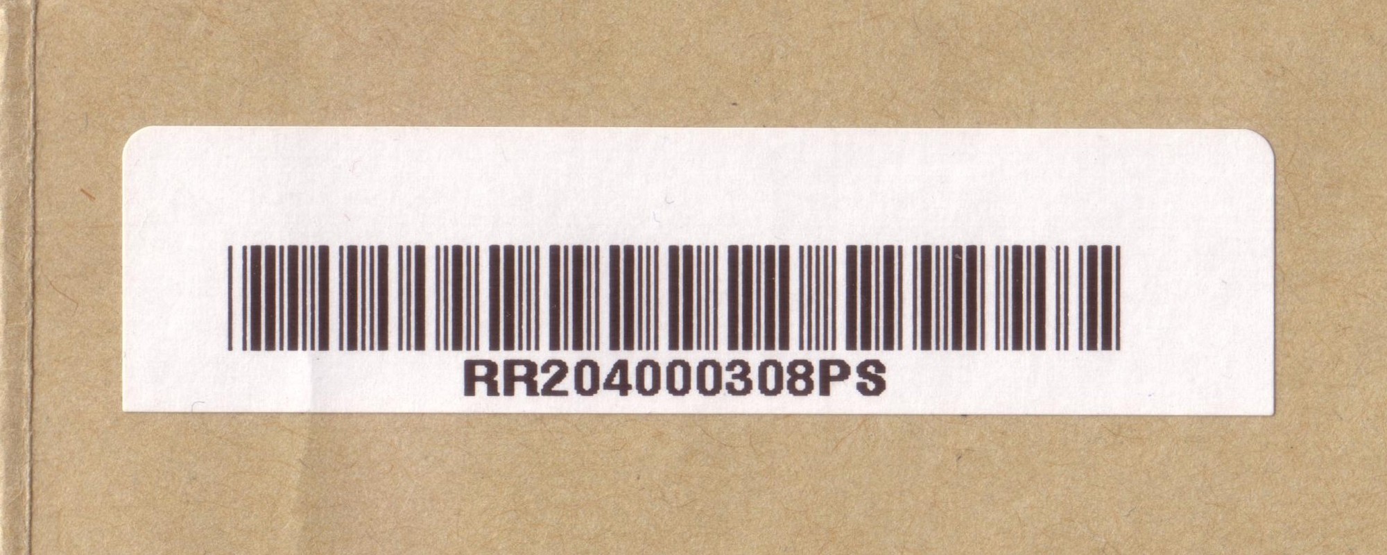 - white self-adhesive labels, printed in black. "IPS Light" linear barcode. With or without "Palestine Post" on top of imprinted numerator (9 digits) with prefixed RR and suffixed PS or ps. Label size varies.