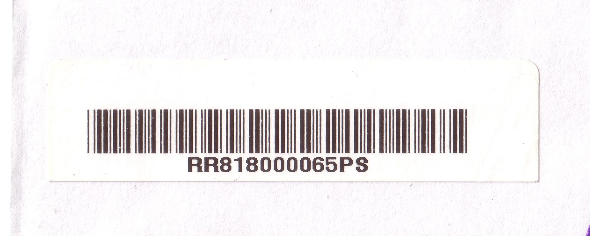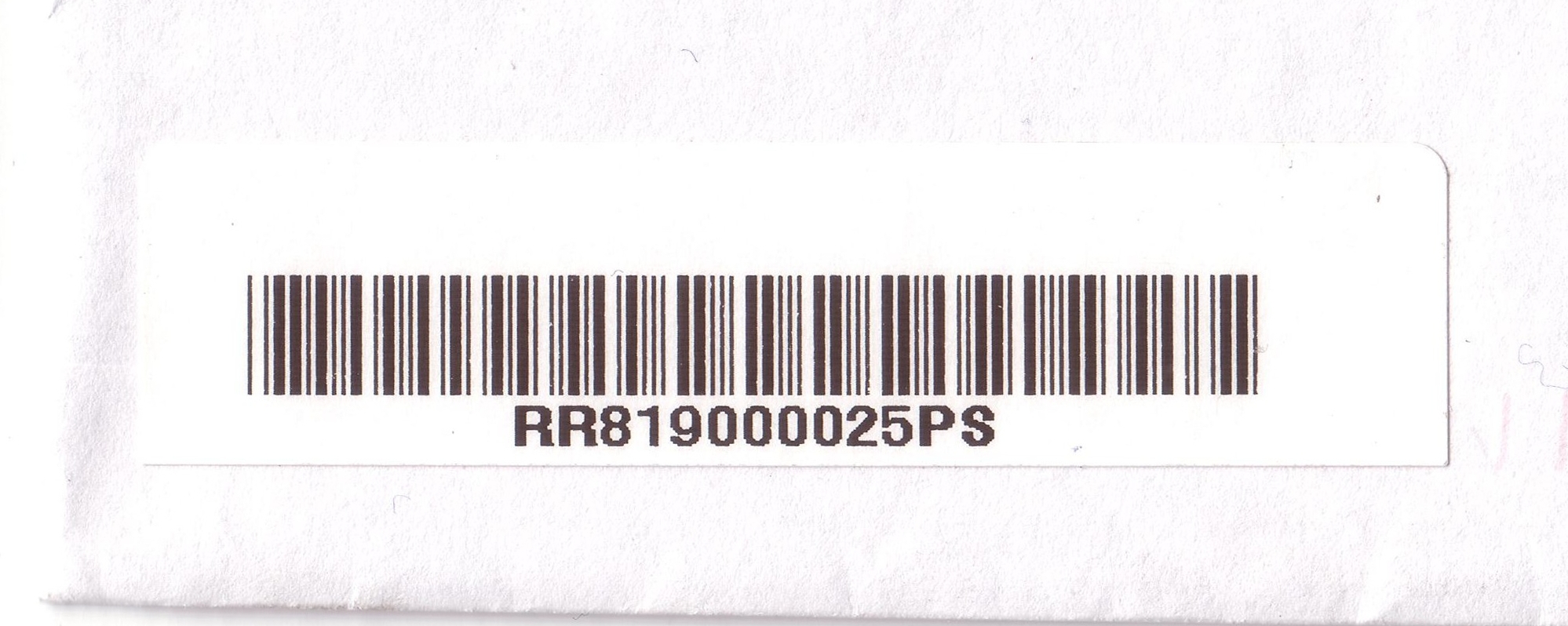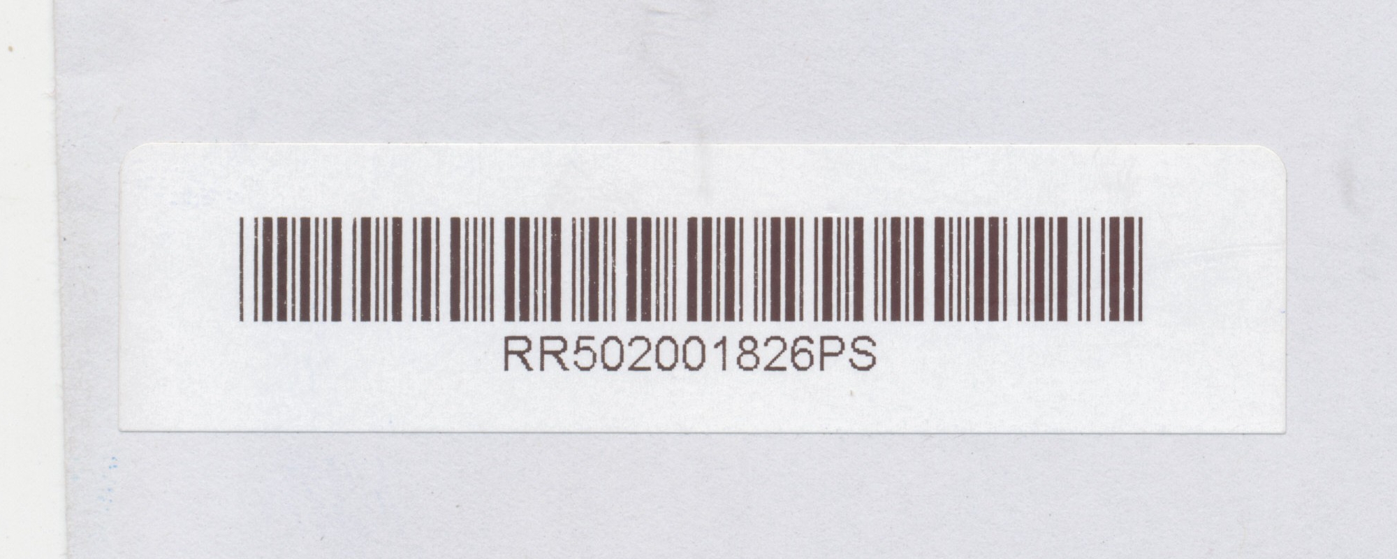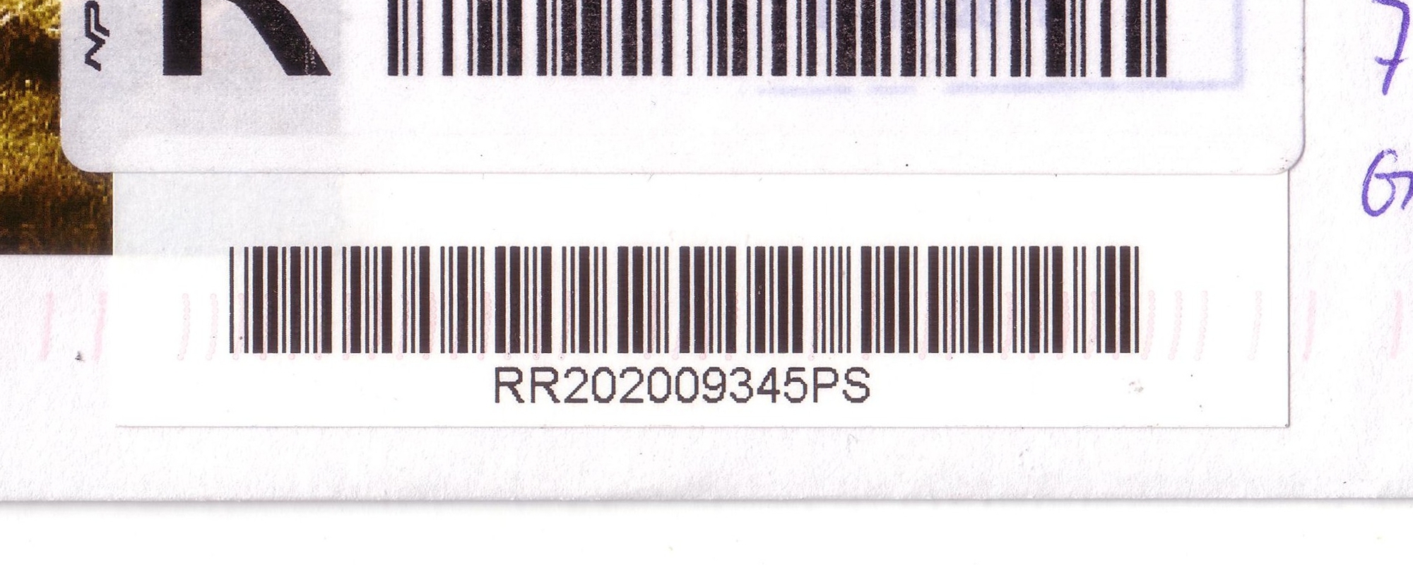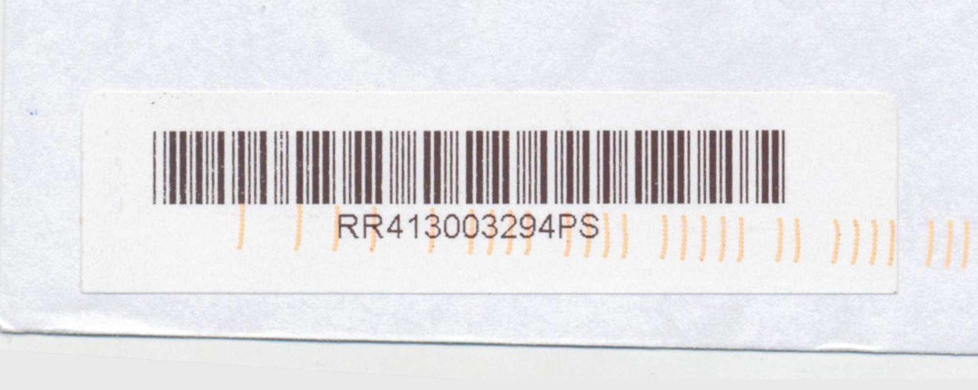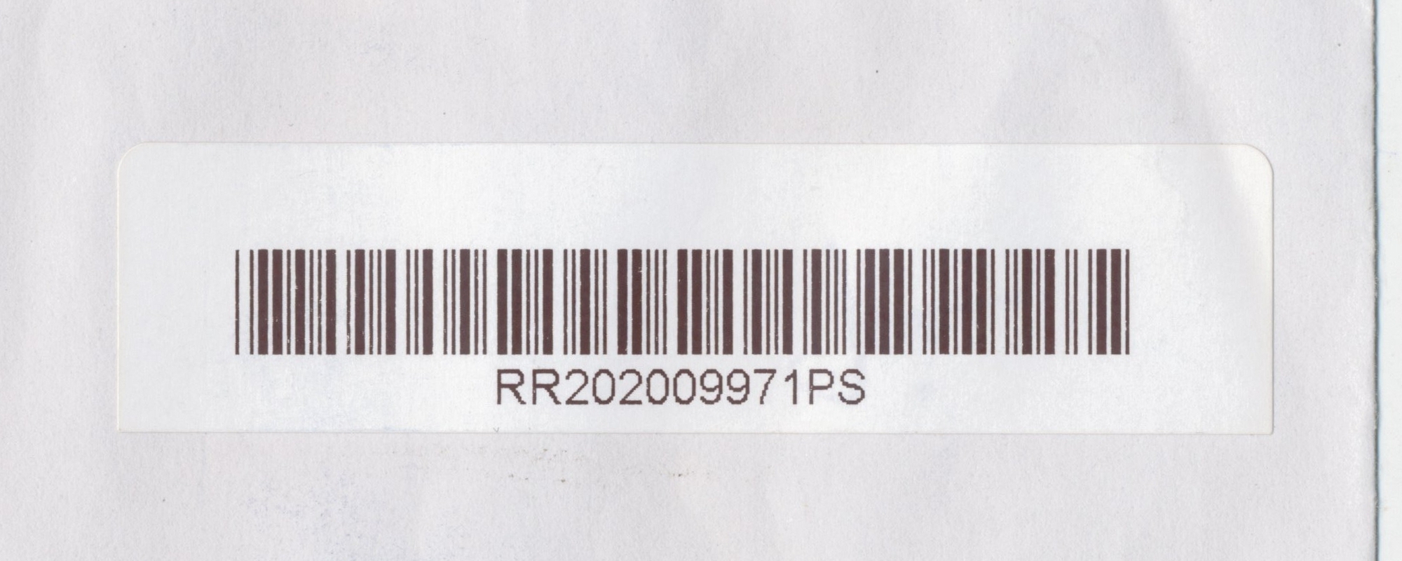 - white self-adhesive labels, printed in black. "IPS Light" linear barcode. With or without "Palestine Post" on top of imprinted numerator (9 digits) with prefixed RR and suffixed PS or ps. Label size varies.