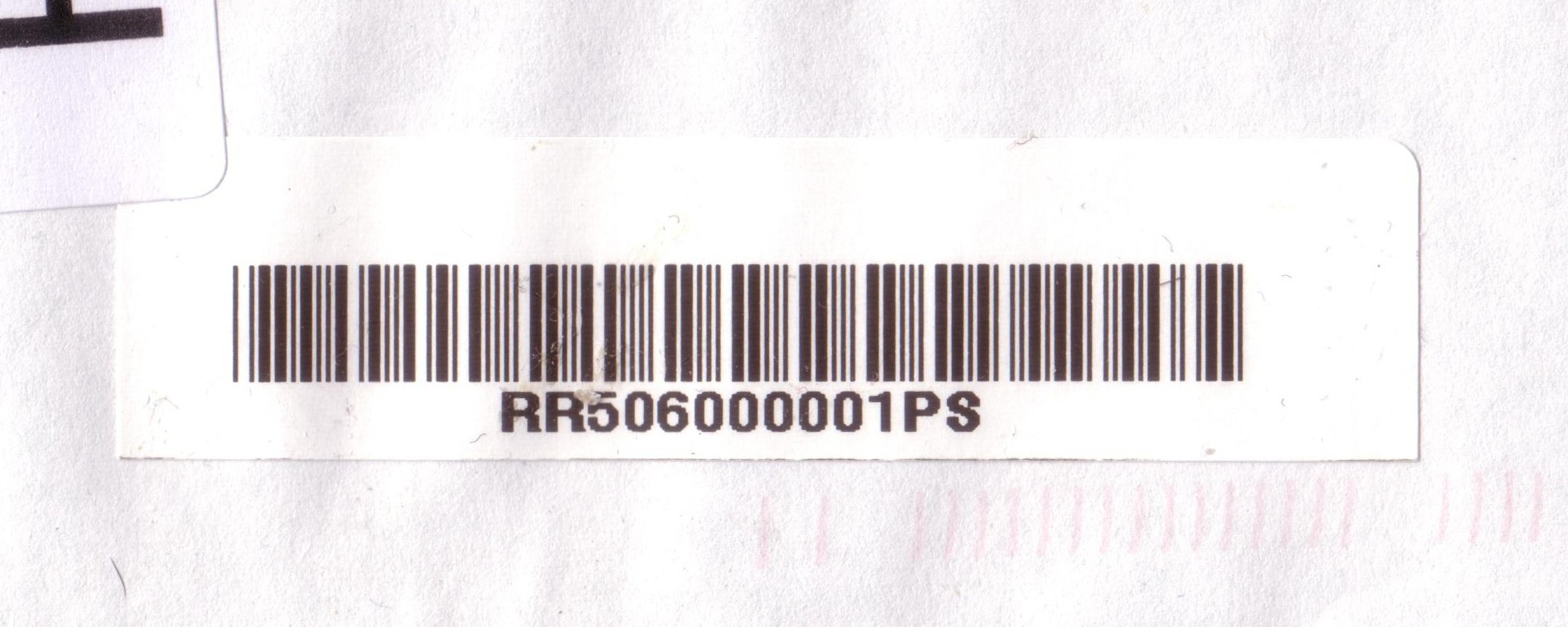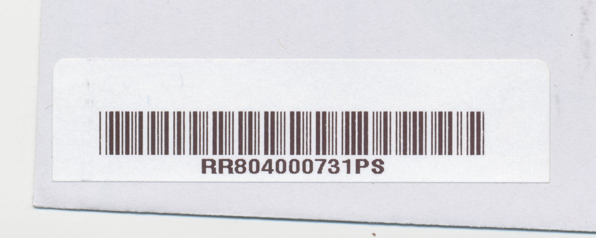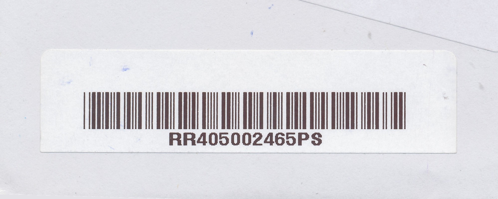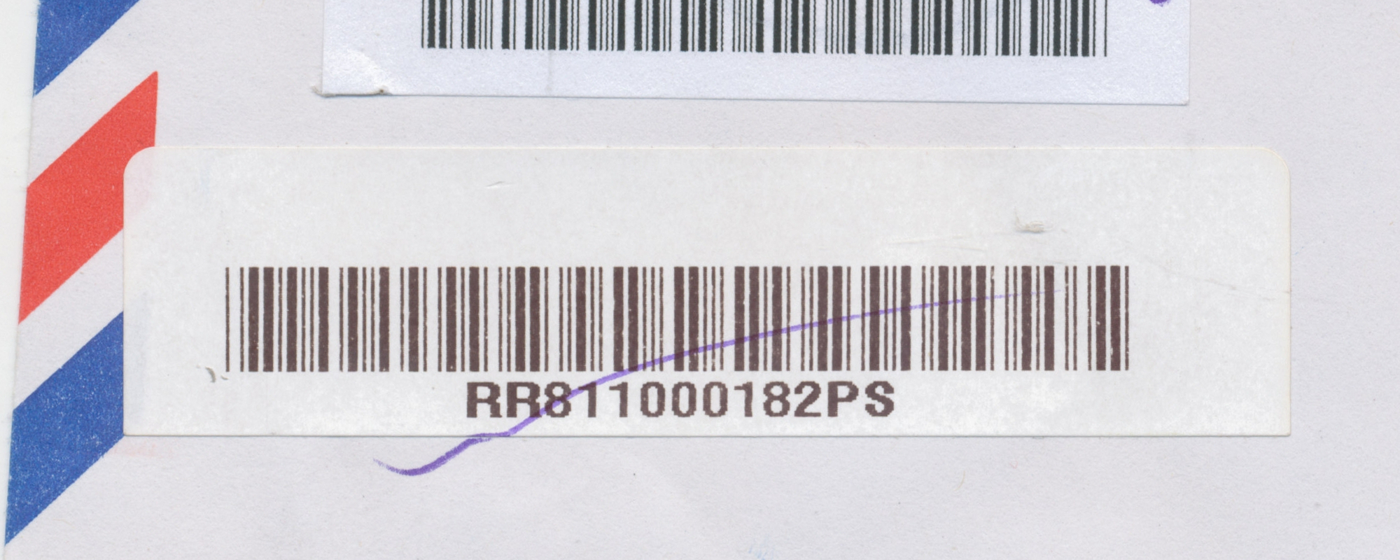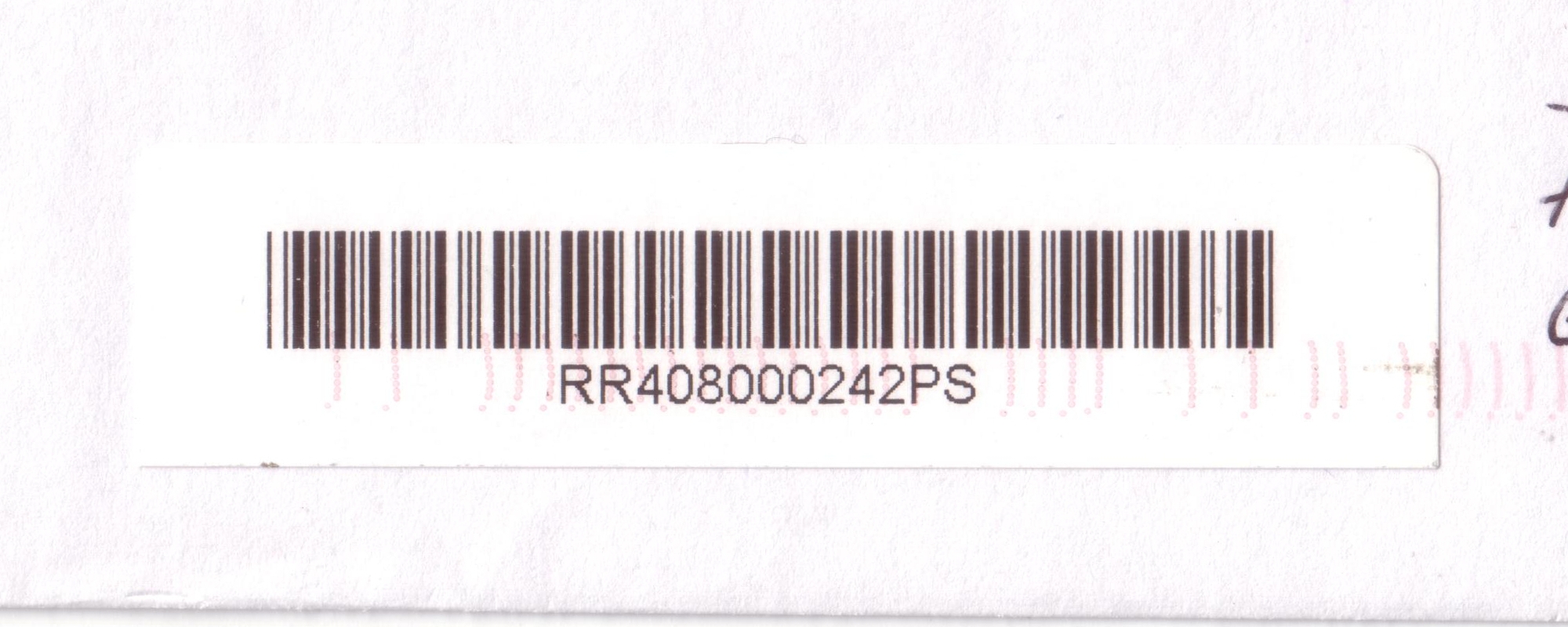 - white self-adhesive labels, printed in black. "IPS Light" linear barcode. With or without "Palestine Post" on top of imprinted numerator (9 digits) with prefixed RR and suffixed PS or ps. Label size varies.