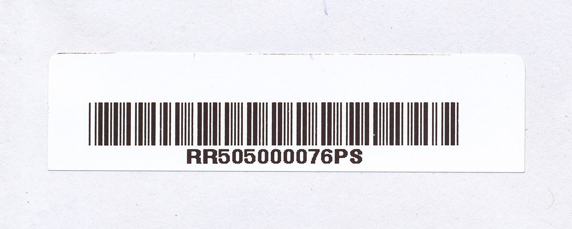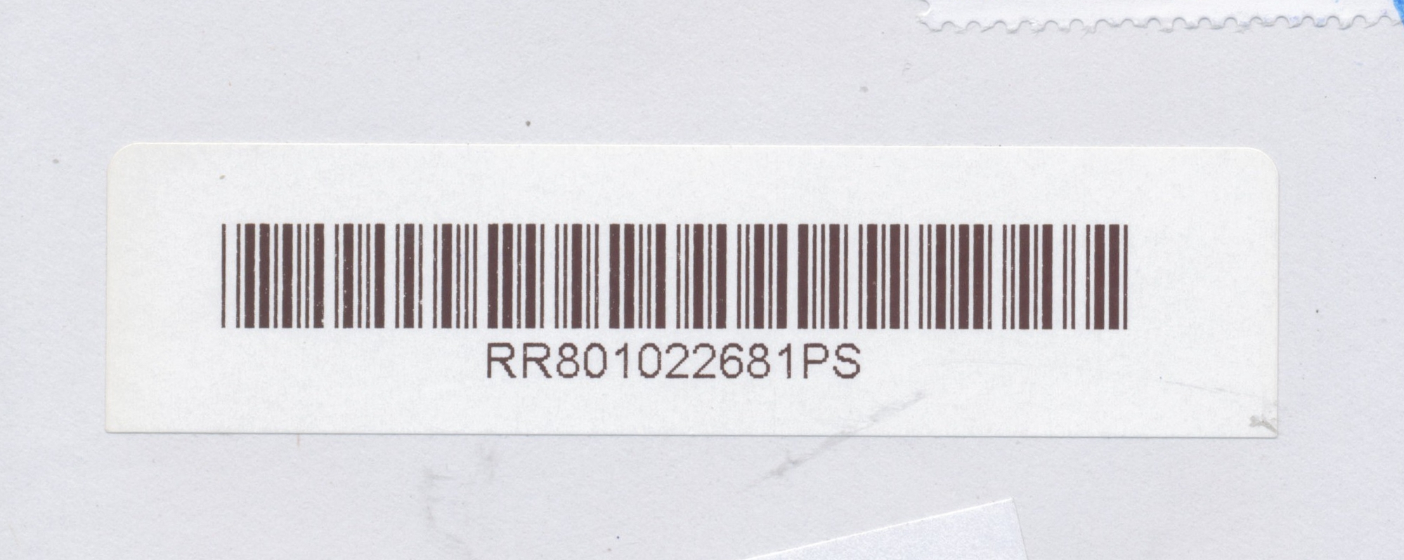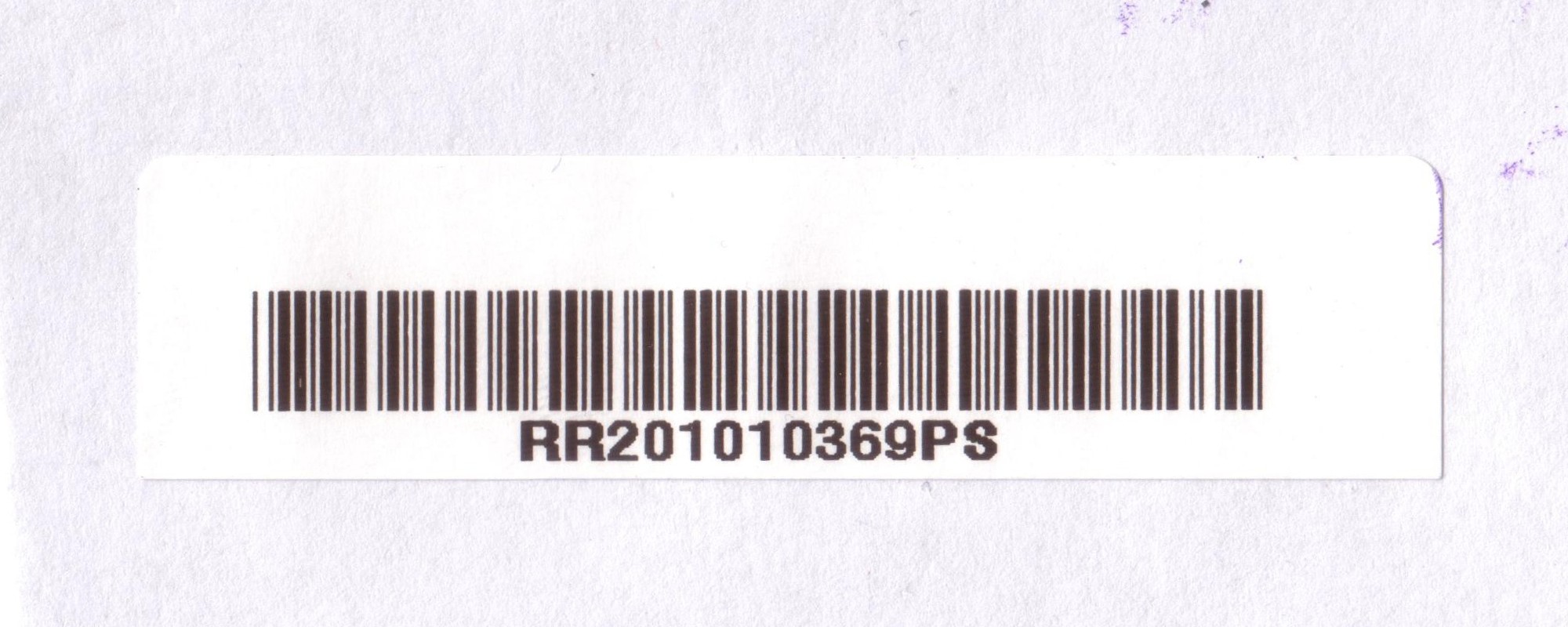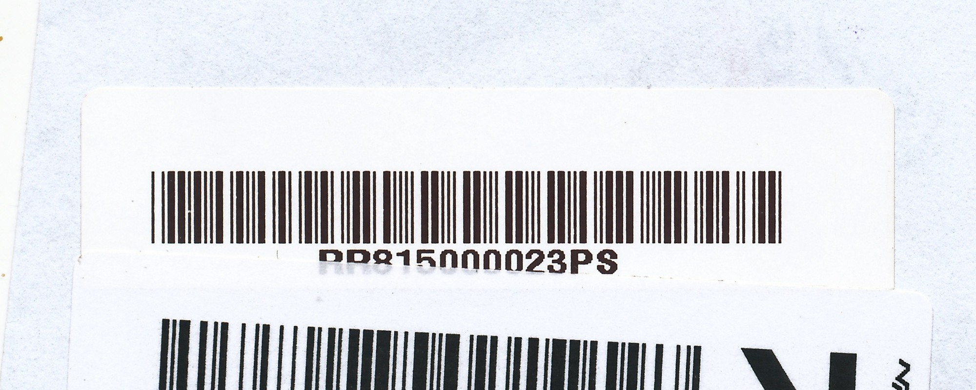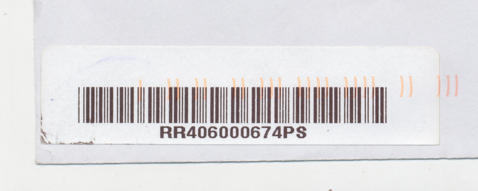 - white self-adhesive labels, printed in black. "IPS Light" linear barcode. With or without "Palestine Post" on top of imprinted numerator (9 digits) with prefixed RR and suffixed PS or ps. Label size varies.