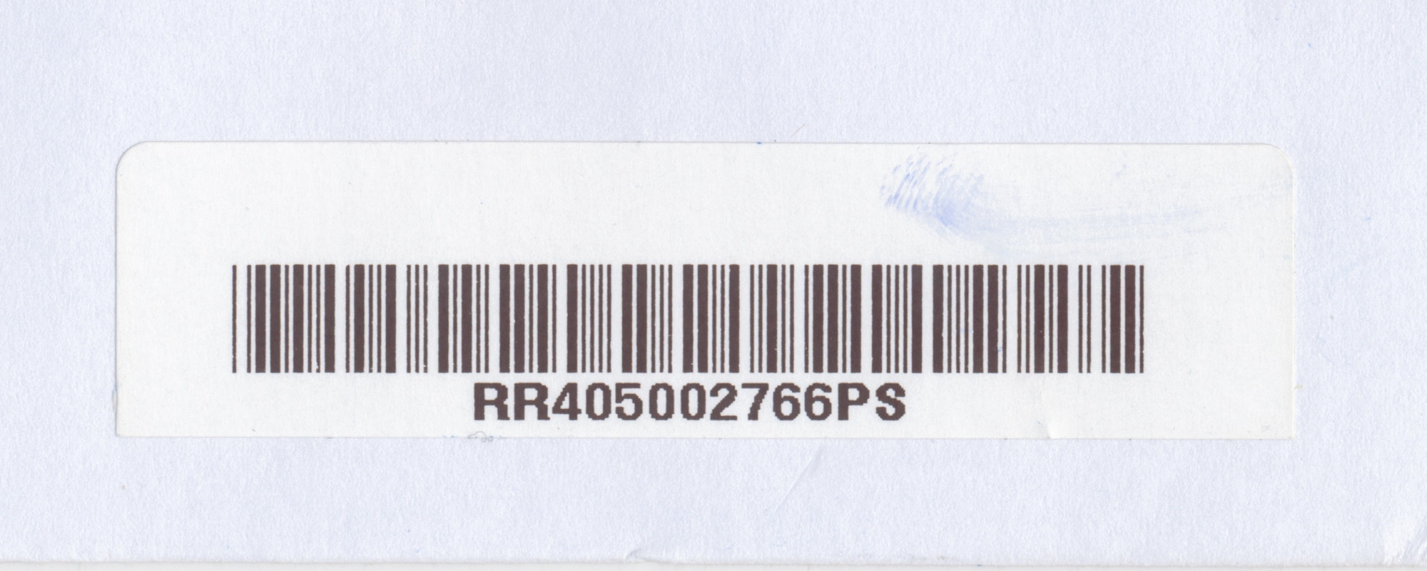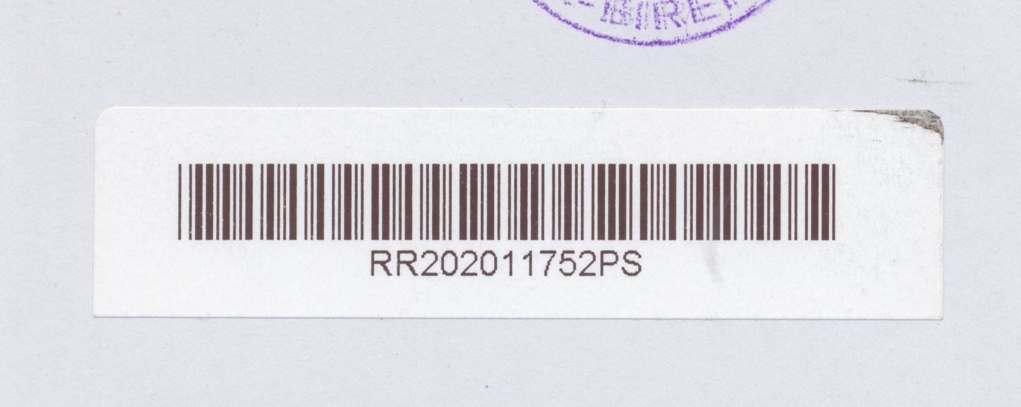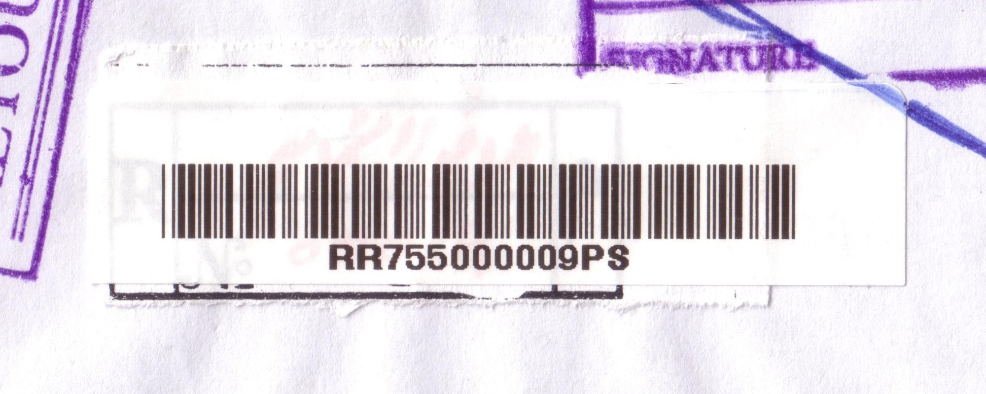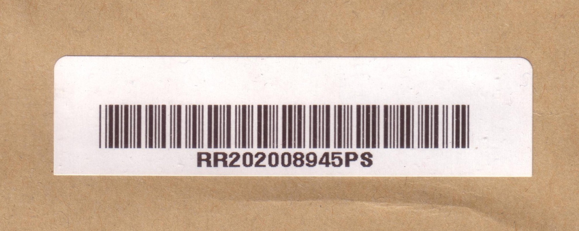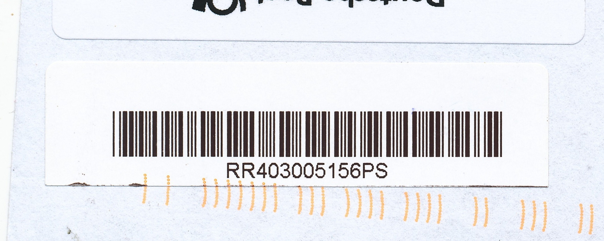 - white self-adhesive labels, printed in black. "IPS Light" linear barcode. With or without "Palestine Post" on top of imprinted numerator (9 digits) with prefixed RR and suffixed PS or ps. Label size varies.