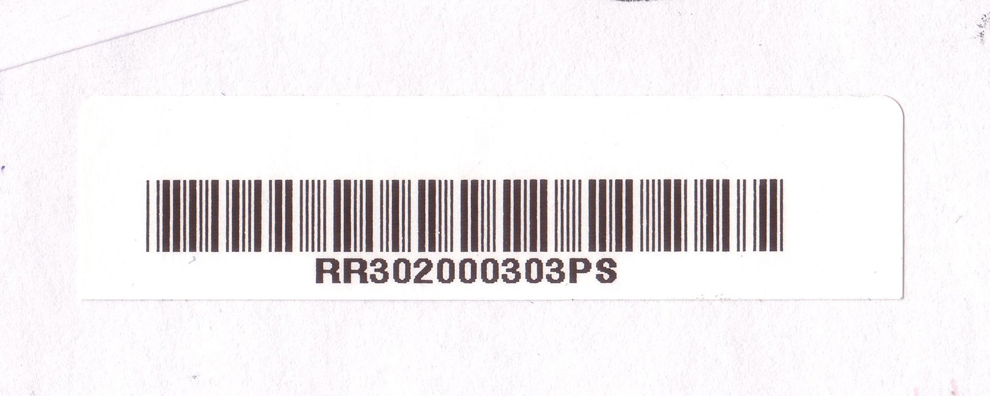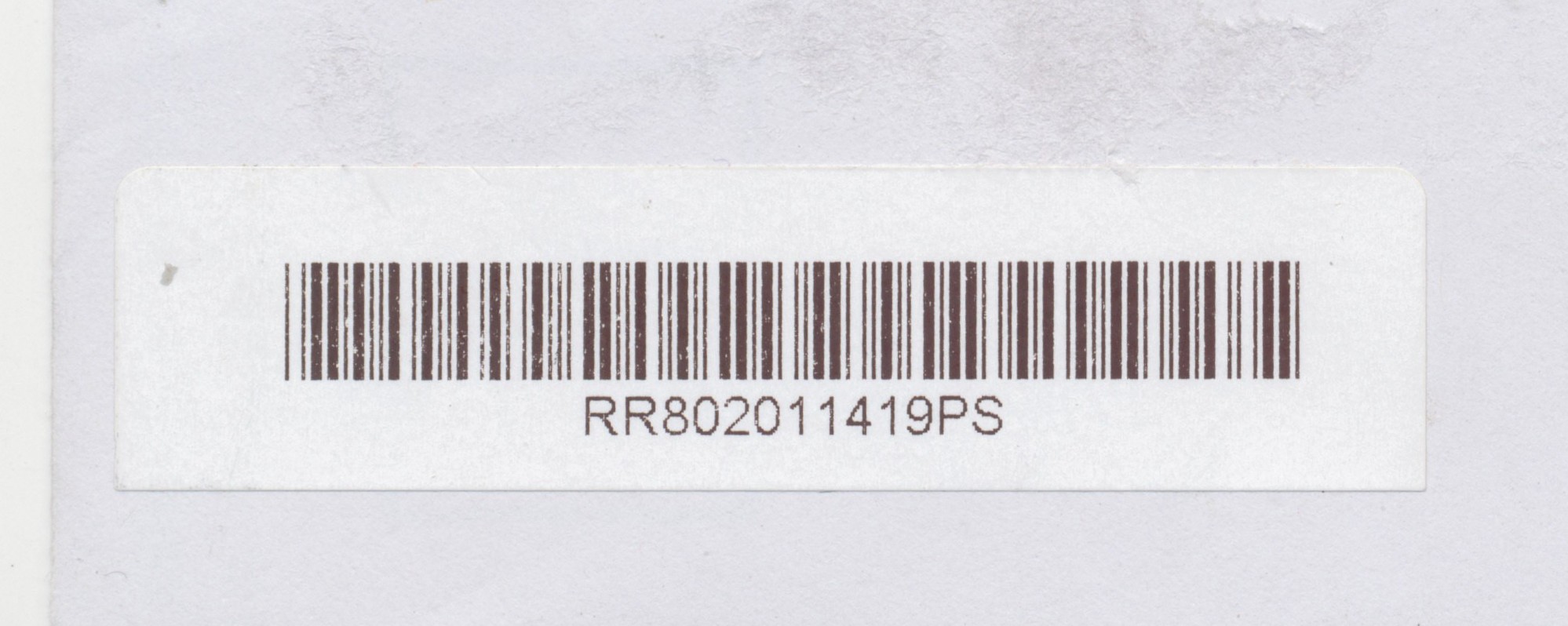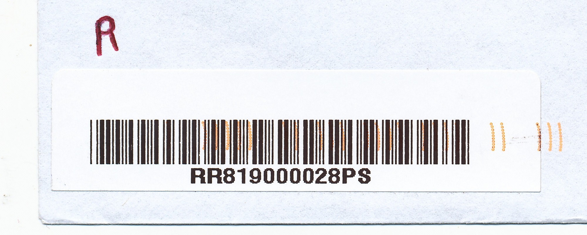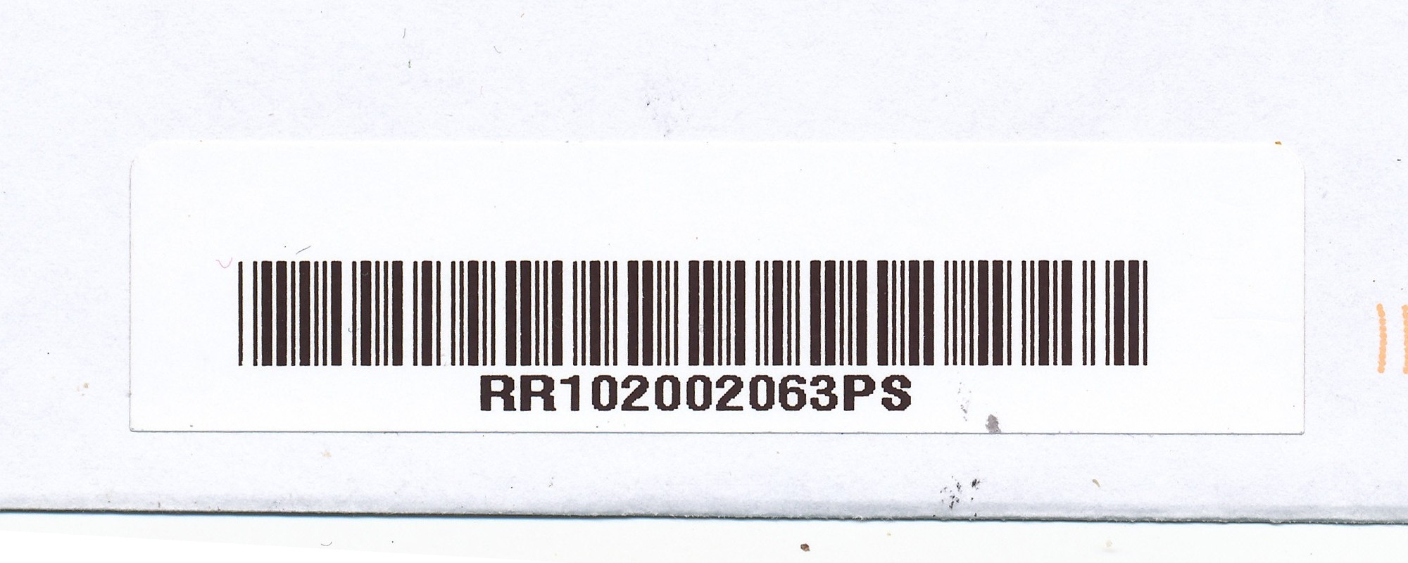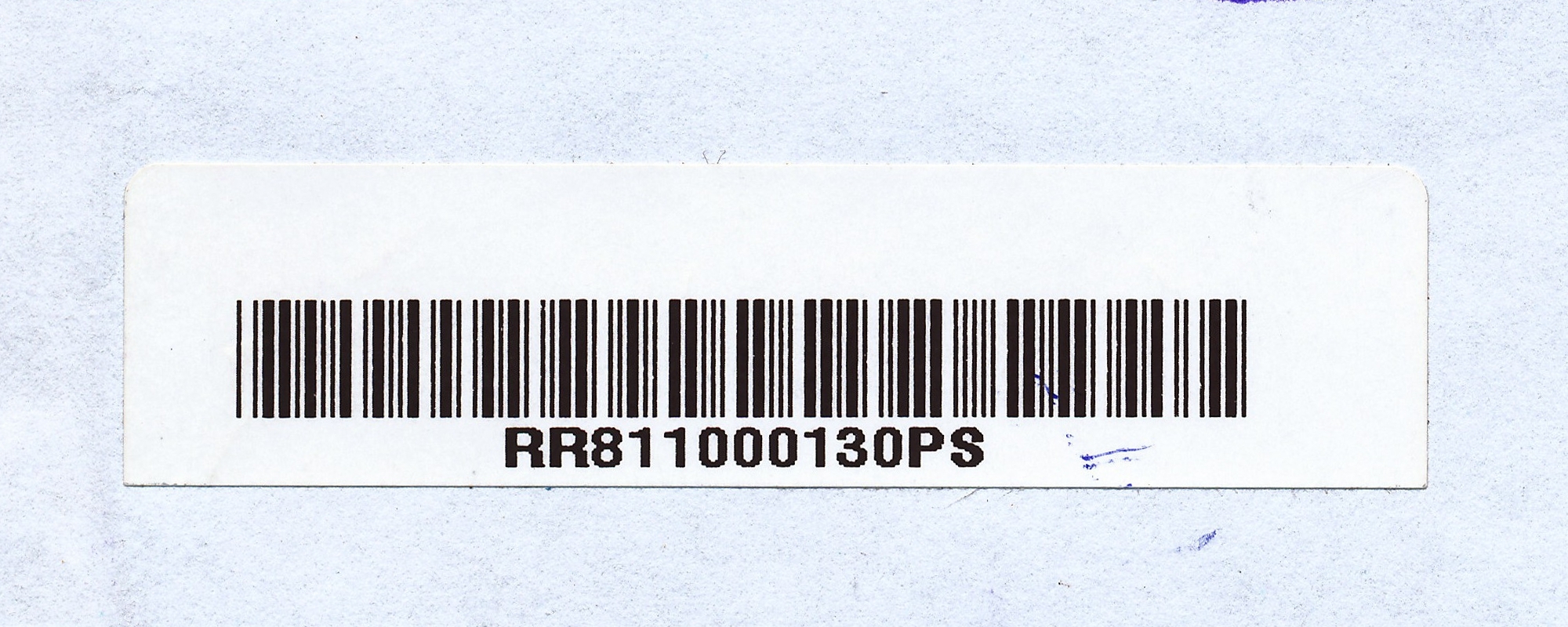 - white self-adhesive labels, printed in black. "IPS Light" linear barcode. With or without "Palestine Post" on top of imprinted numerator (9 digits) with prefixed RR and suffixed PS or ps. Label size varies.