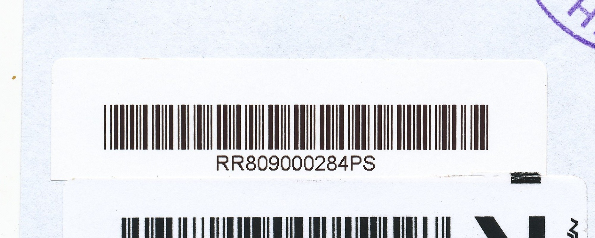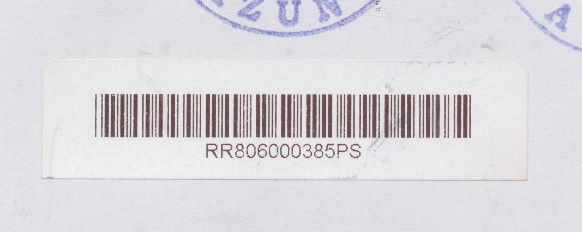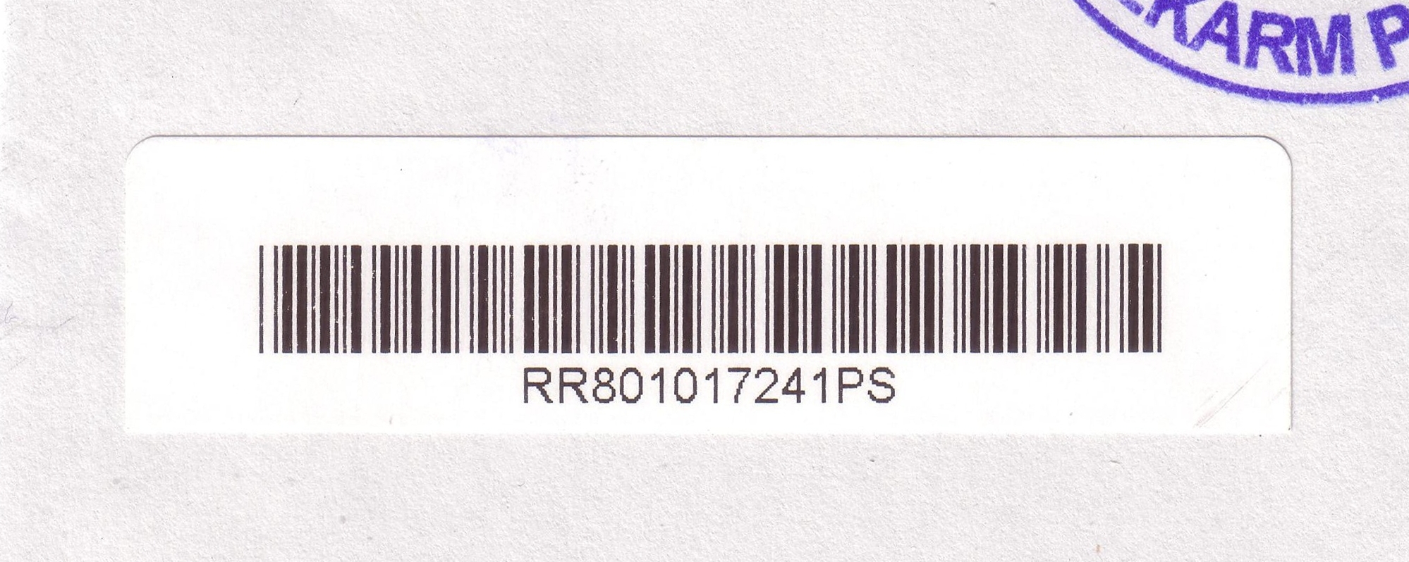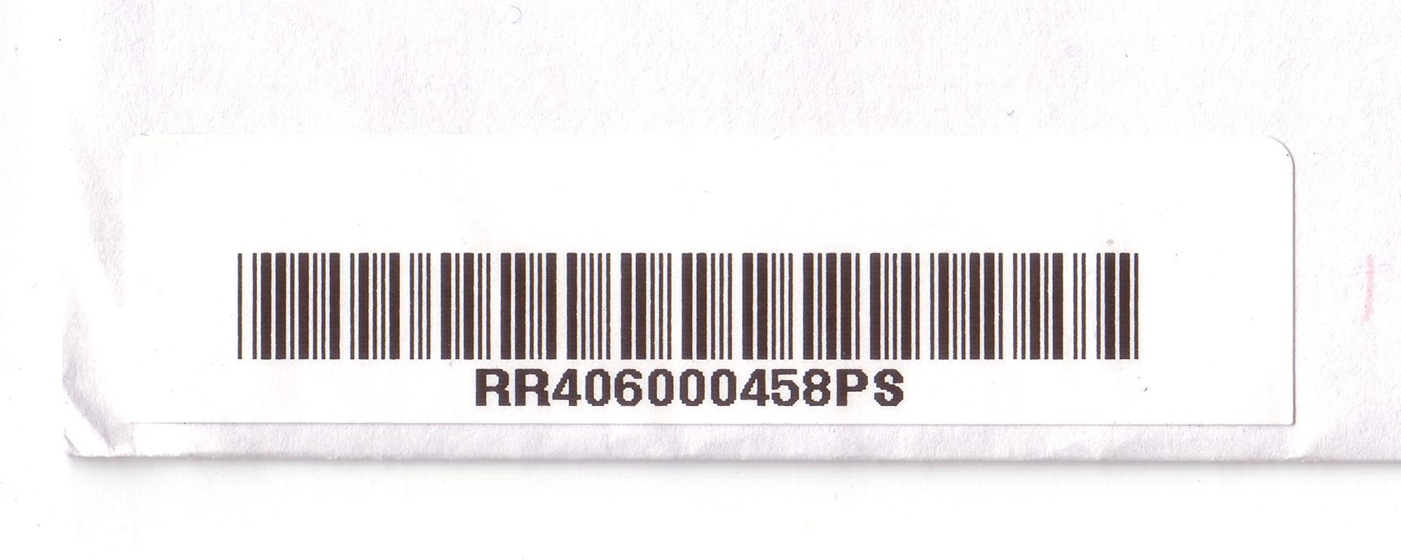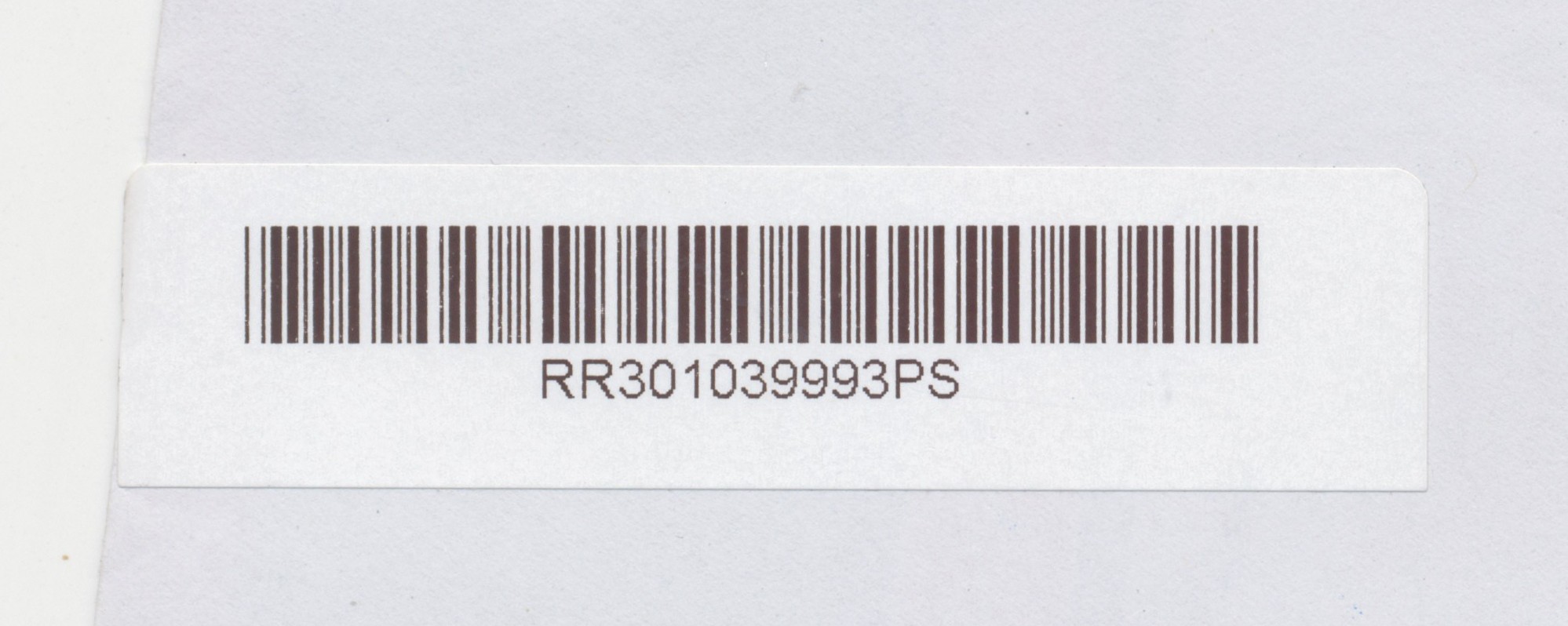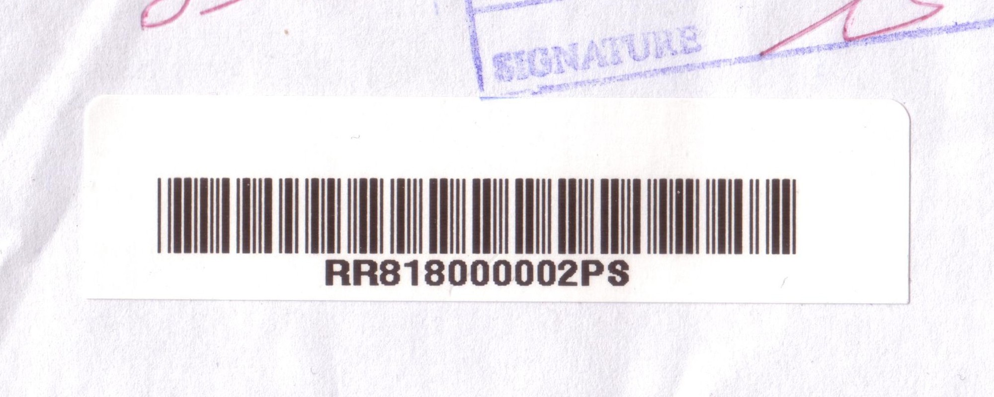 - white self-adhesive labels, printed in black. "IPS Light" linear barcode. With or without "Palestine Post" on top of imprinted numerator (9 digits) with prefixed RR and suffixed PS or ps. Label size varies.
