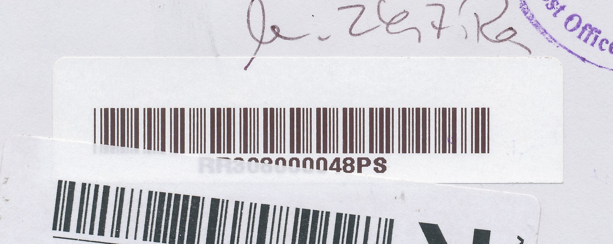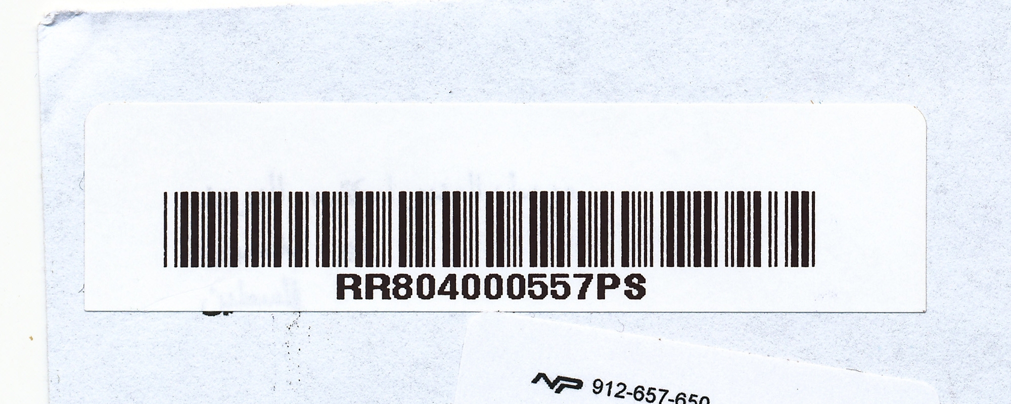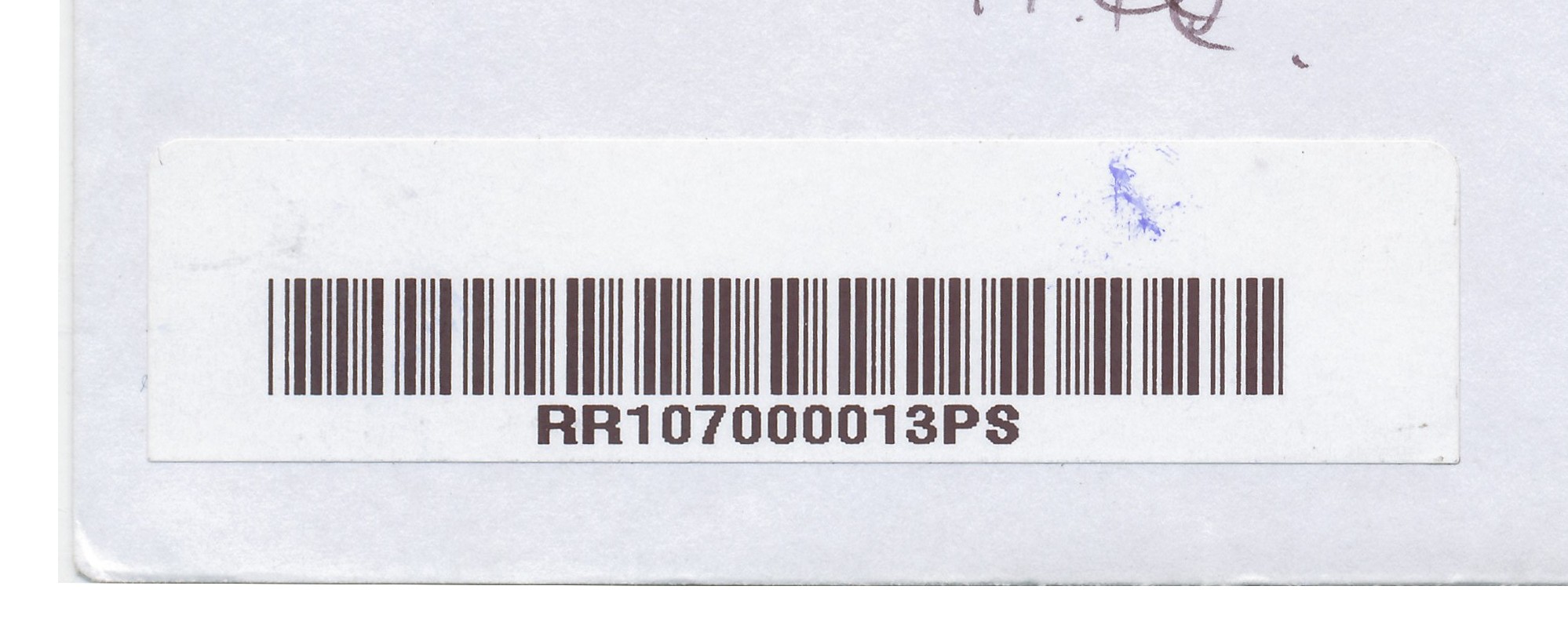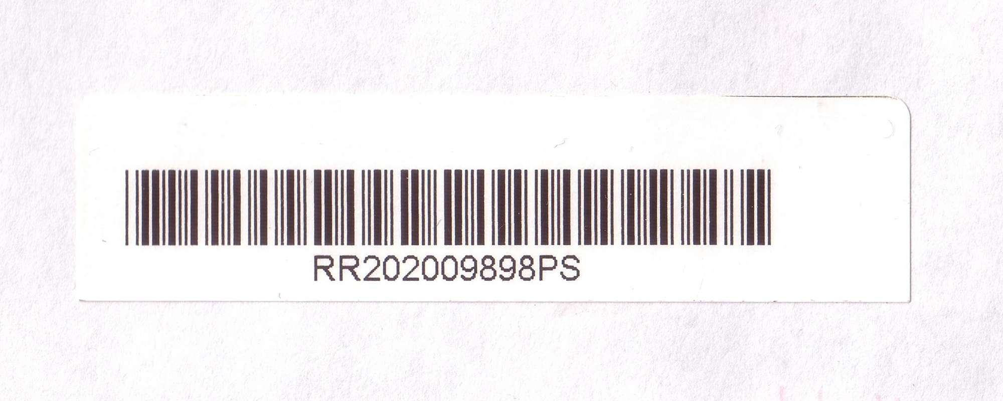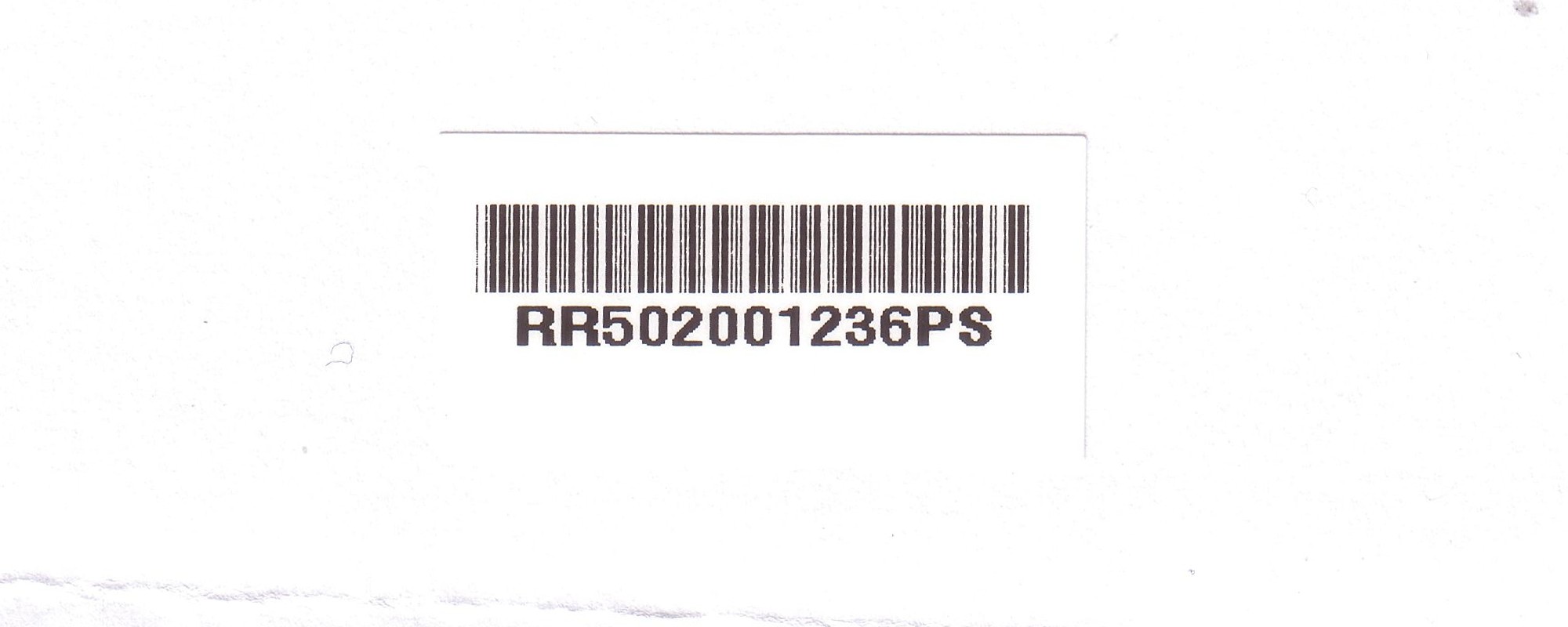 - white self-adhesive labels, printed in black. "IPS Light" linear barcode. With or without "Palestine Post" on top of imprinted numerator (9 digits) with prefixed RR and suffixed PS or ps. Label size varies.