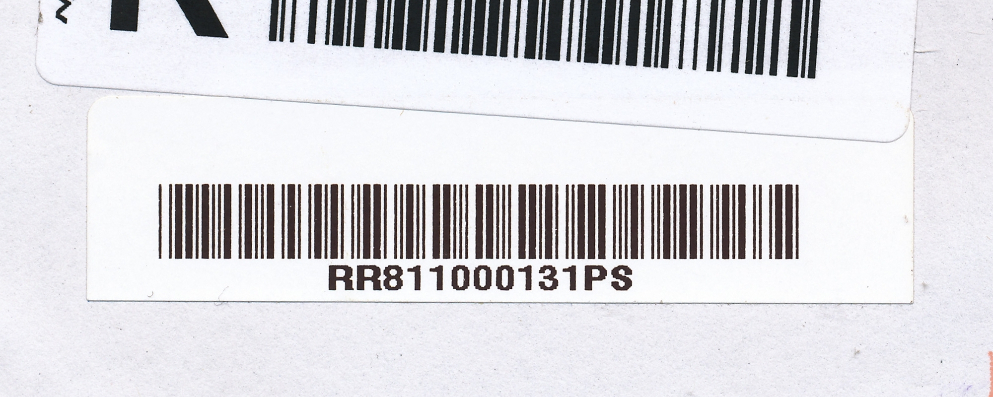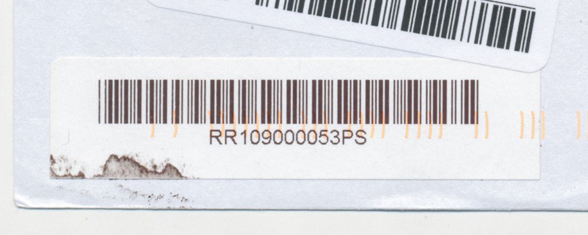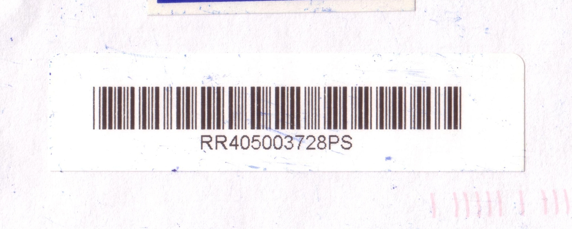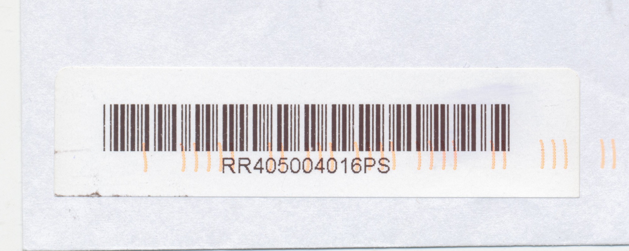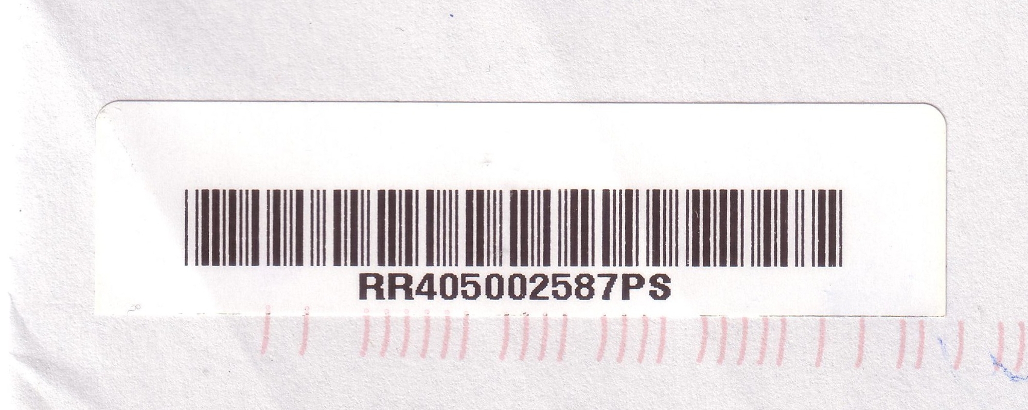 - white self-adhesive labels, printed in black. "IPS Light" linear barcode. With or without "Palestine Post" on top of imprinted numerator (9 digits) with prefixed RR and suffixed PS or ps. Label size varies.