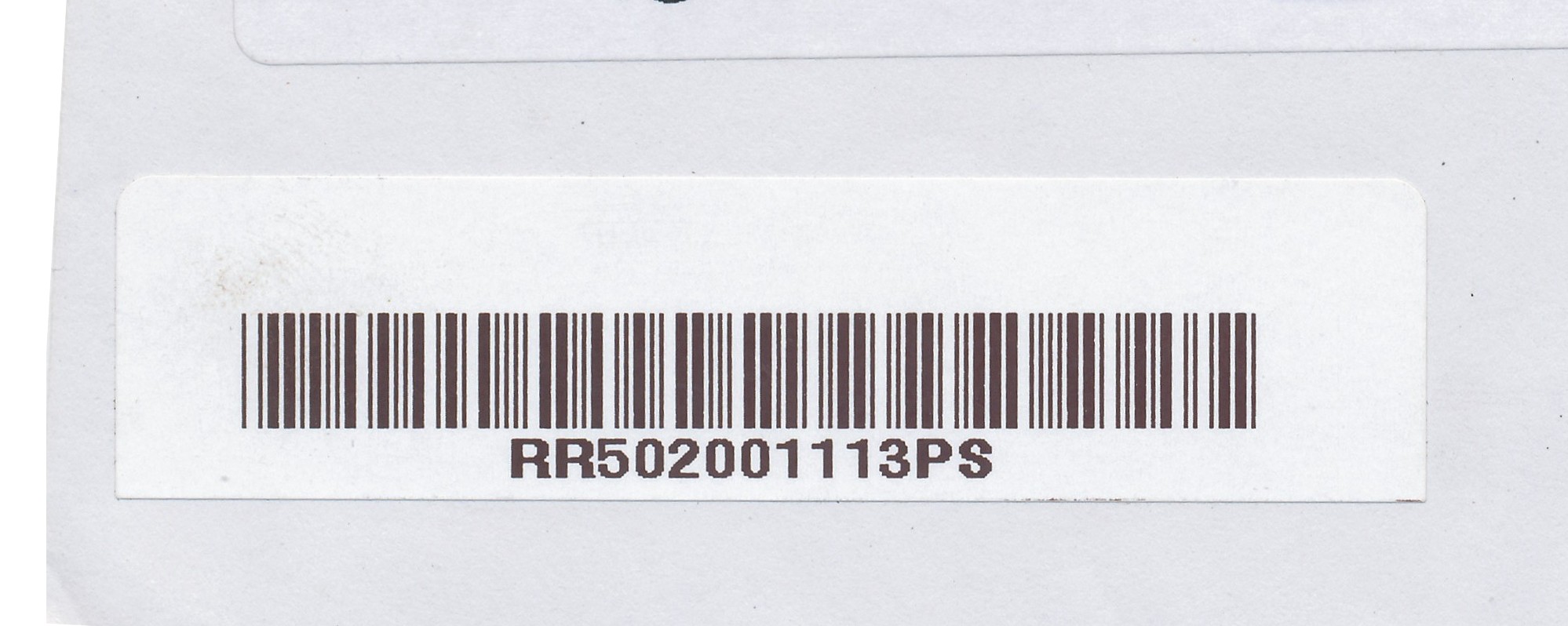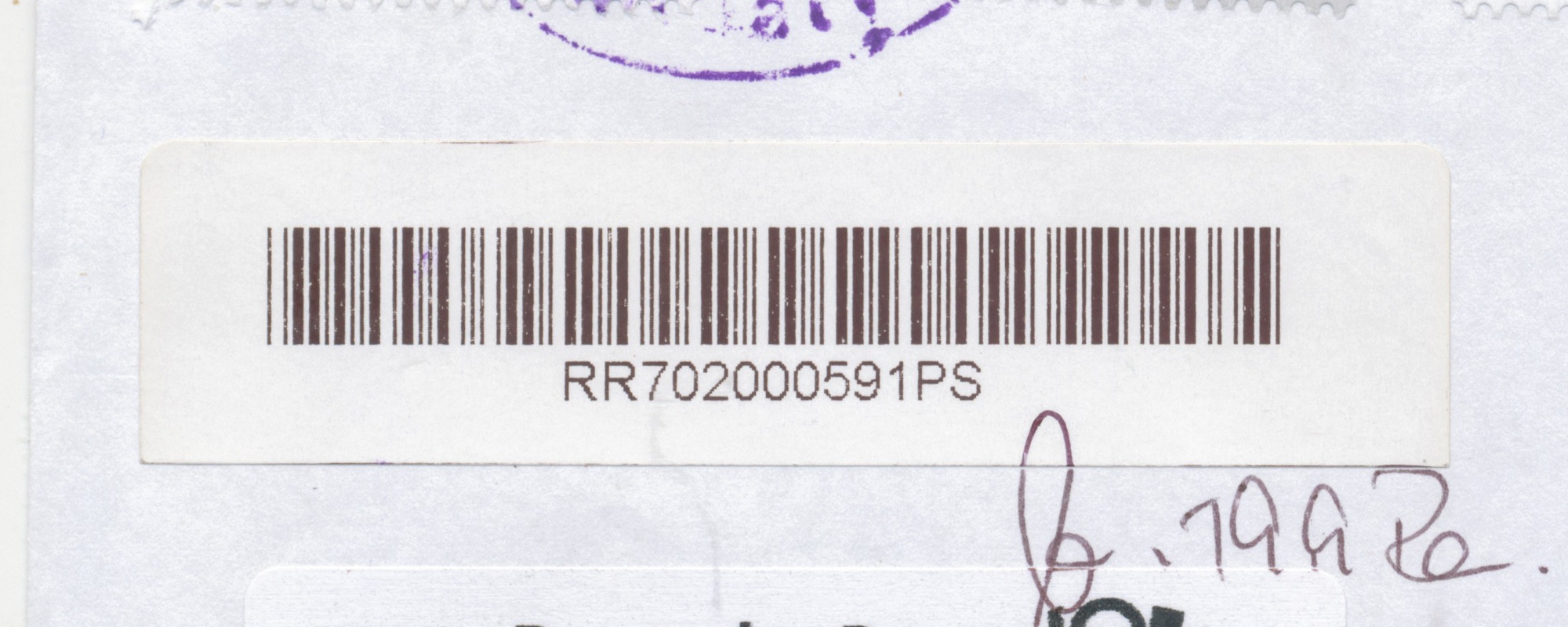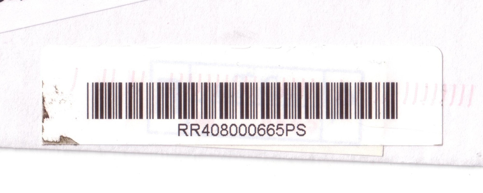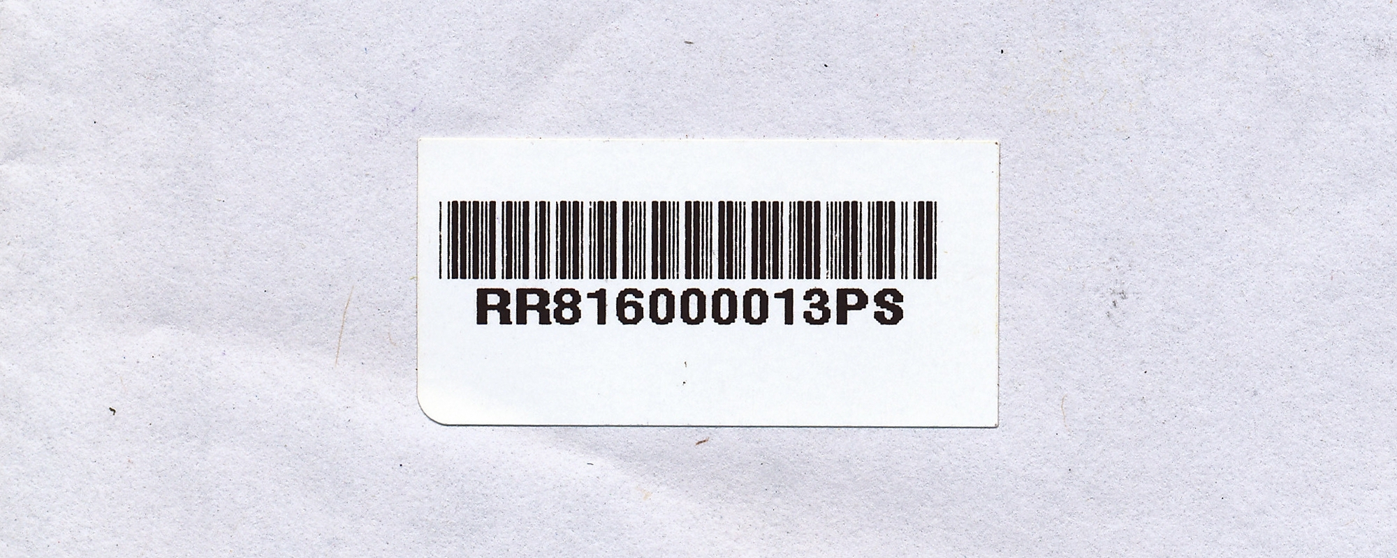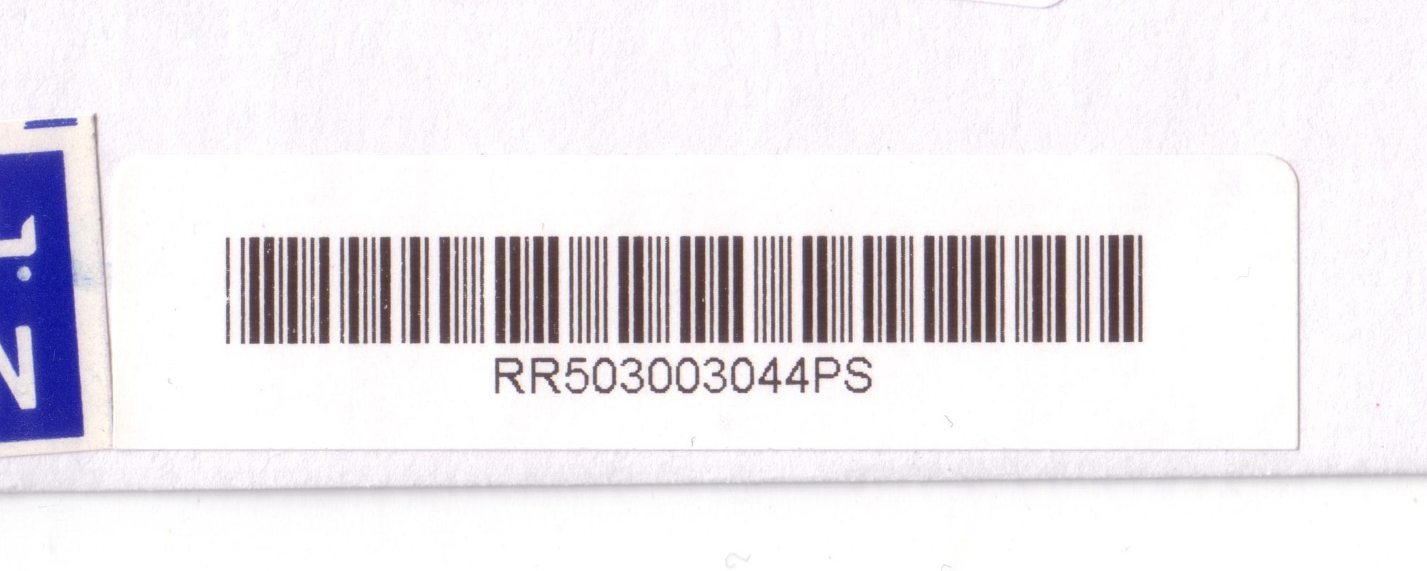 - white self-adhesive labels, printed in black. "IPS Light" linear barcode. With or without "Palestine Post" on top of imprinted numerator (9 digits) with prefixed RR and suffixed PS or ps. Label size varies.