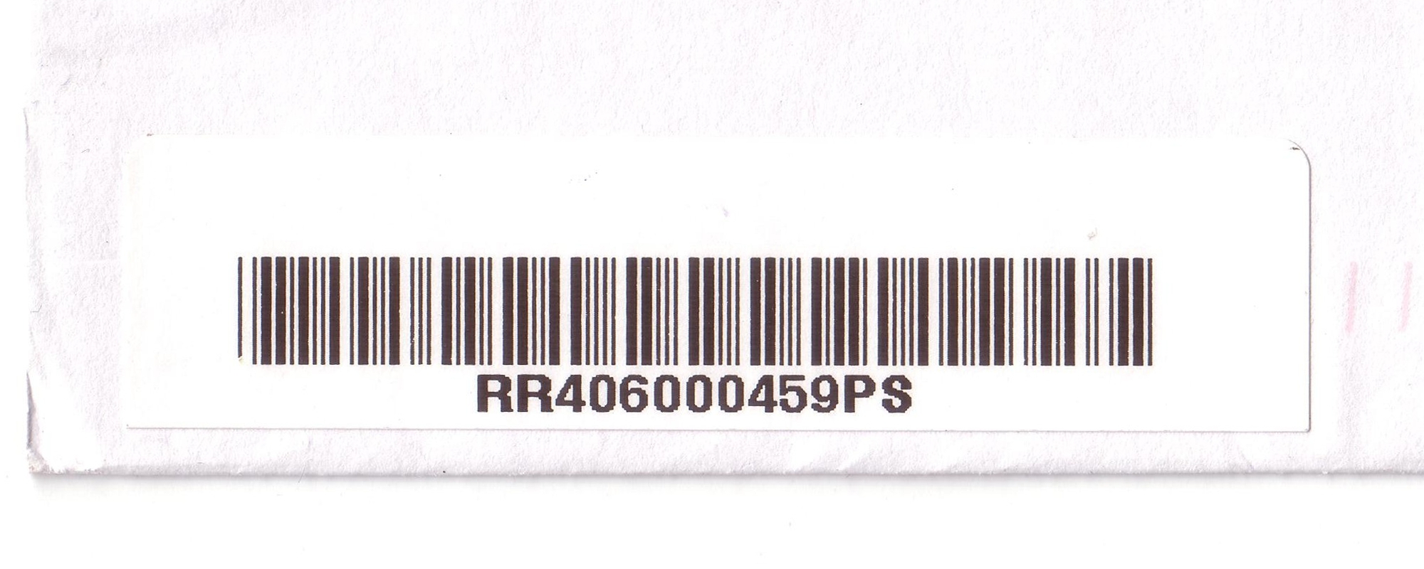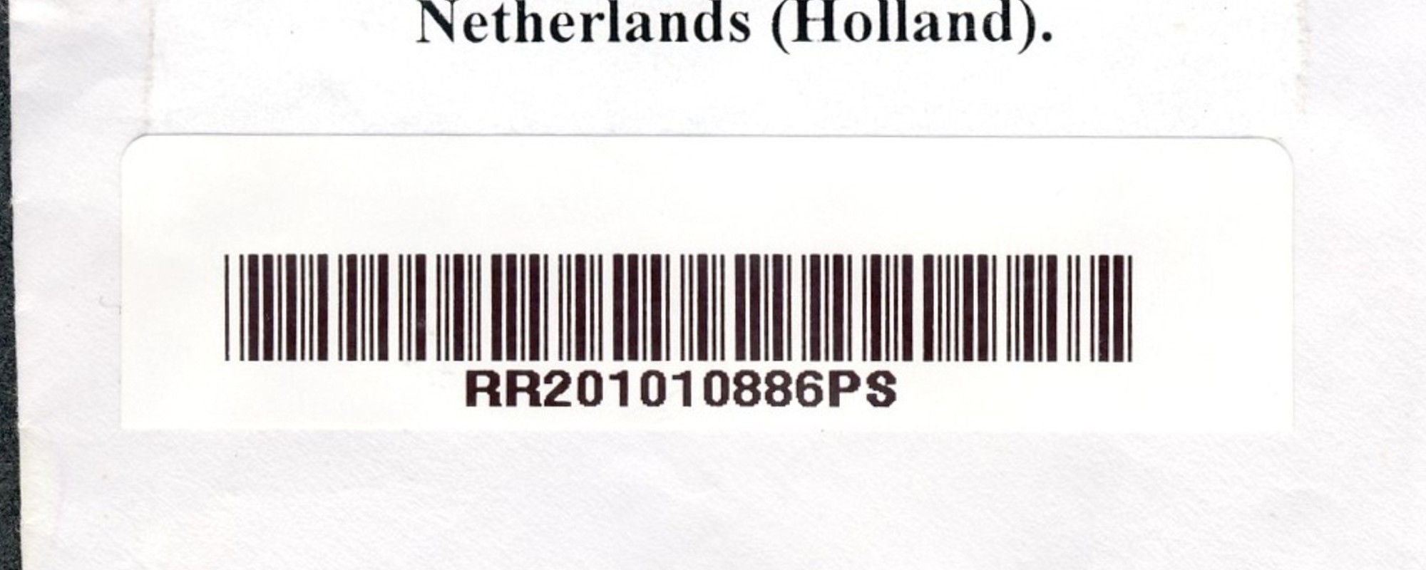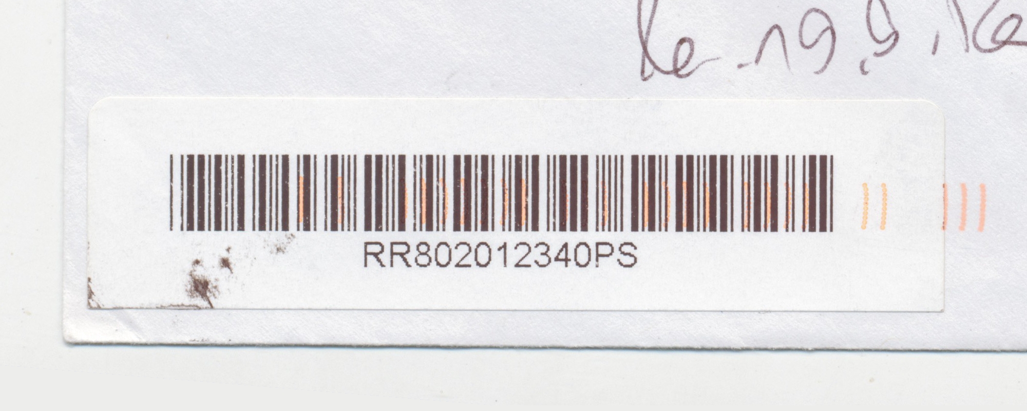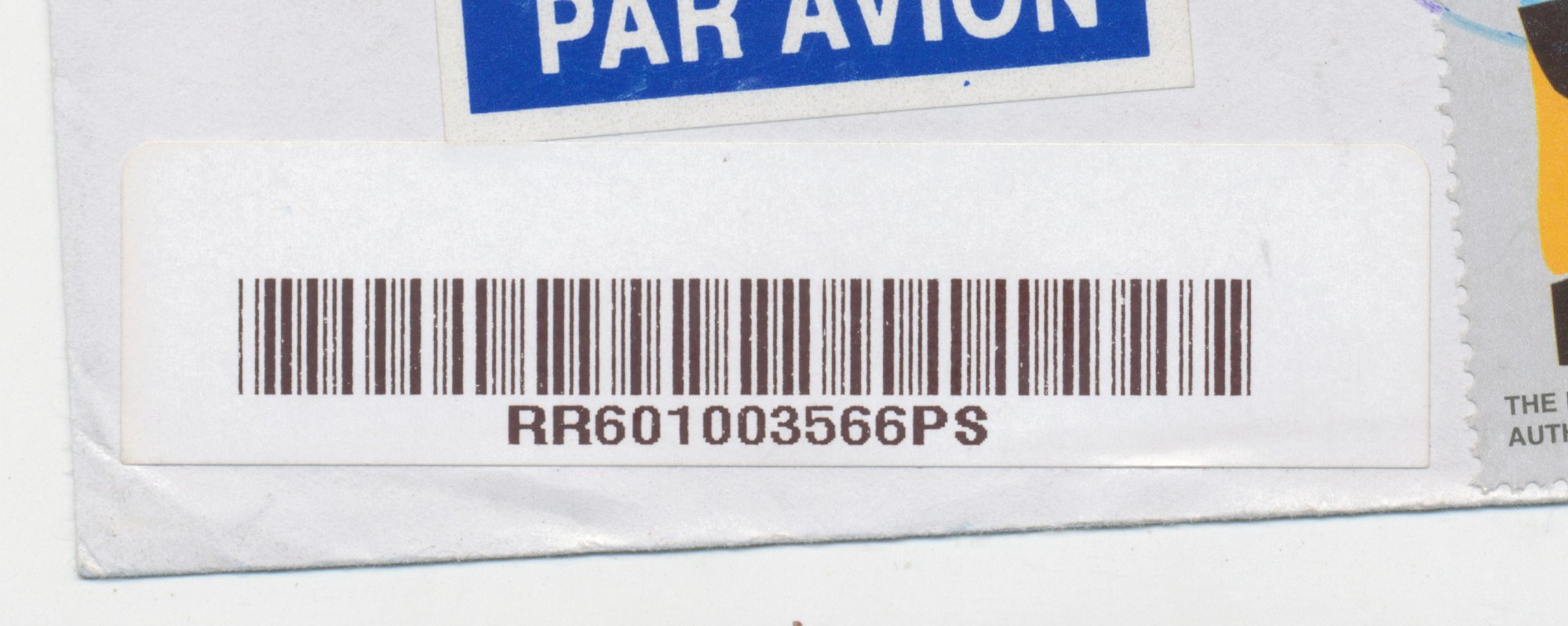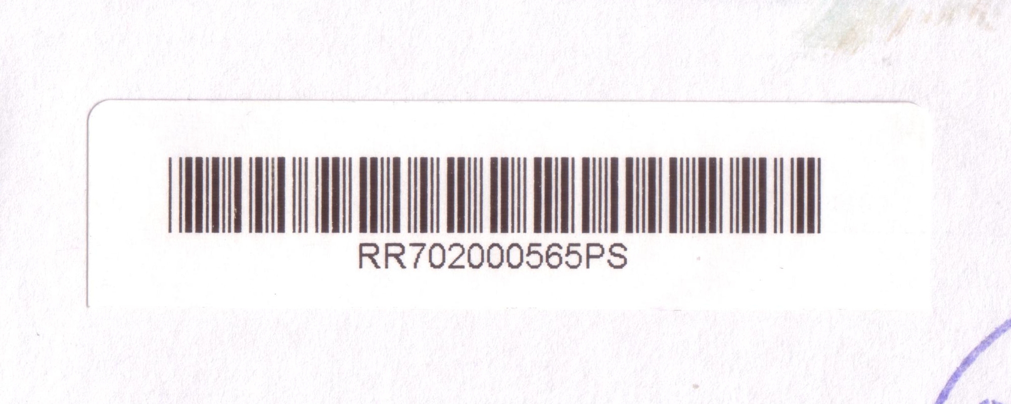 - white self-adhesive labels, printed in black. "IPS Light" linear barcode. With or without "Palestine Post" on top of imprinted numerator (9 digits) with prefixed RR and suffixed PS or ps. Label size varies.