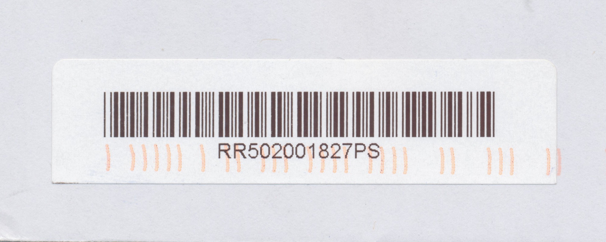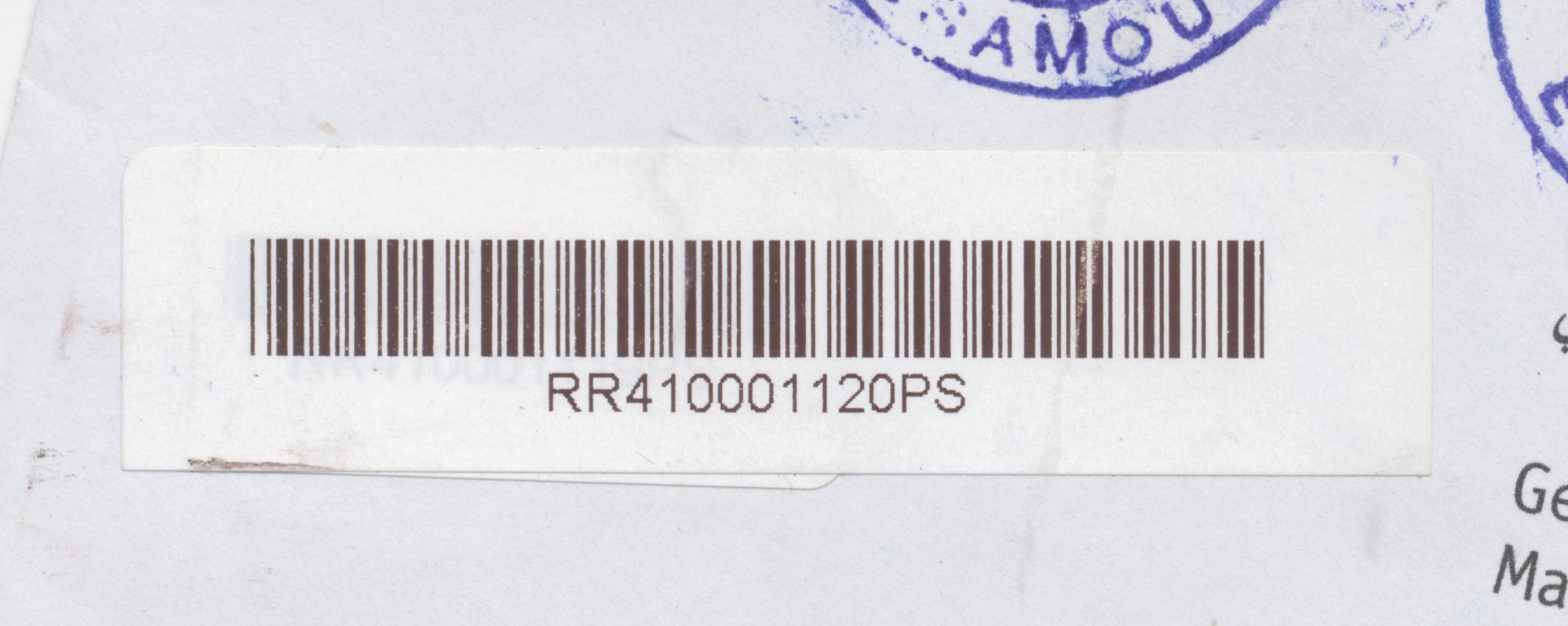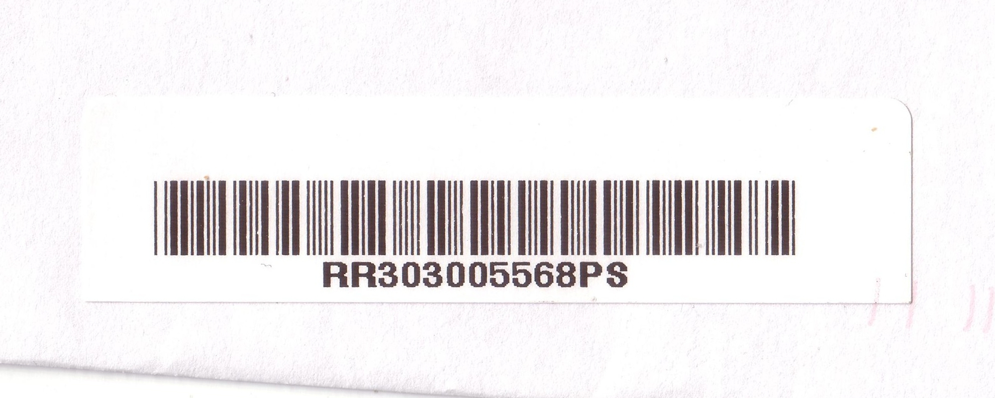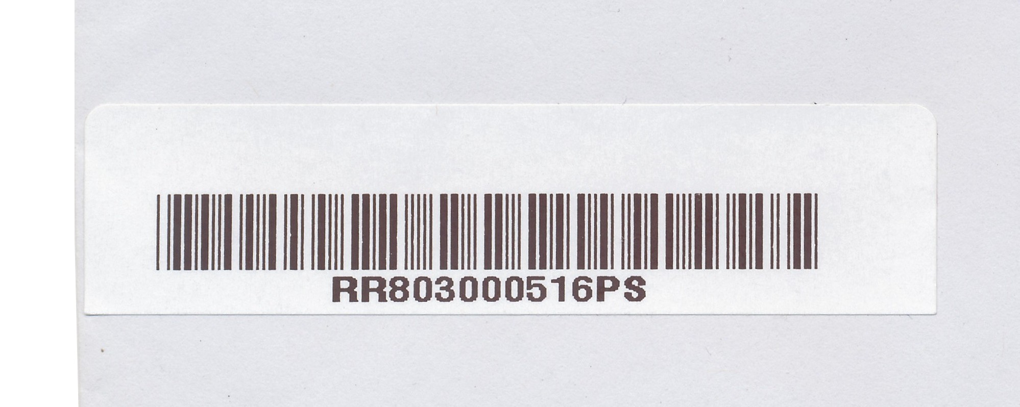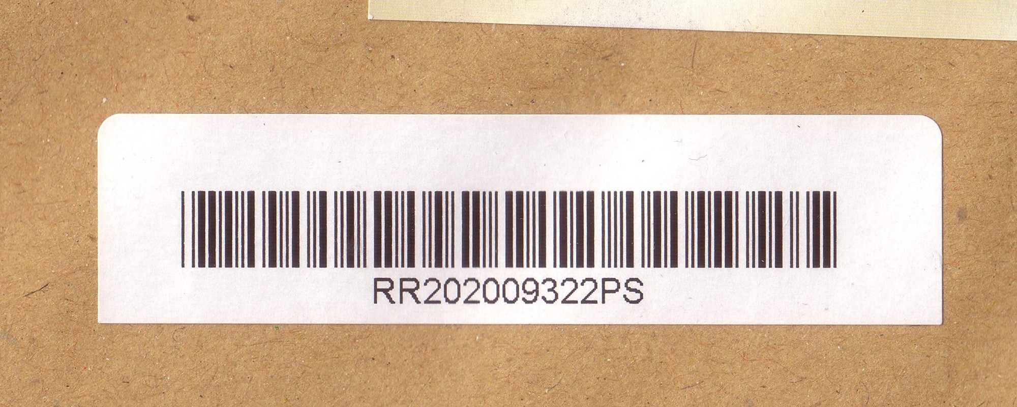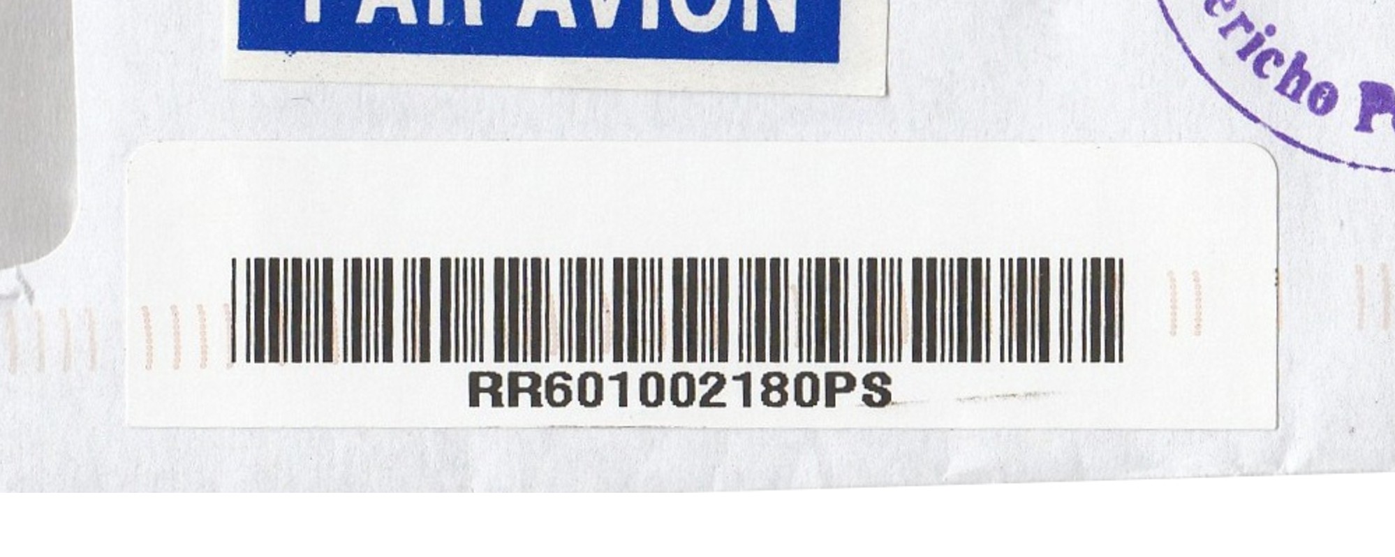 - white self-adhesive labels, printed in black. "IPS Light" linear barcode. With or without "Palestine Post" on top of imprinted numerator (9 digits) with prefixed RR and suffixed PS or ps. Label size varies.