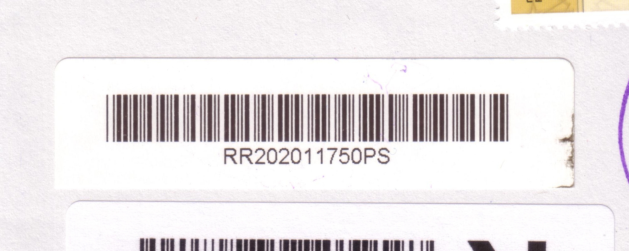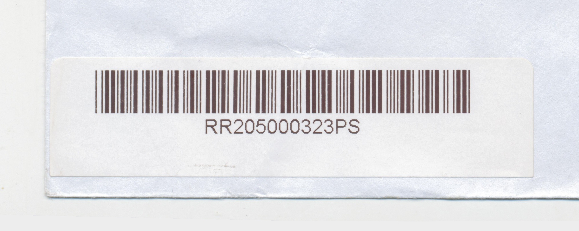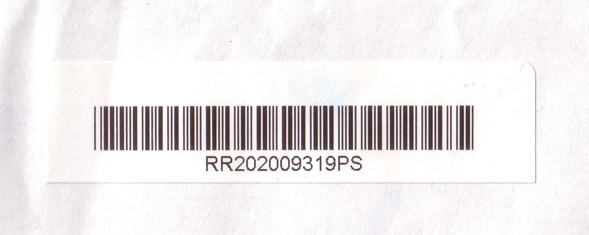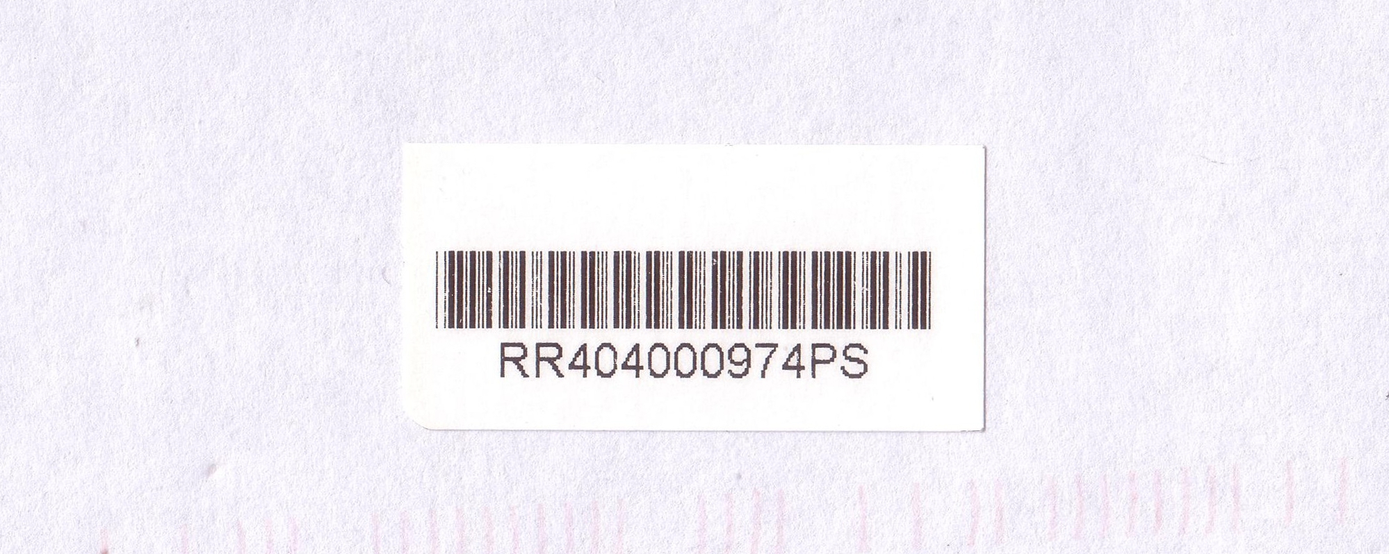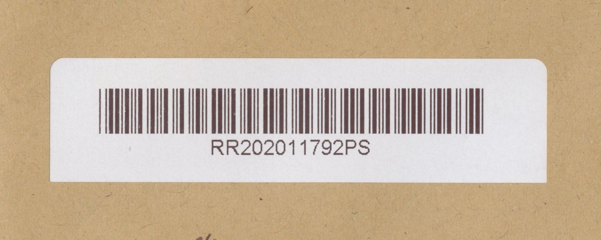 - white self-adhesive labels, printed in black. "IPS Light" linear barcode. With or without "Palestine Post" on top of imprinted numerator (9 digits) with prefixed RR and suffixed PS or ps. Label size varies.