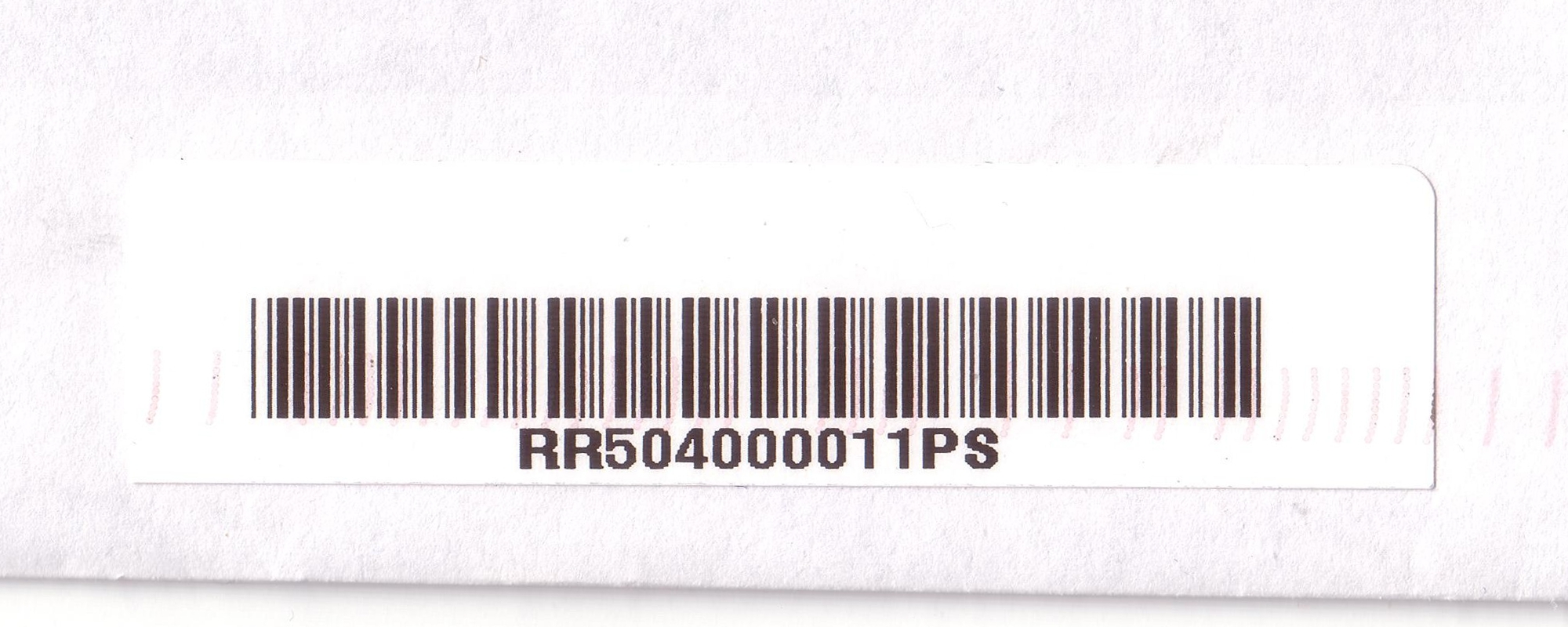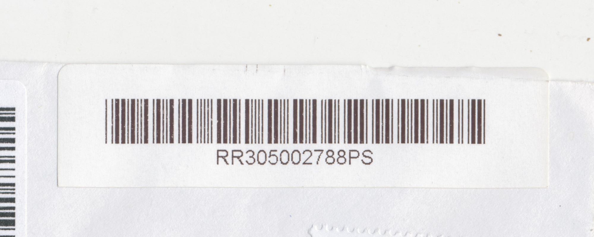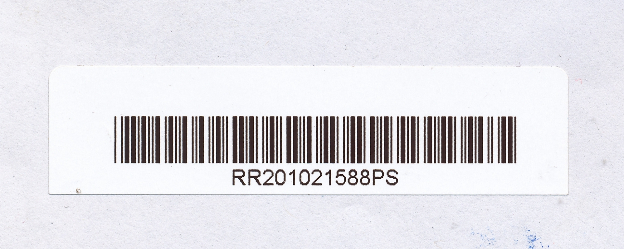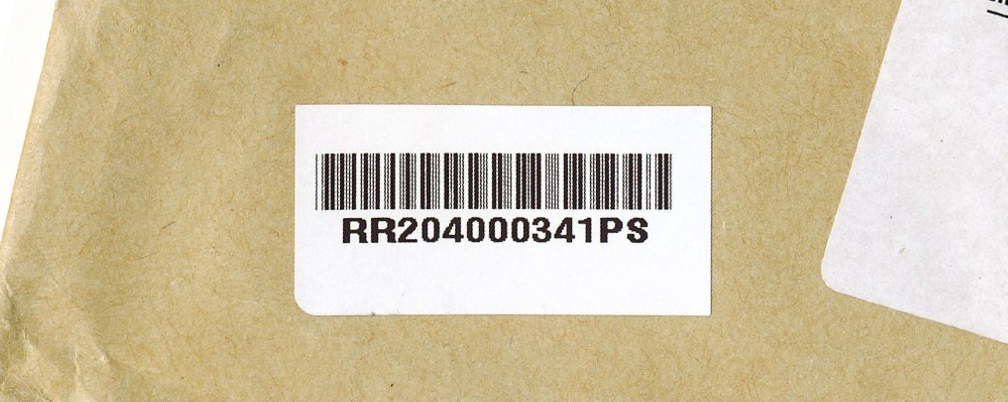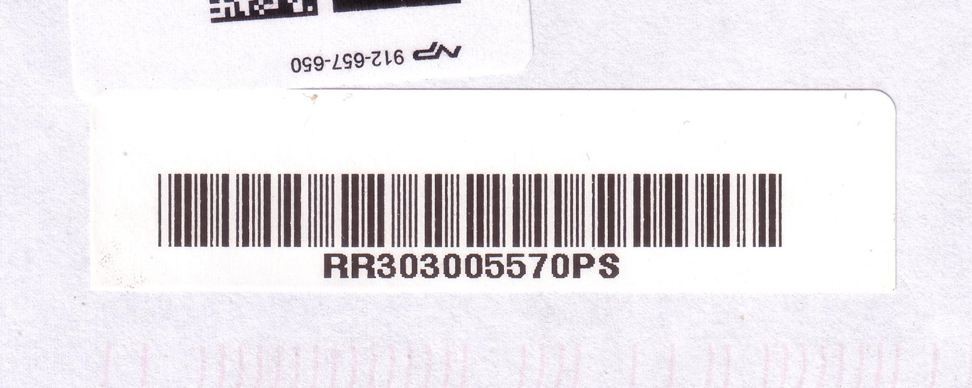 - white self-adhesive labels, printed in black. "IPS Light" linear barcode. With or without "Palestine Post" on top of imprinted numerator (9 digits) with prefixed RR and suffixed PS or ps. Label size varies.