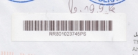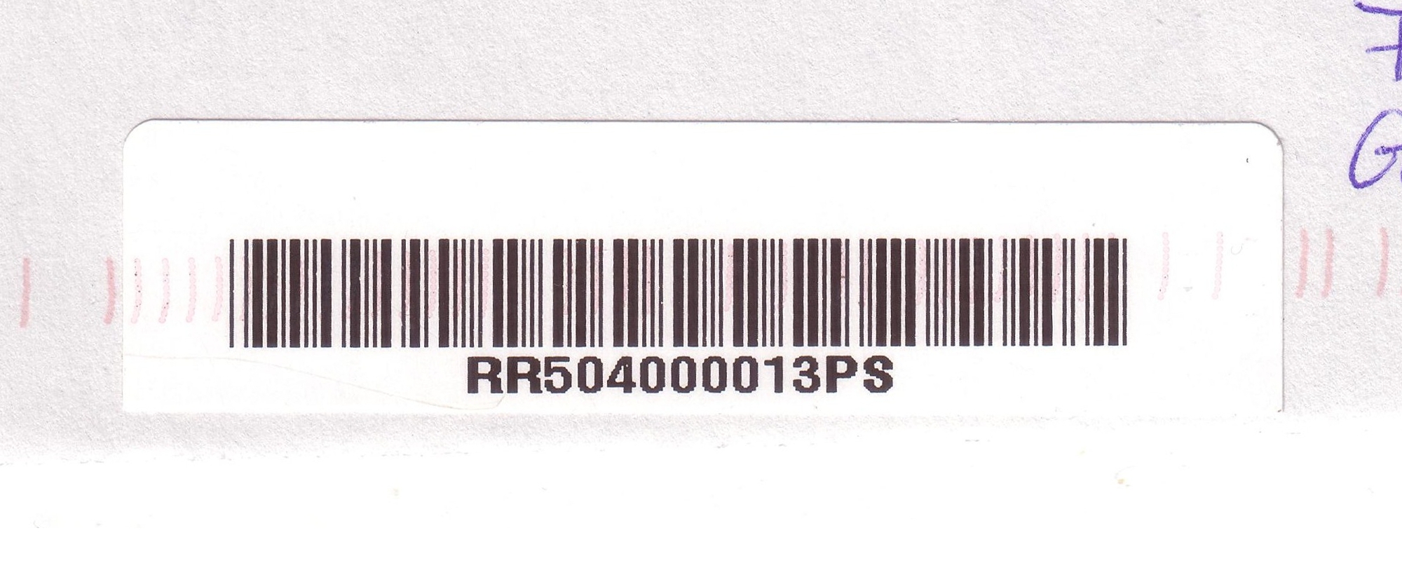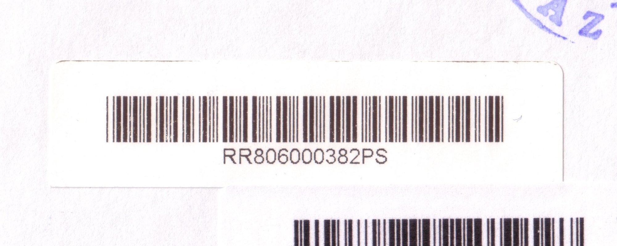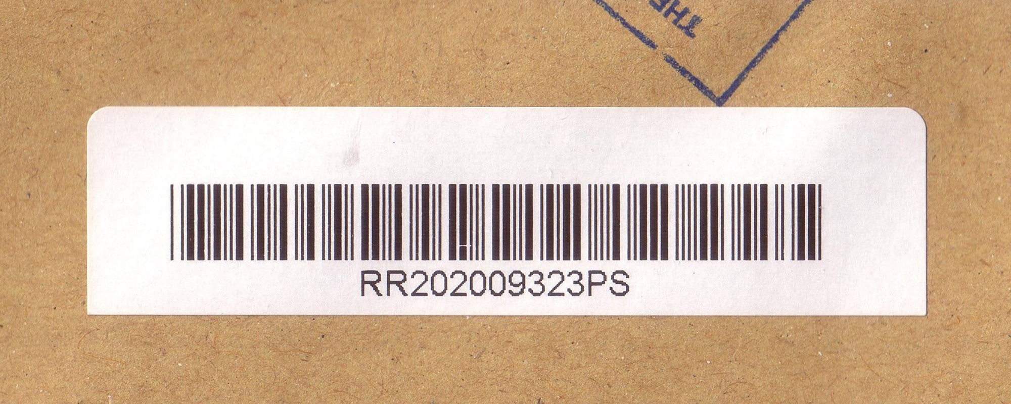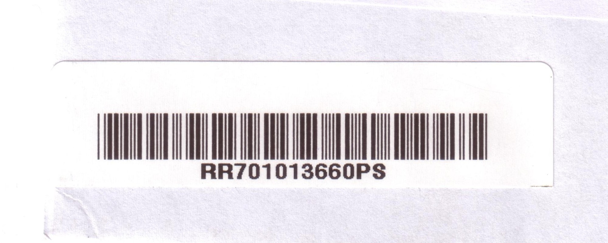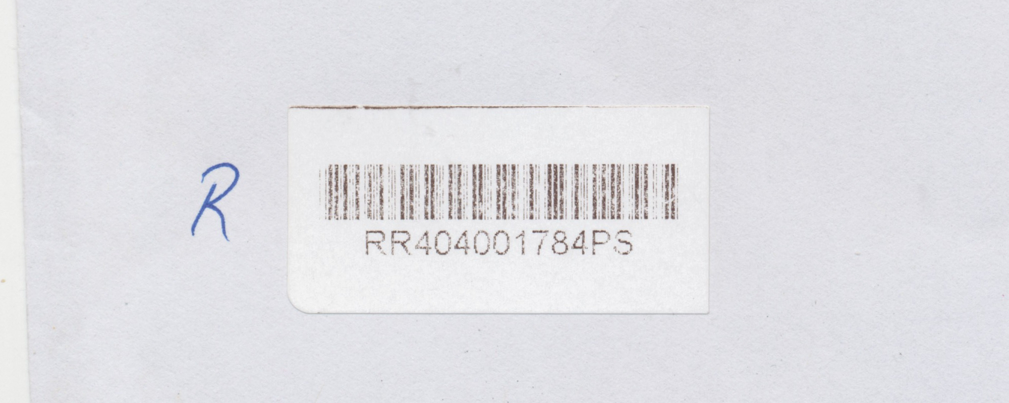 - white self-adhesive labels, printed in black. "IPS Light" linear barcode. With or without "Palestine Post" on top of imprinted numerator (9 digits) with prefixed RR and suffixed PS or ps. Label size varies.