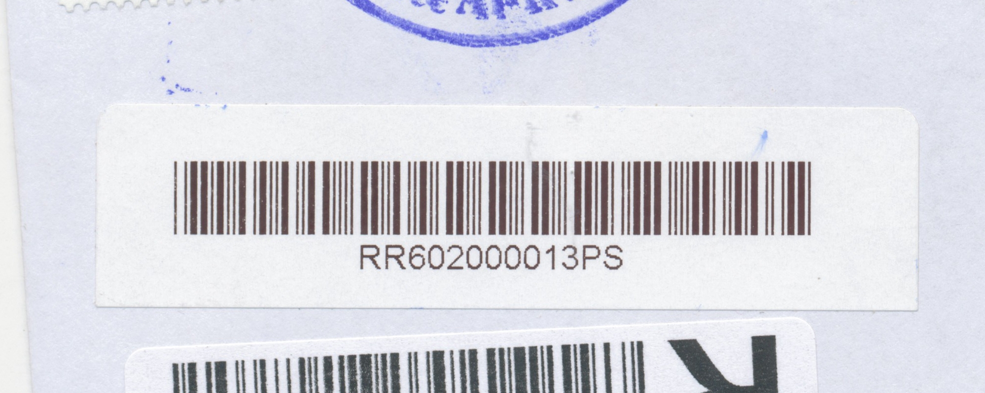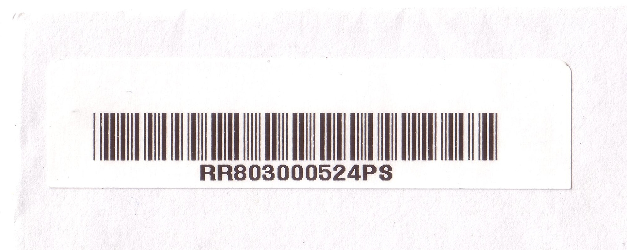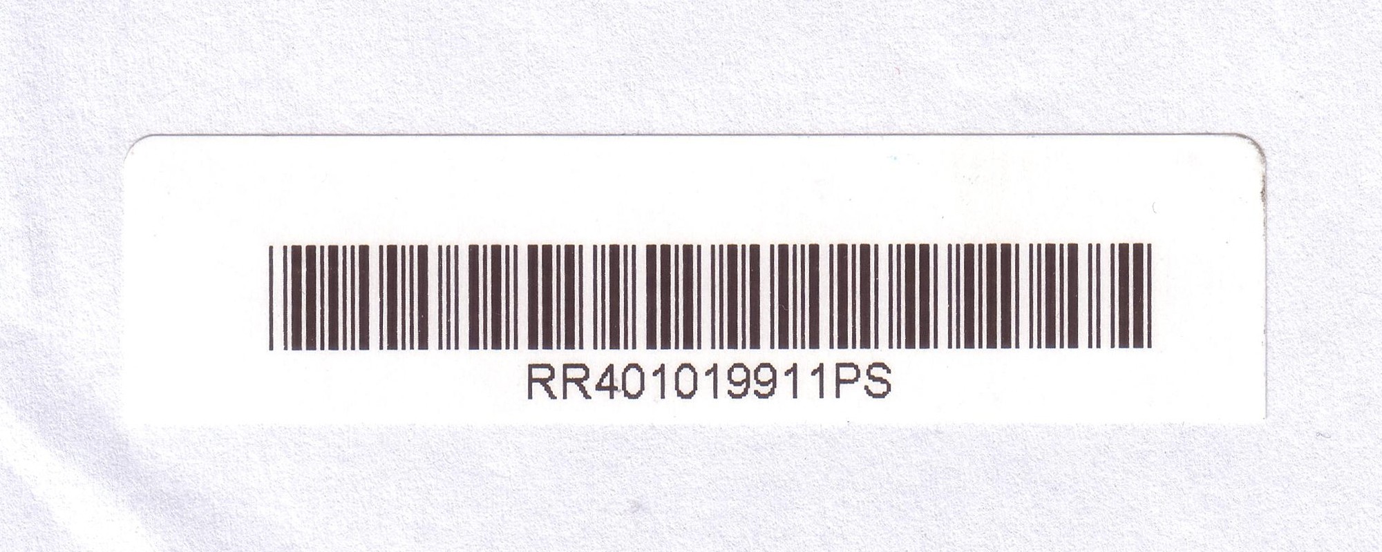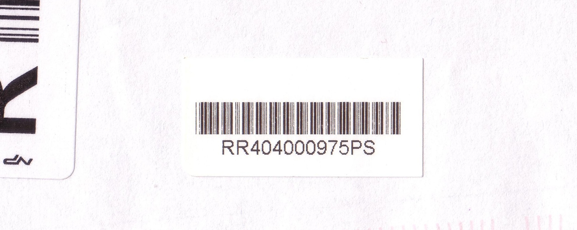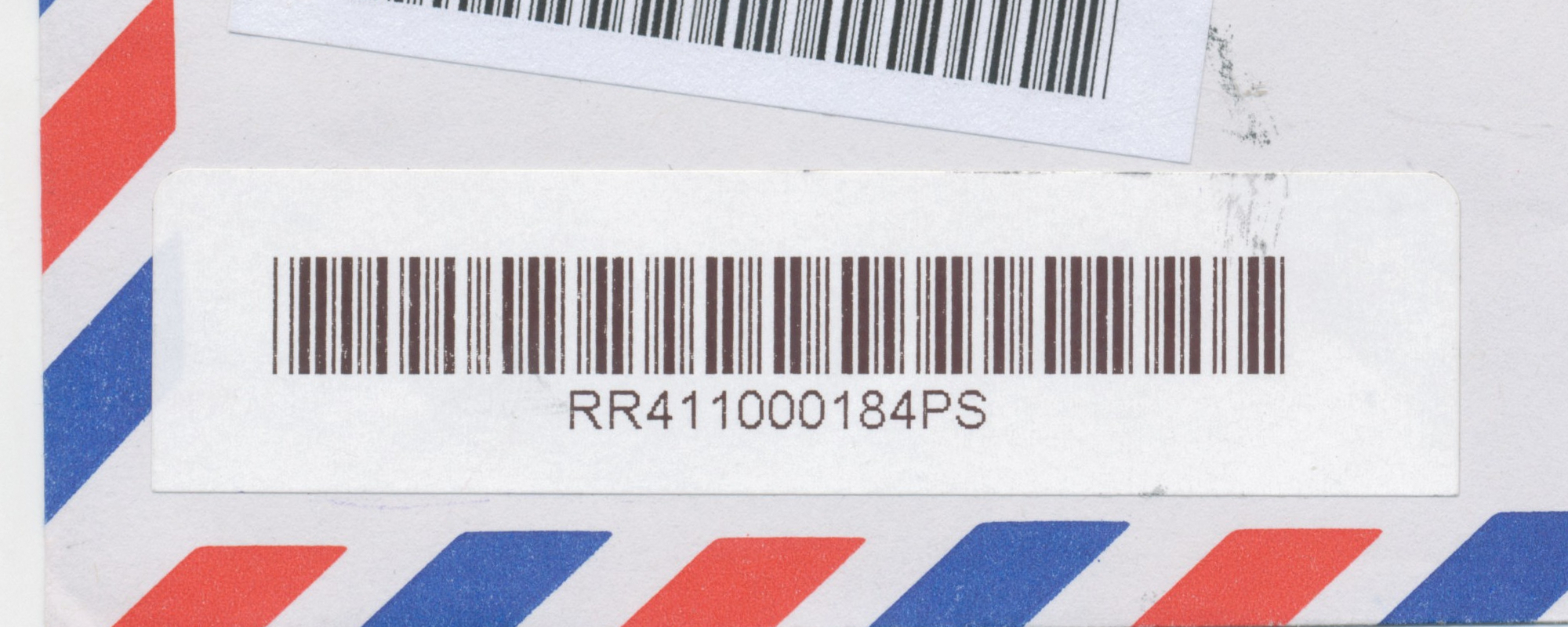 - white self-adhesive labels, printed in black. "IPS Light" linear barcode. With or without "Palestine Post" on top of imprinted numerator (9 digits) with prefixed RR and suffixed PS or ps. Label size varies.
