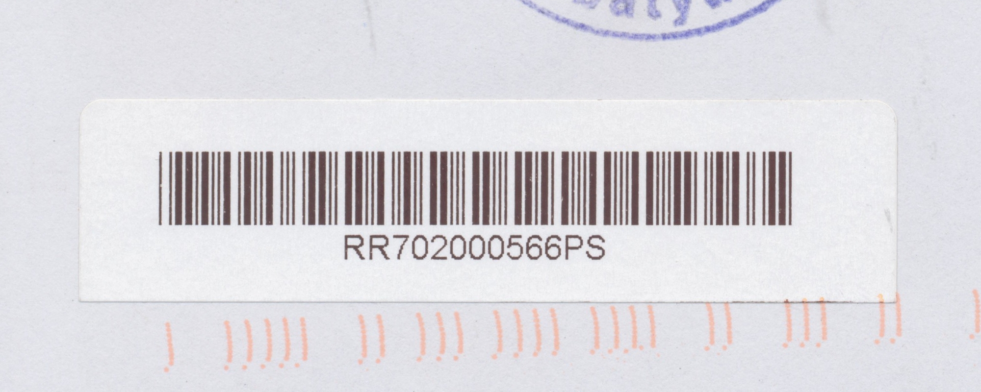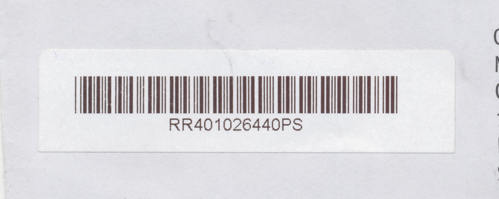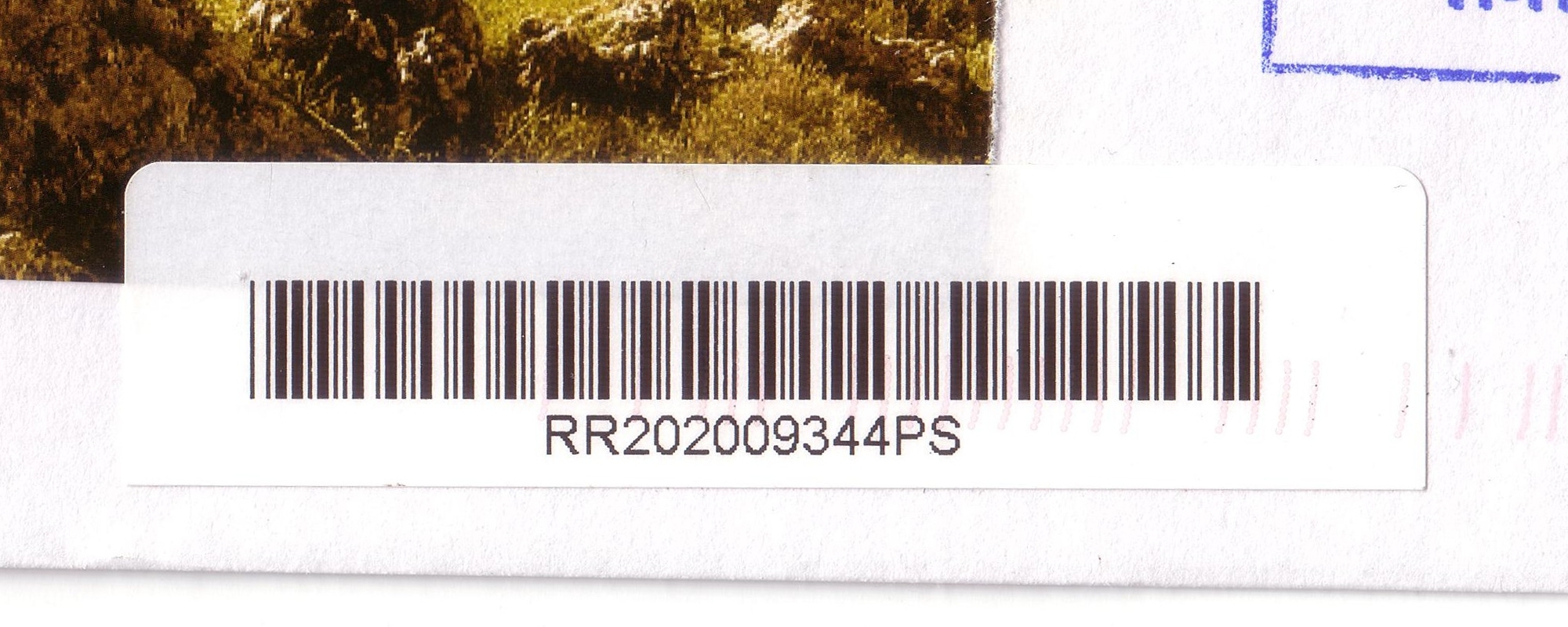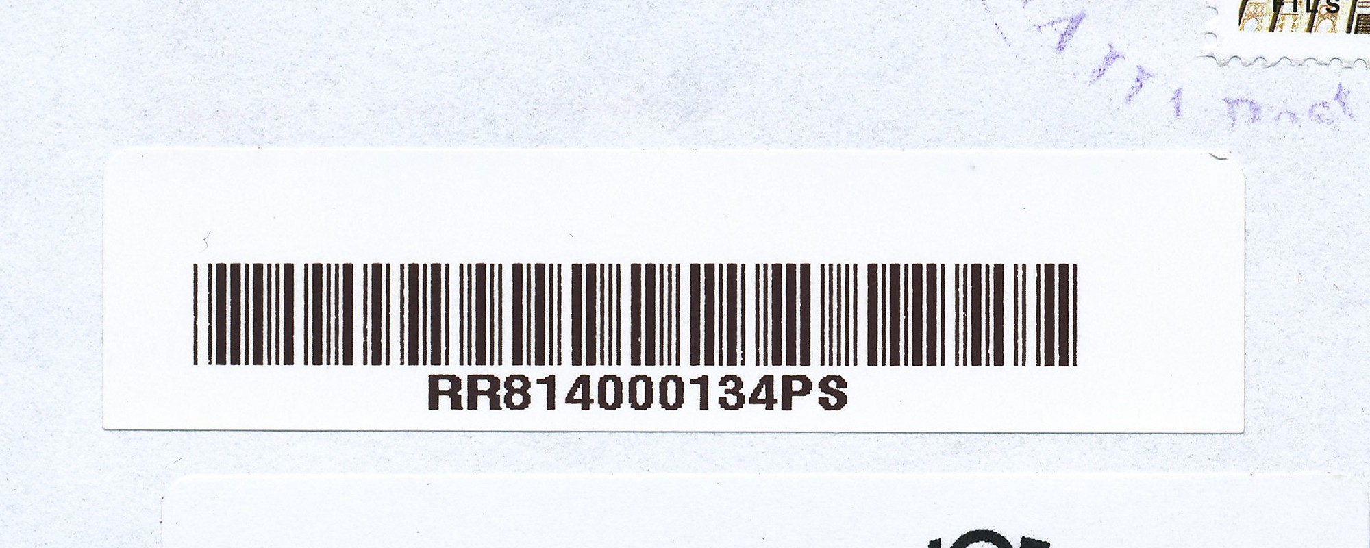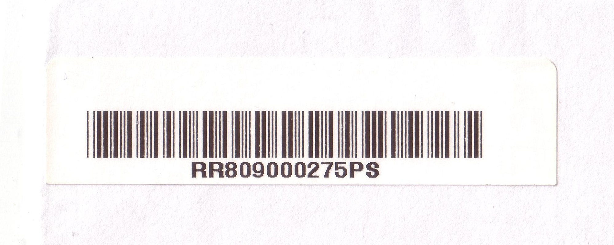 - white self-adhesive labels, printed in black. "IPS Light" linear barcode. With or without "Palestine Post" on top of imprinted numerator (9 digits) with prefixed RR and suffixed PS or ps. Label size varies.