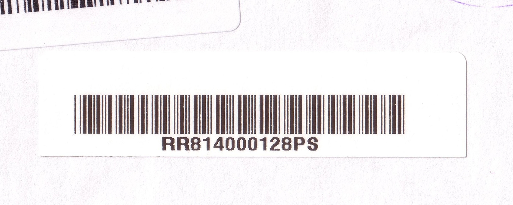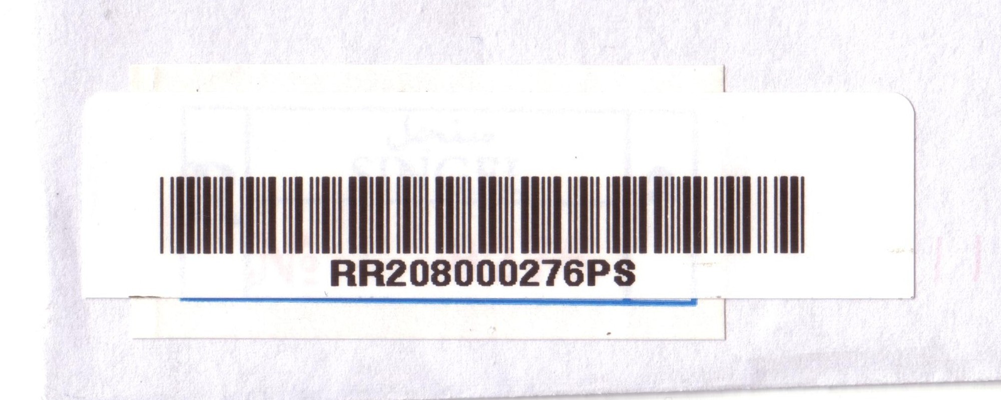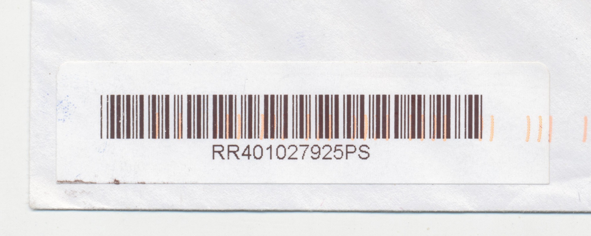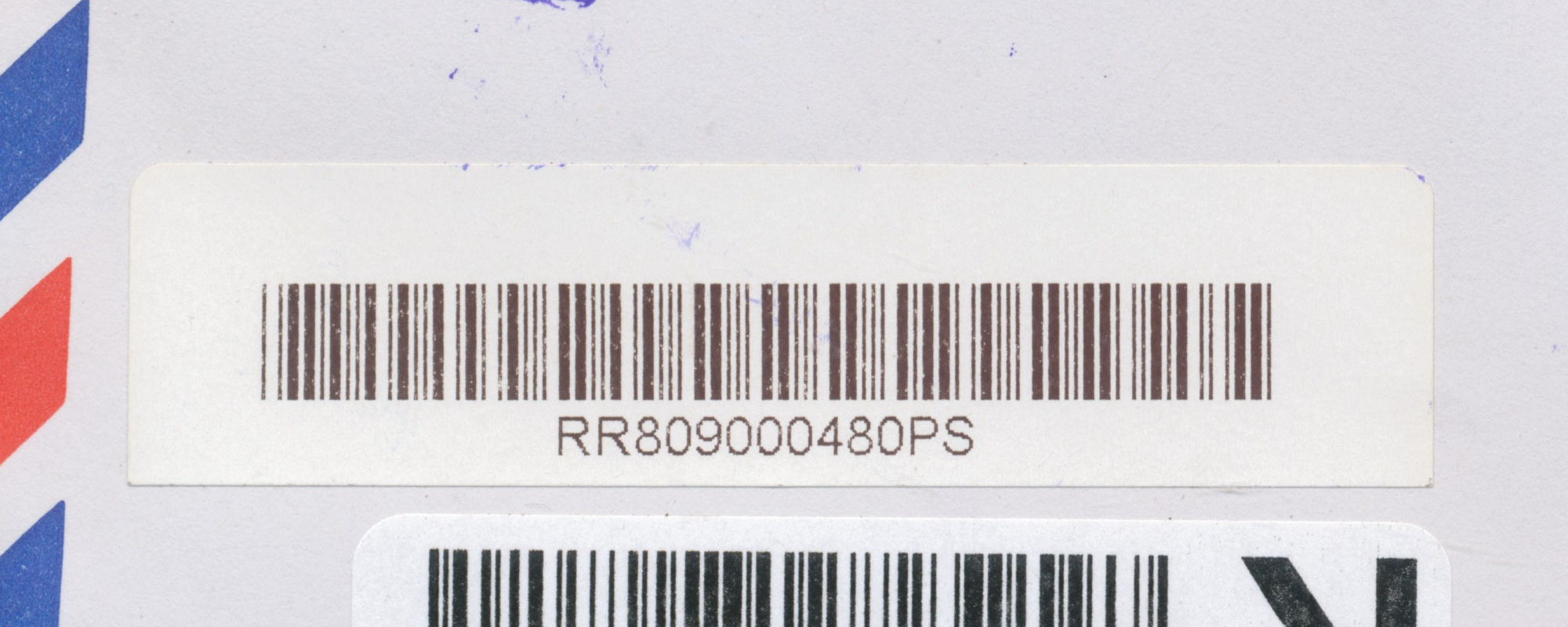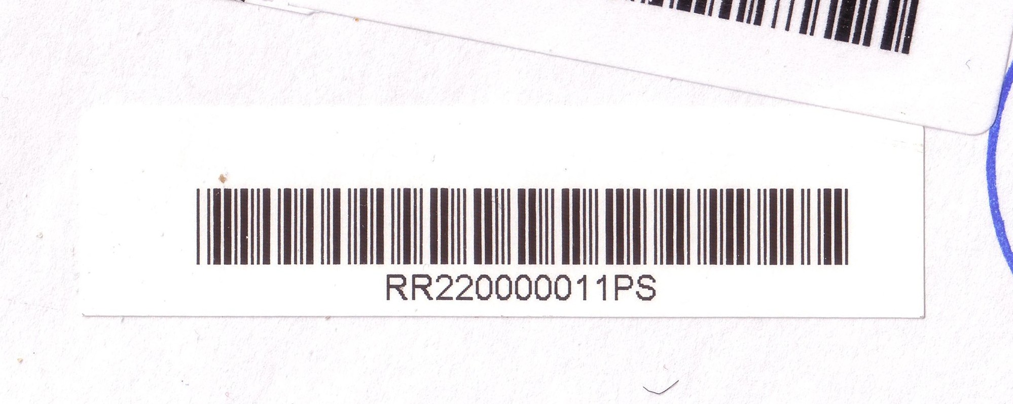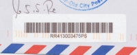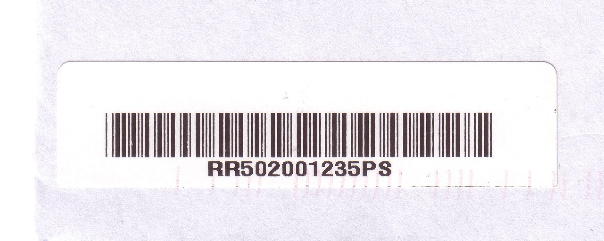 - white self-adhesive labels, printed in black. "IPS Light" linear barcode. With or without "Palestine Post" on top of imprinted numerator (9 digits) with prefixed RR and suffixed PS or ps. Label size varies.