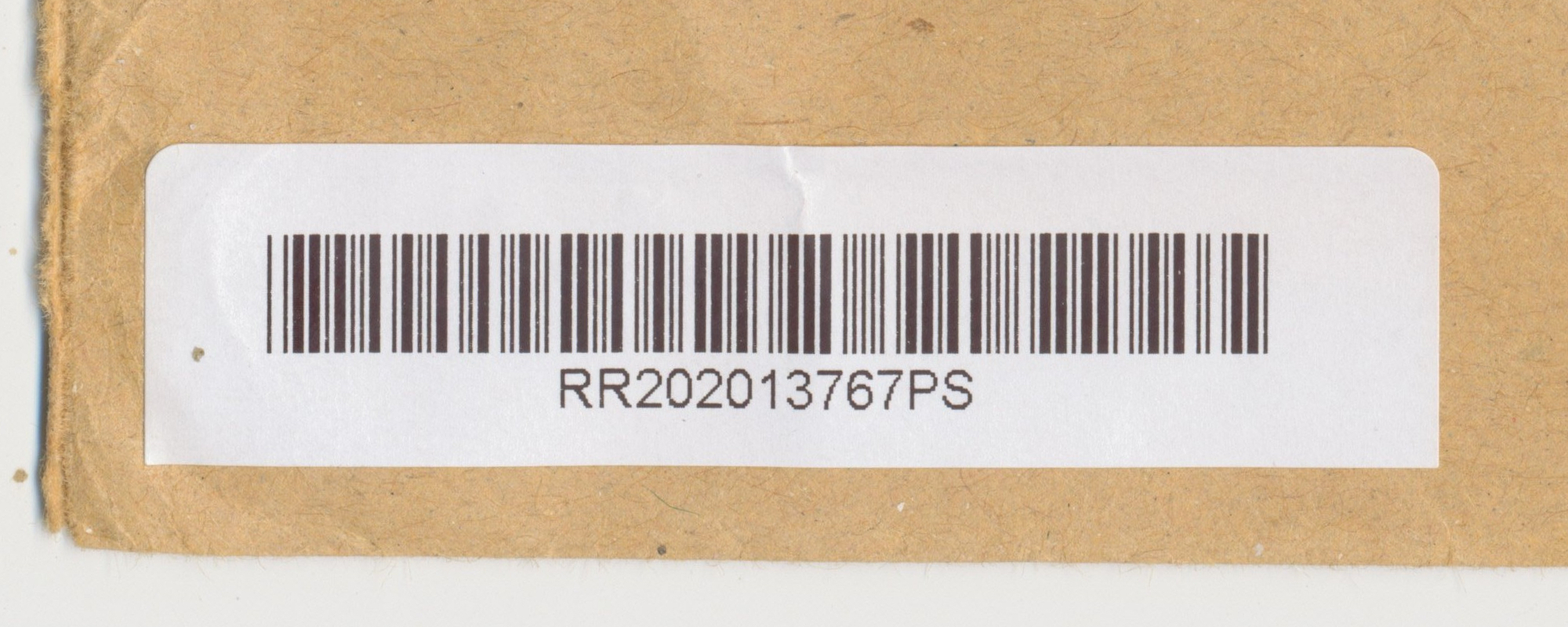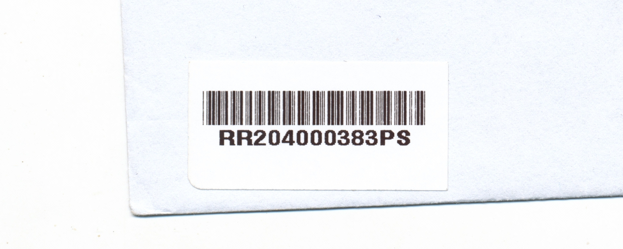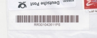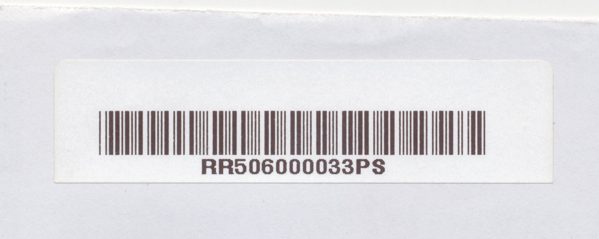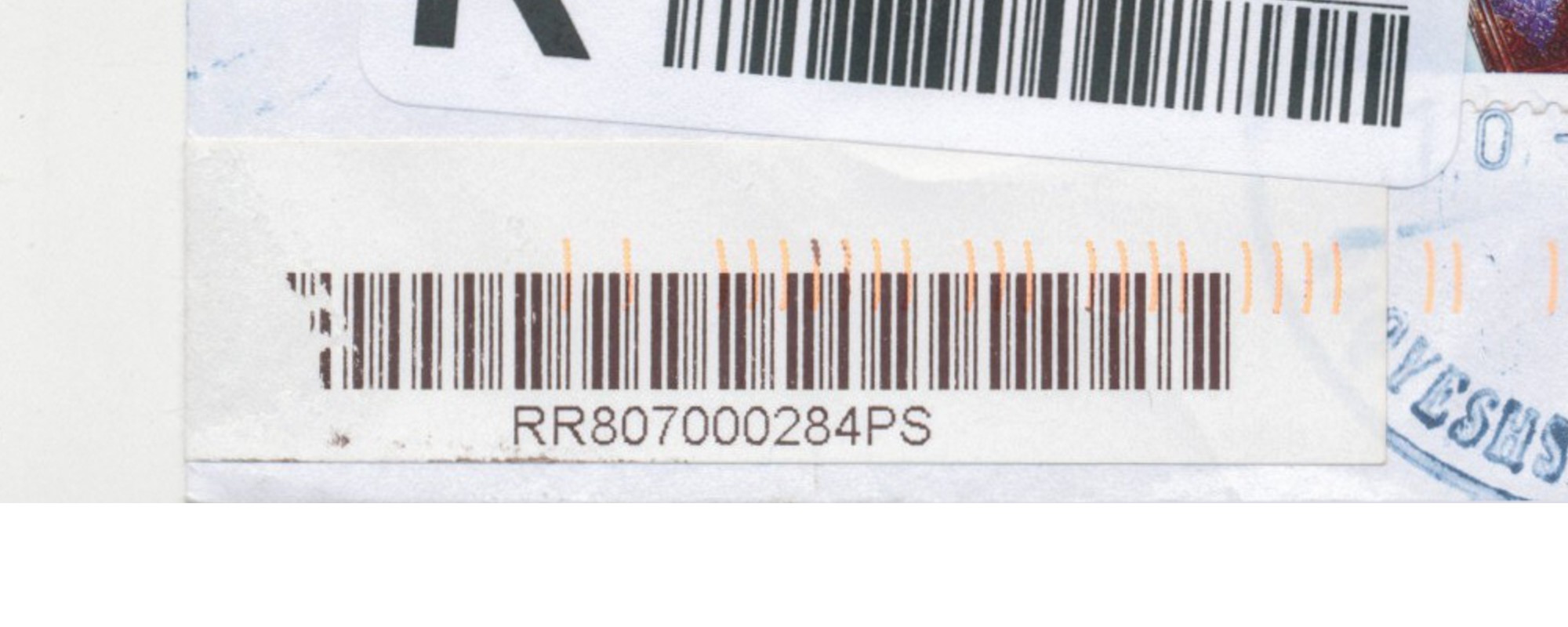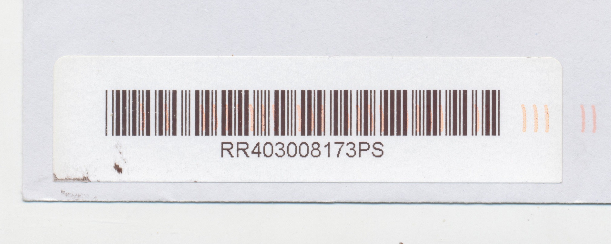 - white self-adhesive labels, printed in black. "IPS Light" linear barcode. With or without "Palestine Post" on top of imprinted numerator (9 digits) with prefixed RR and suffixed PS or ps. Label size varies.