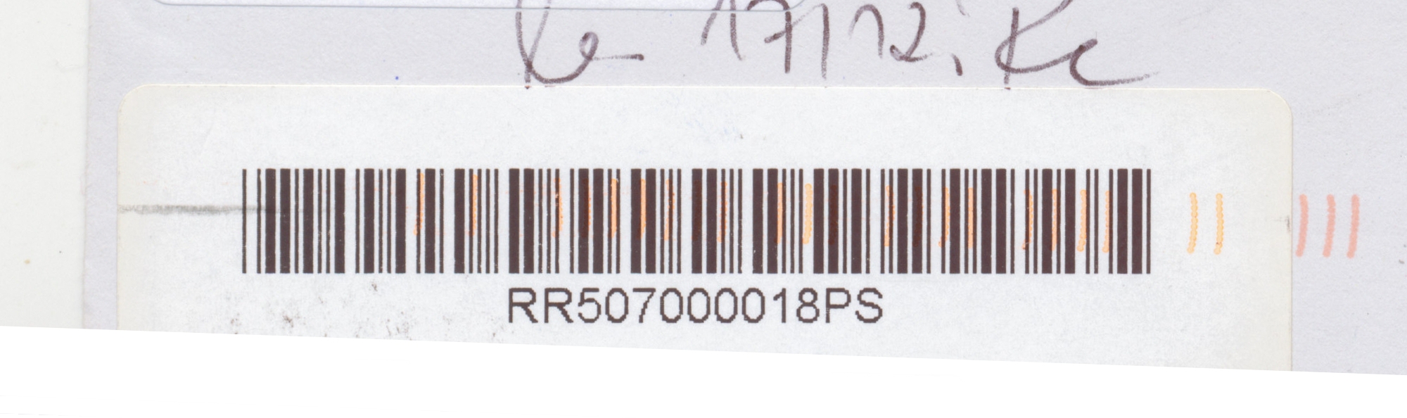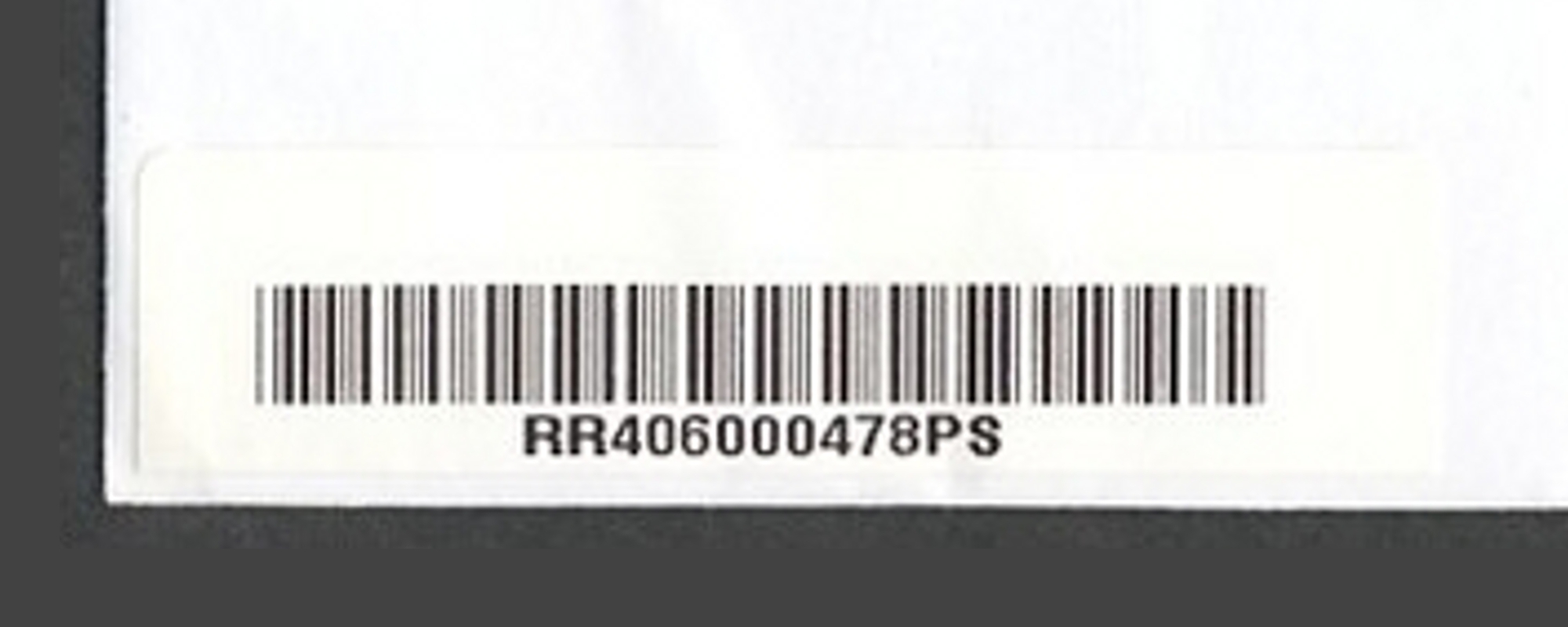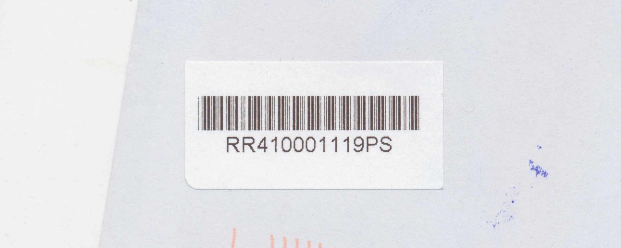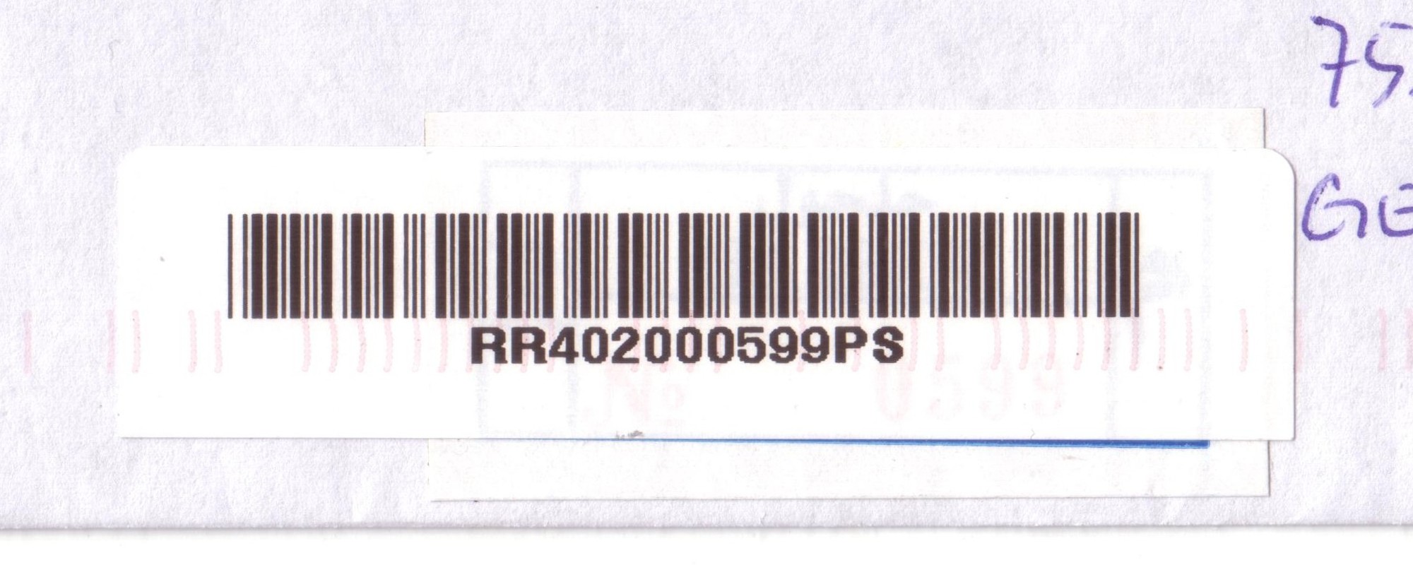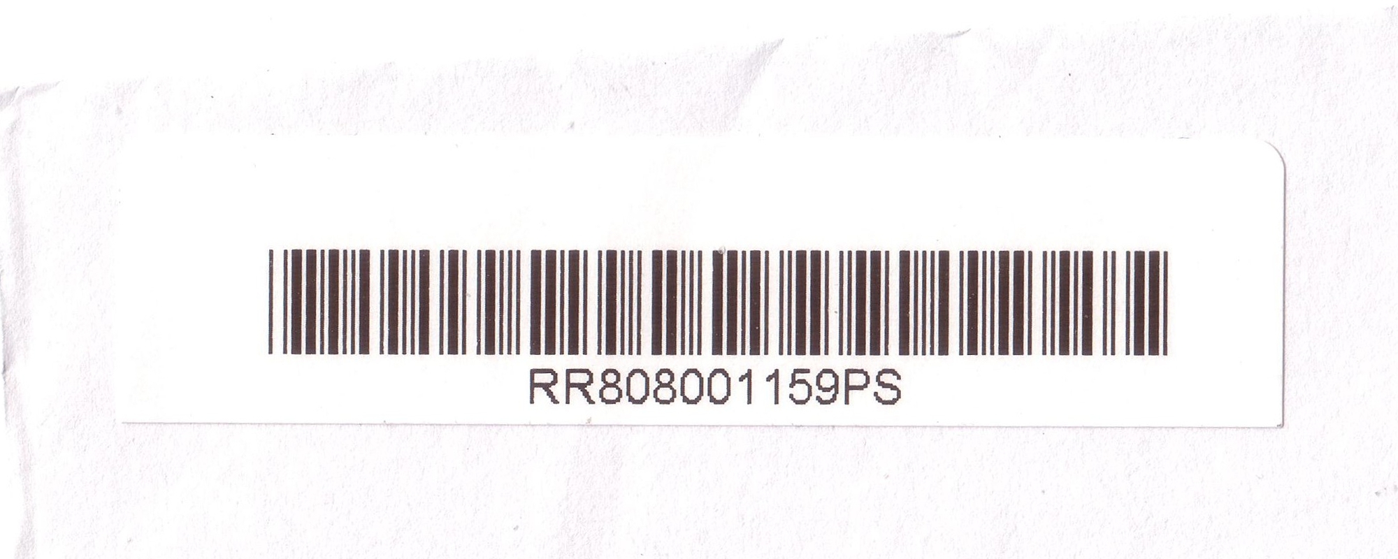 - white self-adhesive labels, printed in black. "IPS Light" linear barcode. With or without "Palestine Post" on top of imprinted numerator (9 digits) with prefixed RR and suffixed PS or ps. Label size varies.