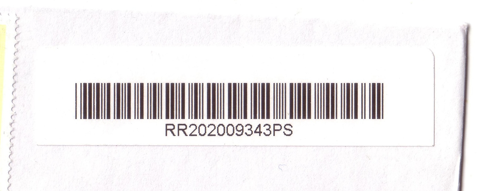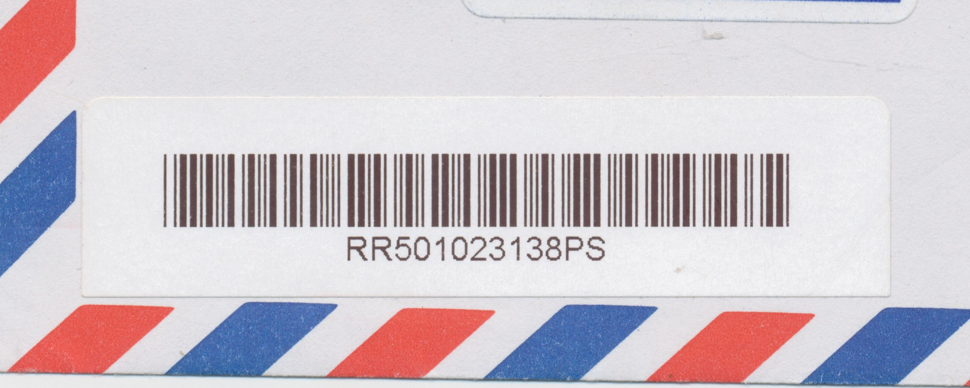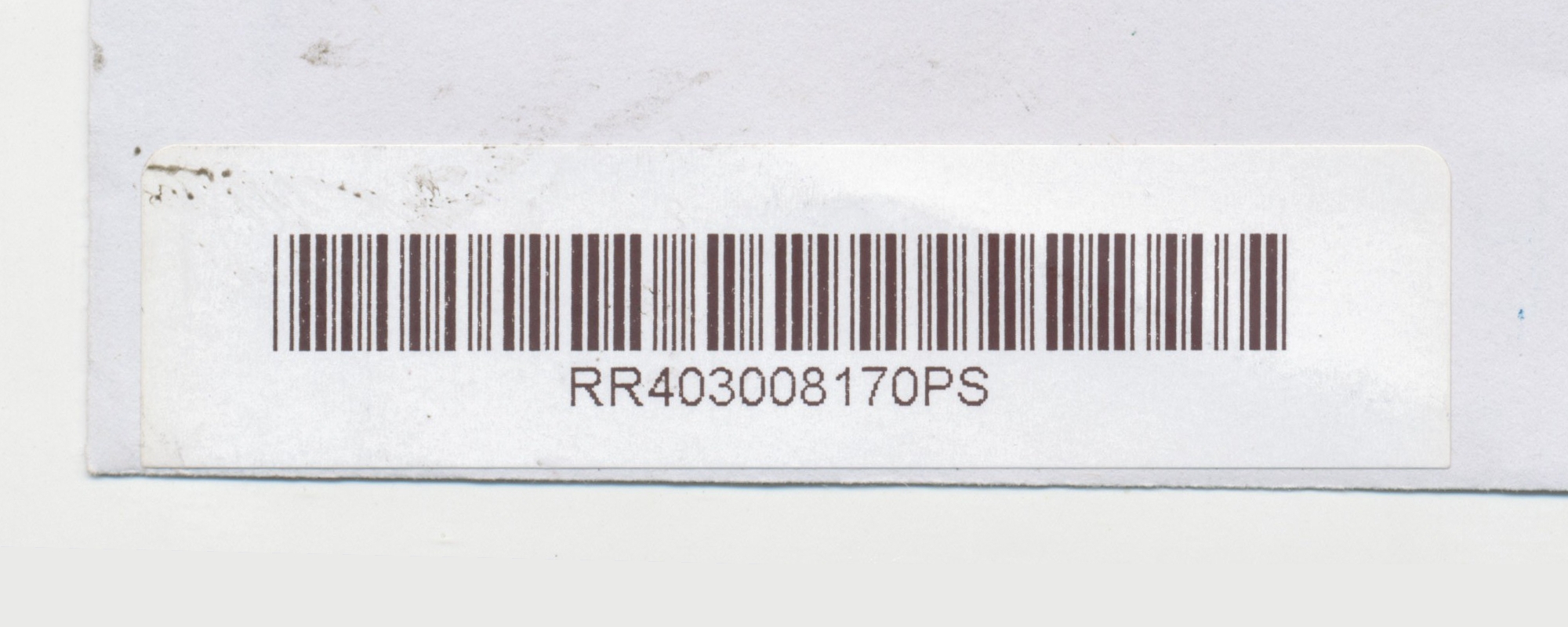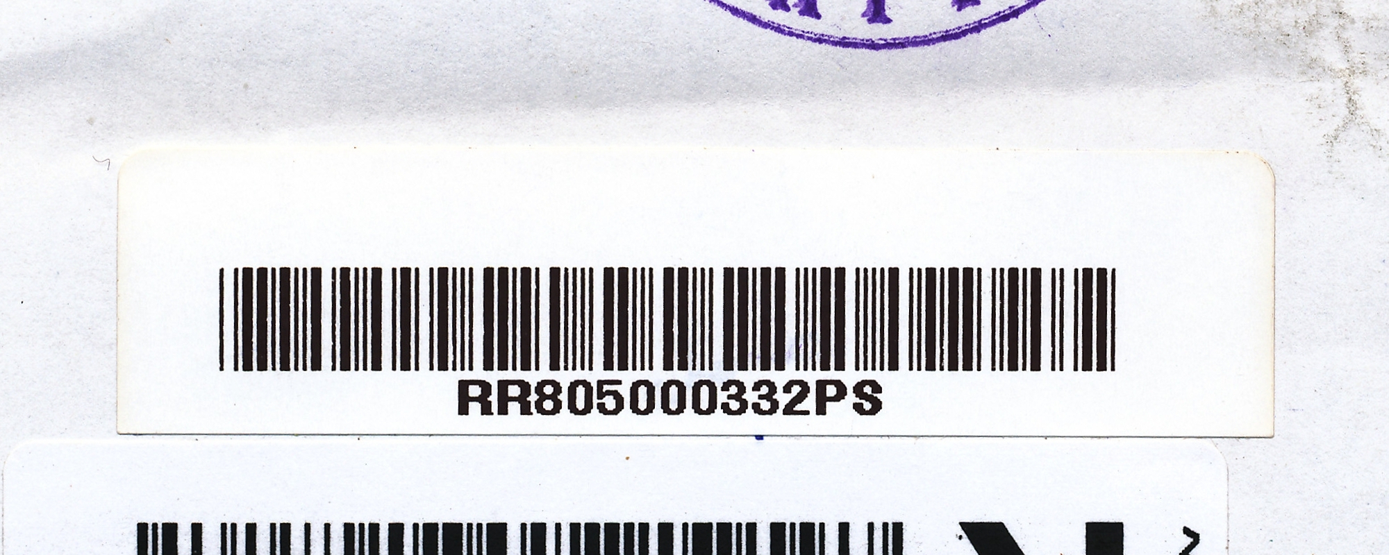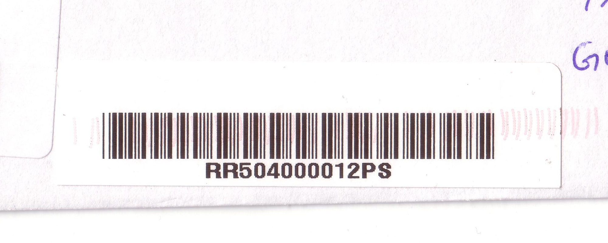 - white self-adhesive labels, printed in black. "IPS Light" linear barcode. With or without "Palestine Post" on top of imprinted numerator (9 digits) with prefixed RR and suffixed PS or ps. Label size varies.