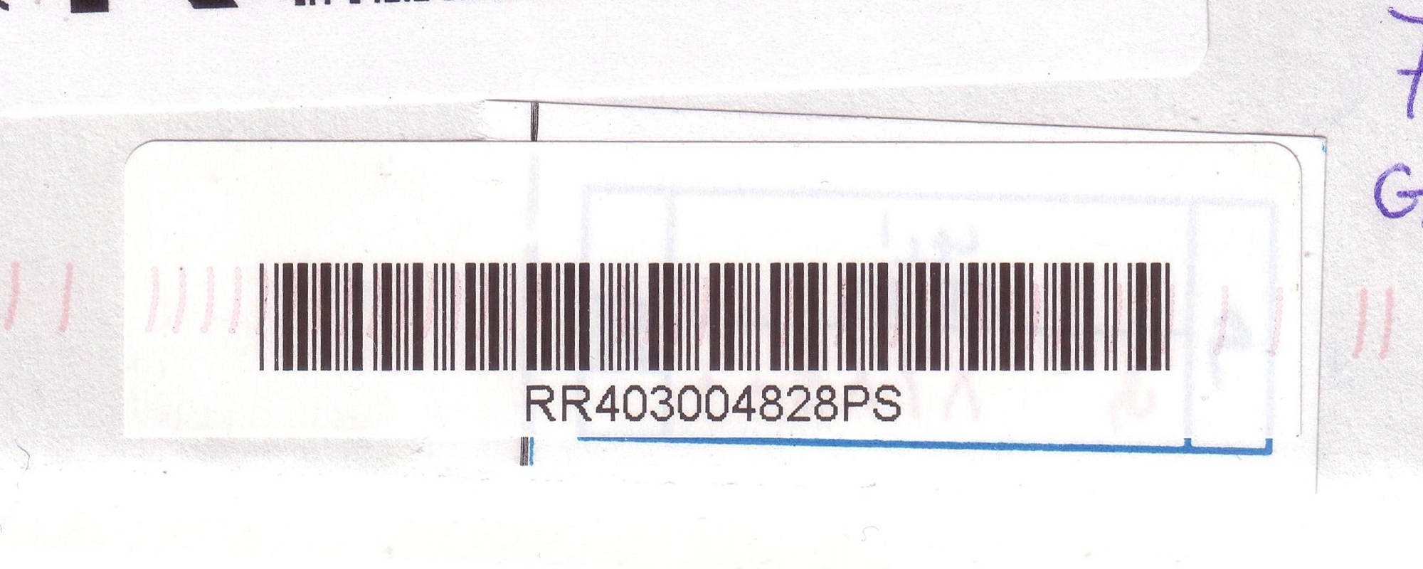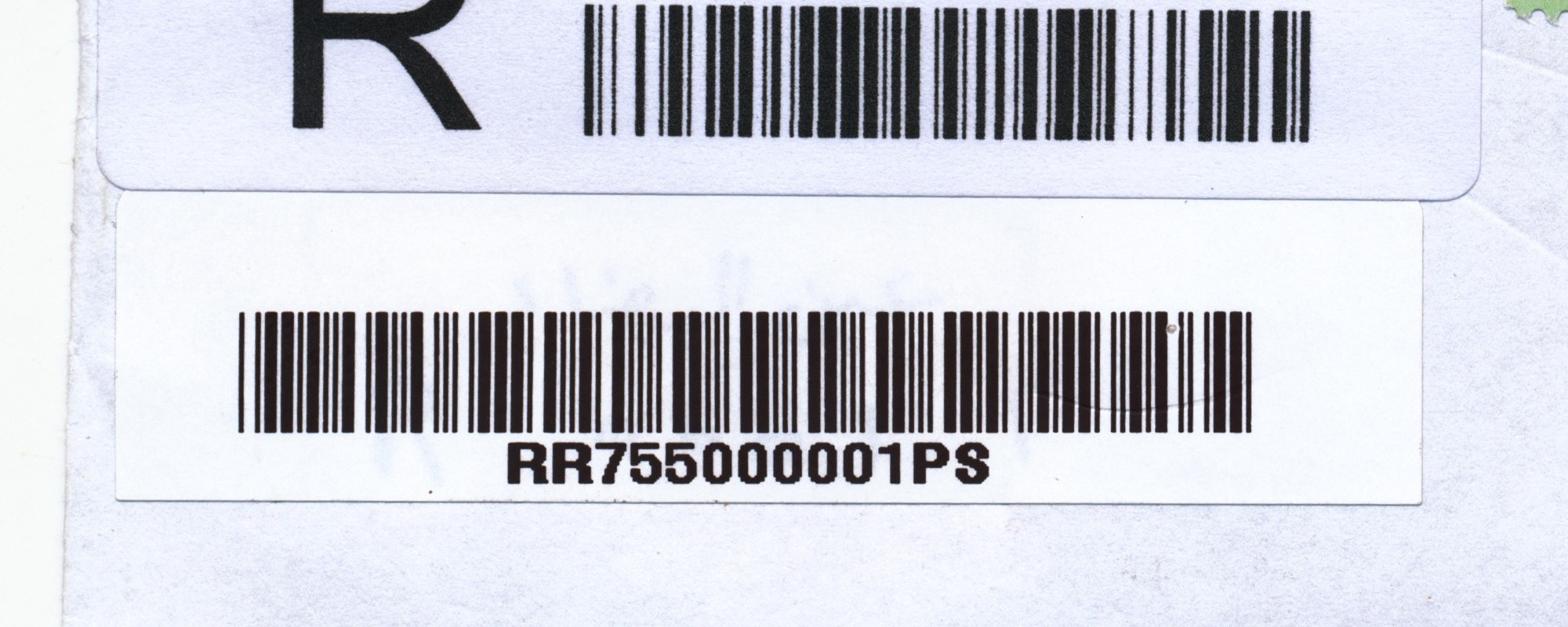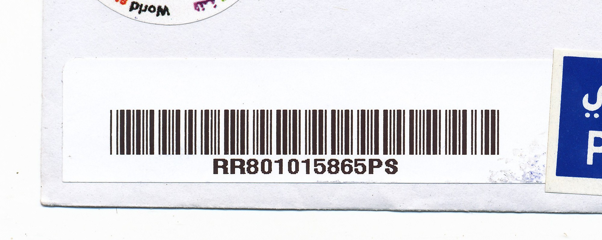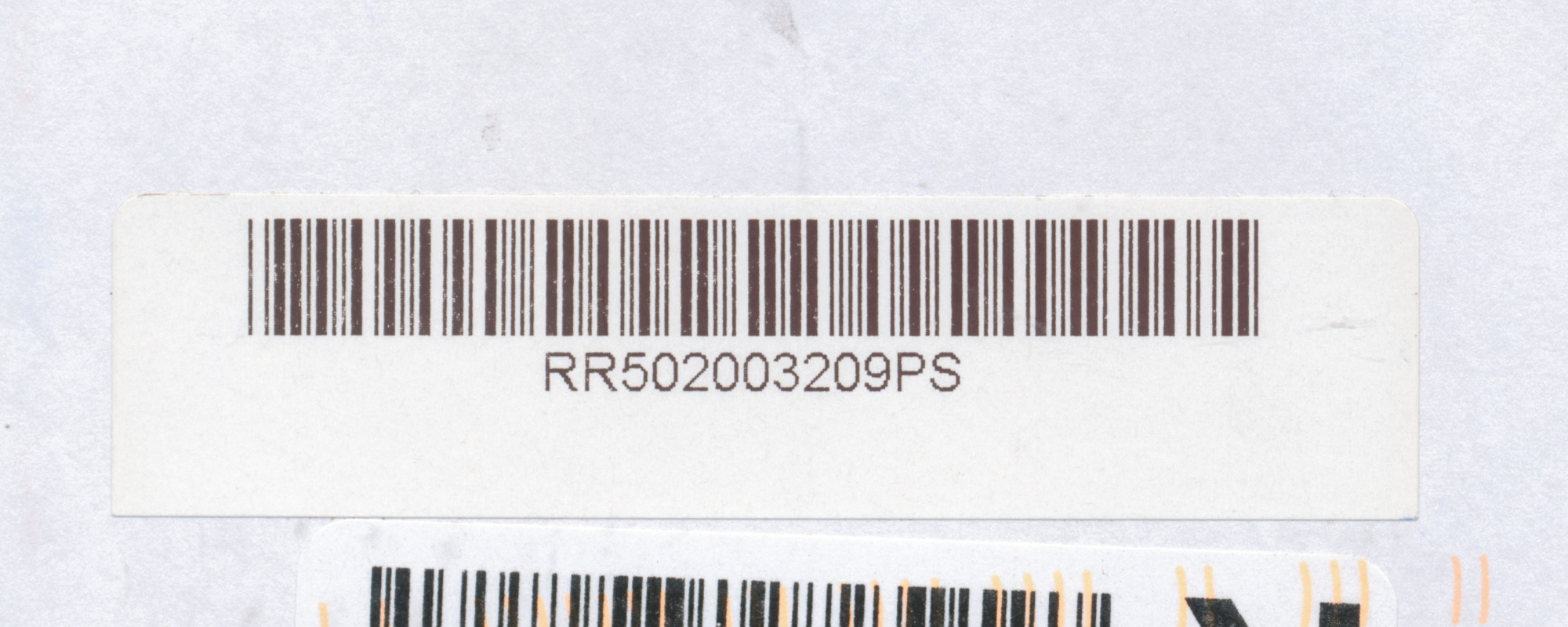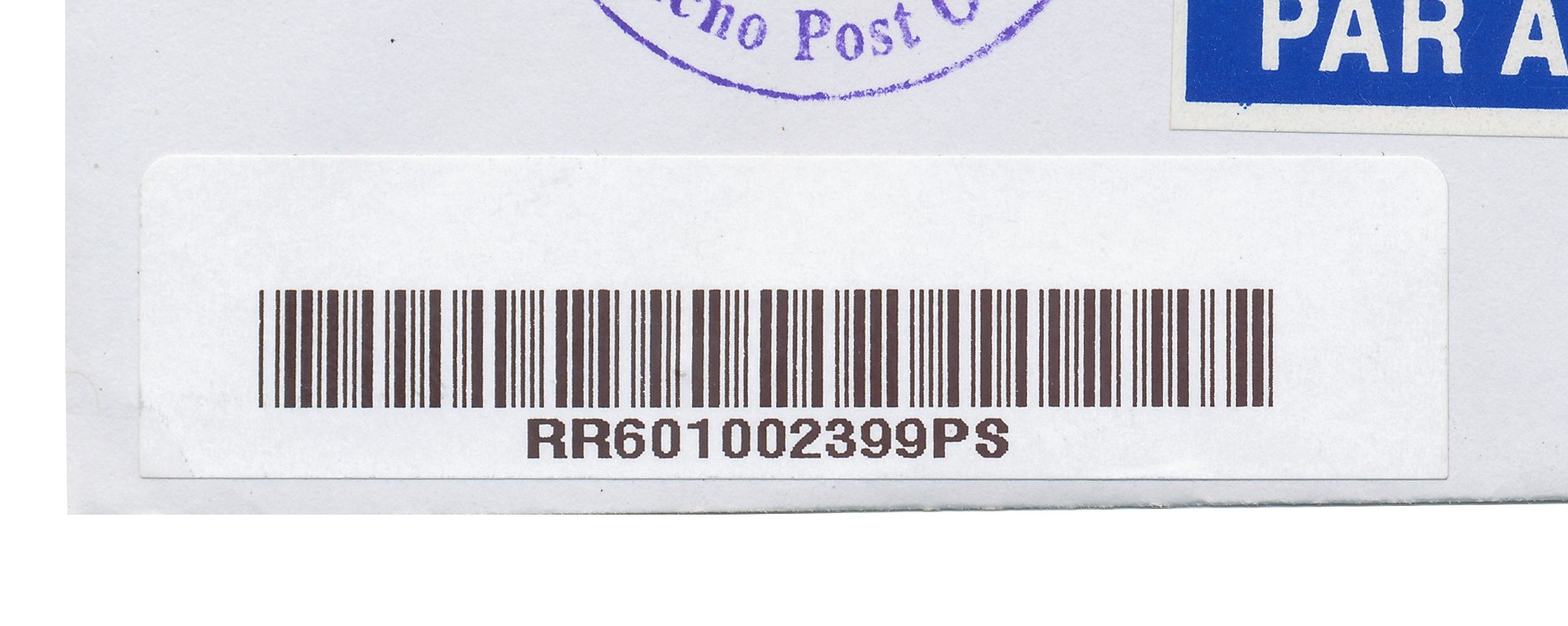 - white self-adhesive labels, printed in black. "IPS Light" linear barcode. With or without "Palestine Post" on top of imprinted numerator (9 digits) with prefixed RR and suffixed PS or ps. Label size varies.