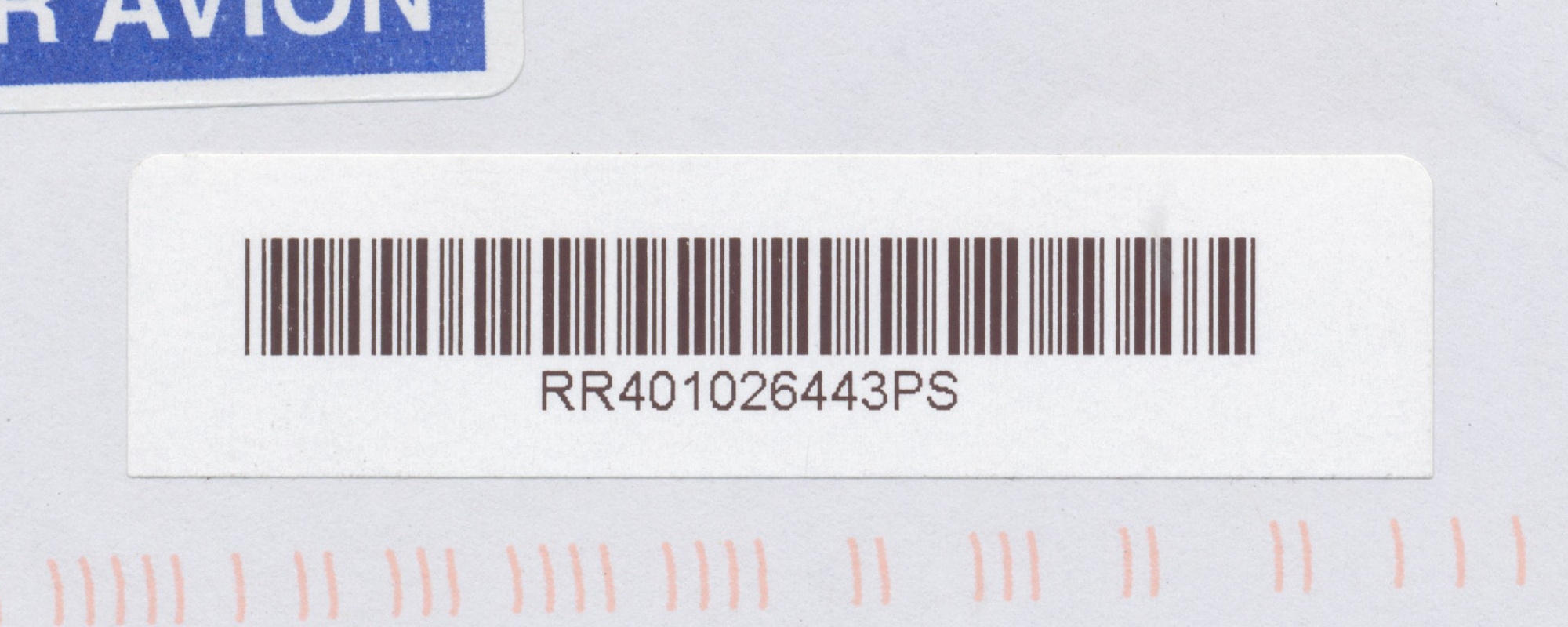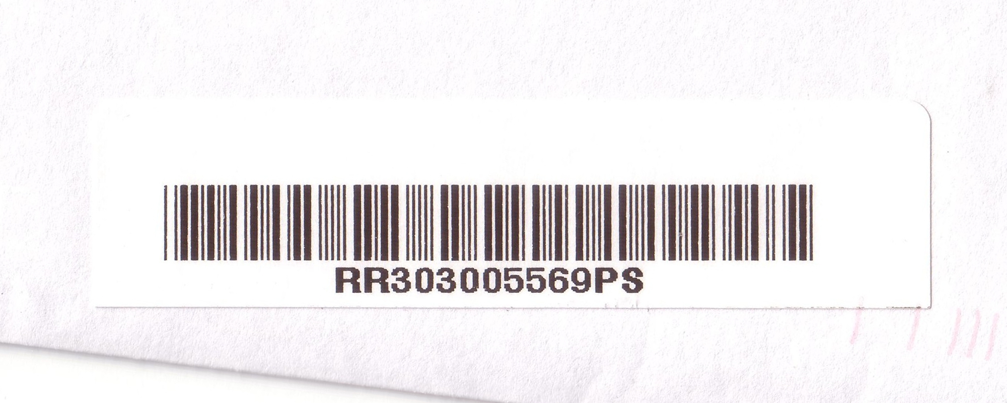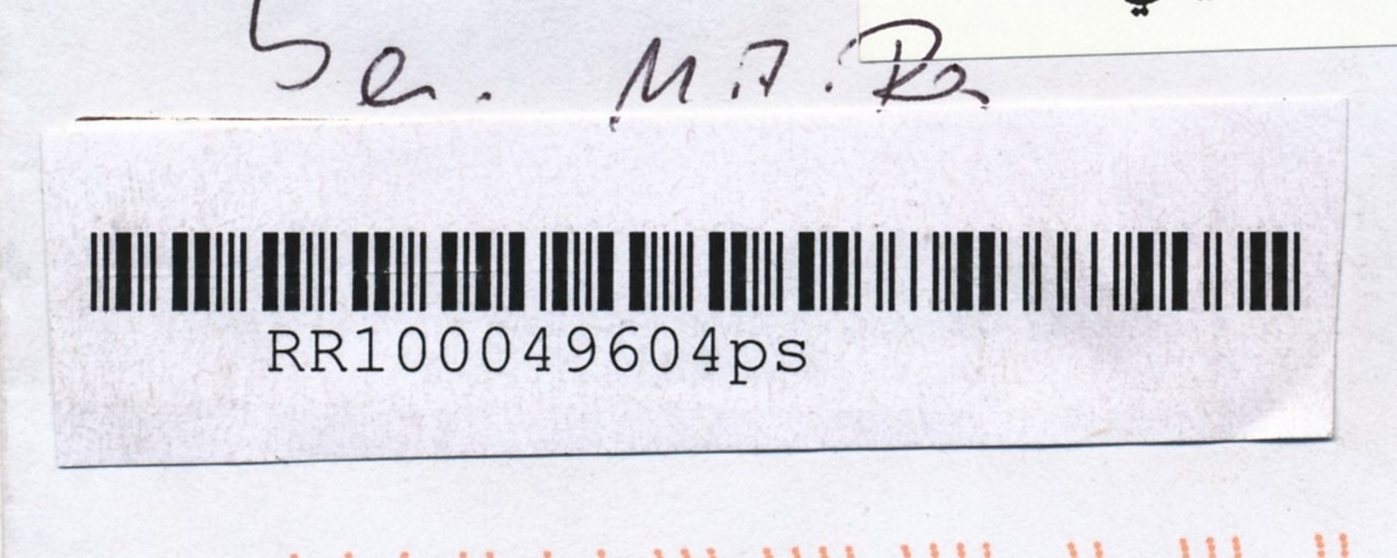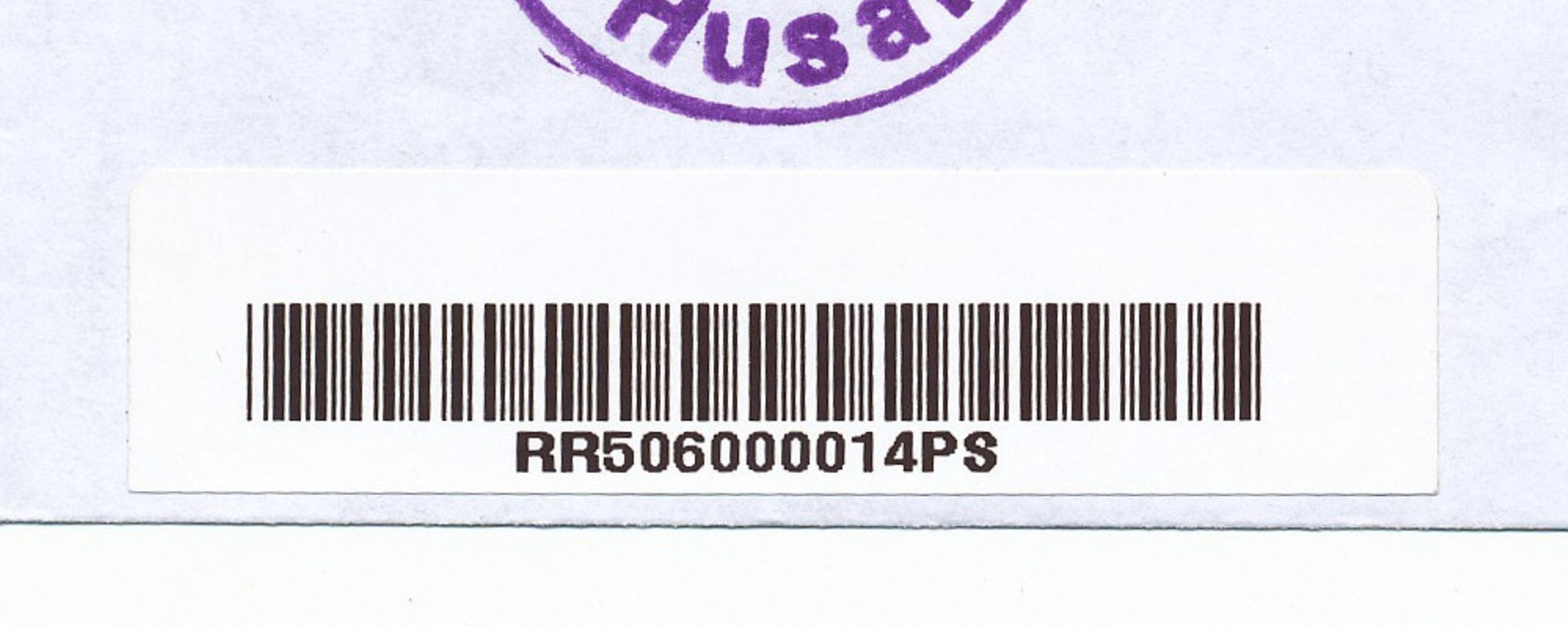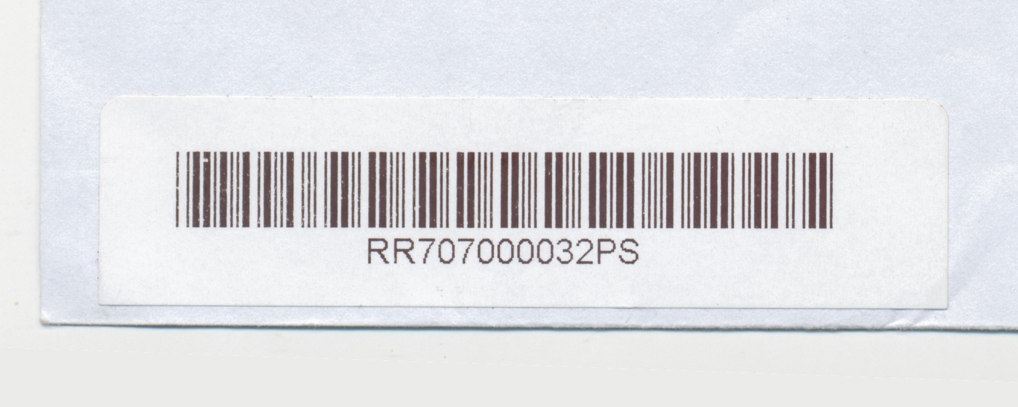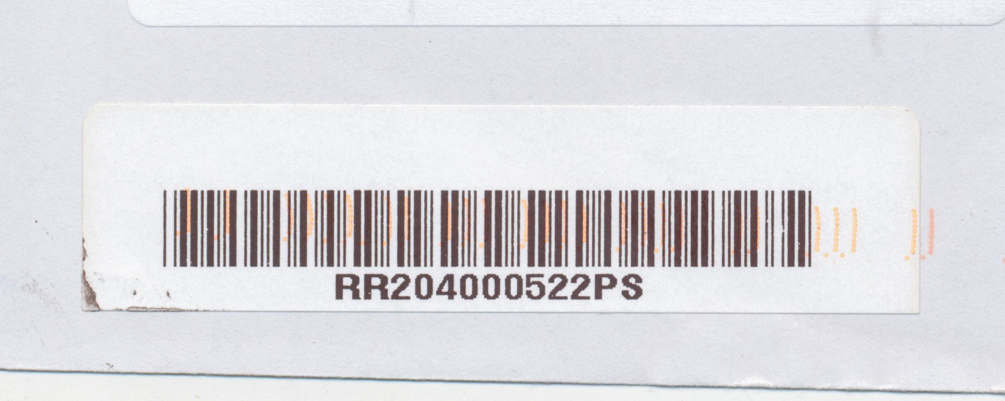 - white self-adhesive labels, printed in black. "IPS Light" linear barcode. With or without "Palestine Post" on top of imprinted numerator (9 digits) with prefixed RR and suffixed PS or ps. Label size varies.