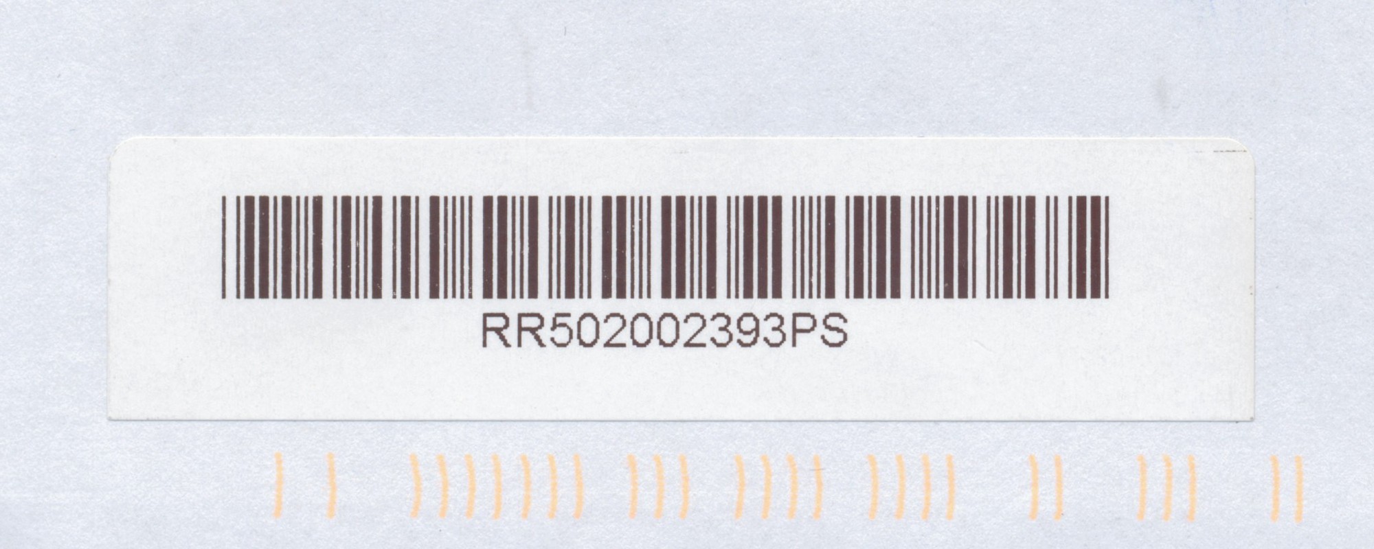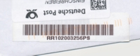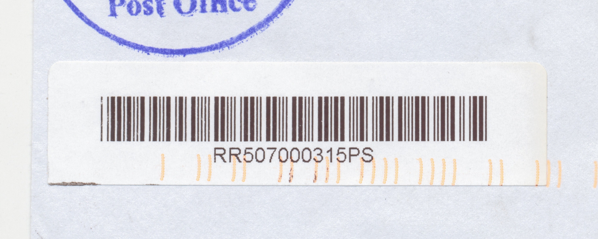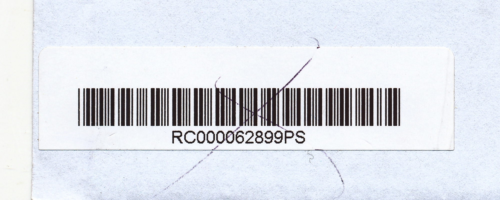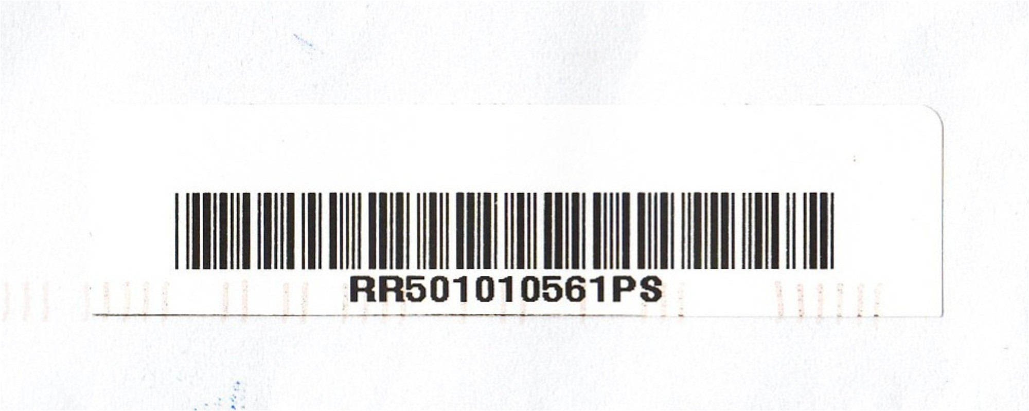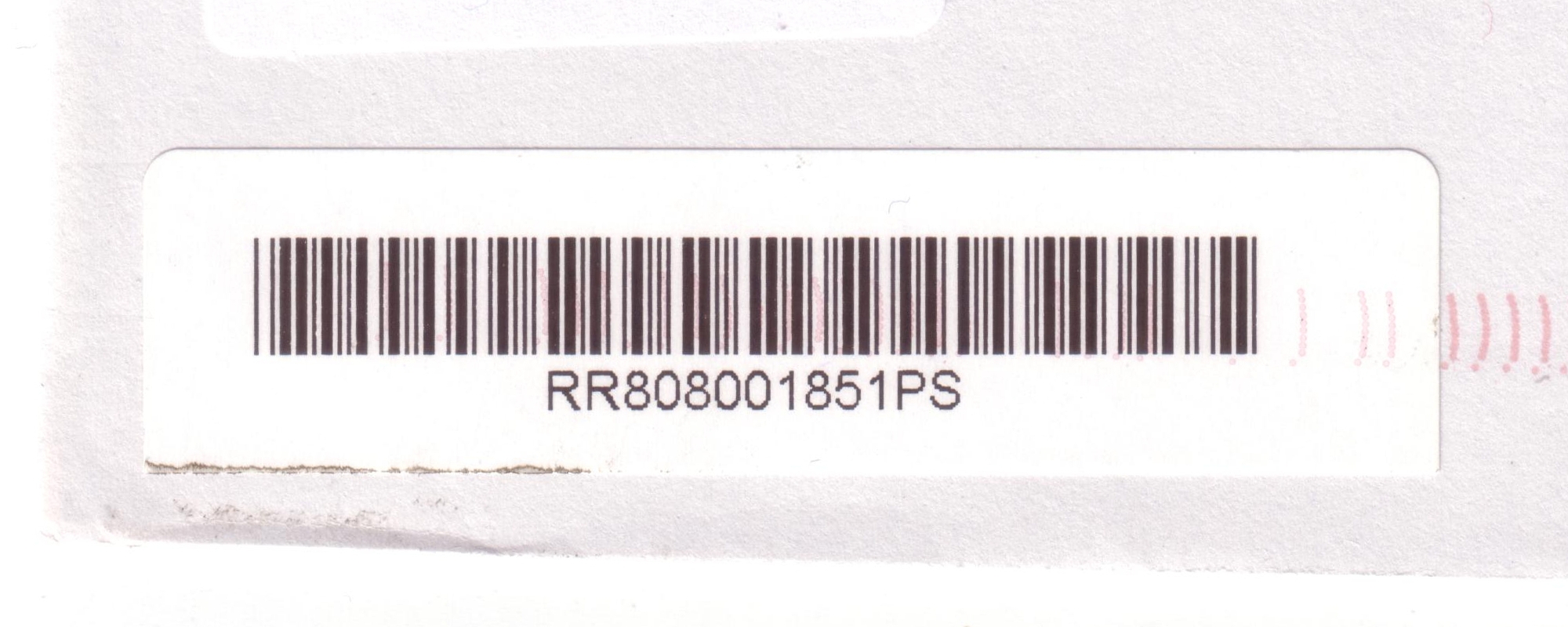 - white self-adhesive labels, printed in black. "IPS Light" linear barcode. With or without "Palestine Post" on top of imprinted numerator (9 digits) with prefixed RR and suffixed PS or ps. Label size varies.