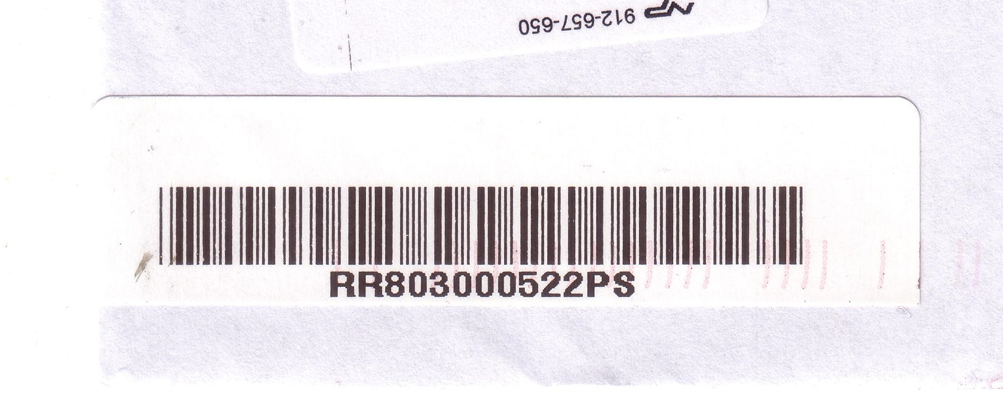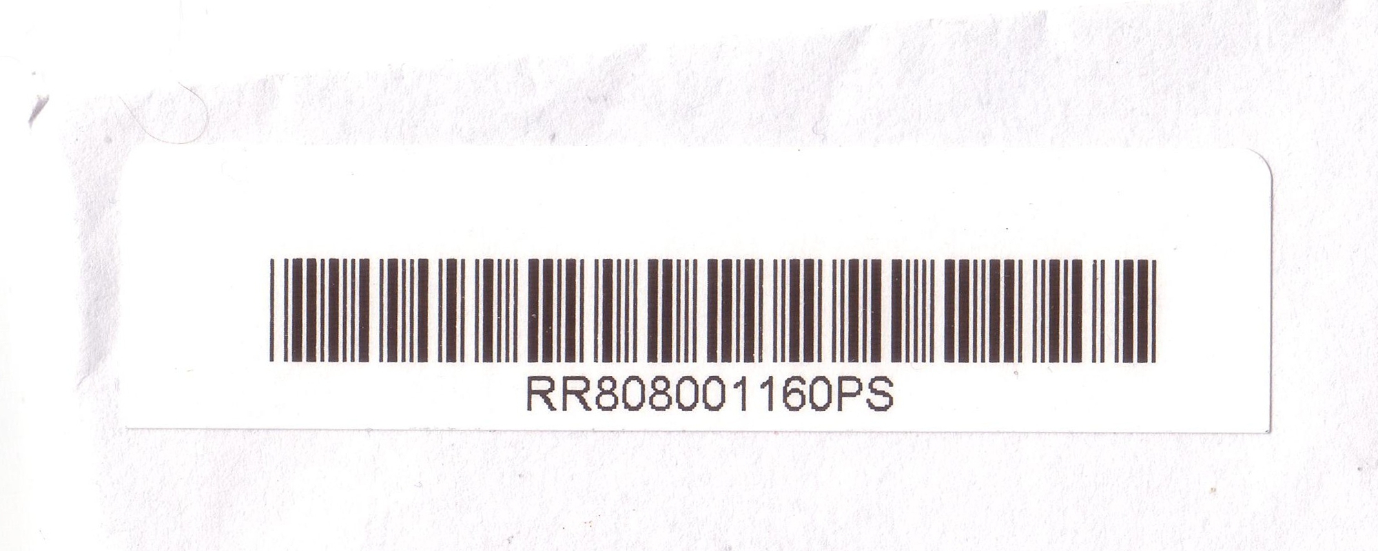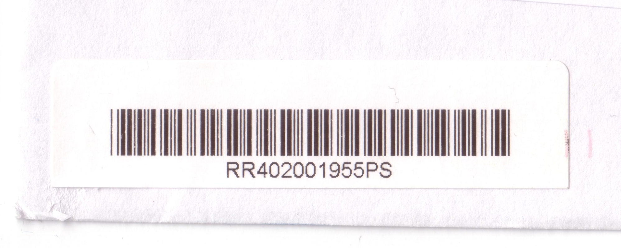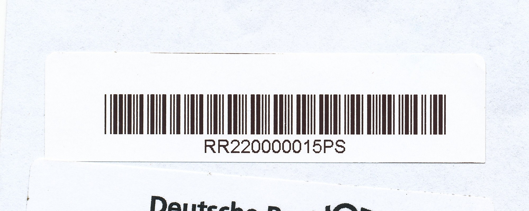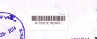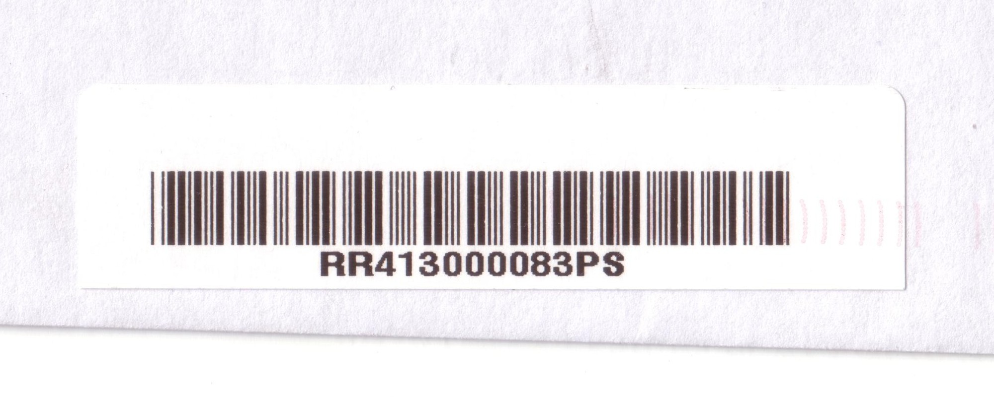 - white self-adhesive labels, printed in black. "IPS Light" linear barcode. With or without "Palestine Post" on top of imprinted numerator (9 digits) with prefixed RR and suffixed PS or ps. Label size varies.
