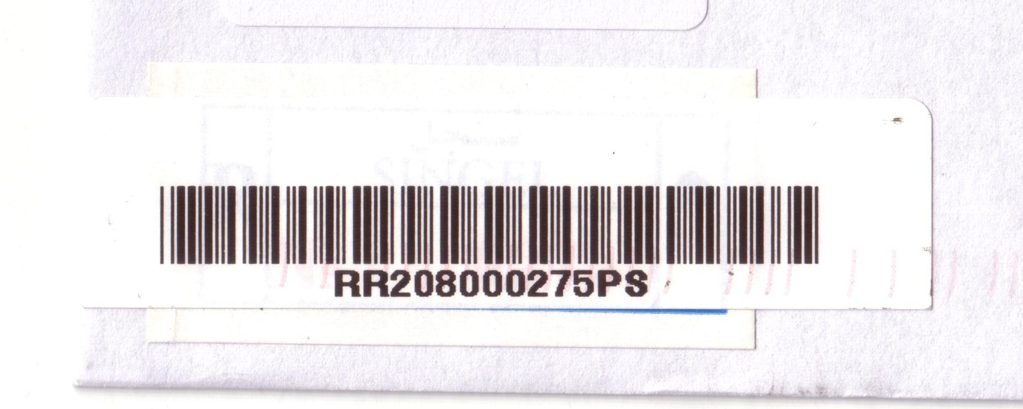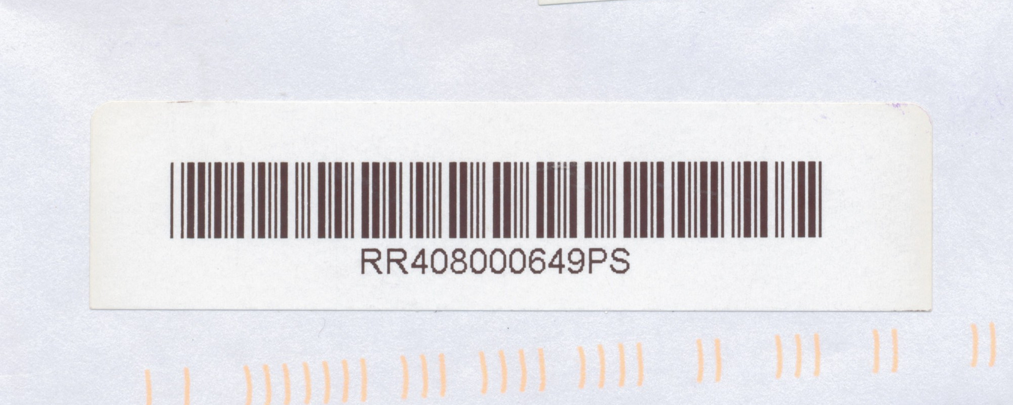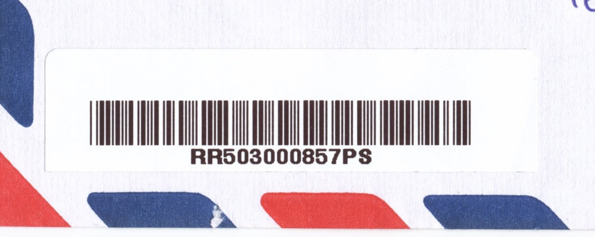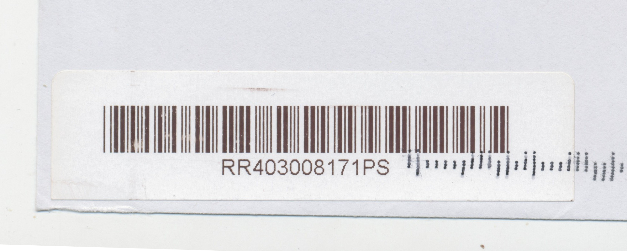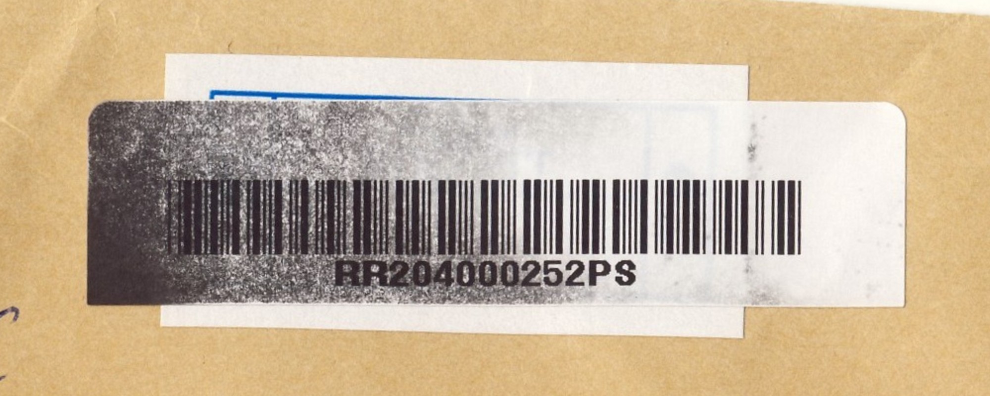 - white self-adhesive labels, printed in black. "IPS Light" linear barcode. With or without "Palestine Post" on top of imprinted numerator (9 digits) with prefixed RR and suffixed PS or ps. Label size varies.