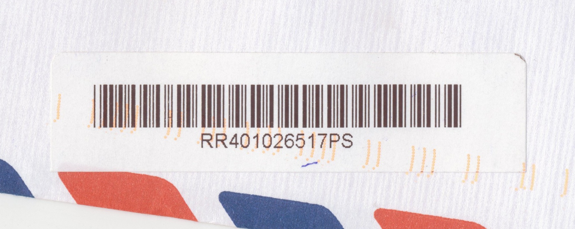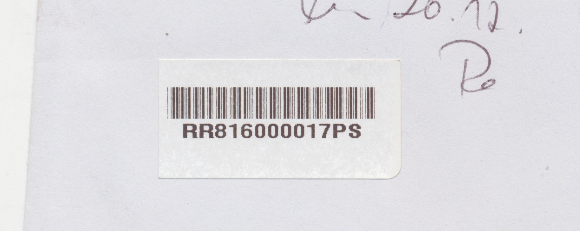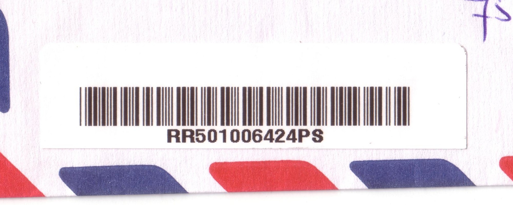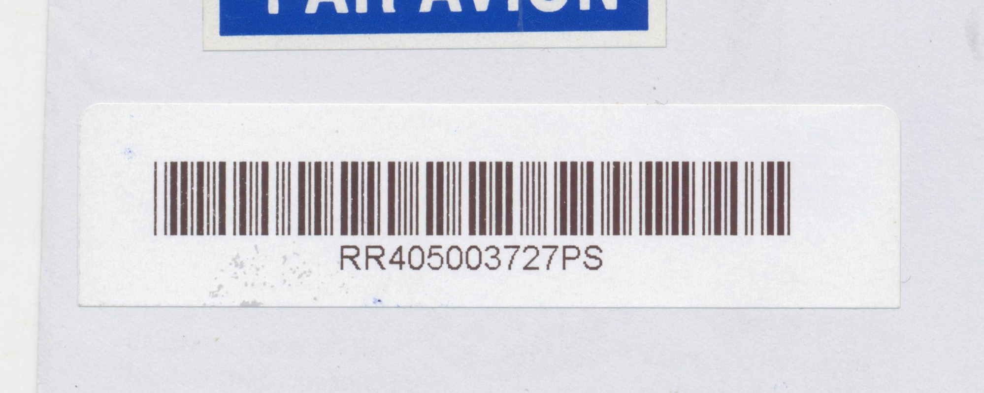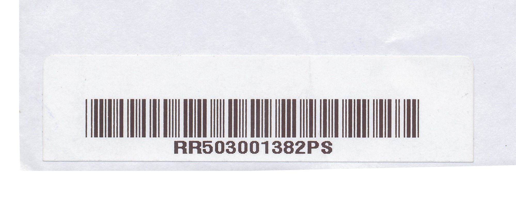 - white self-adhesive labels, printed in black. "IPS Light" linear barcode. With or without "Palestine Post" on top of imprinted numerator (9 digits) with prefixed RR and suffixed PS or ps. Label size varies.
