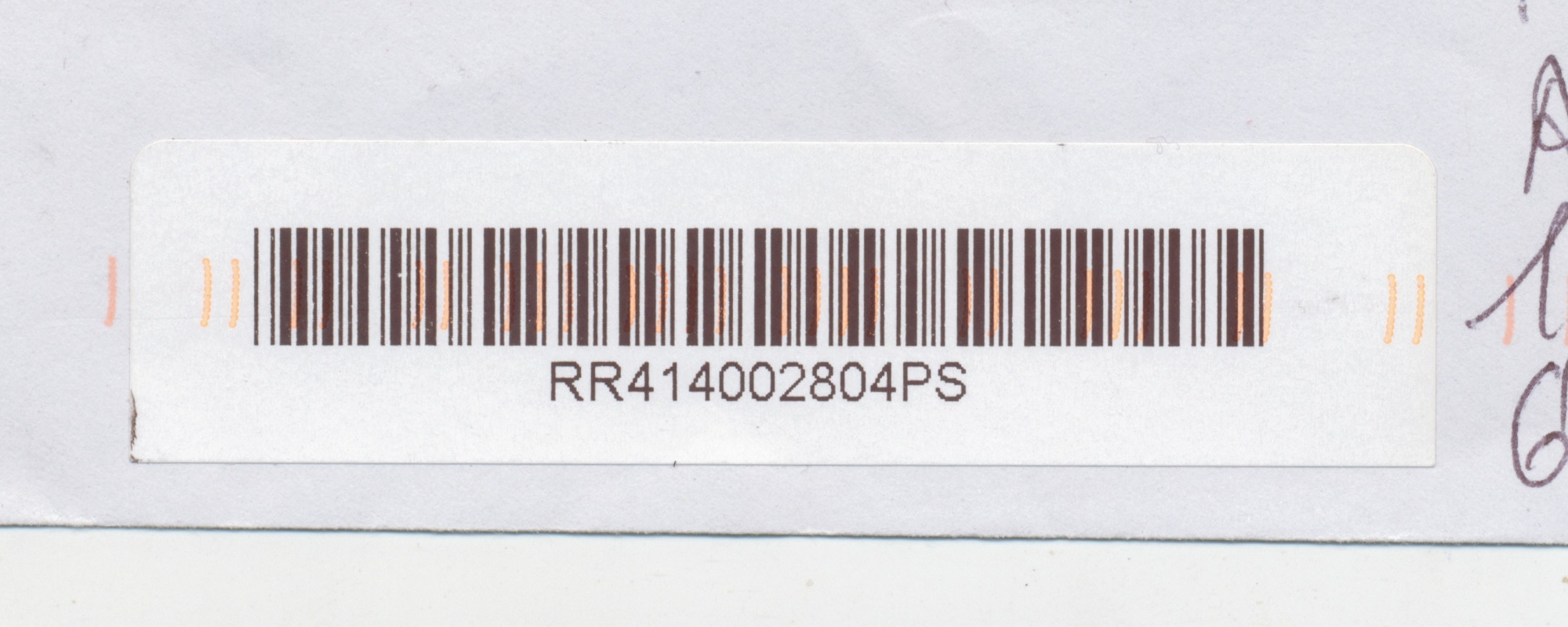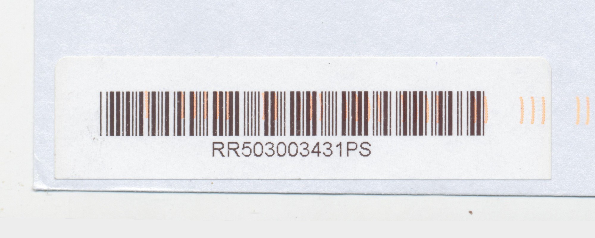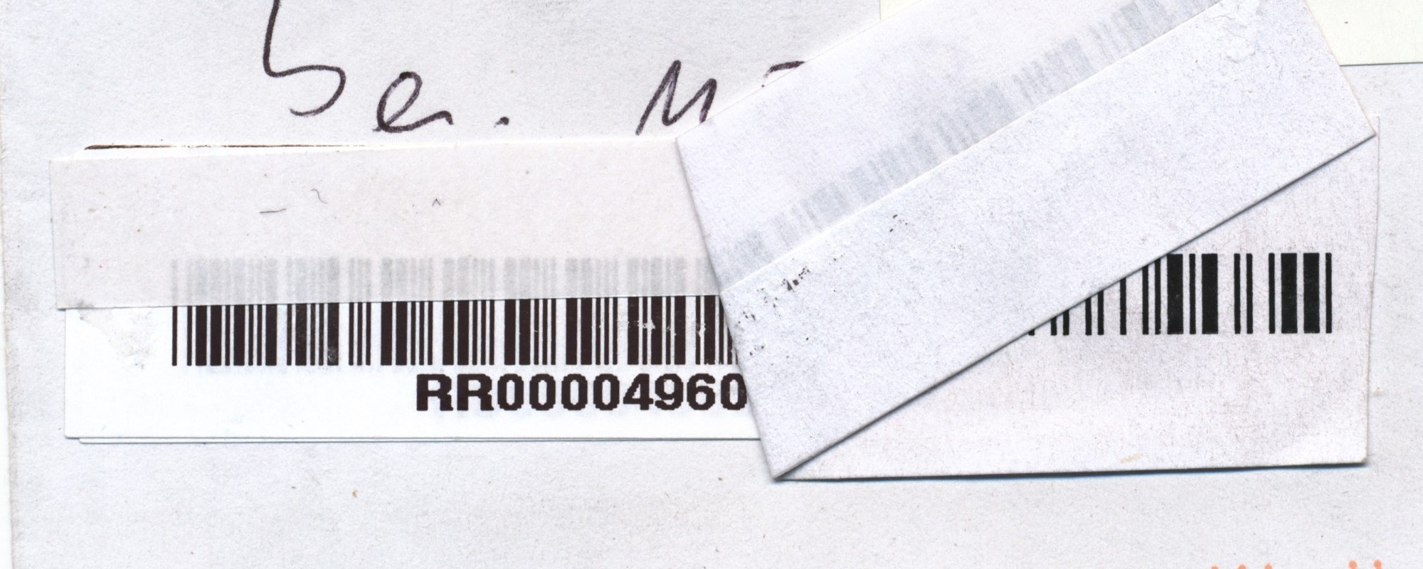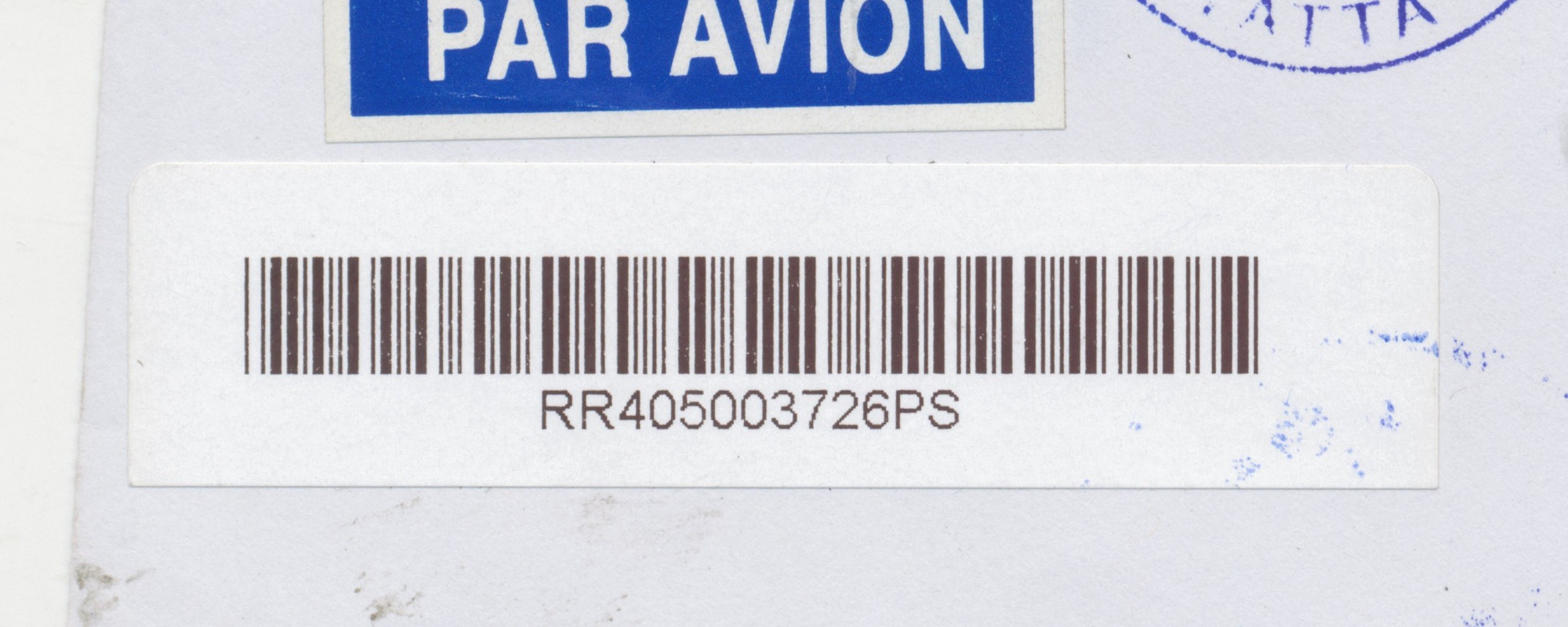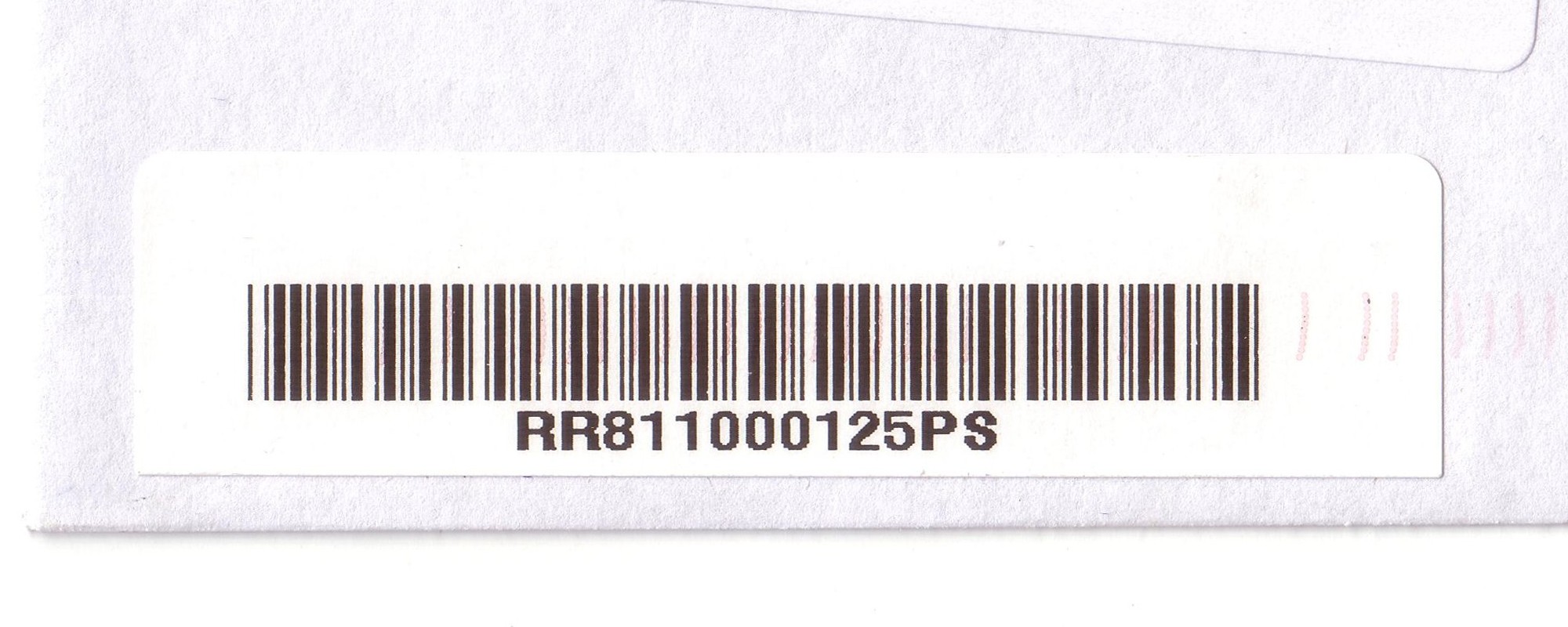 - white self-adhesive labels, printed in black. "IPS Light" linear barcode. With or without "Palestine Post" on top of imprinted numerator (9 digits) with prefixed RR and suffixed PS or ps. Label size varies.
