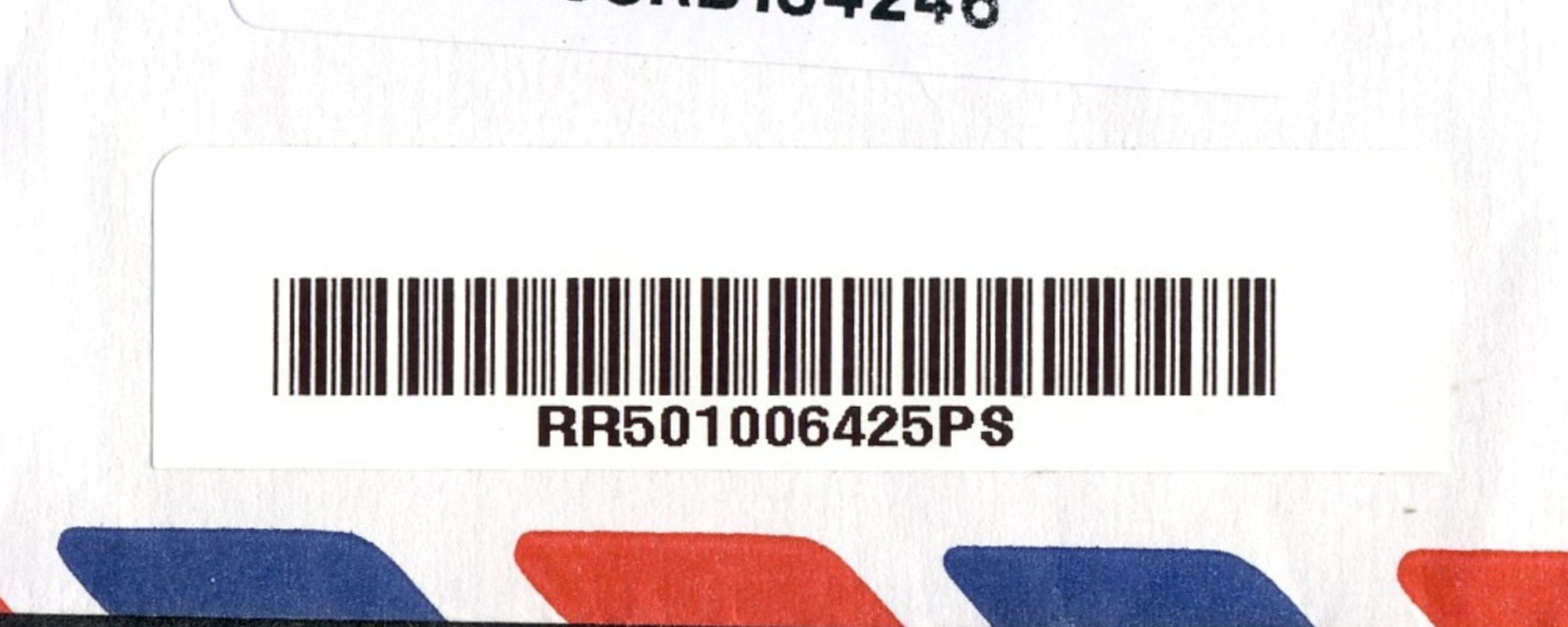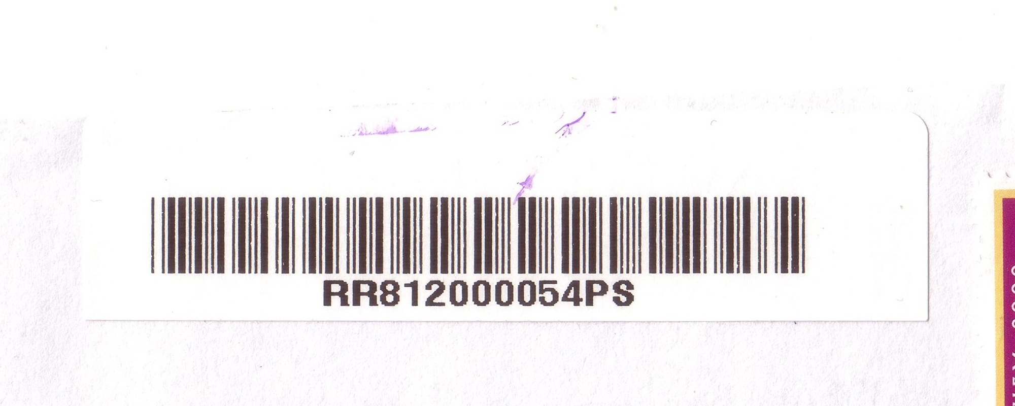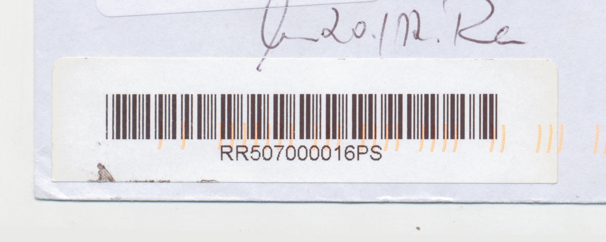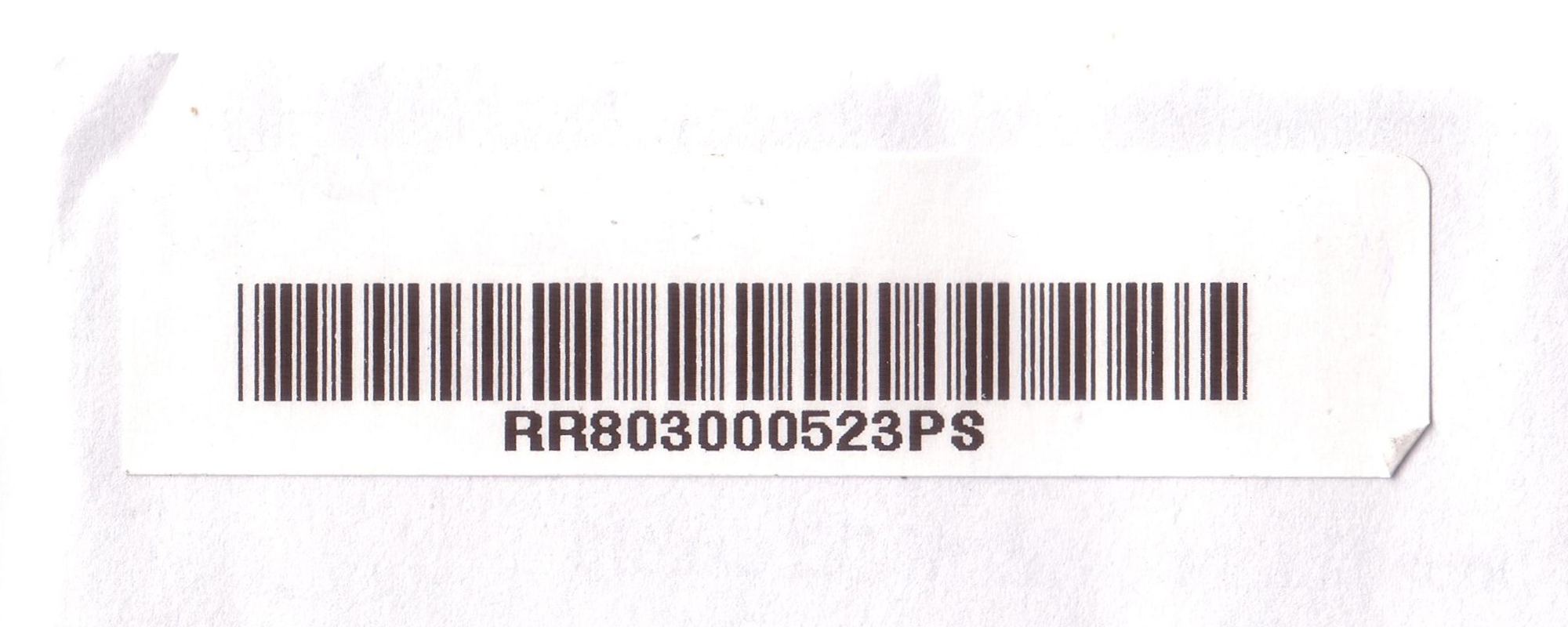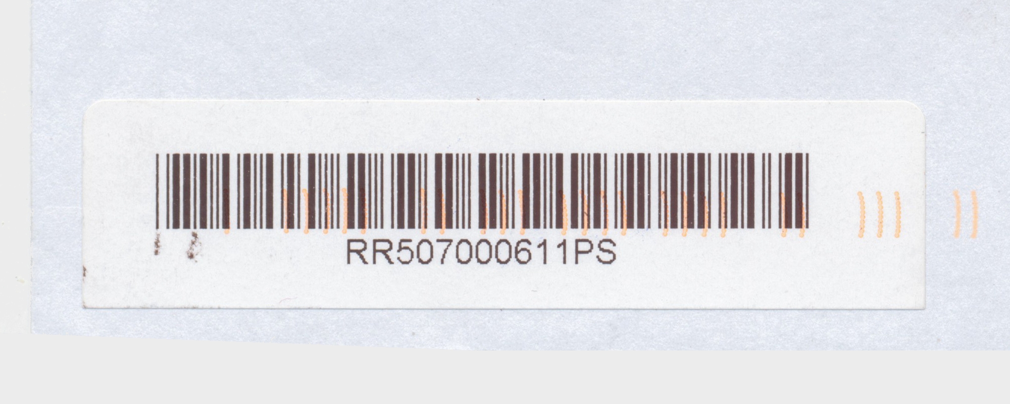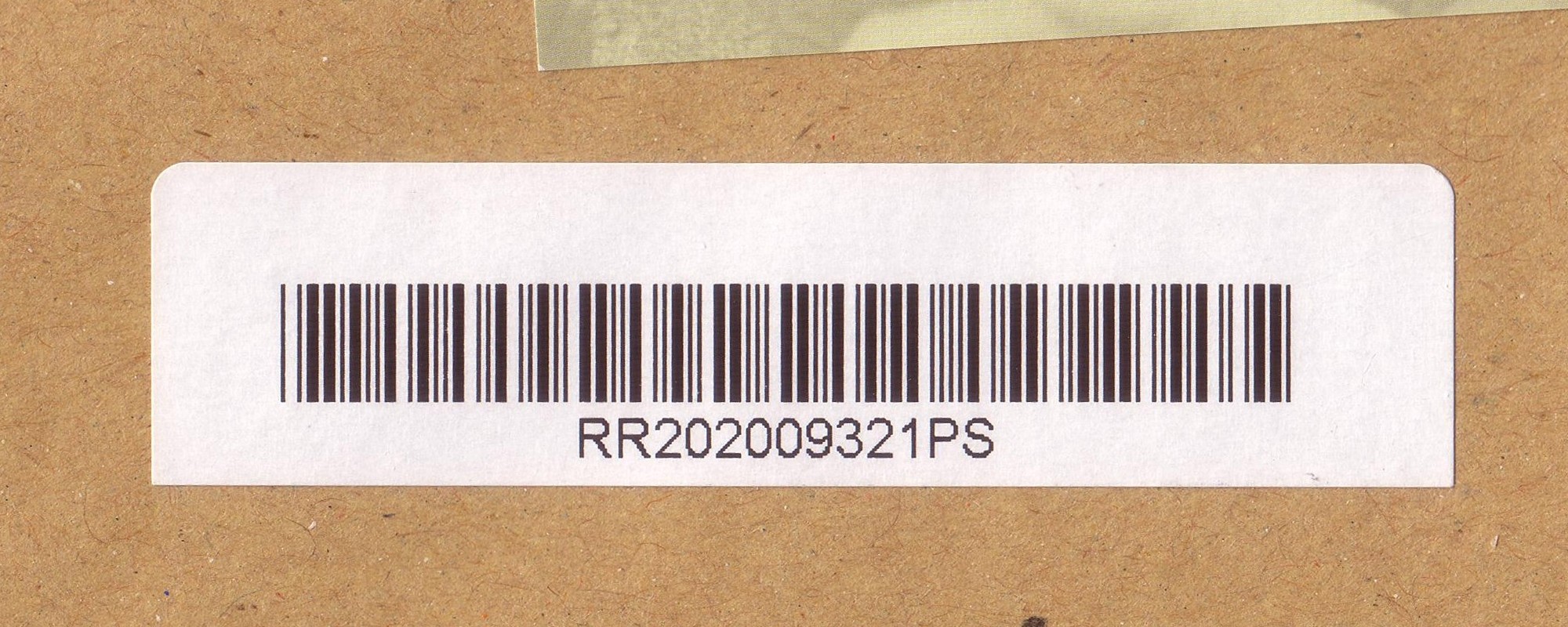 - white self-adhesive labels, printed in black. "IPS Light" linear barcode. With or without "Palestine Post" on top of imprinted numerator (9 digits) with prefixed RR and suffixed PS or ps. Label size varies.