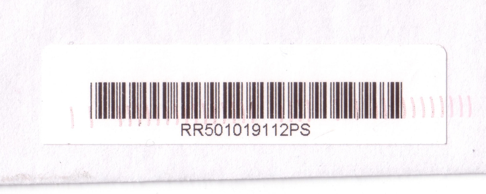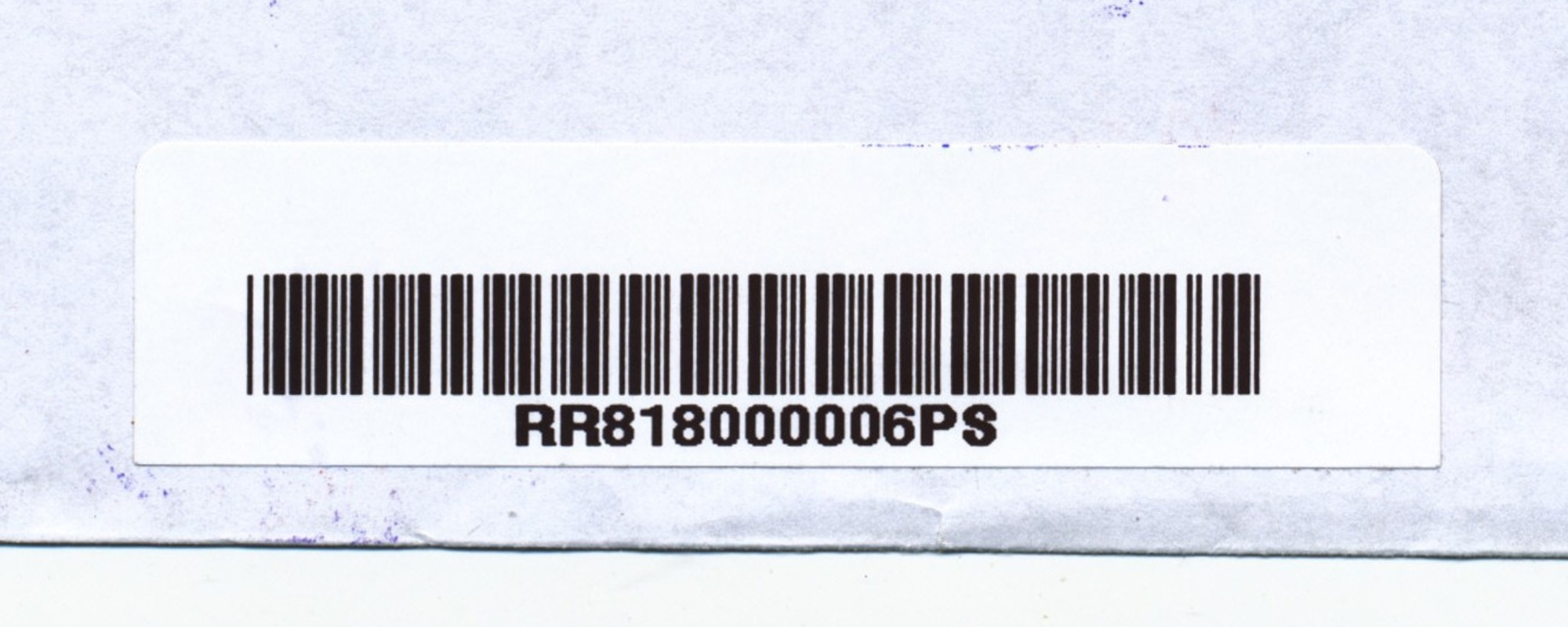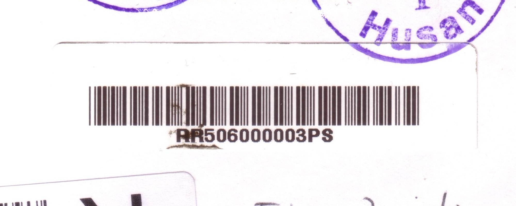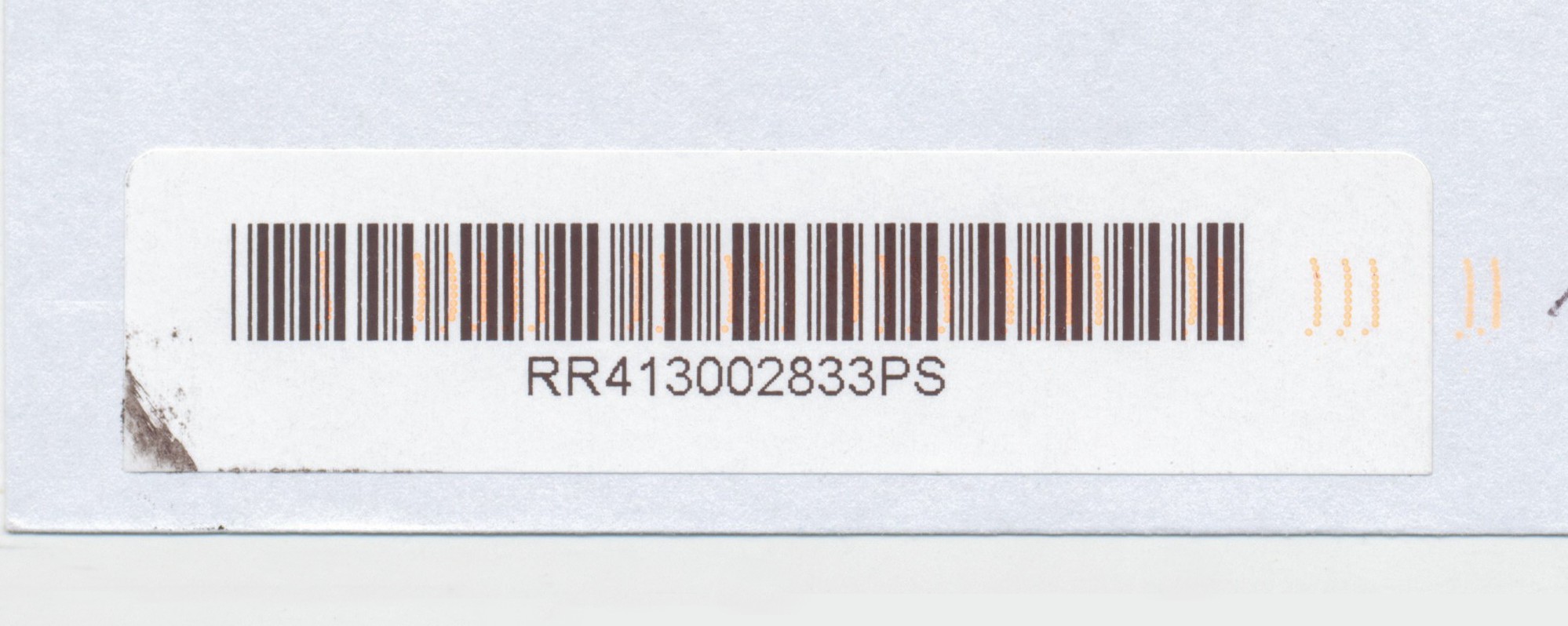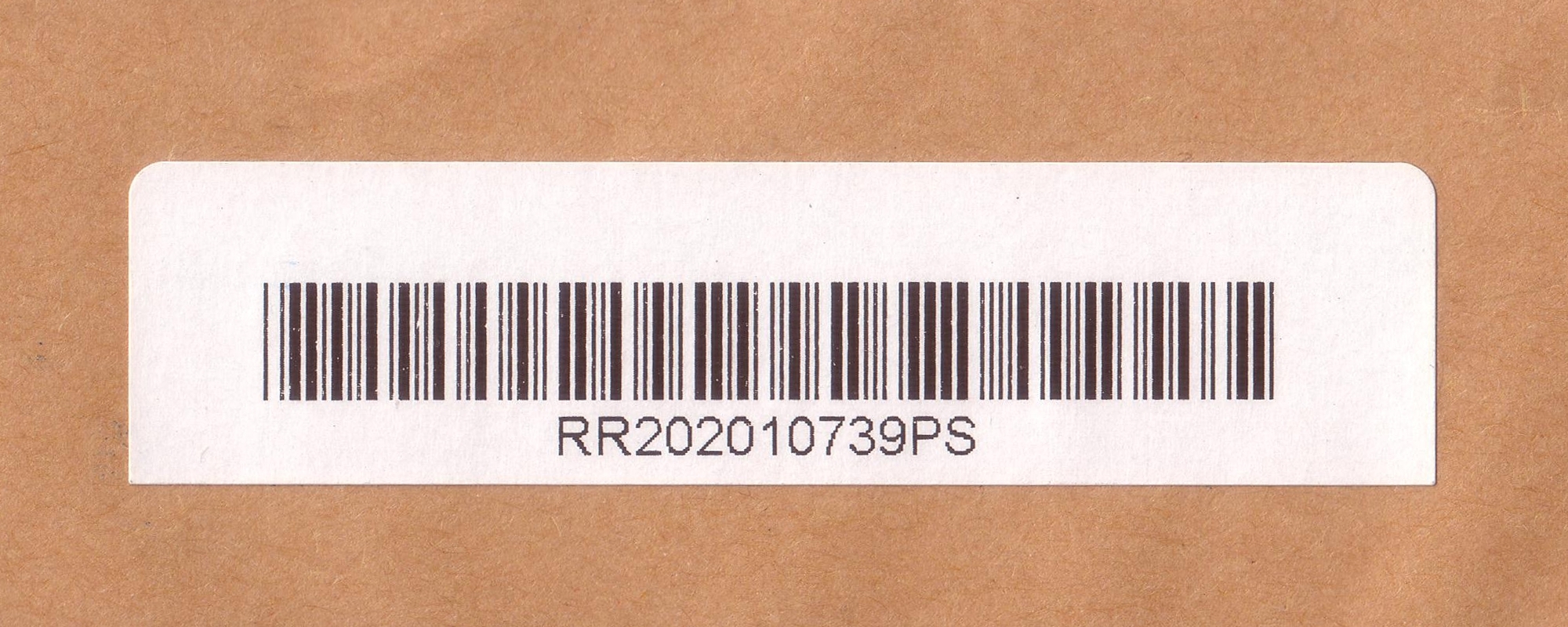 - white self-adhesive labels, printed in black. "IPS Light" linear barcode. With or without "Palestine Post" on top of imprinted numerator (9 digits) with prefixed RR and suffixed PS or ps. Label size varies.
