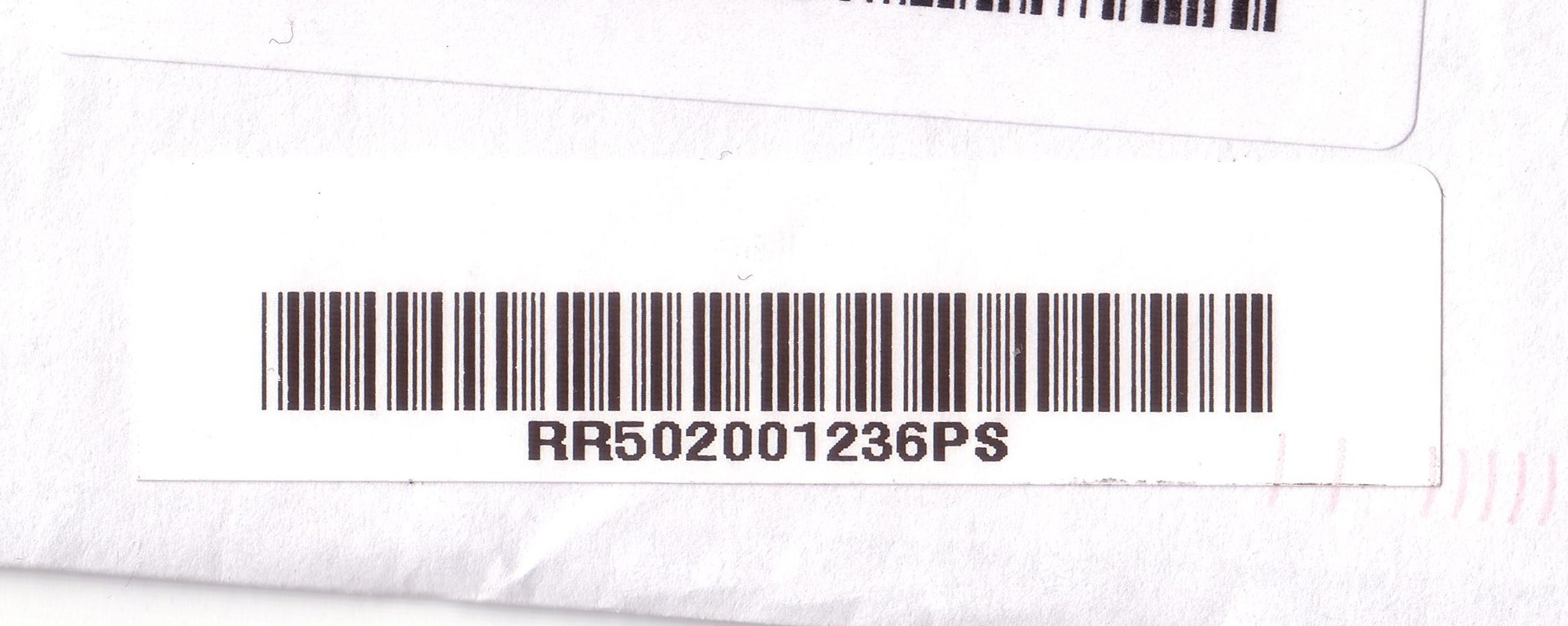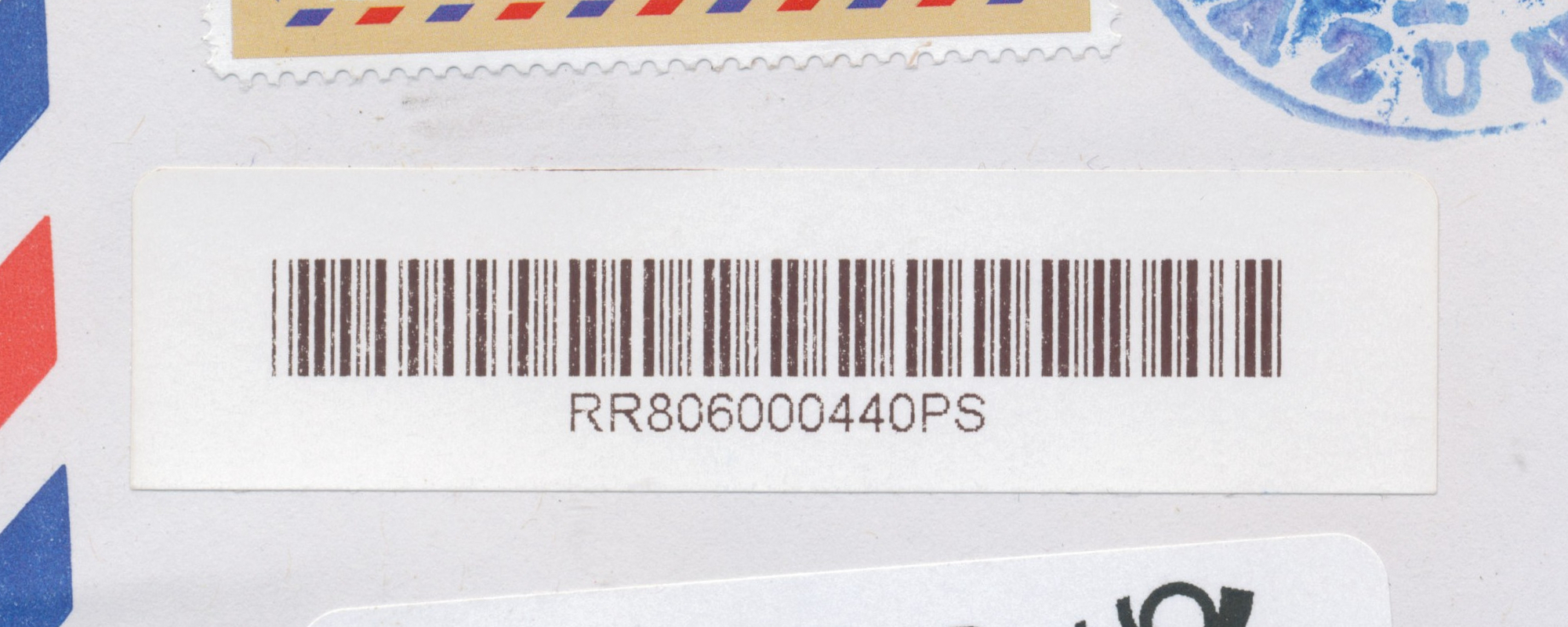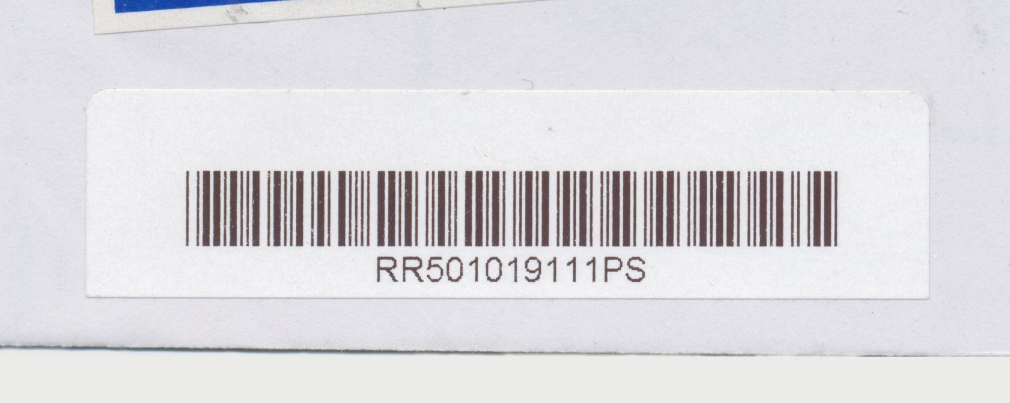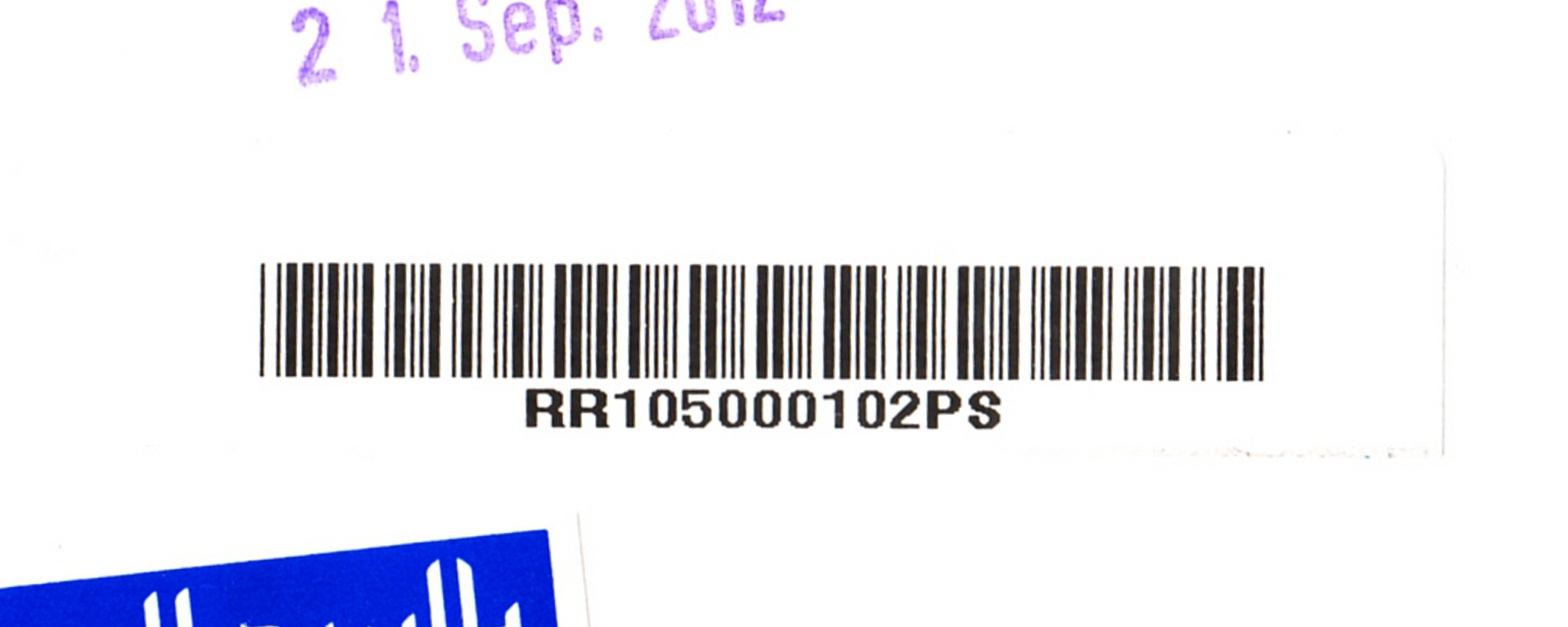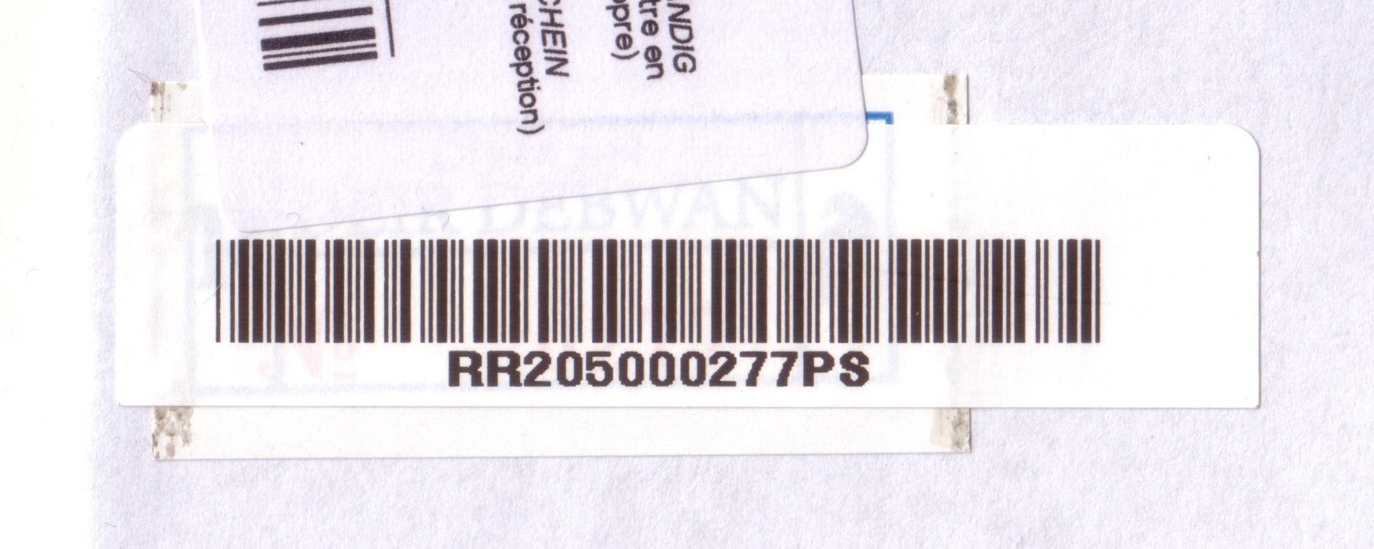 - white self-adhesive labels, printed in black. "IPS Light" linear barcode. With or without "Palestine Post" on top of imprinted numerator (9 digits) with prefixed RR and suffixed PS or ps. Label size varies.
