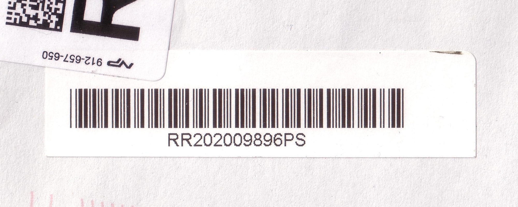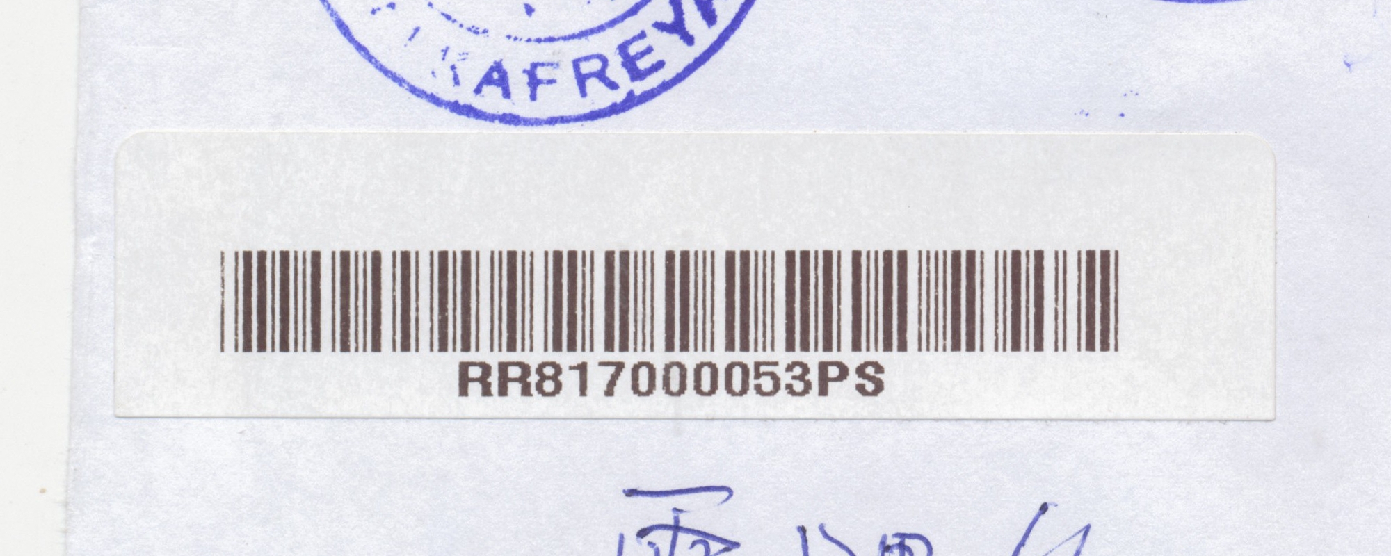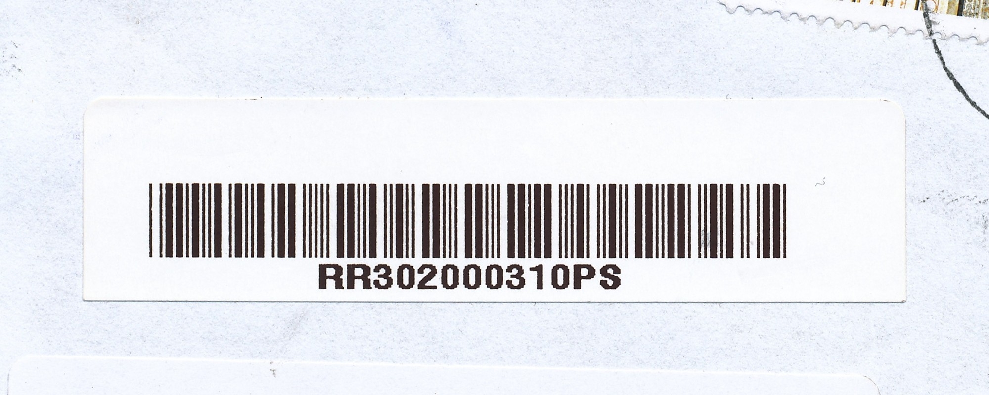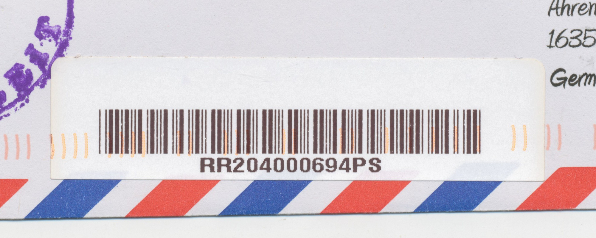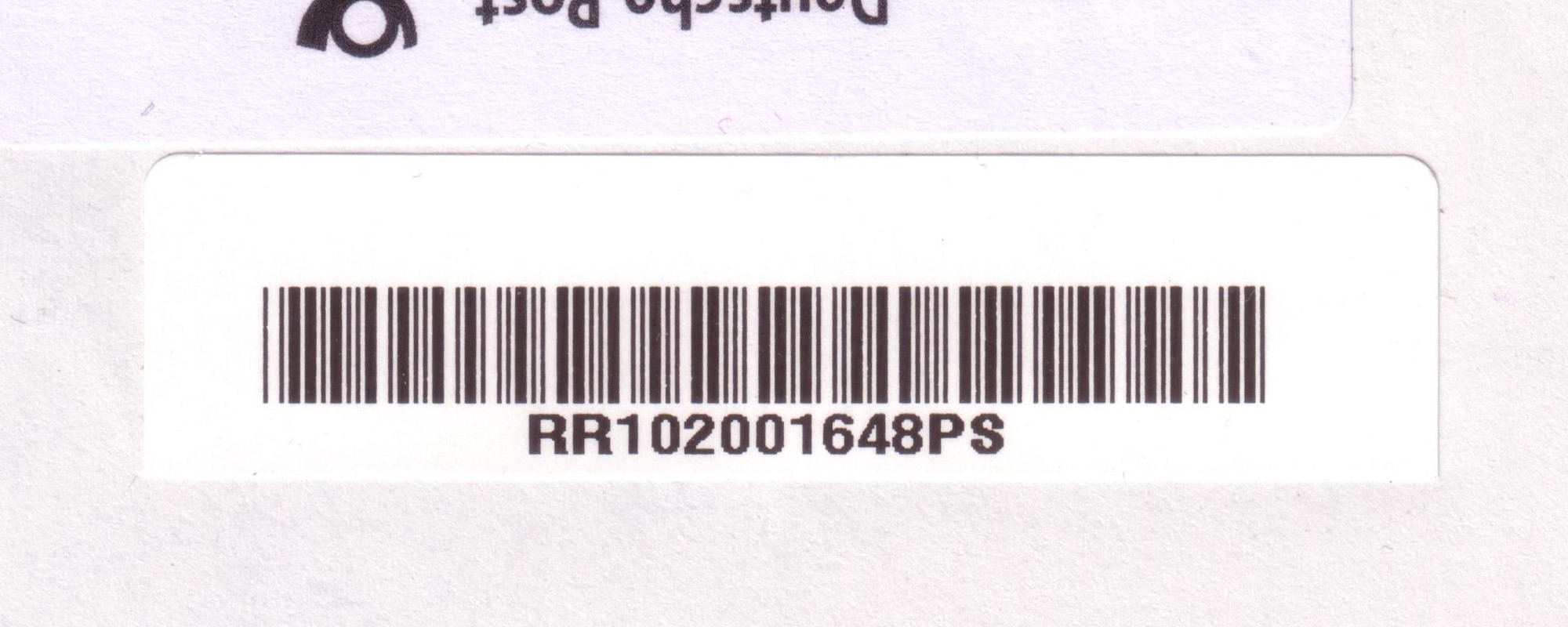 - white self-adhesive labels, printed in black. "IPS Light" linear barcode. With or without "Palestine Post" on top of imprinted numerator (9 digits) with prefixed RR and suffixed PS or ps. Label size varies.