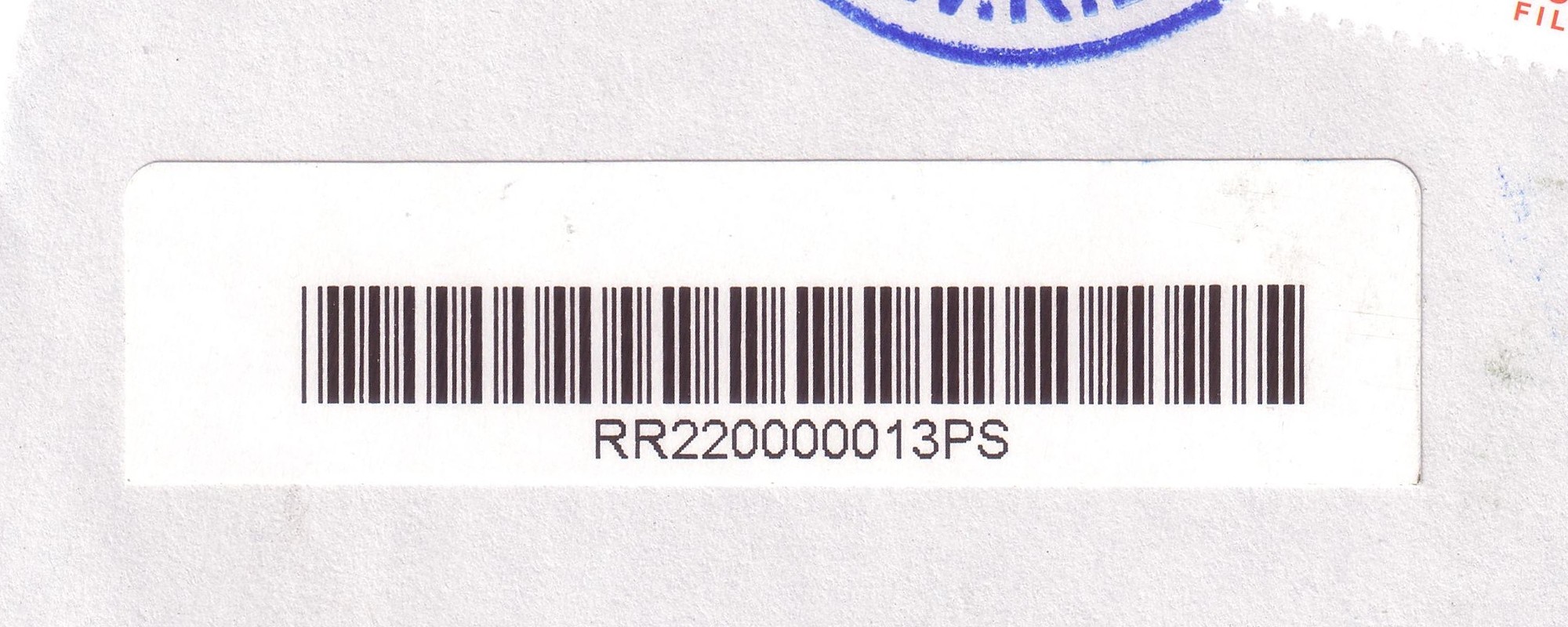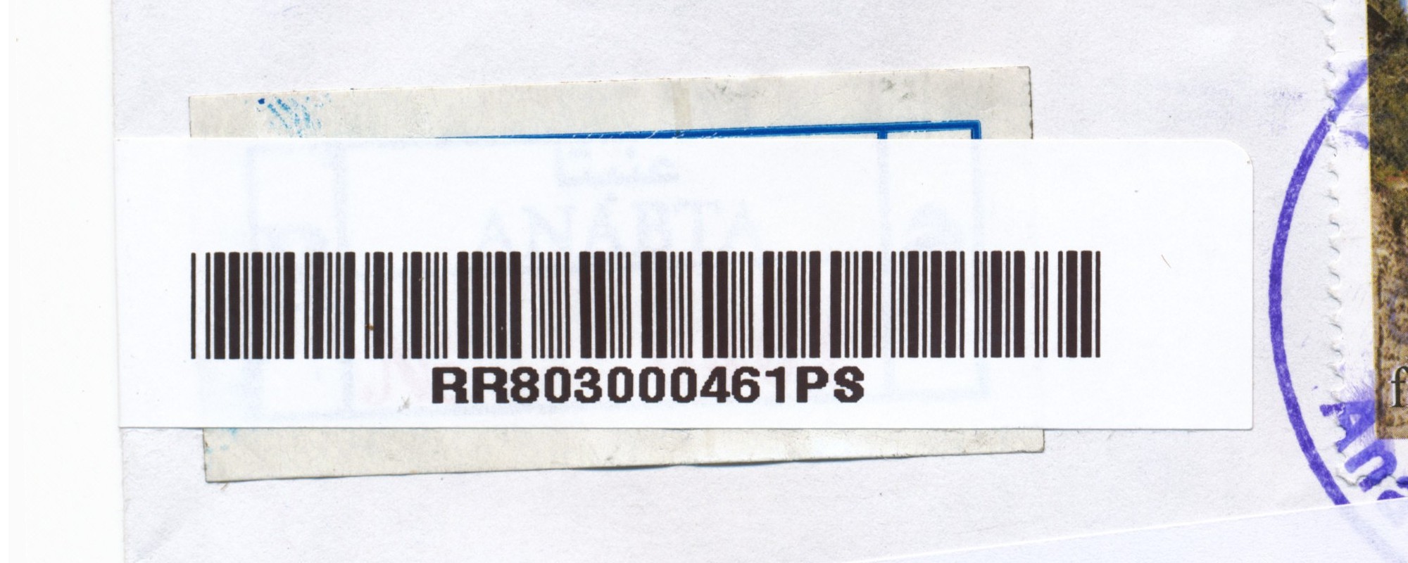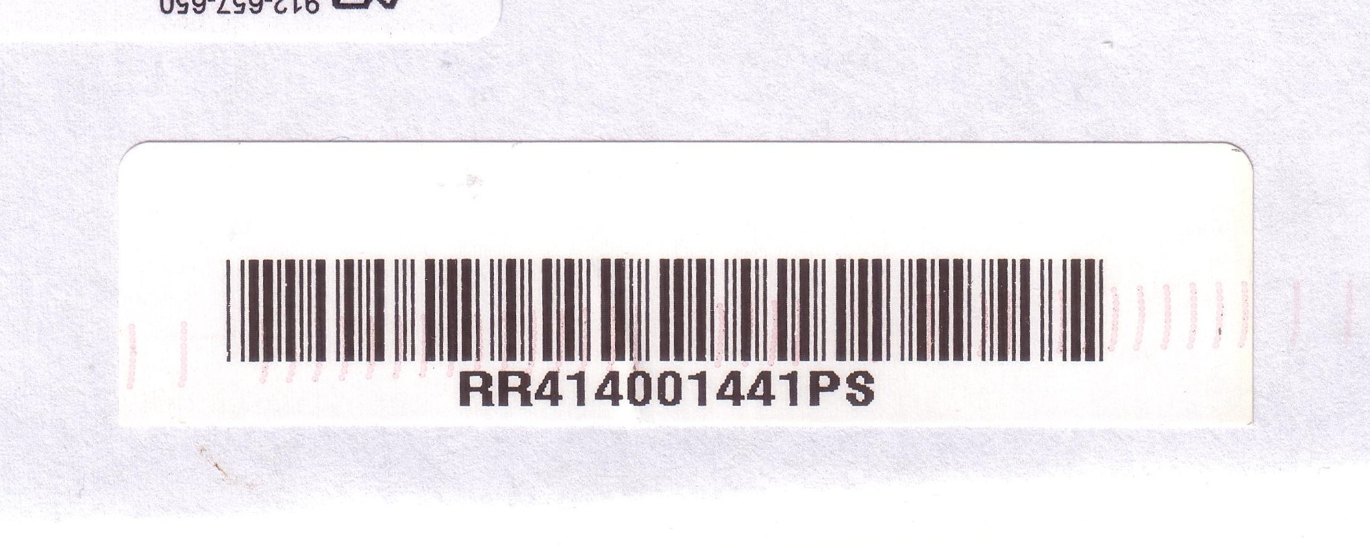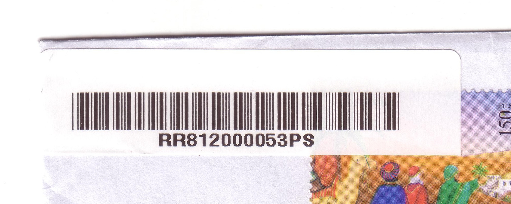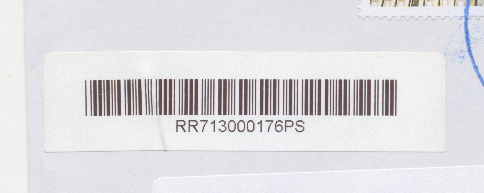 - white self-adhesive labels, printed in black. "IPS Light" linear barcode. With or without "Palestine Post" on top of imprinted numerator (9 digits) with prefixed RR and suffixed PS or ps. Label size varies.