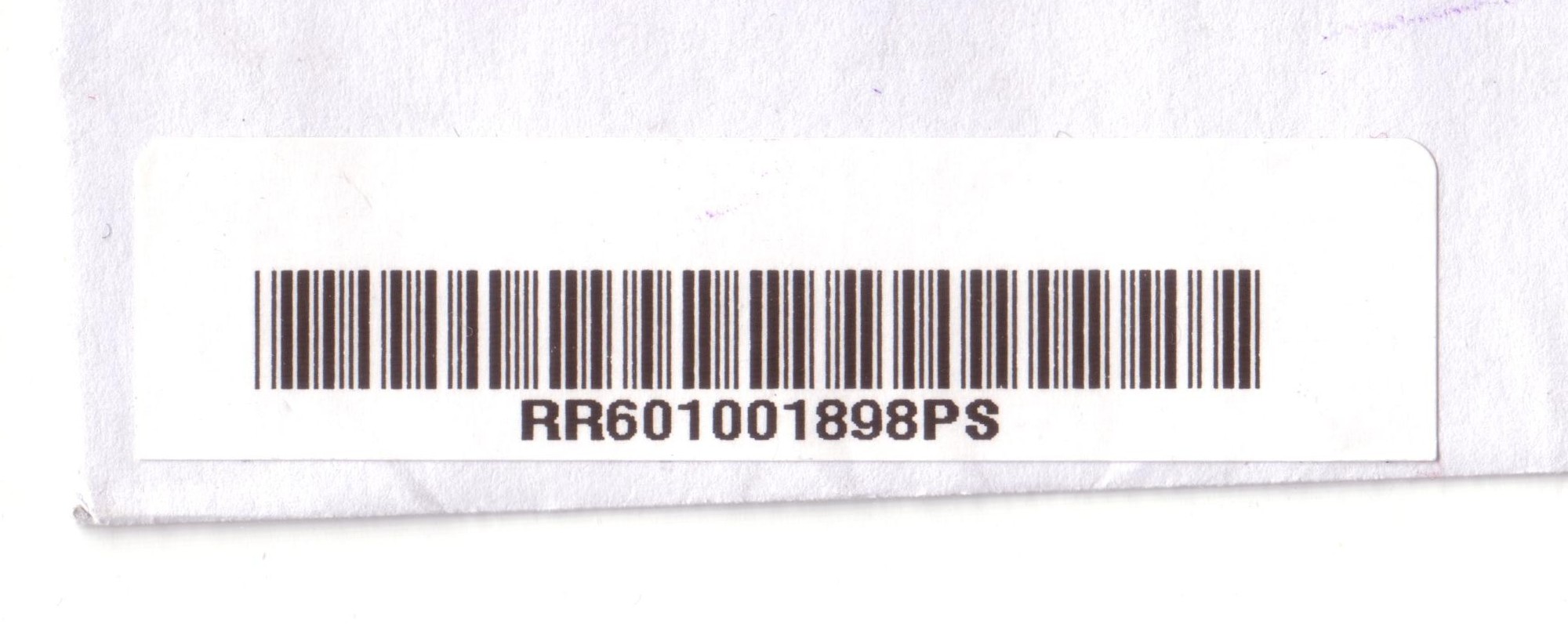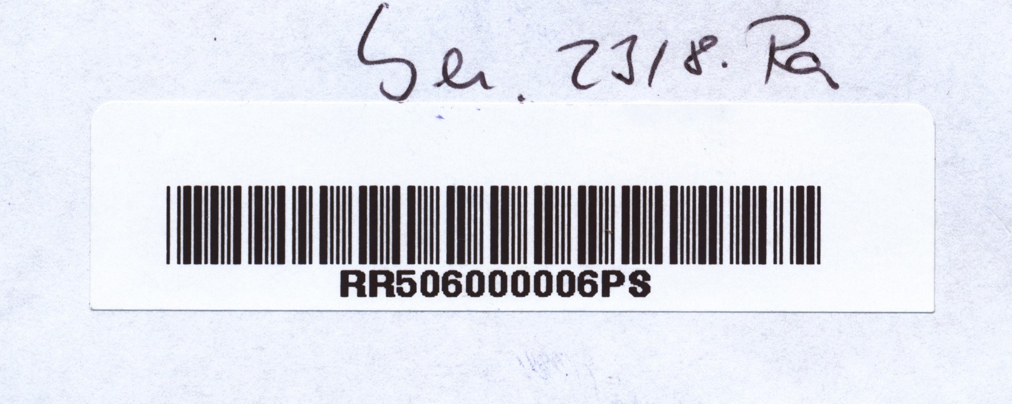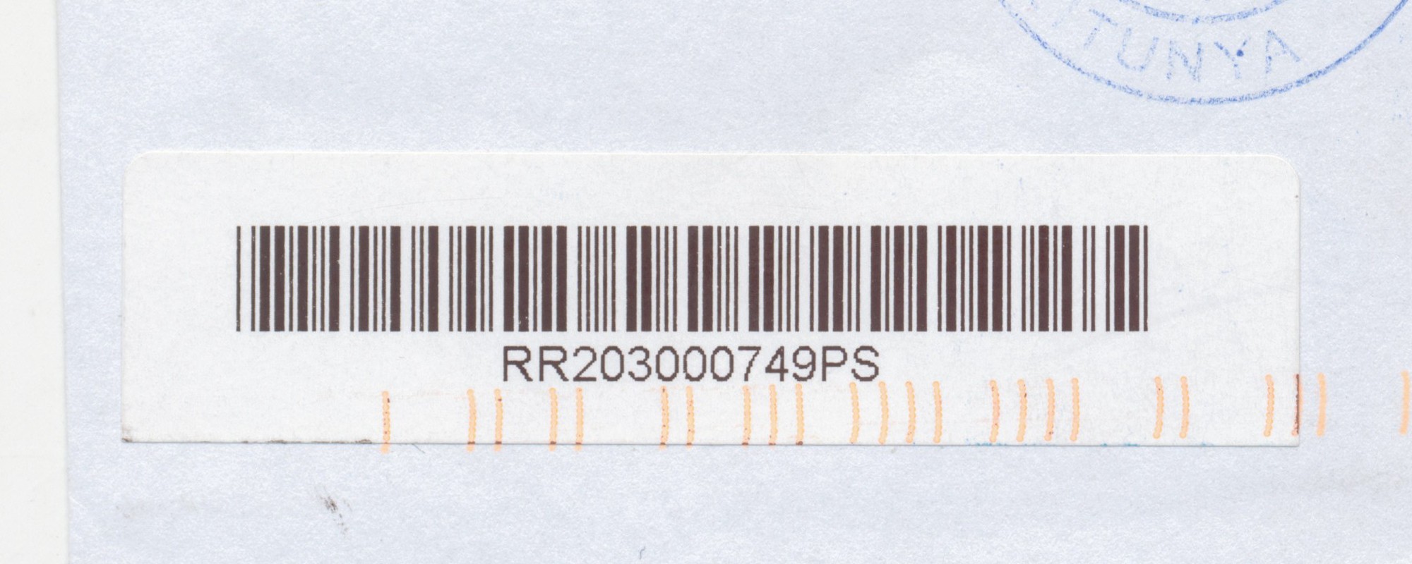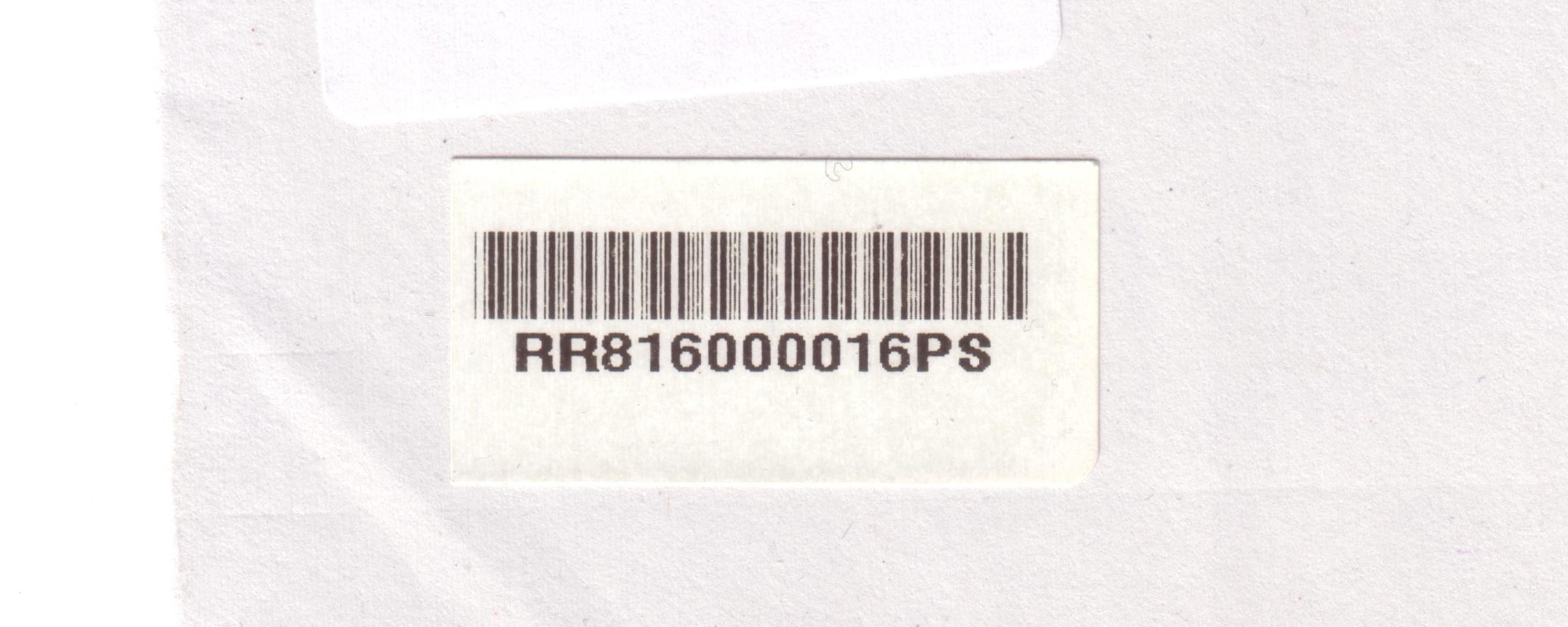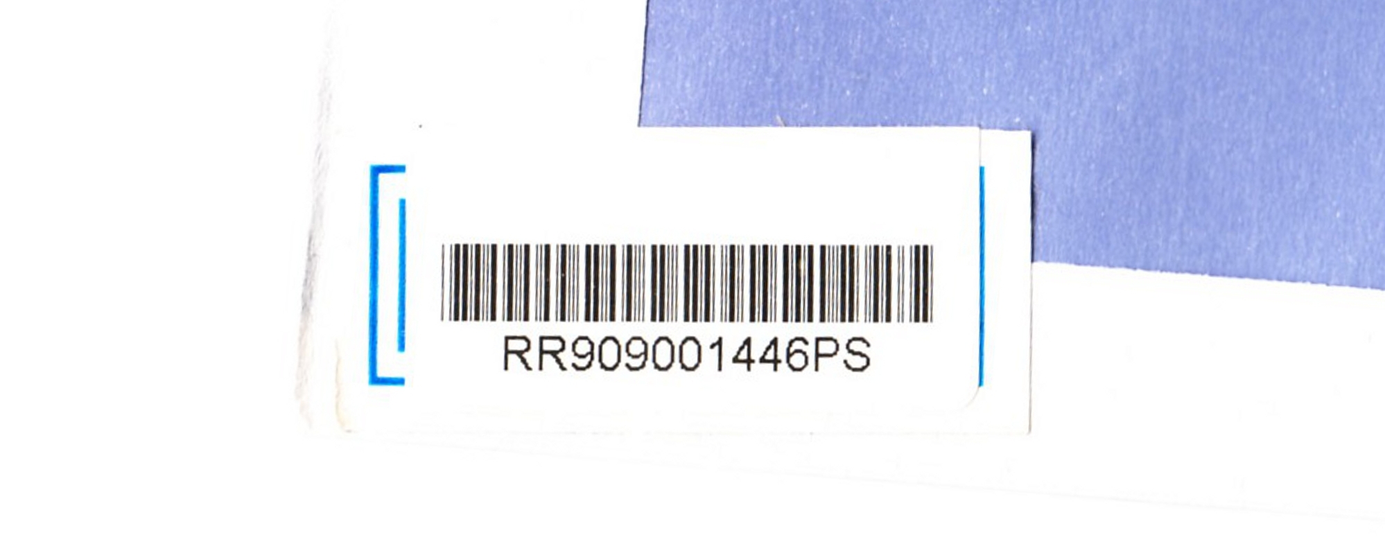 - white self-adhesive labels, printed in black. "IPS Light" linear barcode. With or without "Palestine Post" on top of imprinted numerator (9 digits) with prefixed RR and suffixed PS or ps. Label size varies.