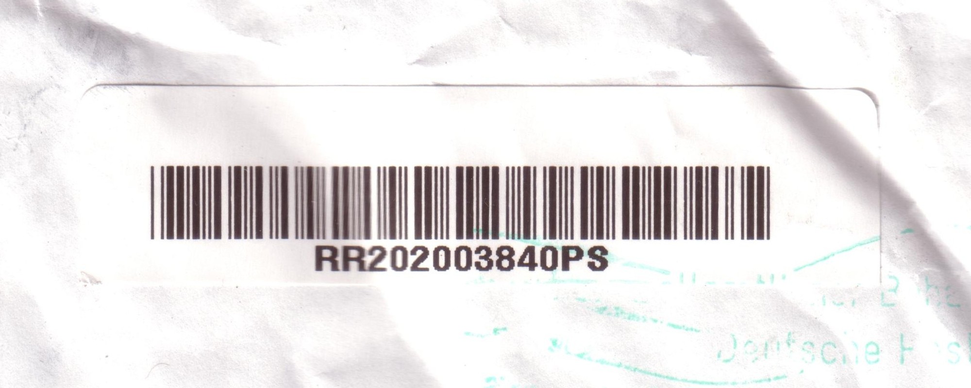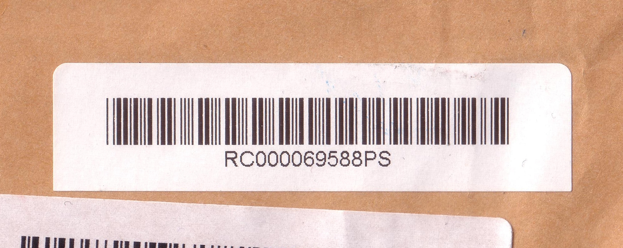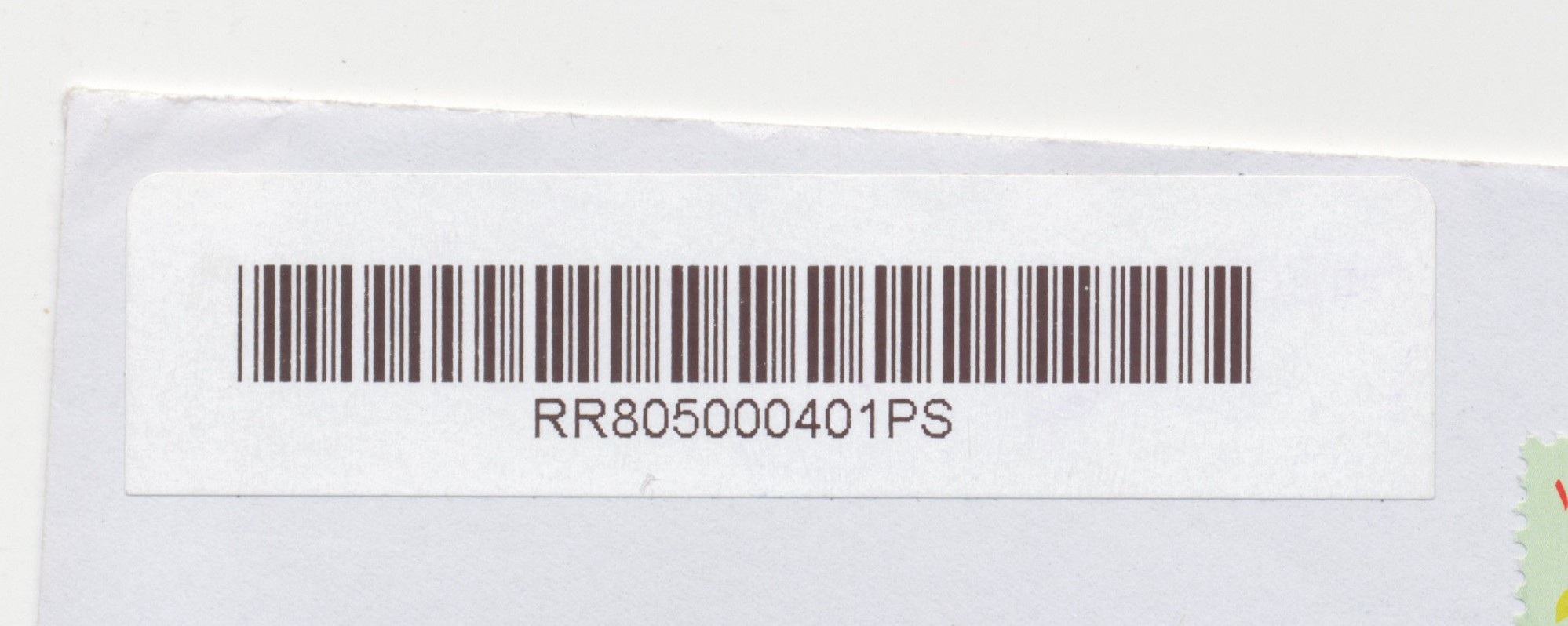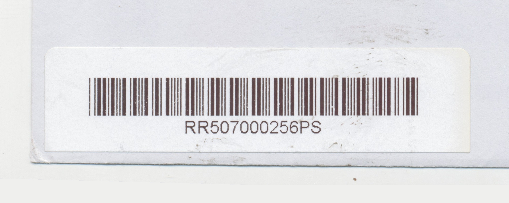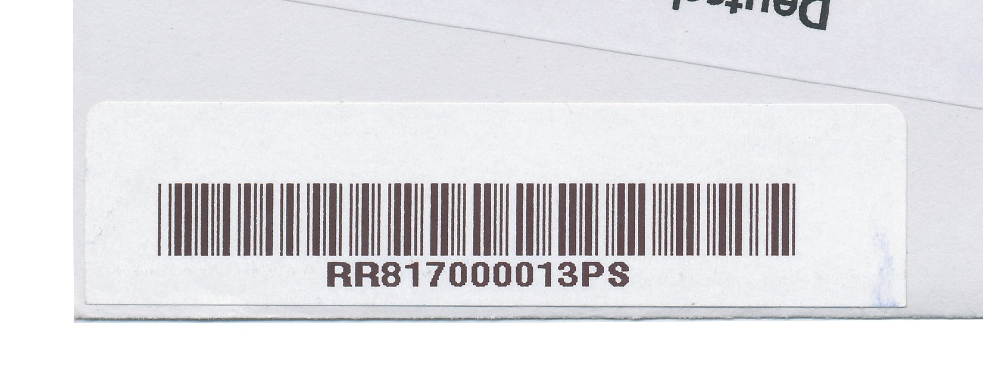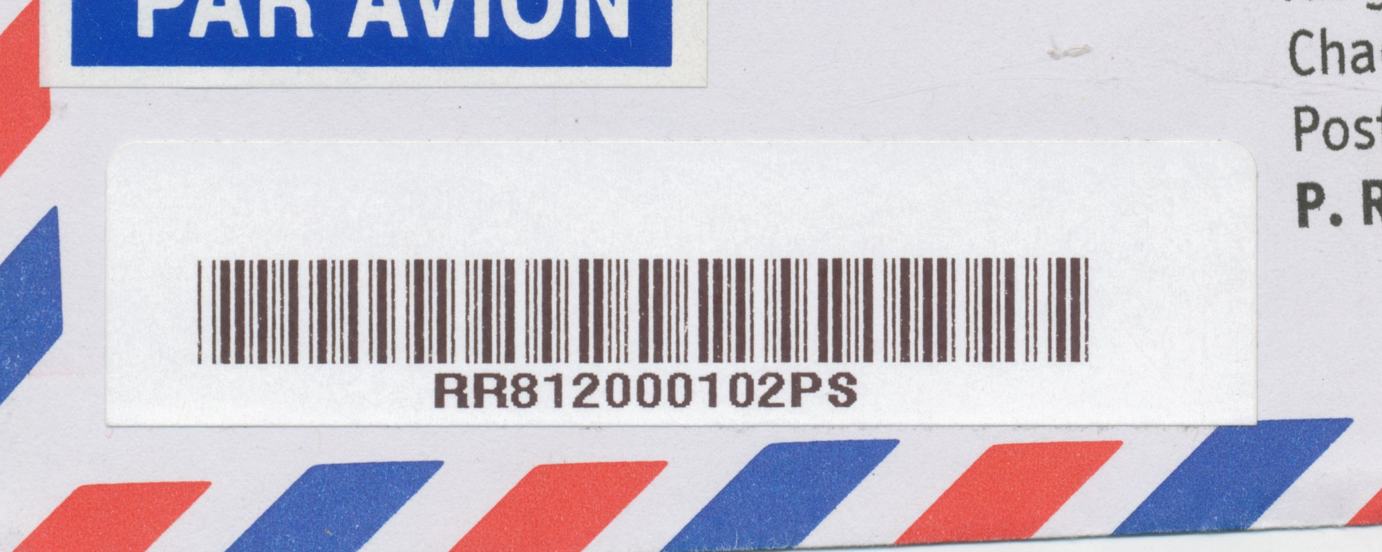 - white self-adhesive labels, printed in black. "IPS Light" linear barcode. With or without "Palestine Post" on top of imprinted numerator (9 digits) with prefixed RR and suffixed PS or ps. Label size varies.
