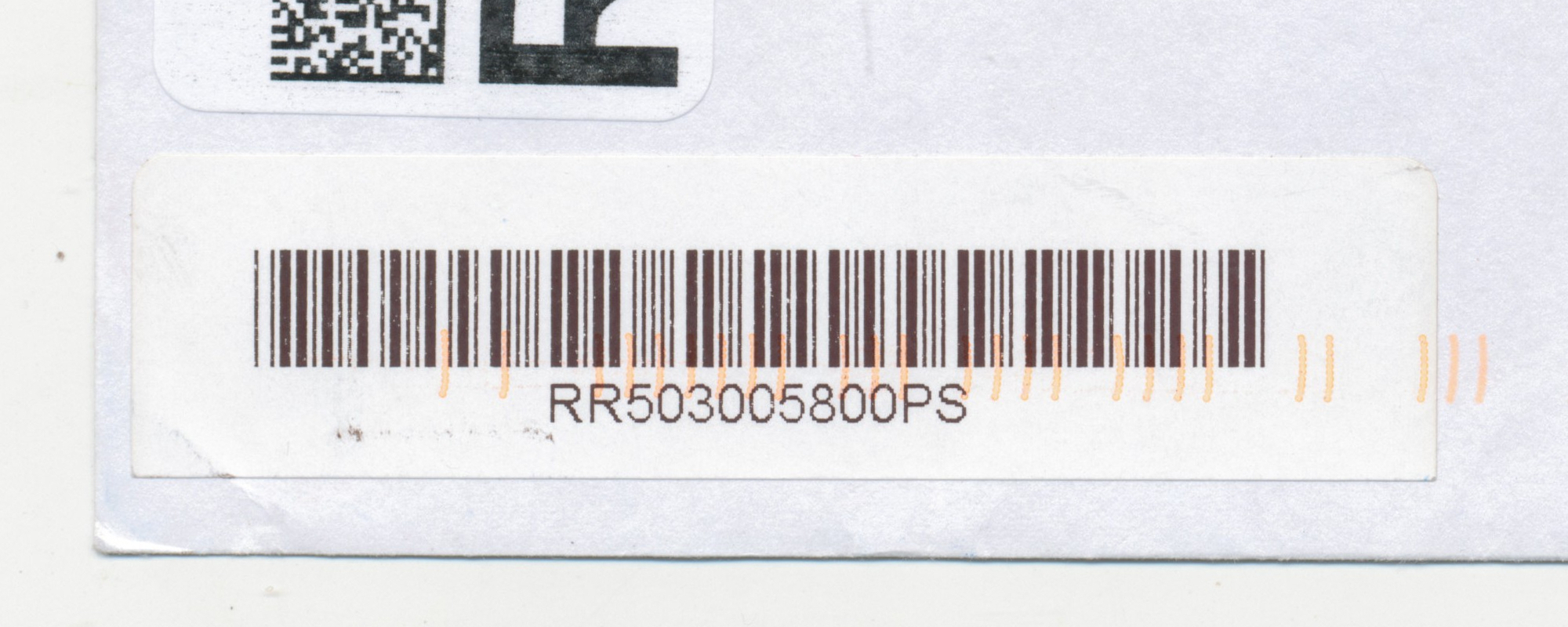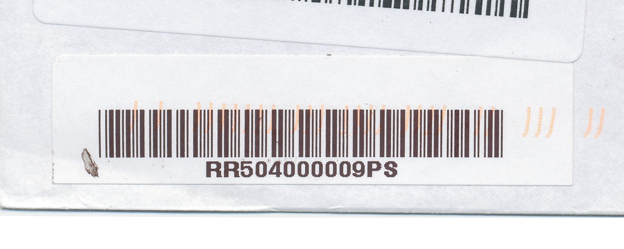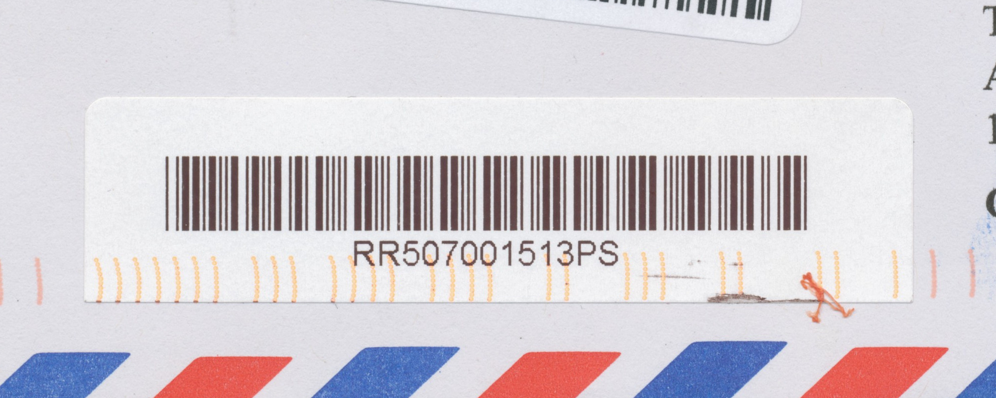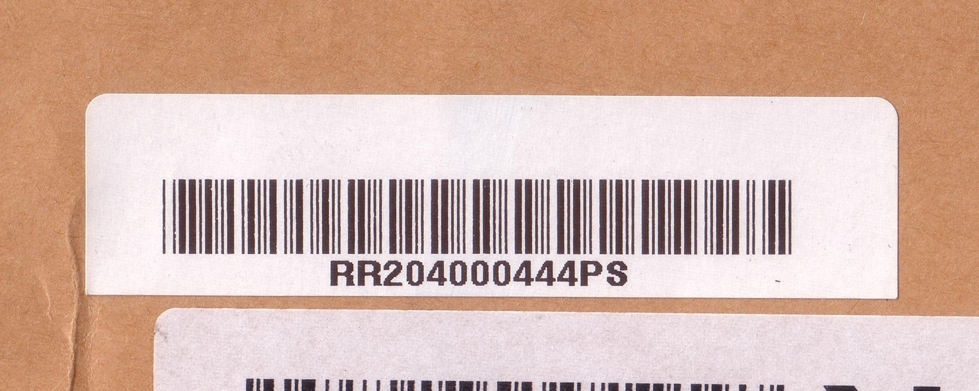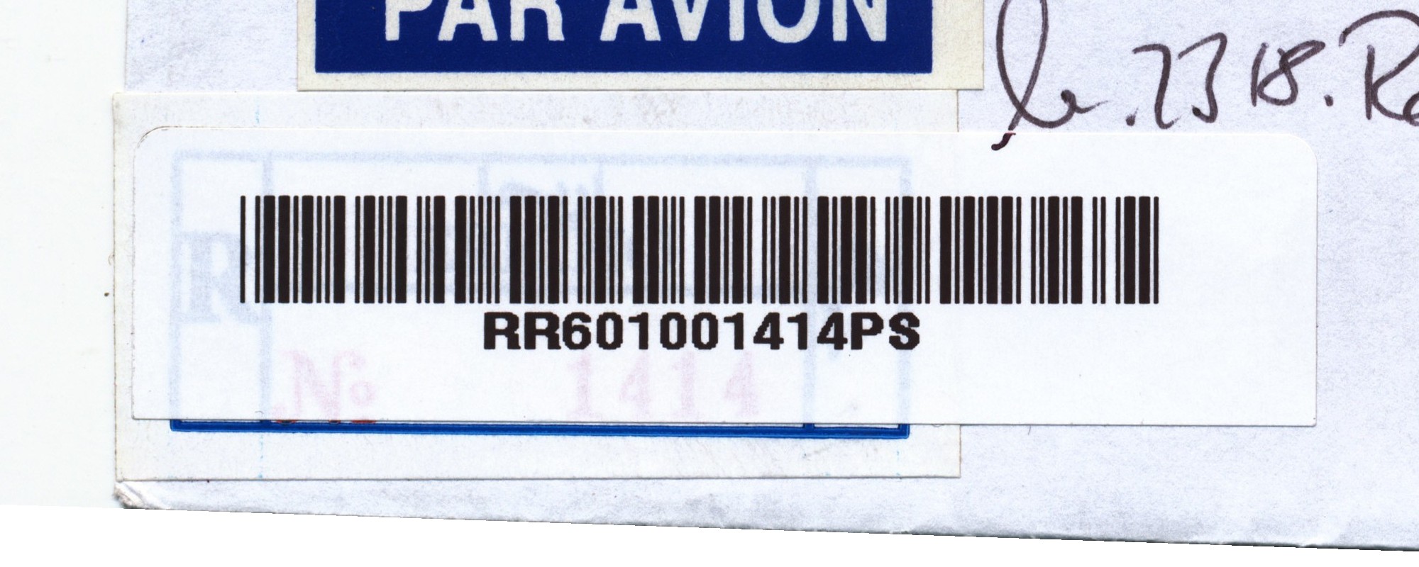 - white self-adhesive labels, printed in black. "IPS Light" linear barcode. With or without "Palestine Post" on top of imprinted numerator (9 digits) with prefixed RR and suffixed PS or ps. Label size varies.